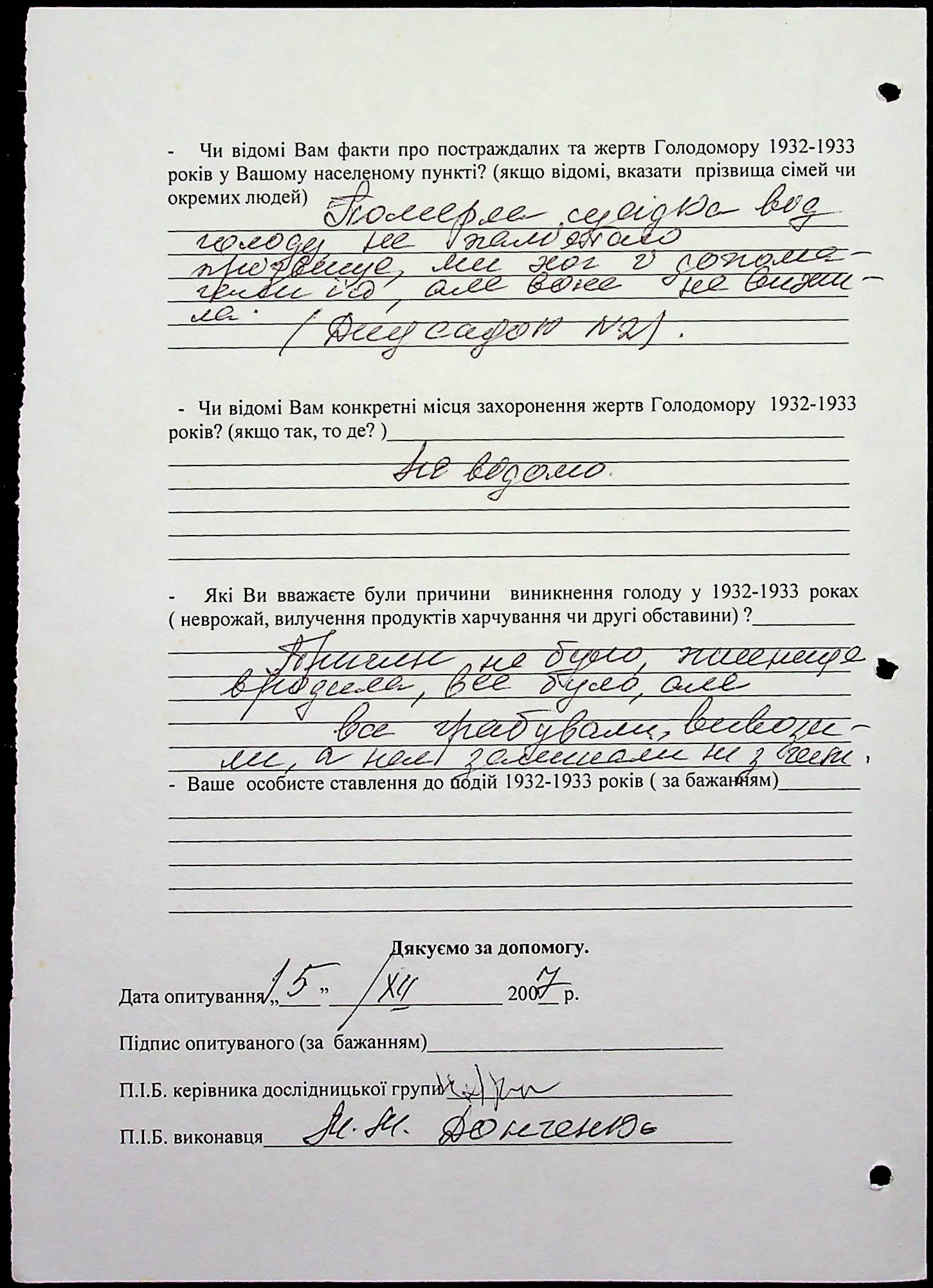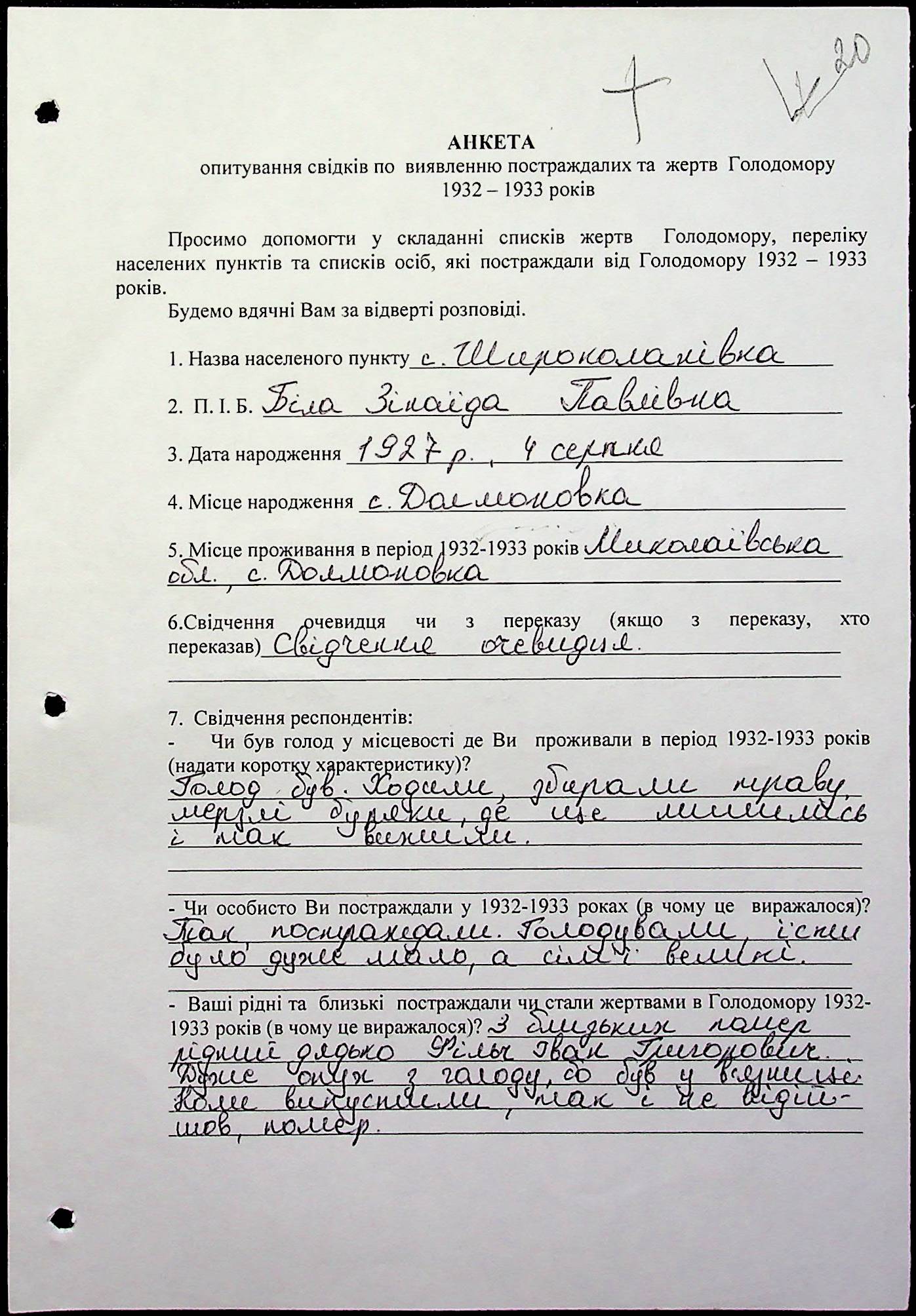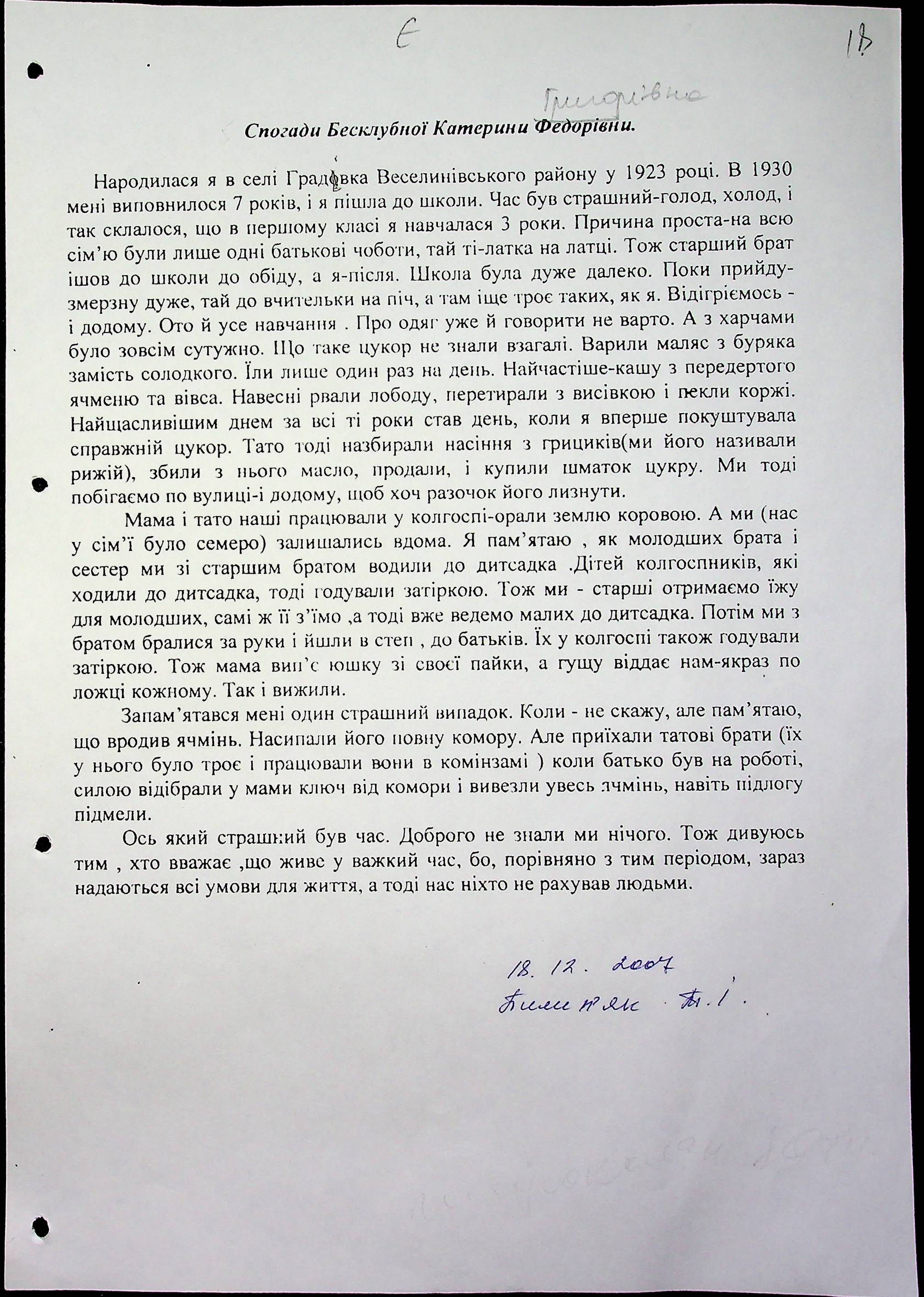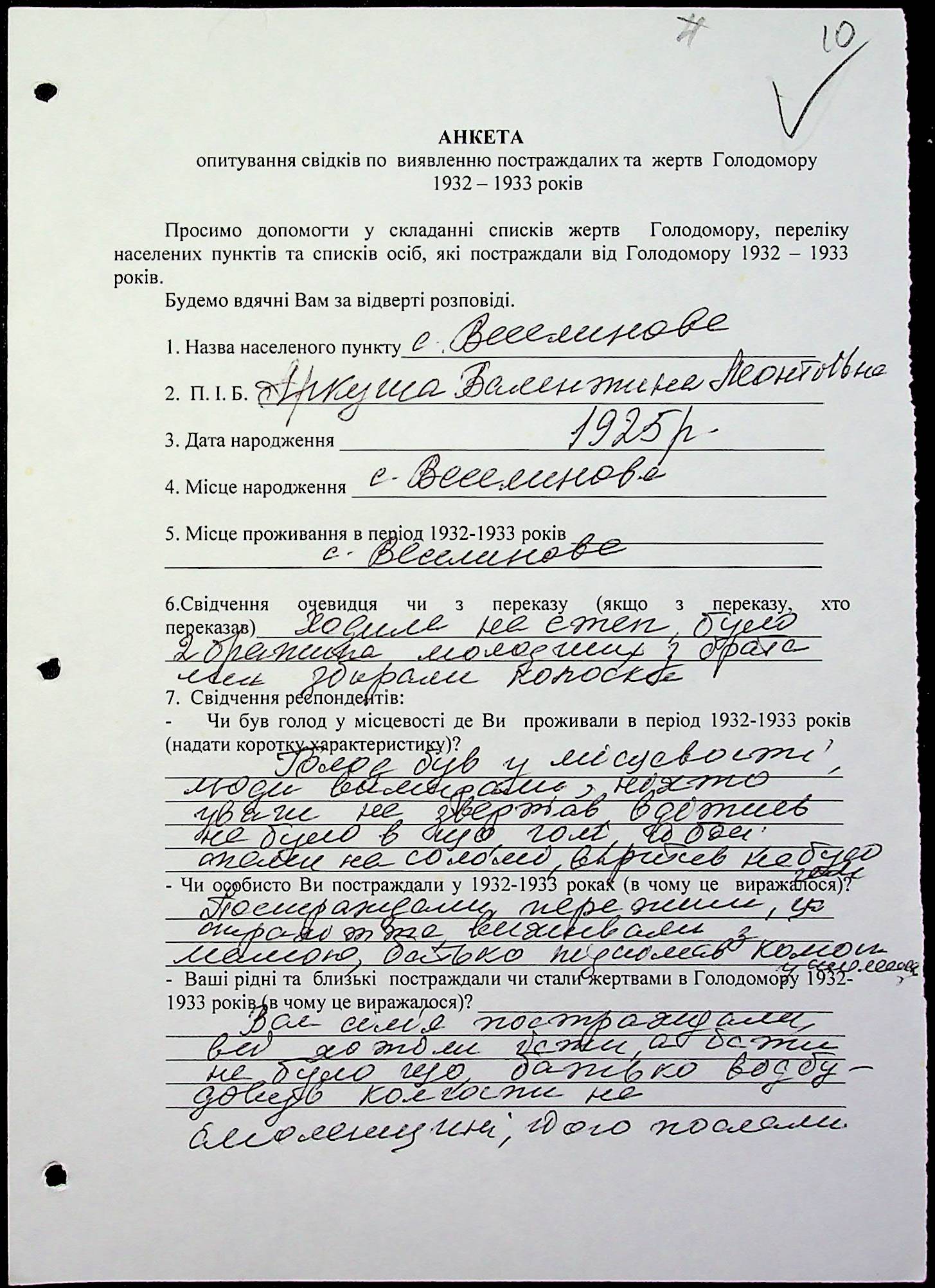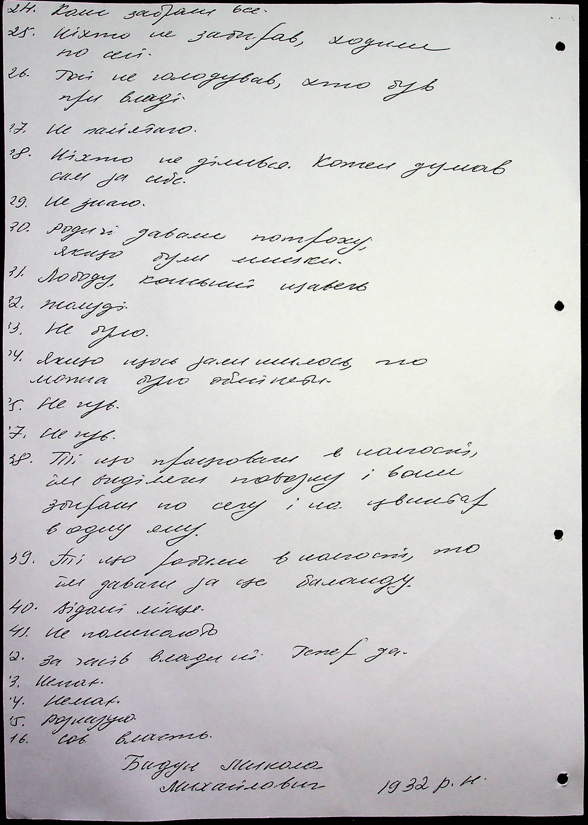 • • • • Справа № 20 “Свідчення очевидців Голодомору 1932-1933 років, які проживають у Веселинівському районі, з прізвищами на літери А–К”