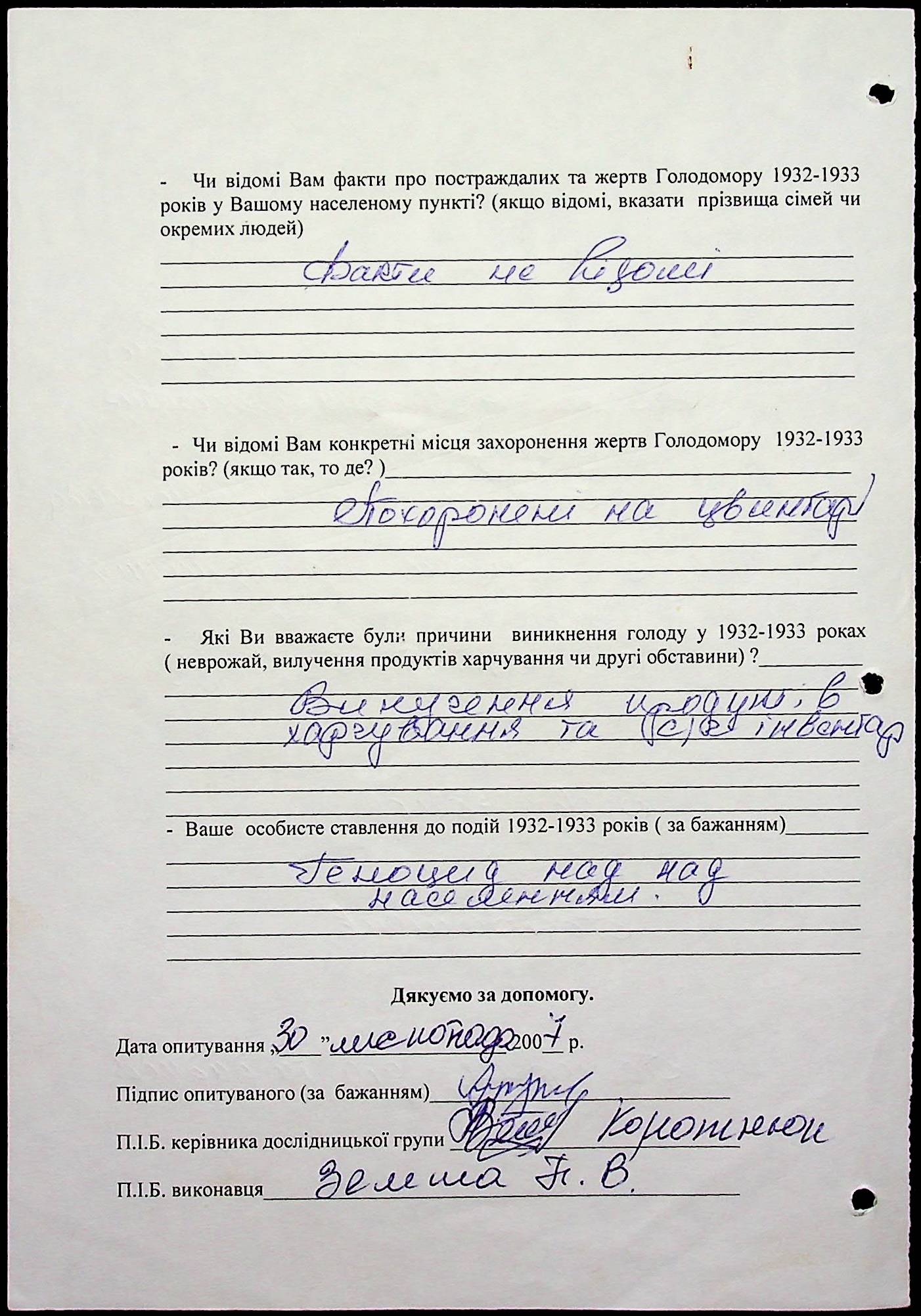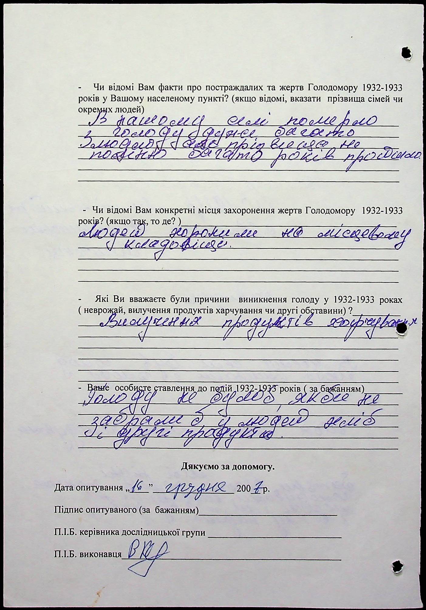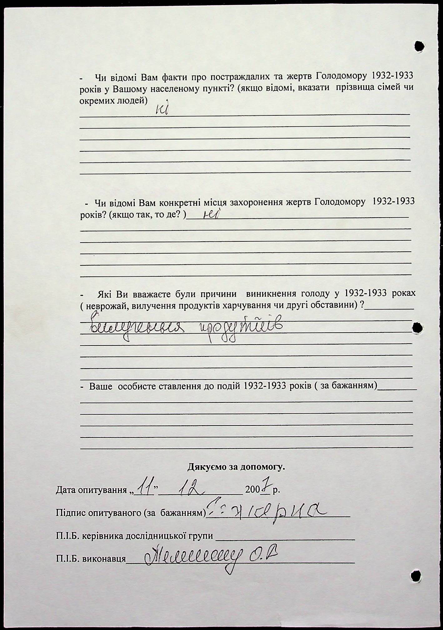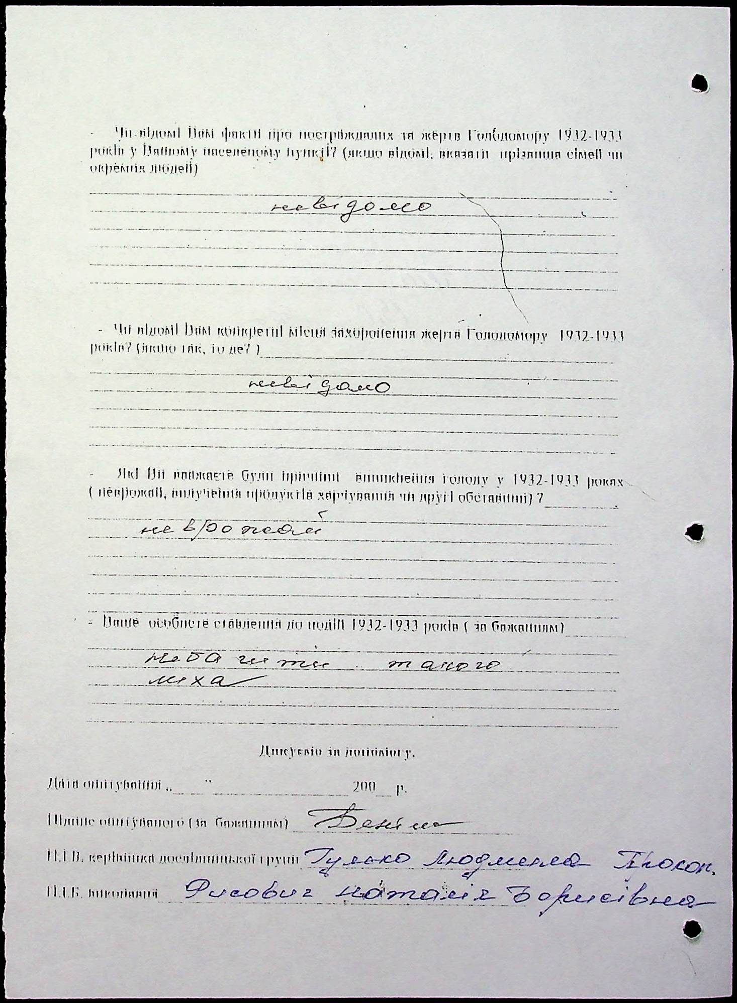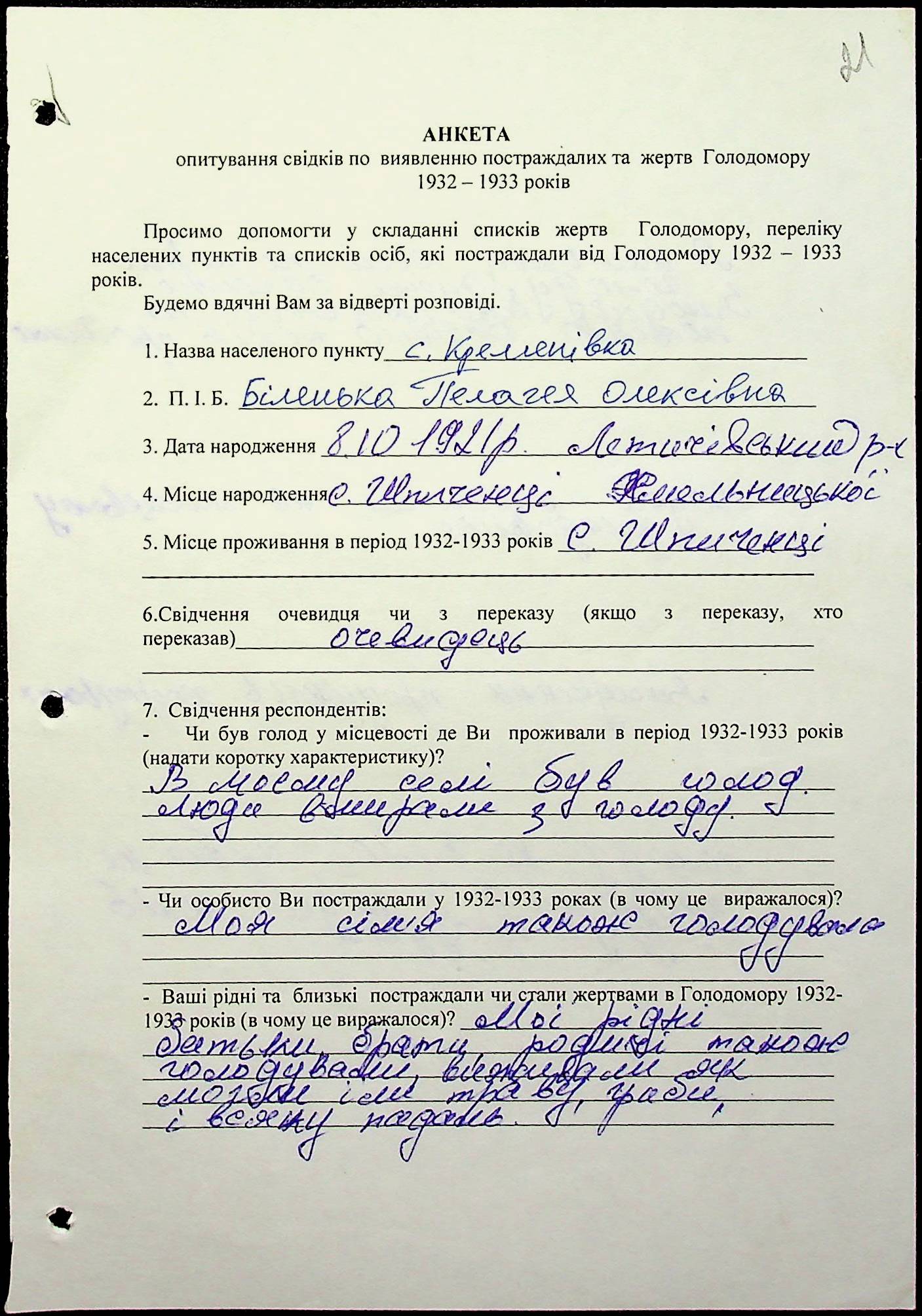 • • • • Справа № 20 “Свідчення очевидців Голодомору 1932-1933 років, які проживають у Веселинівському районі, з прізвищами на літери А–К”
