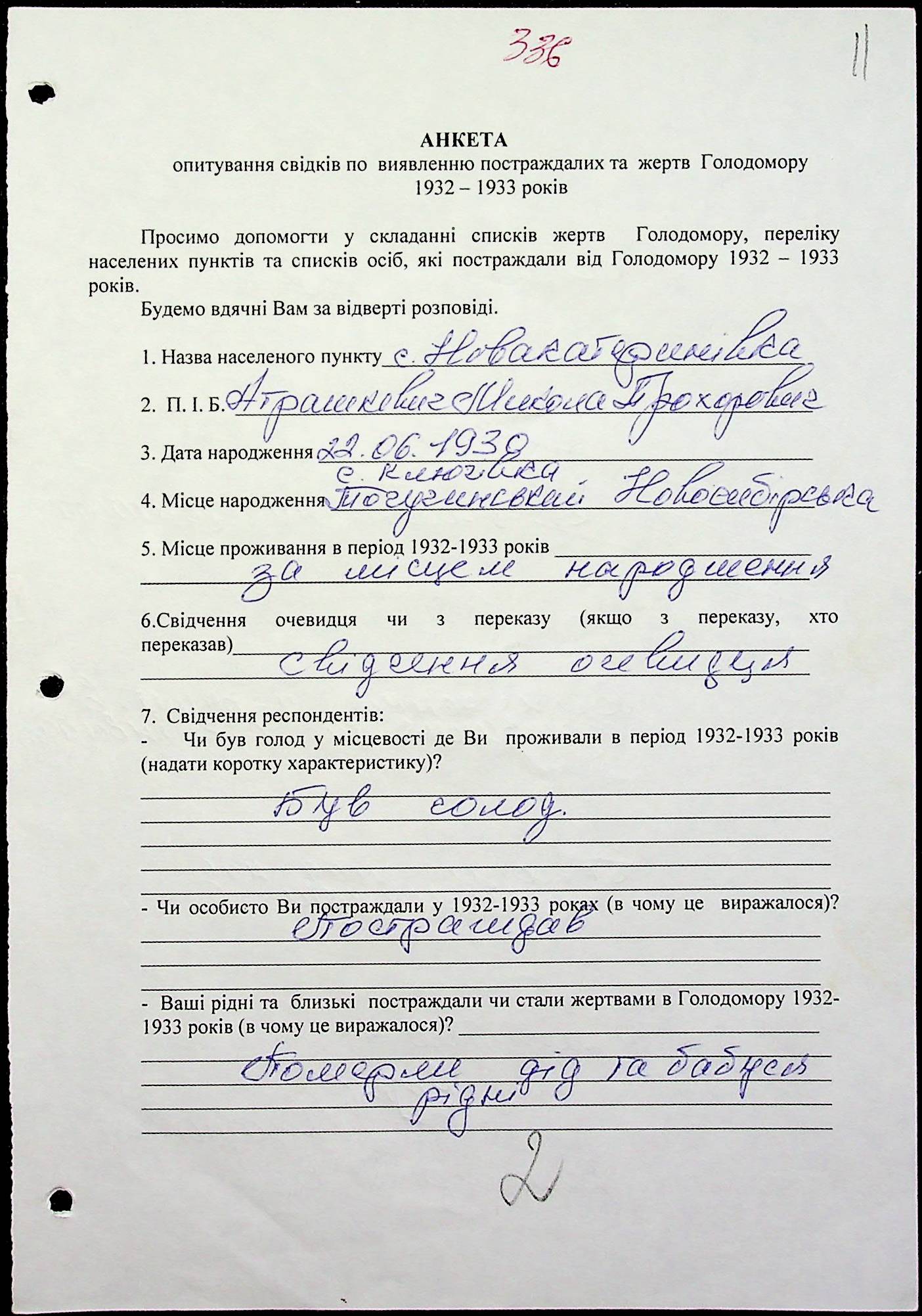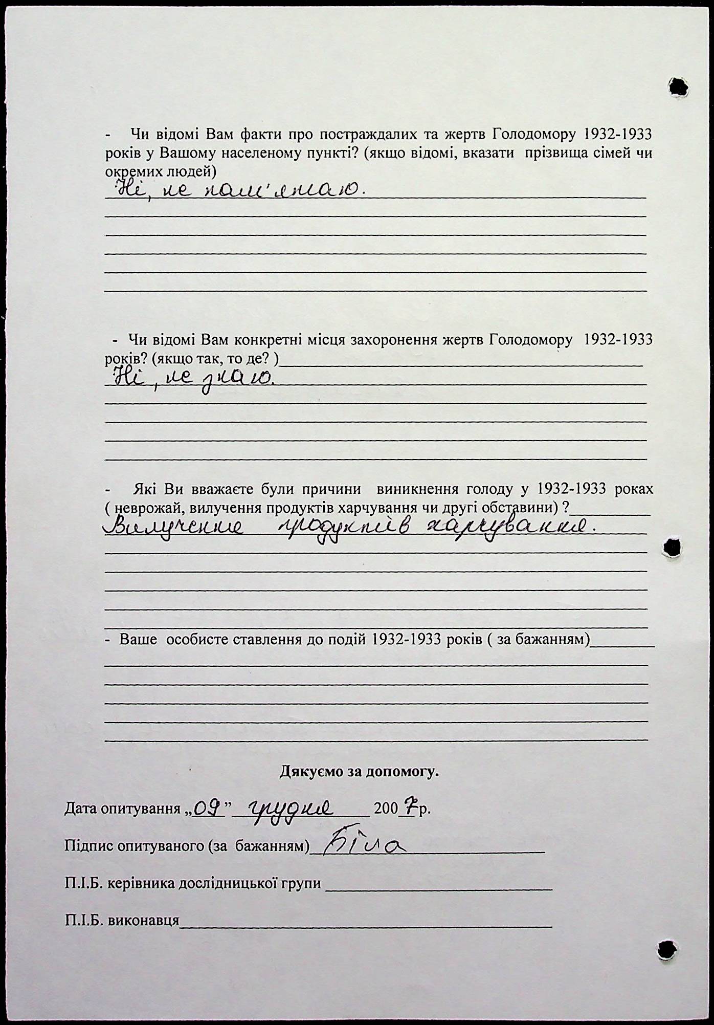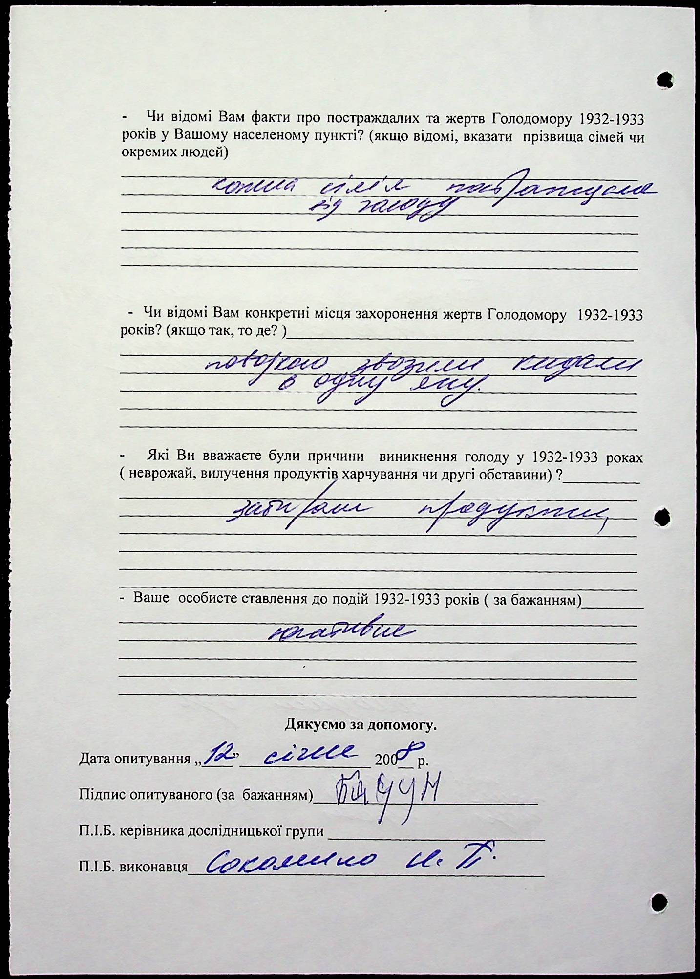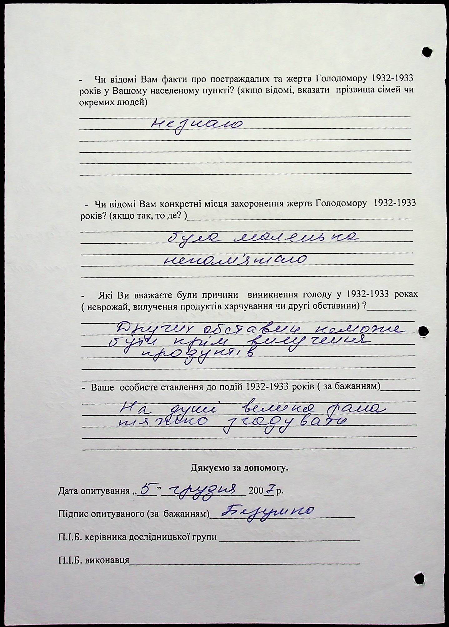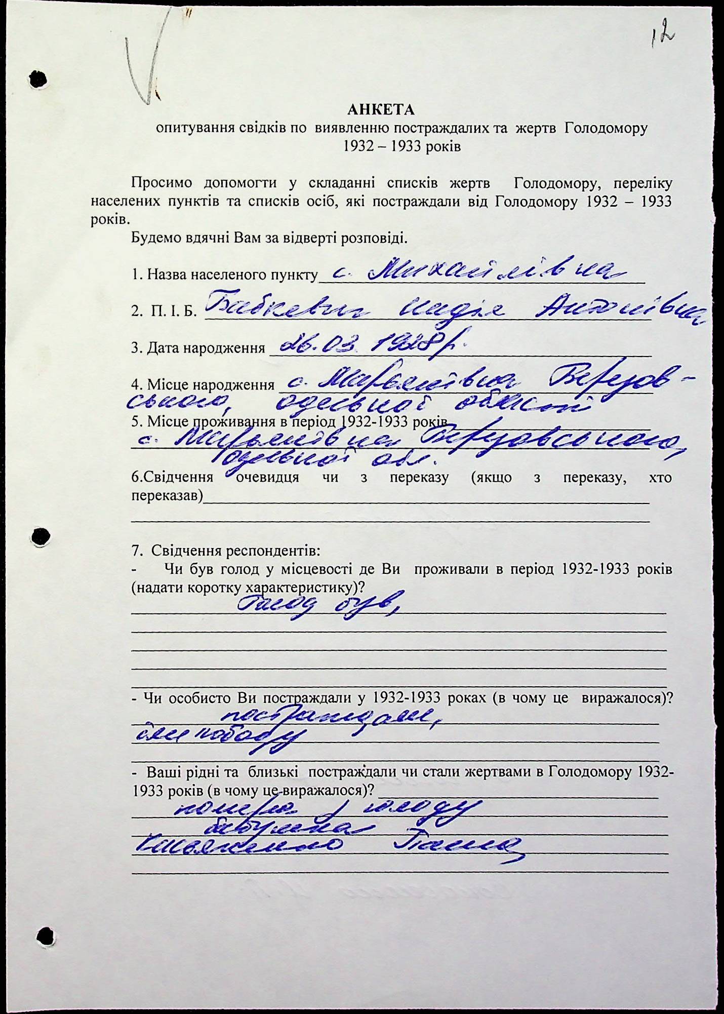 • • • • Справа № 20 “Свідчення очевидців Голодомору 1932-1933 років, які проживають у Веселинівському районі, з прізвищами на літери А–К”