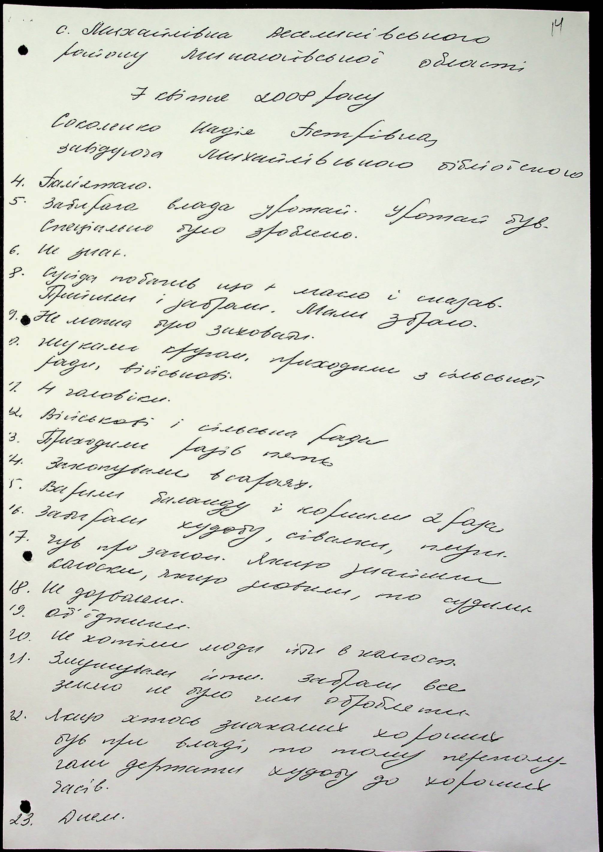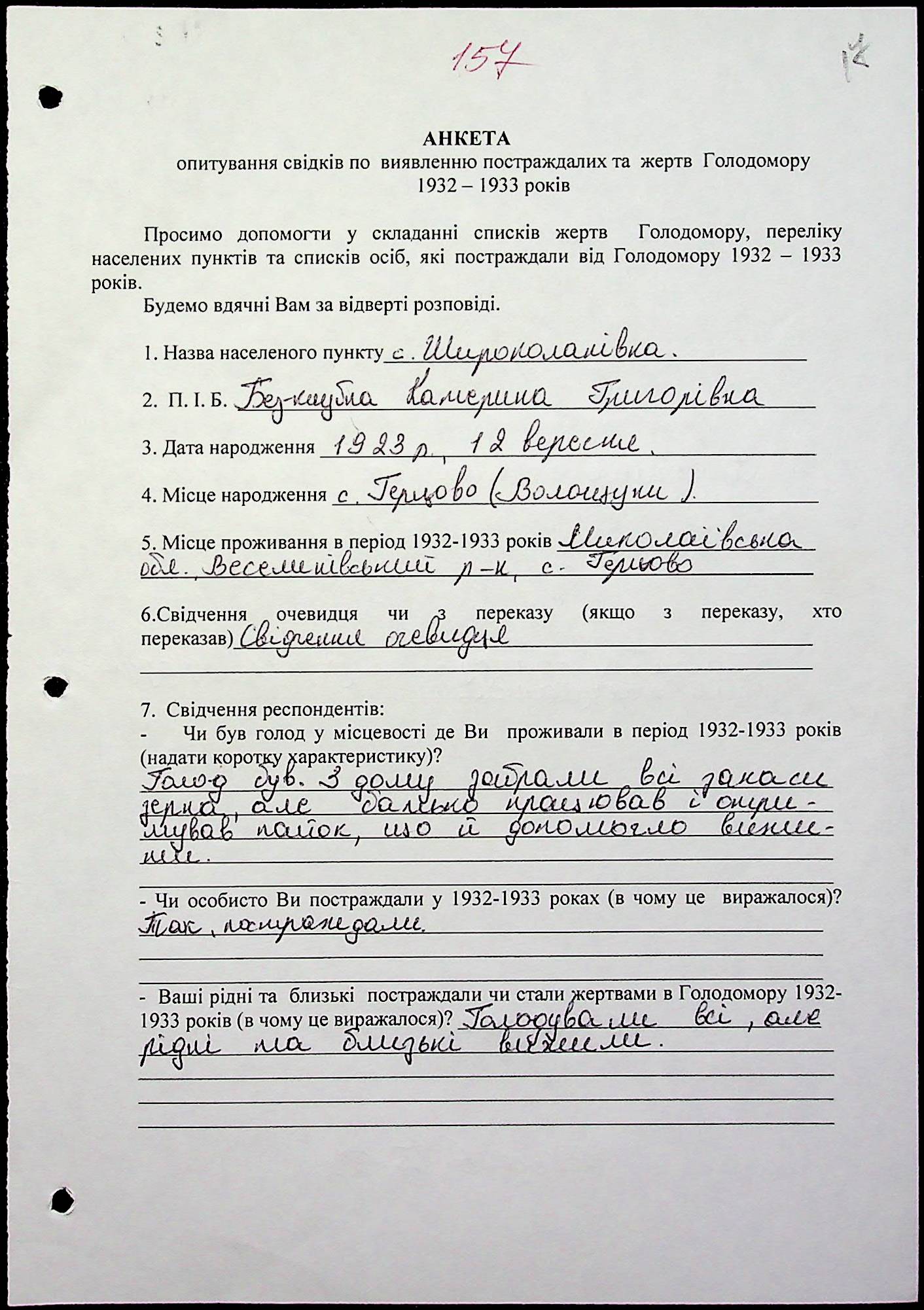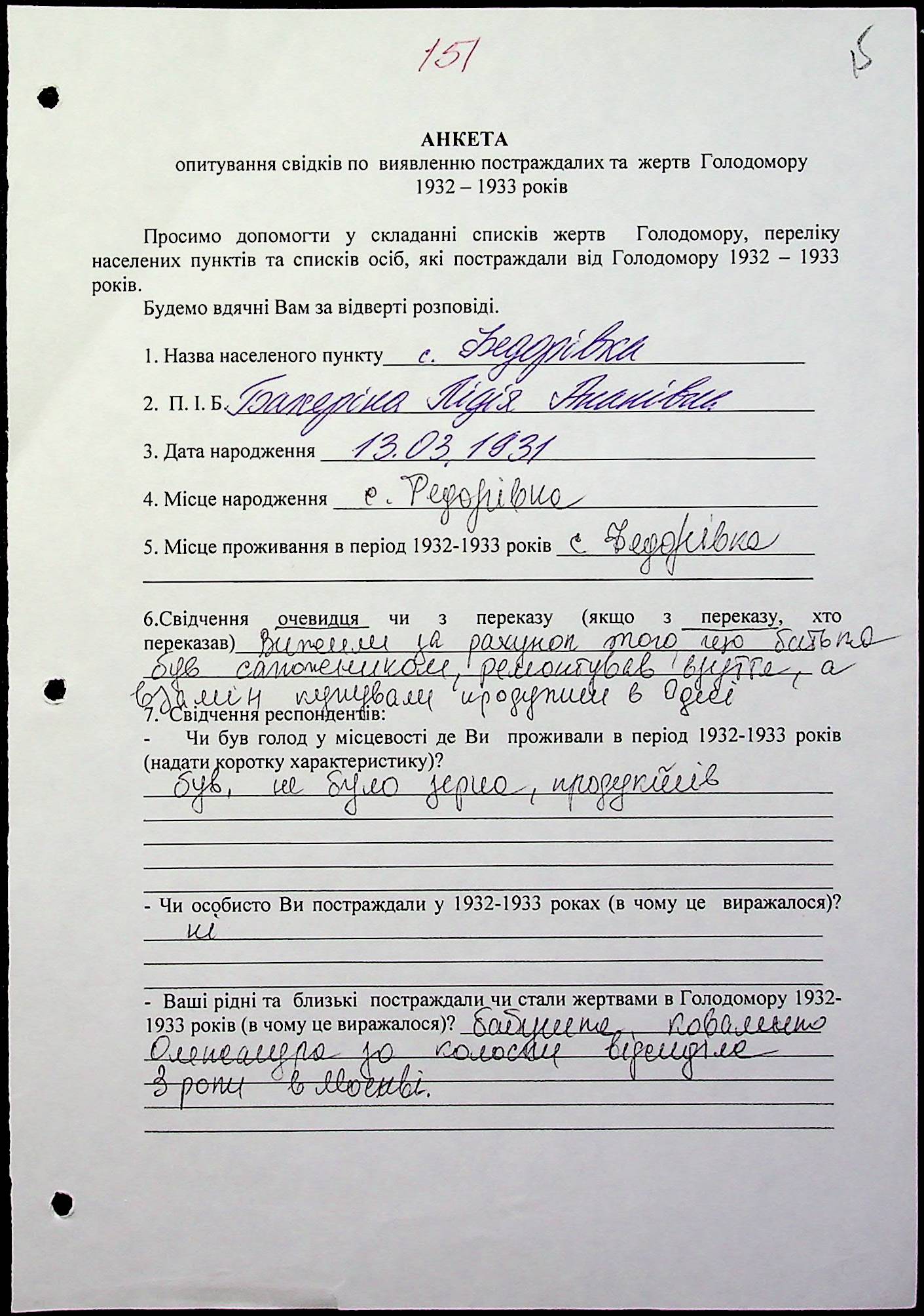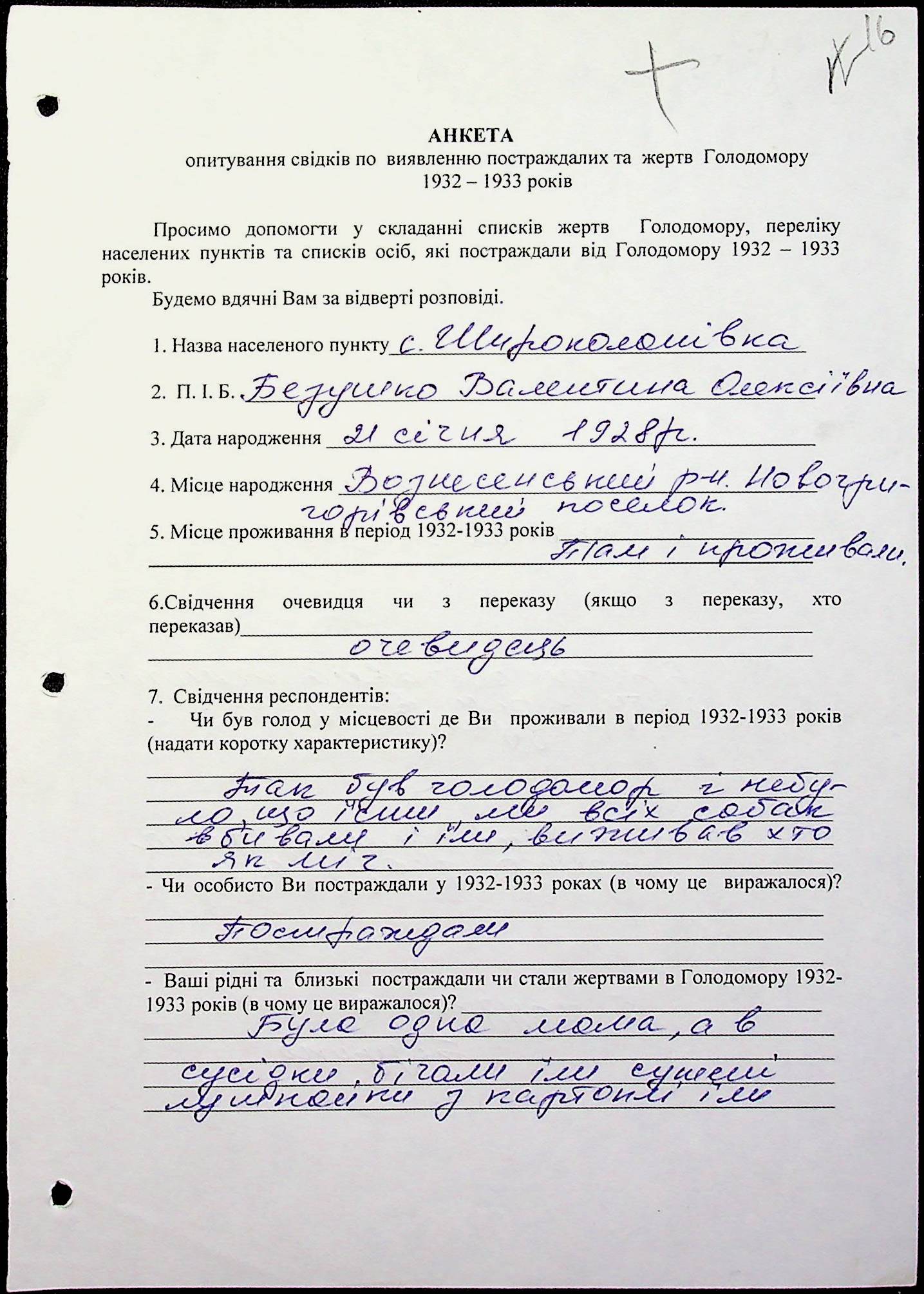 ◦ ◦ Фонд № 6146 “Колекція свідчень очевидців Голодомору 1932-1933 рр., нині проживаючих у Миколаївській області”