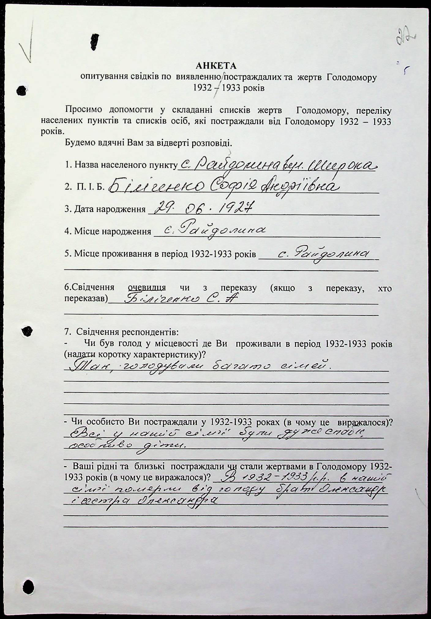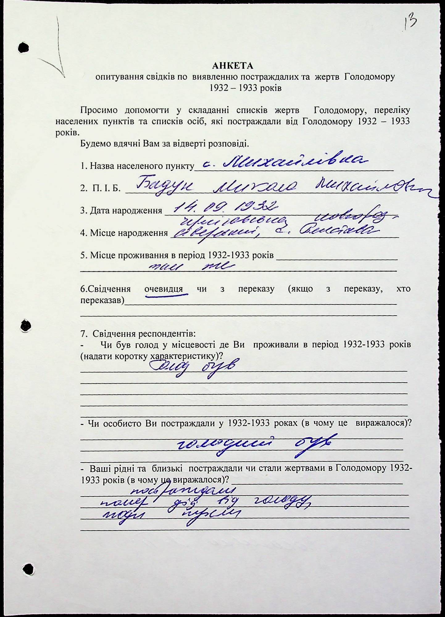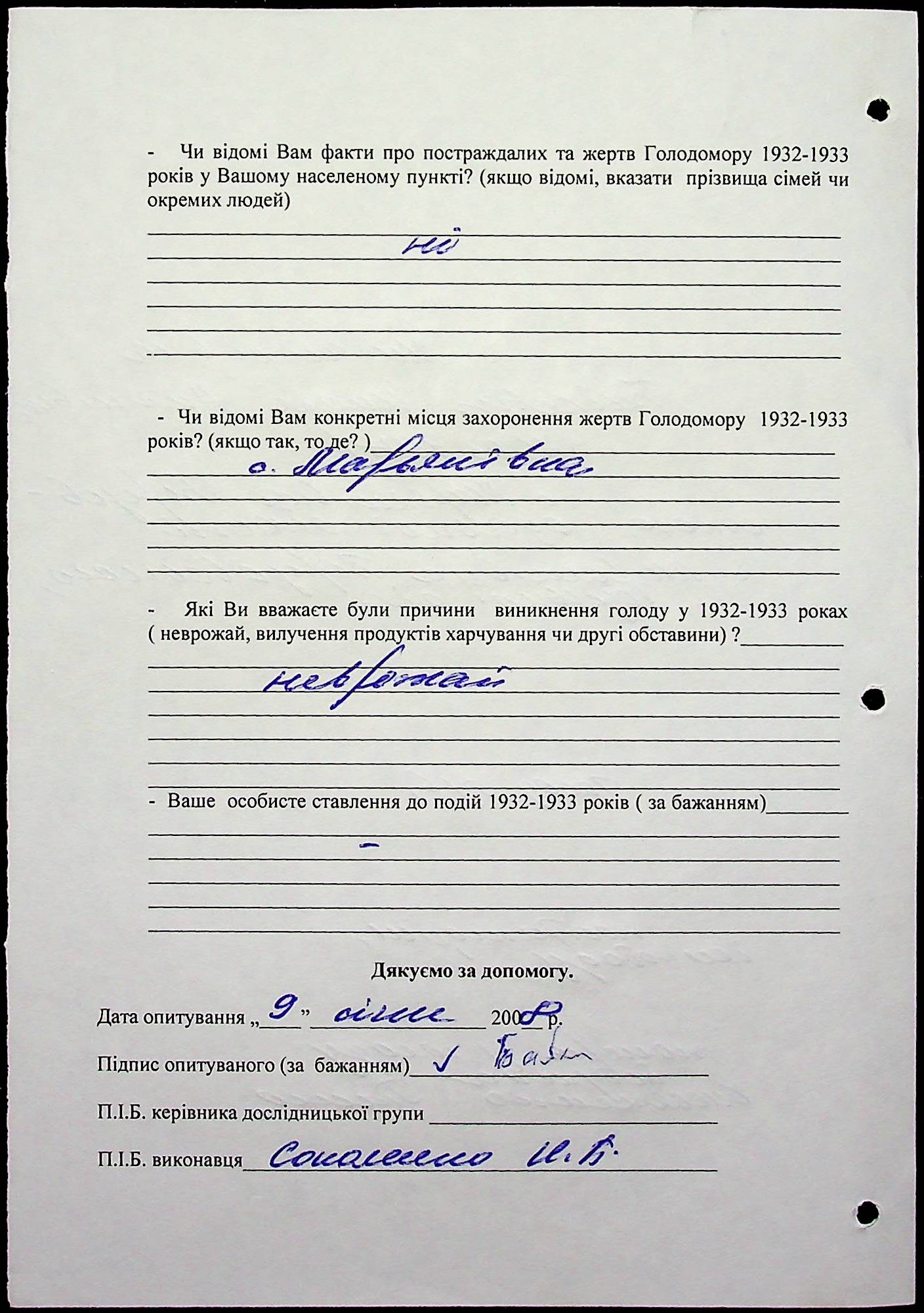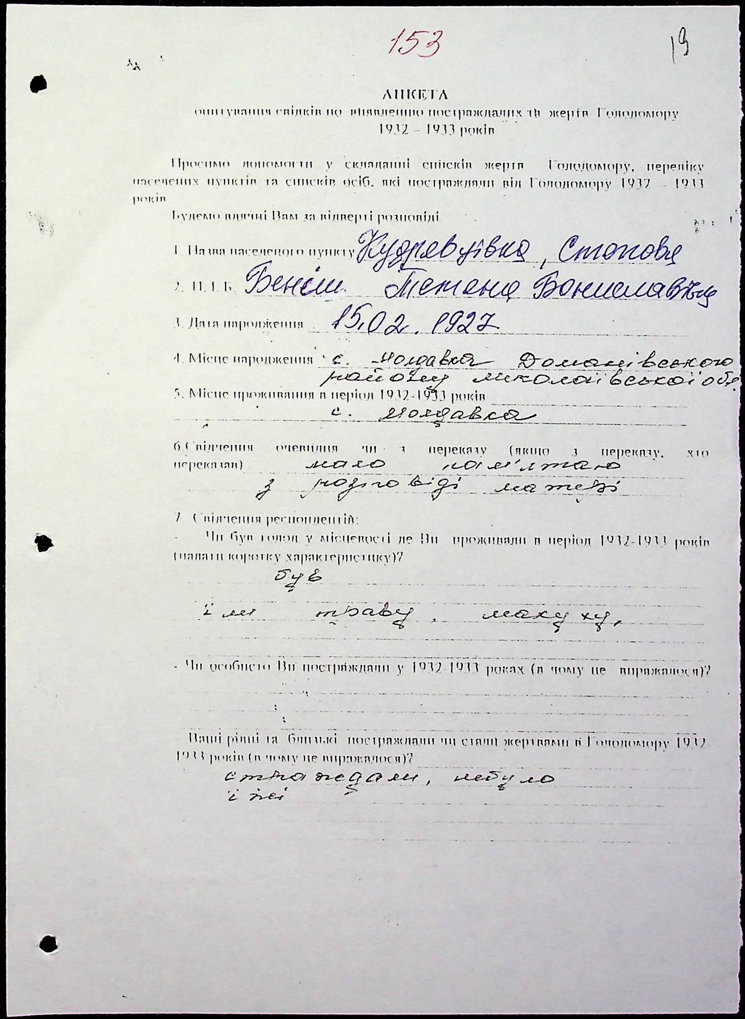 ◦ ◦ Фонд № 6146 “Колекція свідчень очевидців Голодомору 1932-1933 рр., нині проживаючих у Миколаївській області”