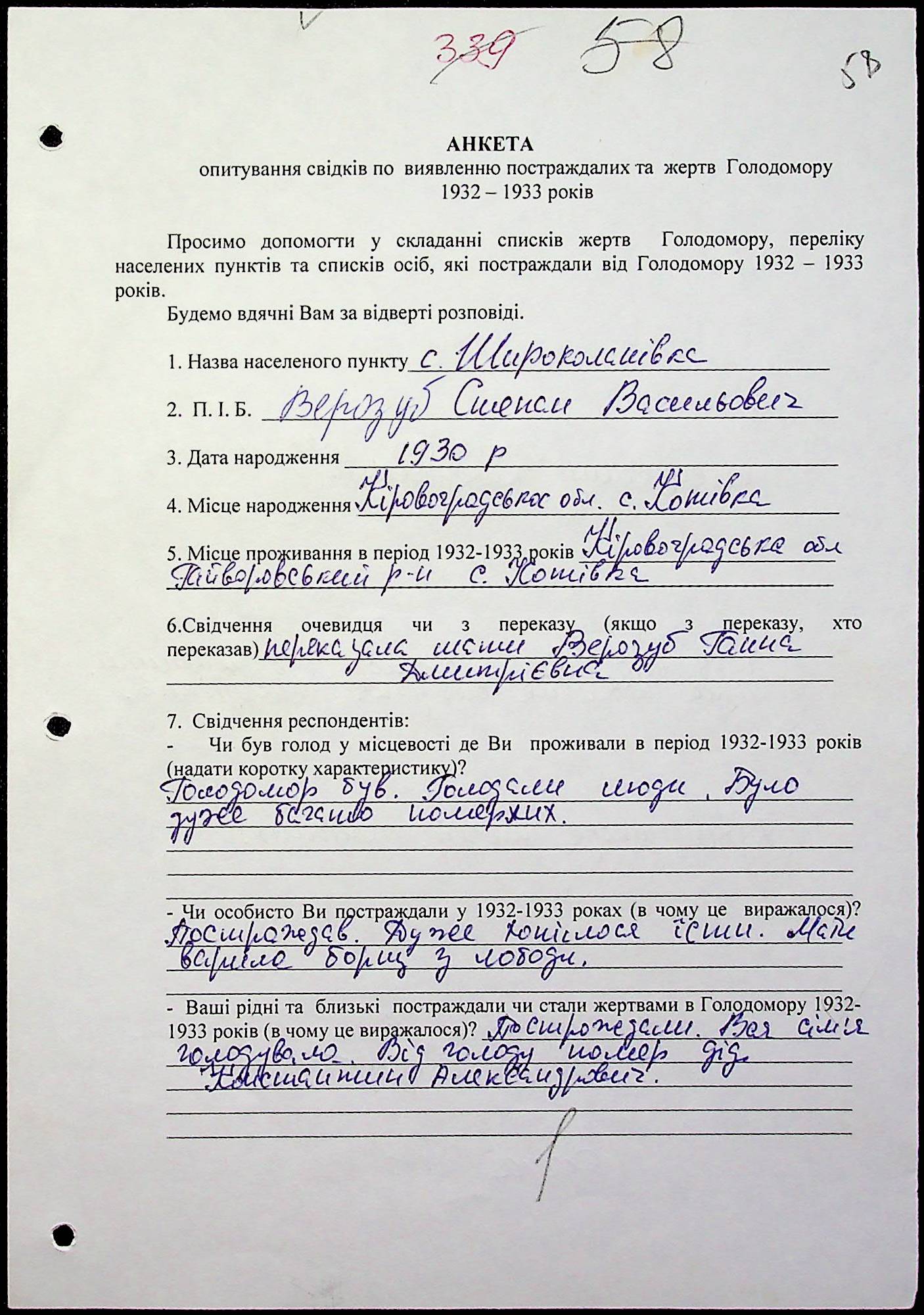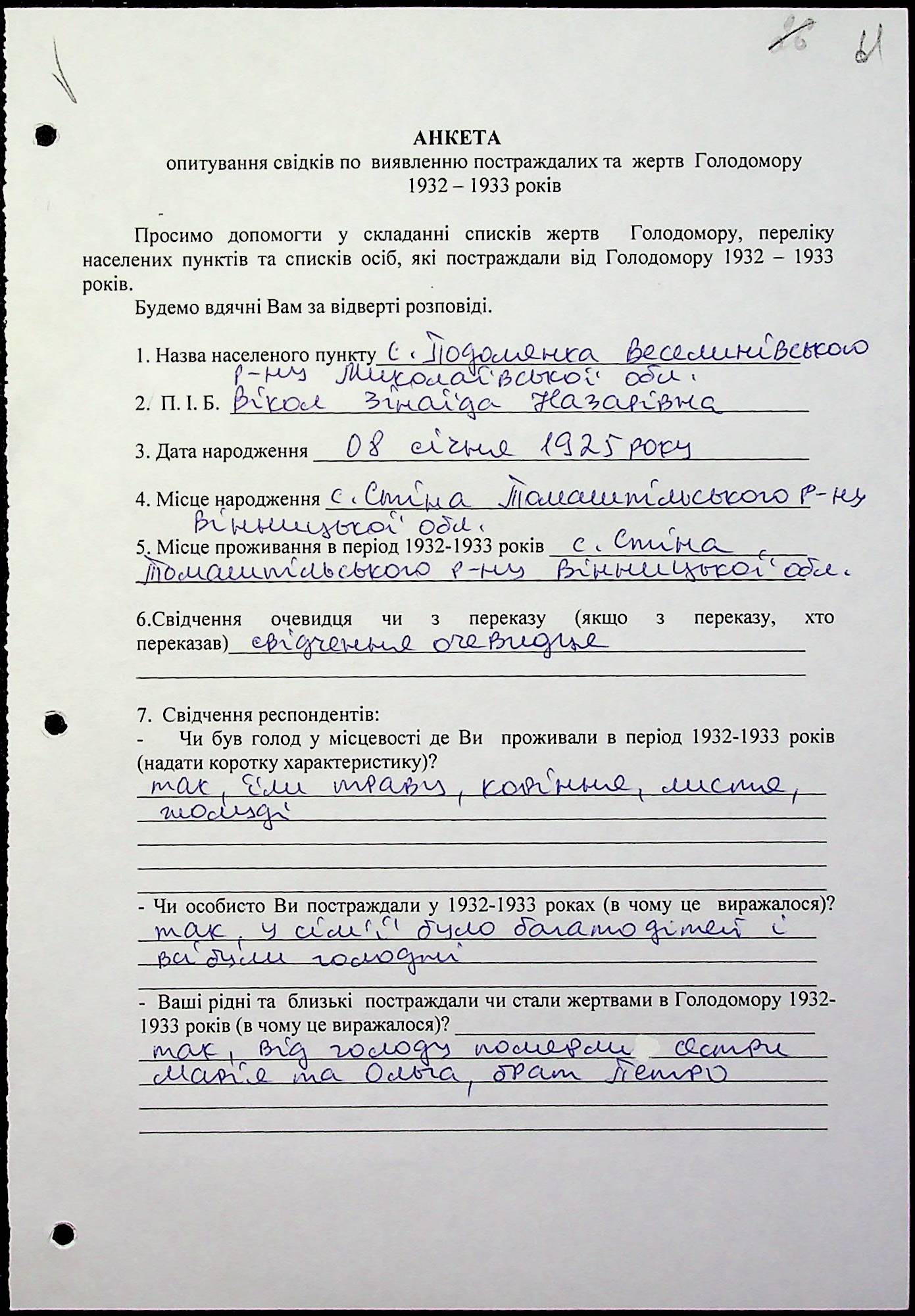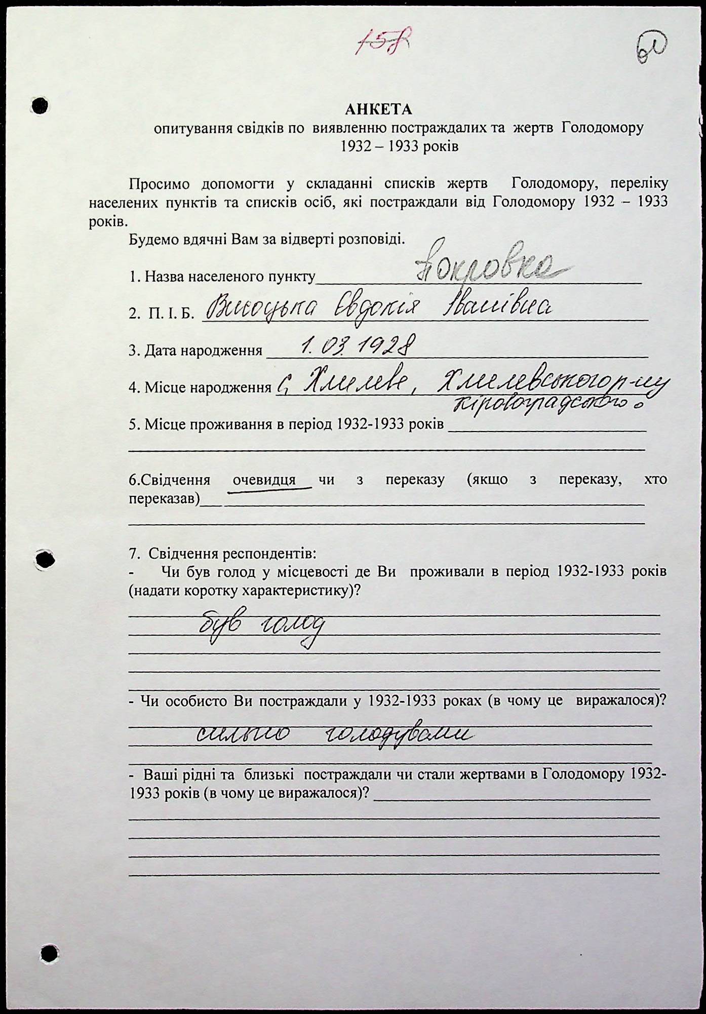 ◦ ◦ Фонд № 6146 “Колекція свідчень очевидців Голодомору 1932-1933 рр., нині проживаючих у Миколаївській області”