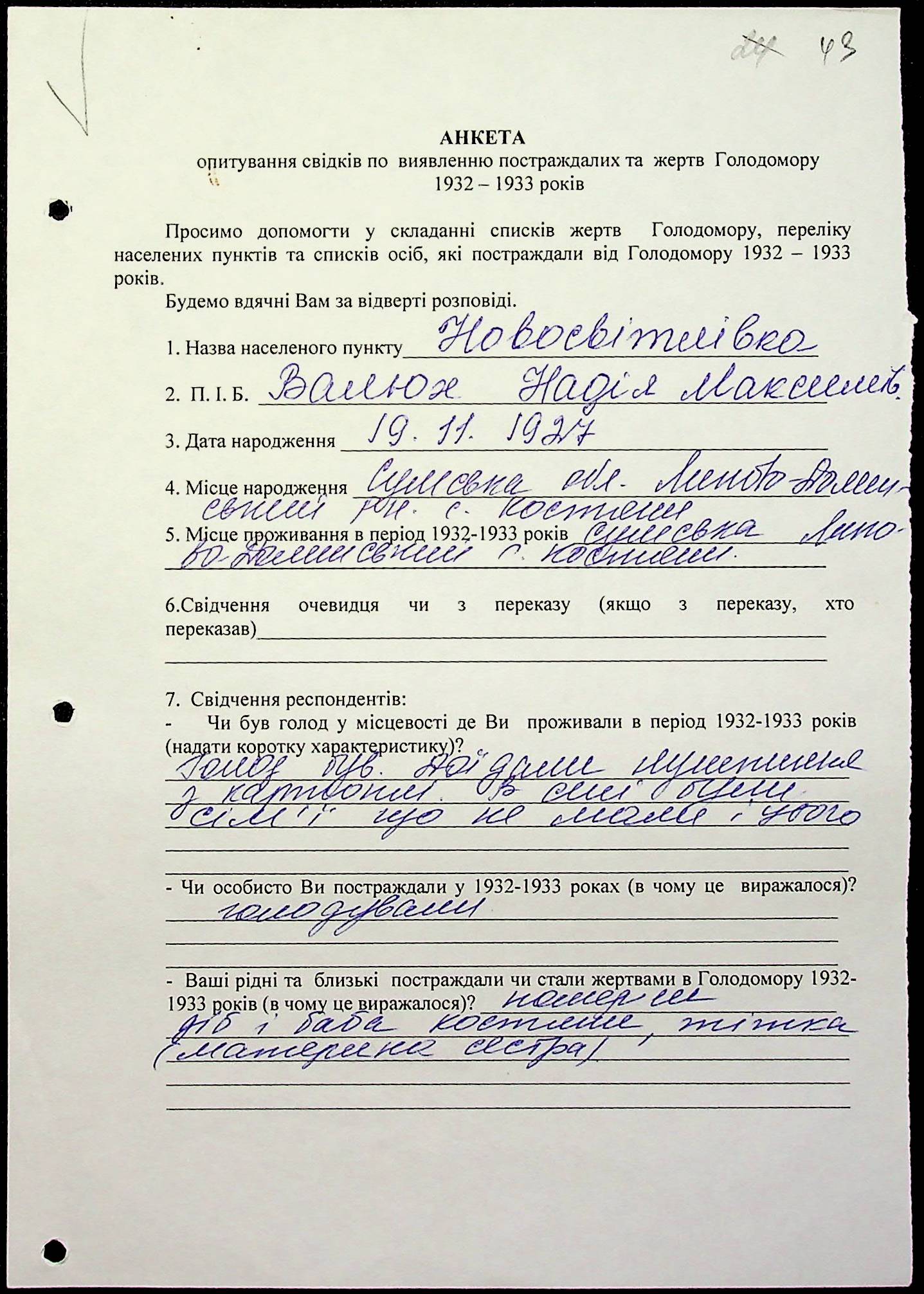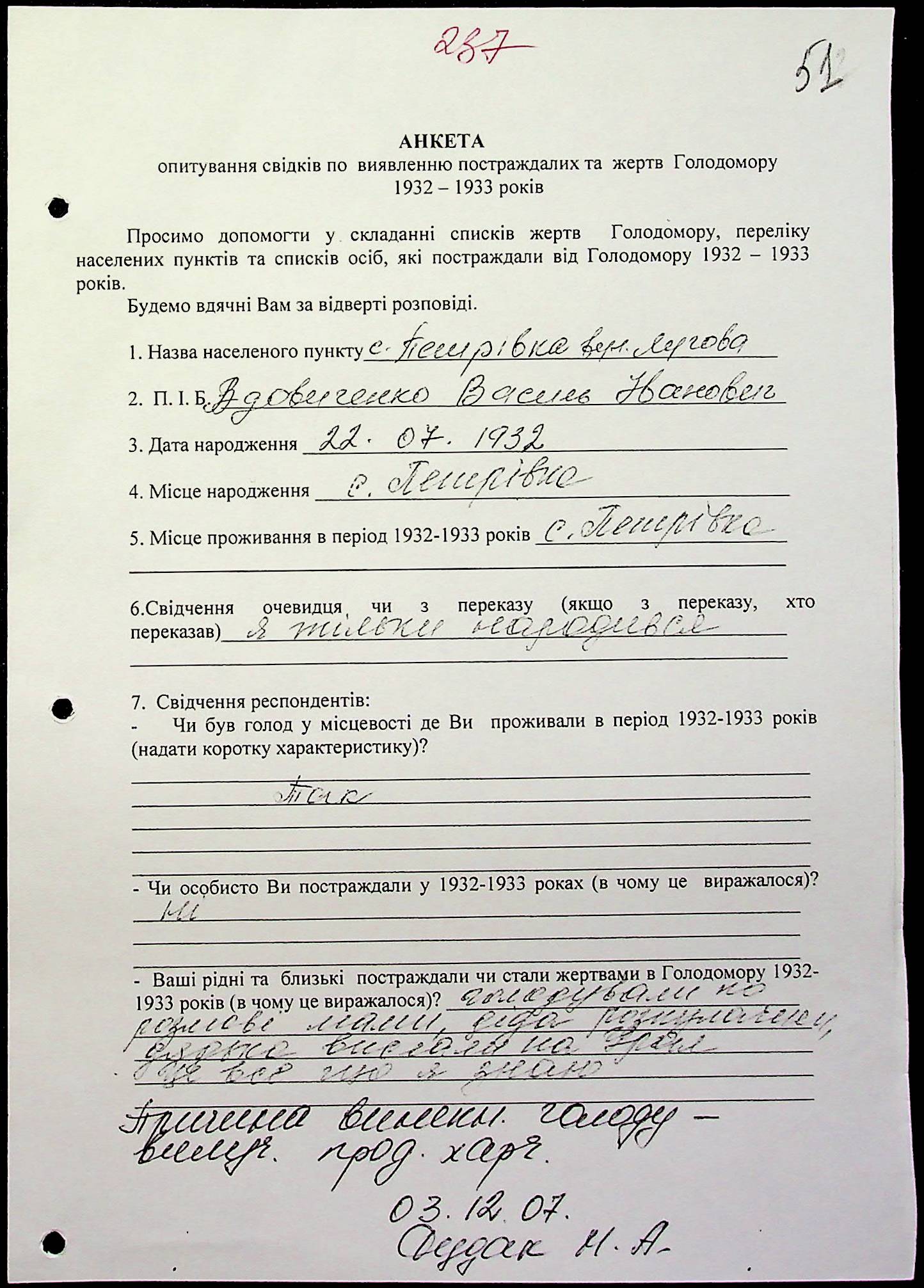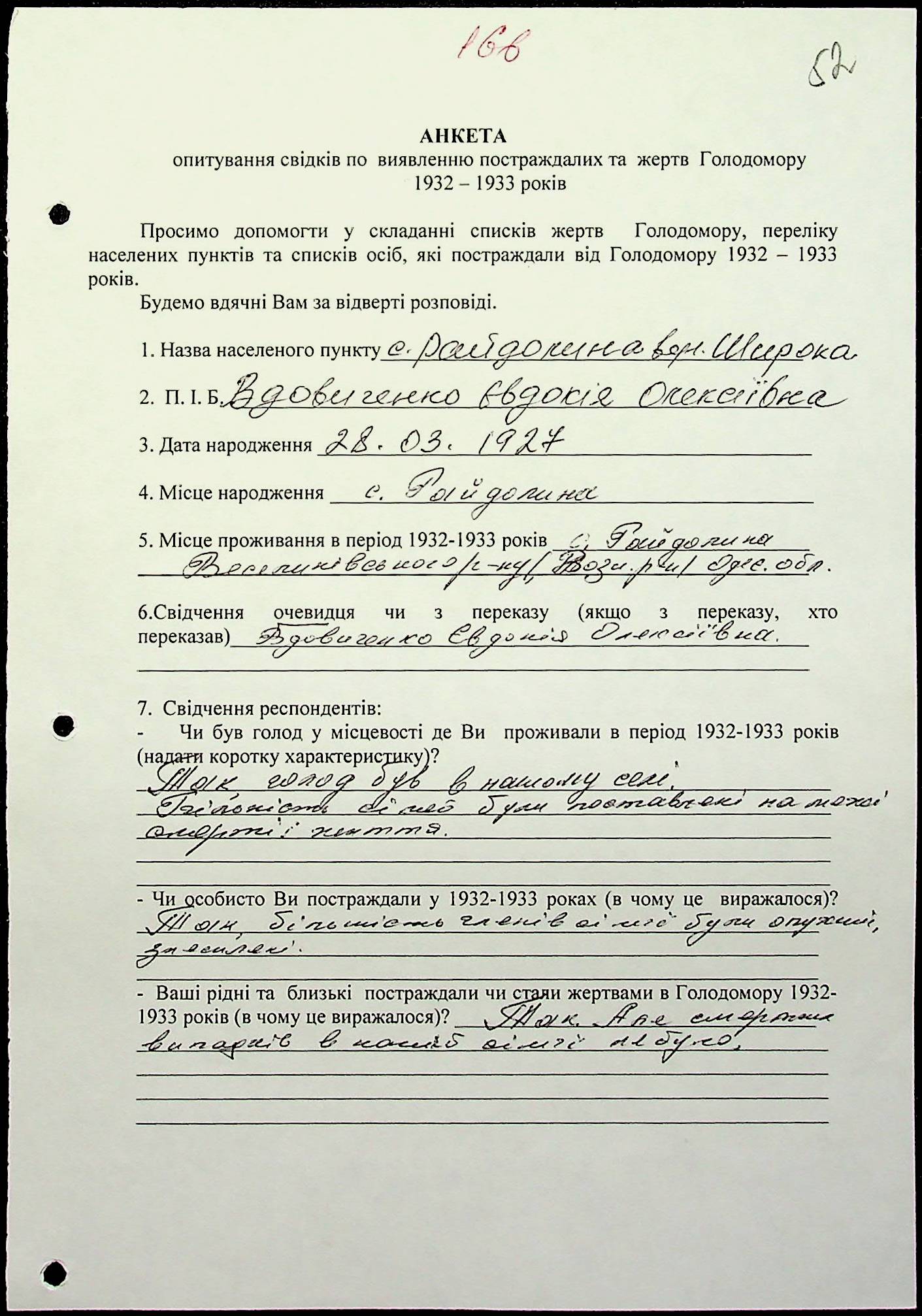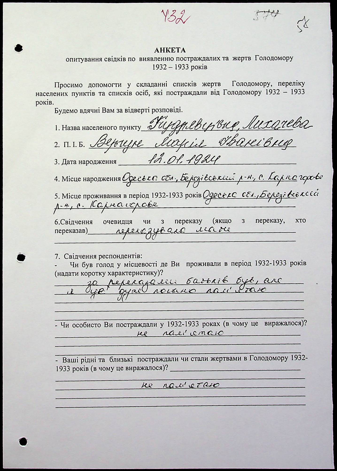 ◦ ◦ Фонд № 6146 “Колекція свідчень очевидців Голодомору 1932-1933 рр., нині проживаючих у Миколаївській області”