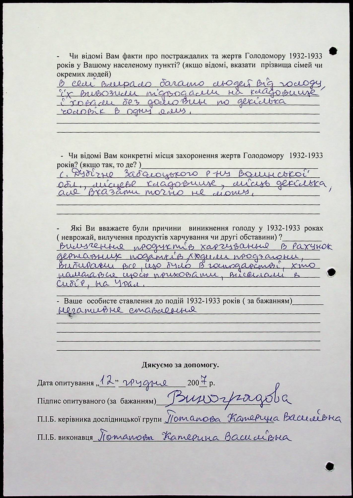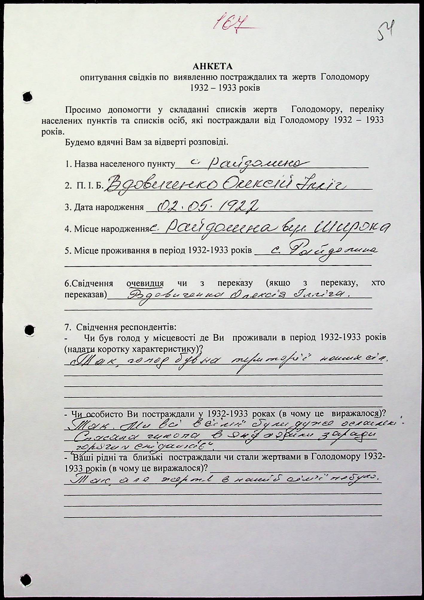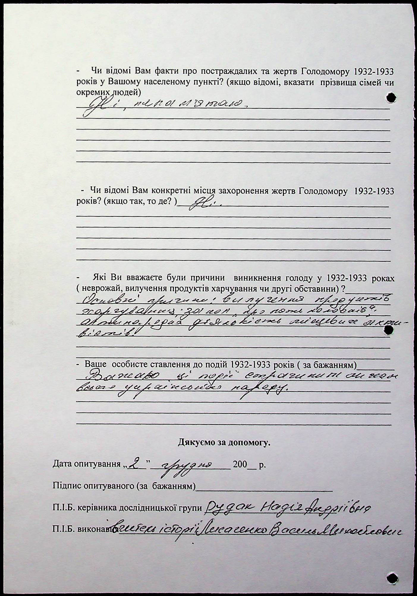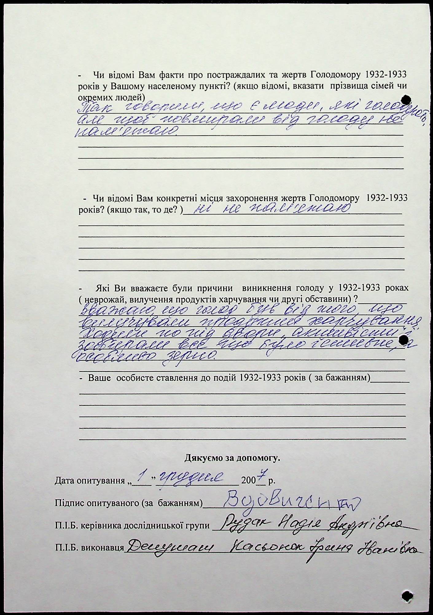 • • • • Справа № 20 “Свідчення очевидців Голодомору 1932-1933 років, які проживають у Веселинівському районі, з прізвищами на літери А–К”