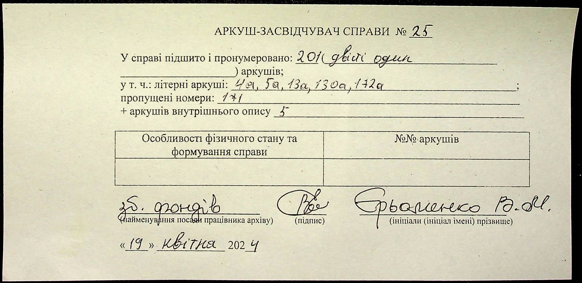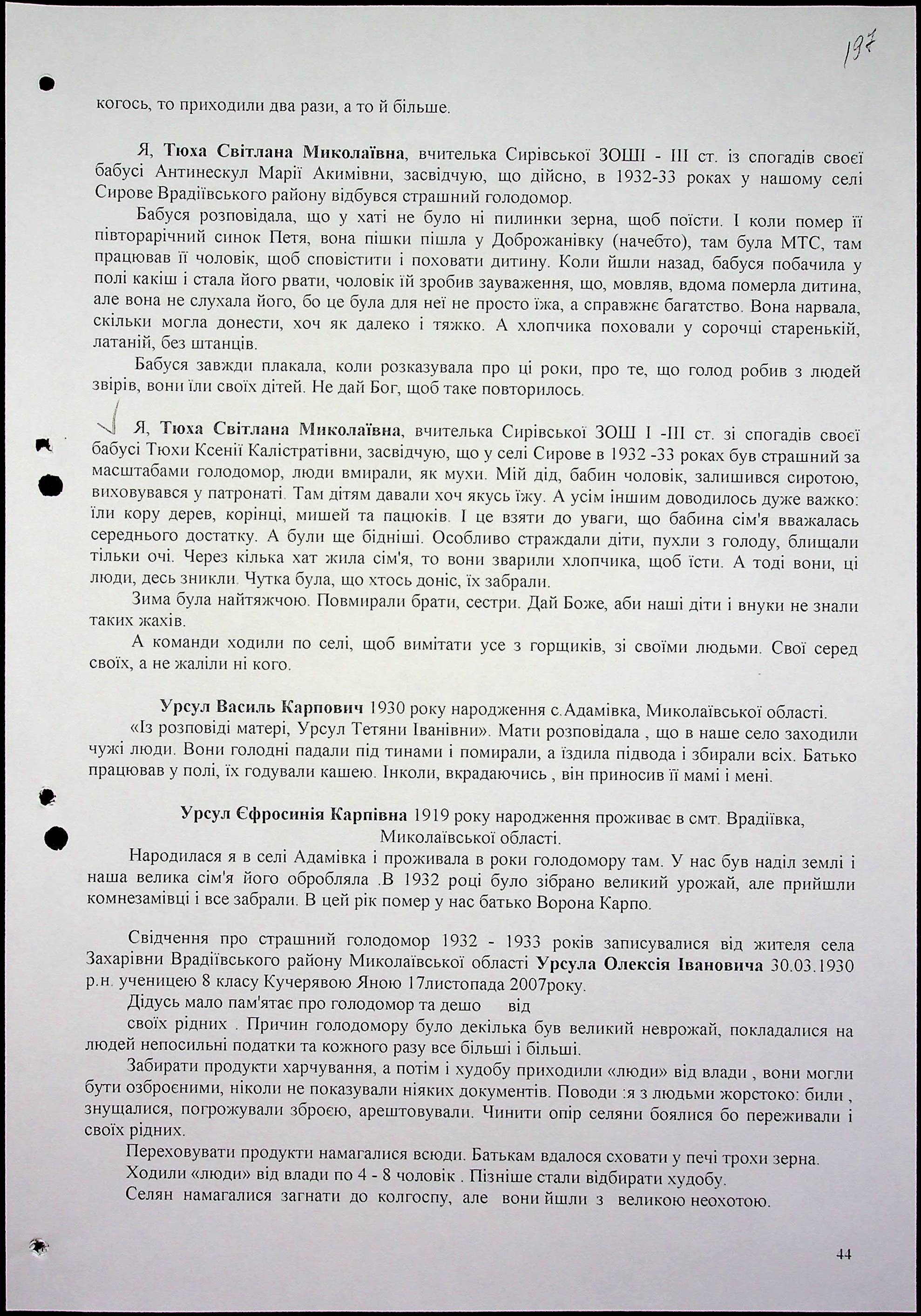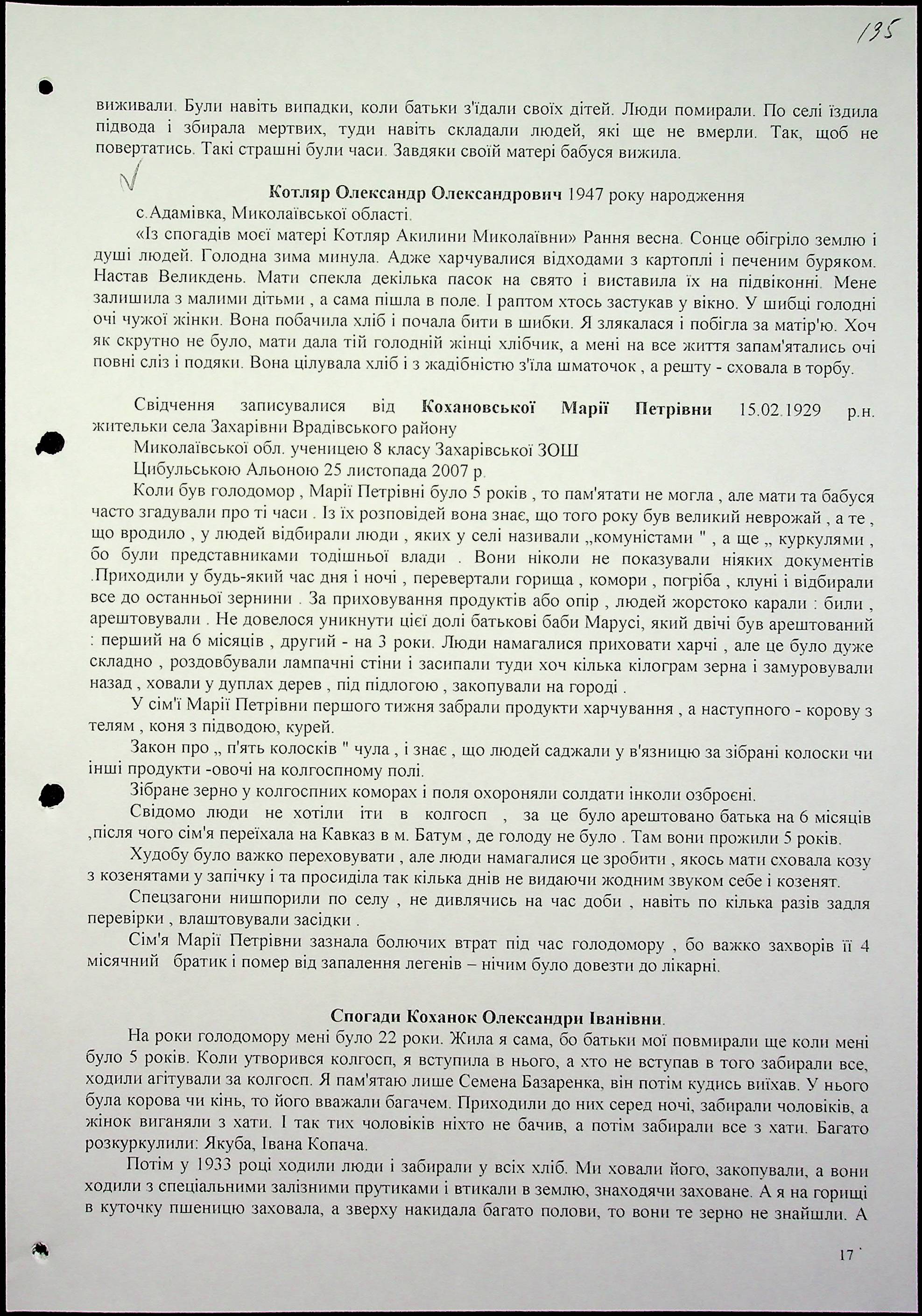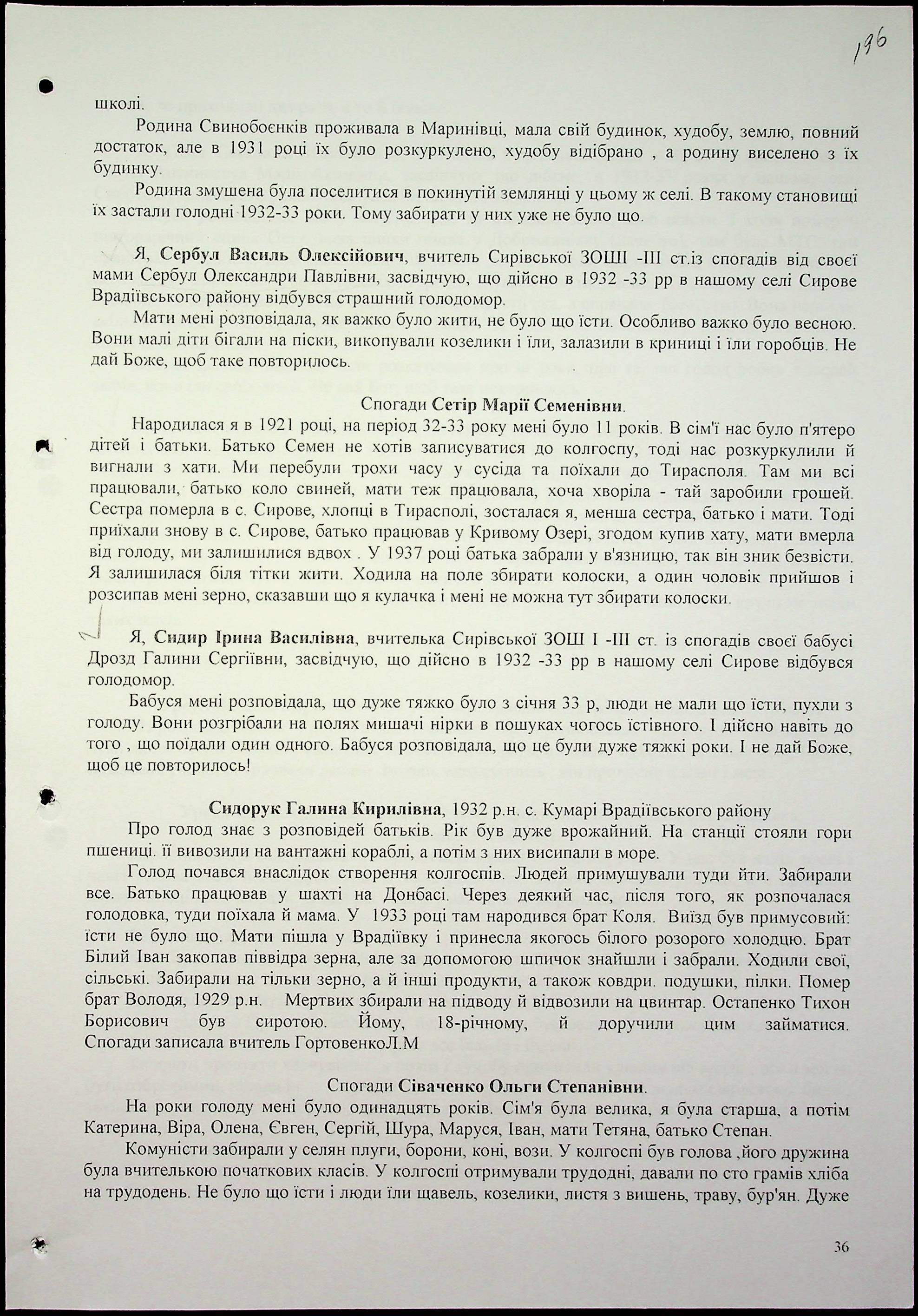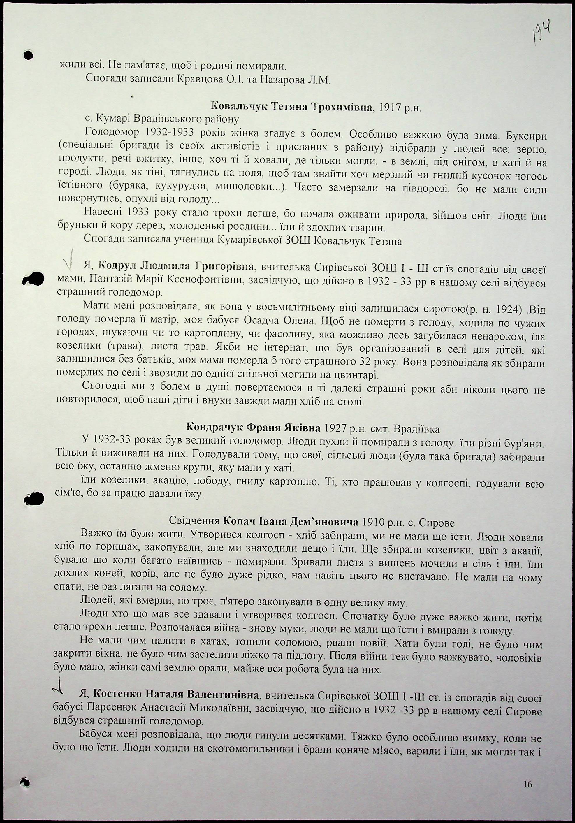 • • • • Справа № 25 “Свідчення очевидців Голодомору 1932-1933 років, які проживають у Врадіївському районі, з прізвищами на літери А–Ш”