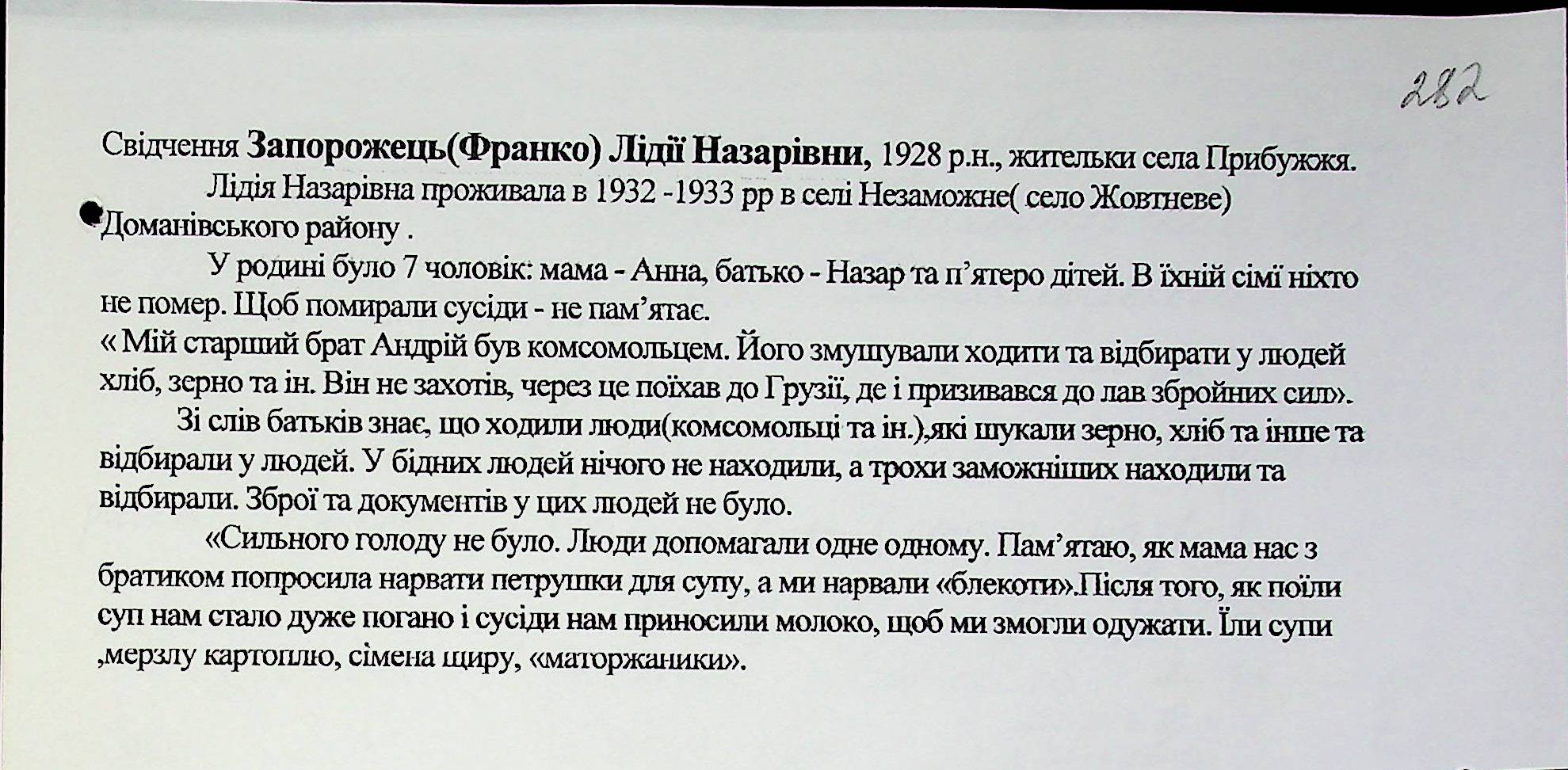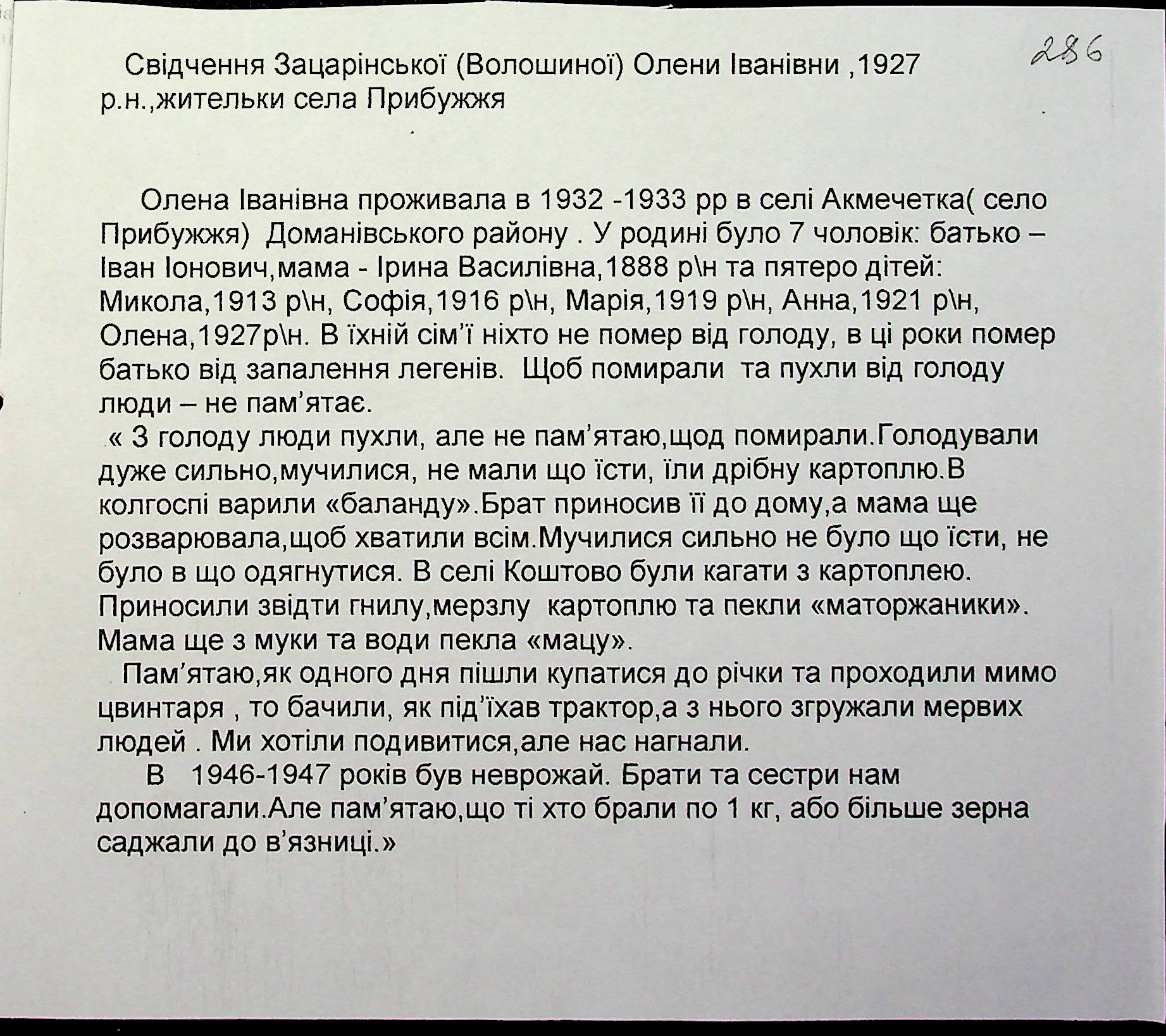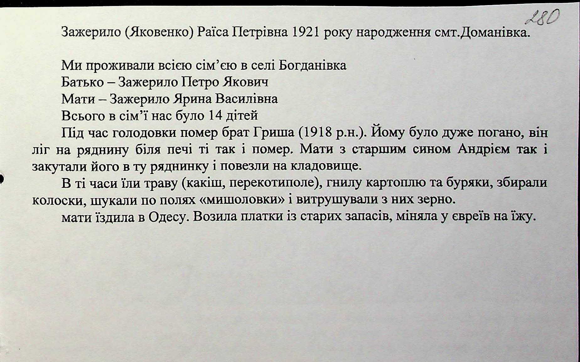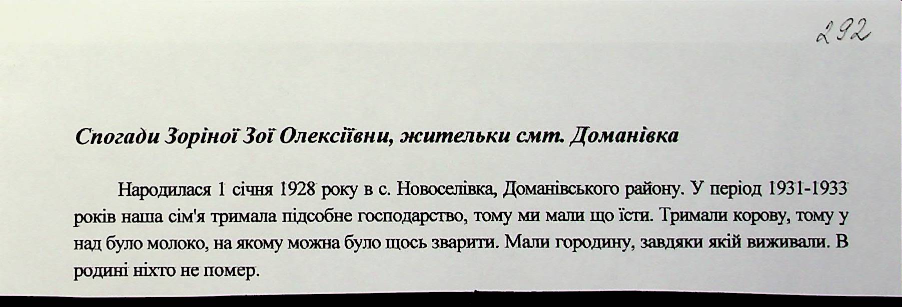 • • • • Справа № 26 “Свідчення очевидців Голодомору 1932-1933 років, які проживають у Доманівському районі, з прізвищами на літери А–І”
