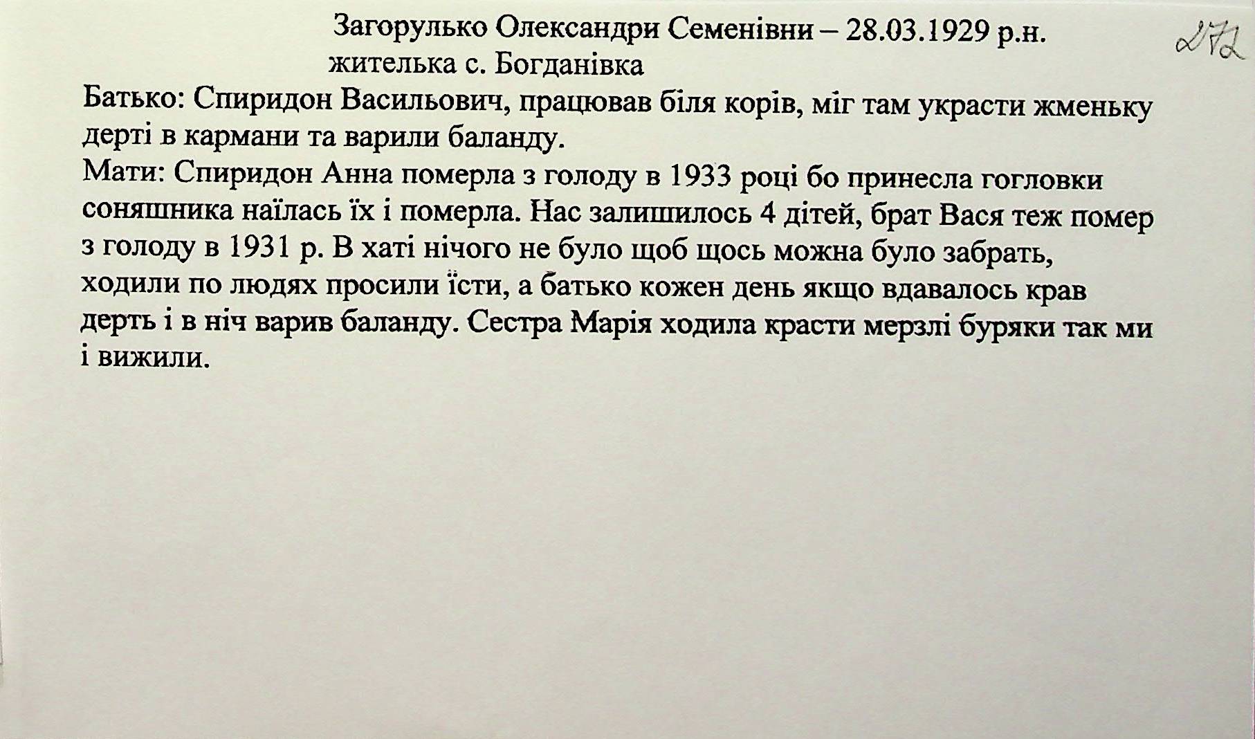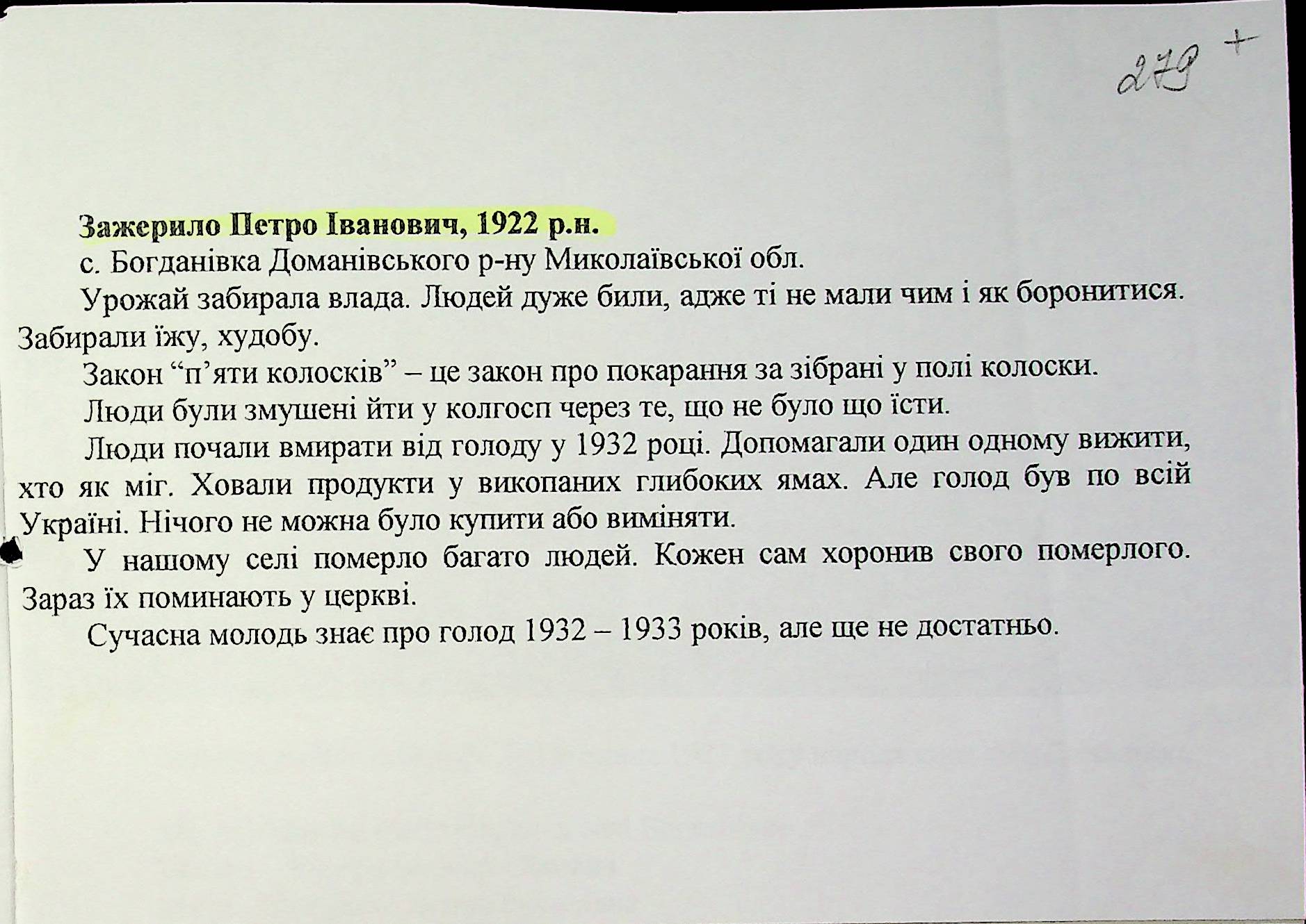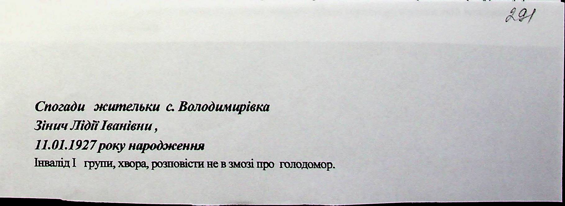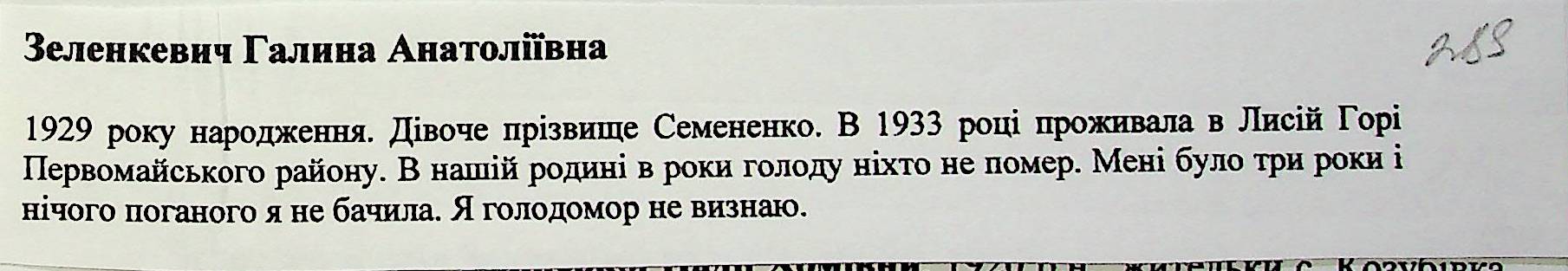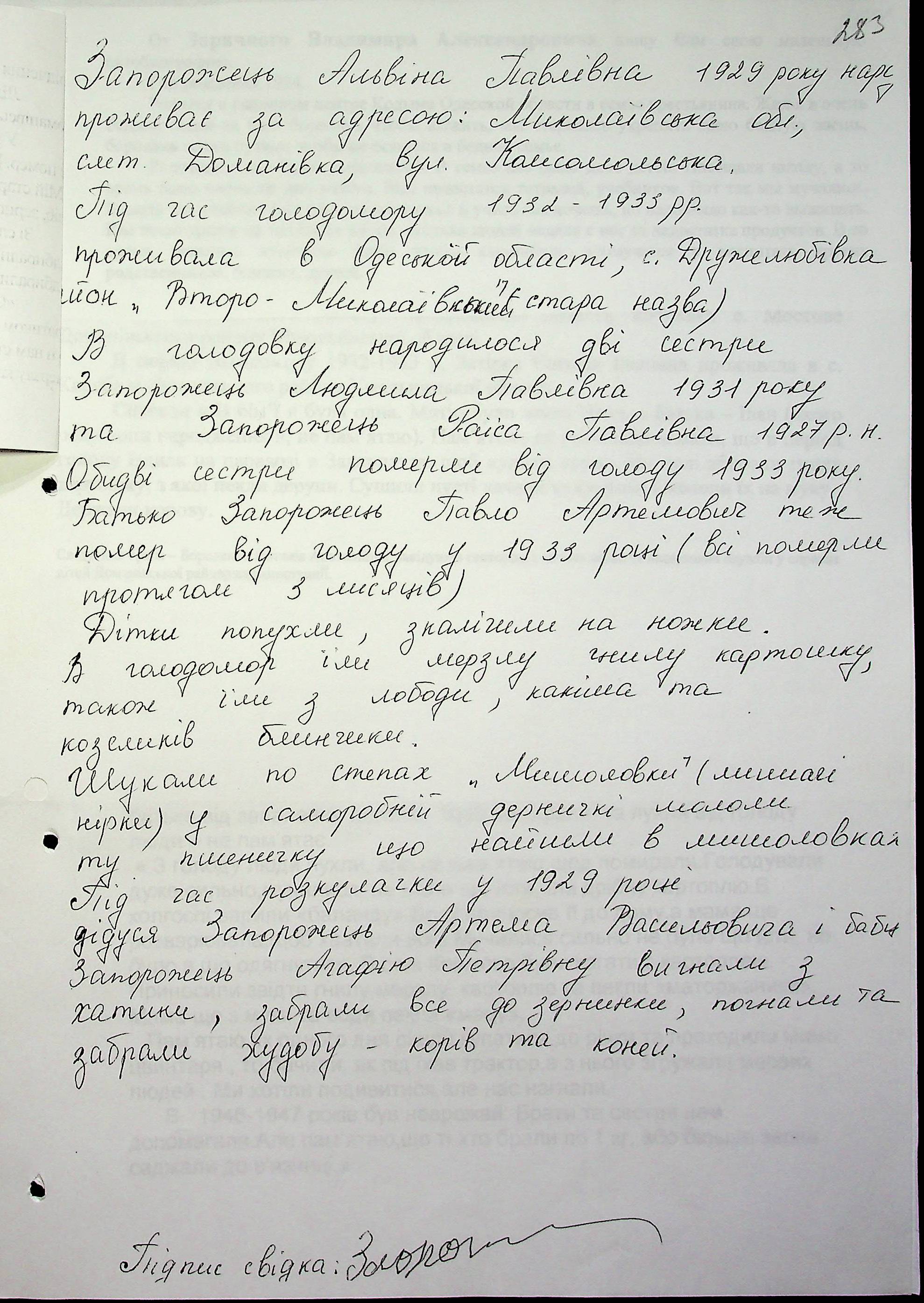 • • • • Справа № 26 “Свідчення очевидців Голодомору 1932-1933 років, які проживають у Доманівському районі, з прізвищами на літери А–І”