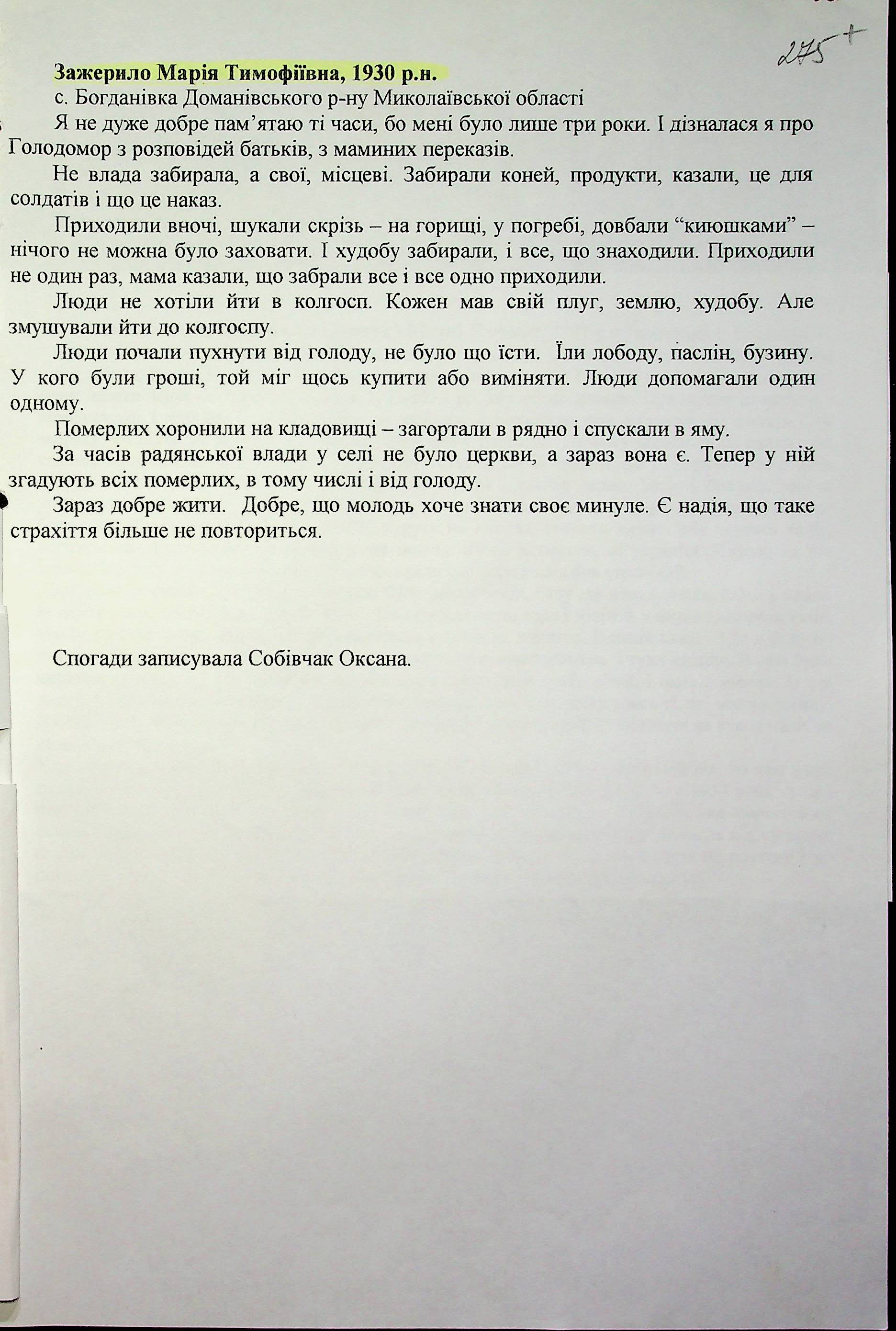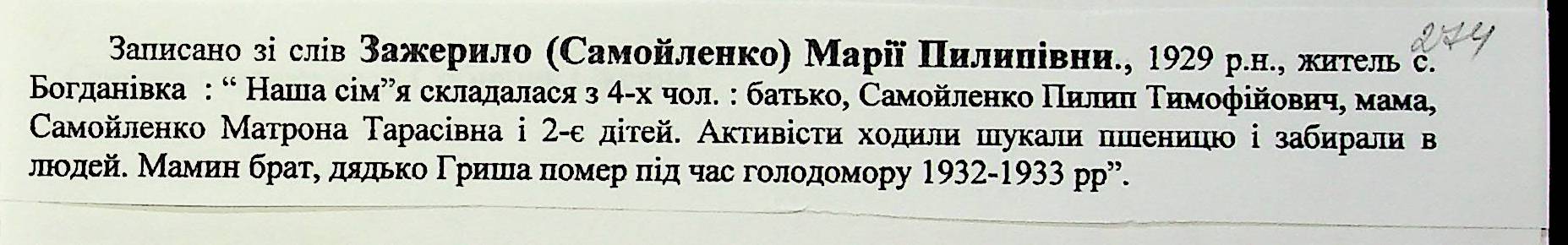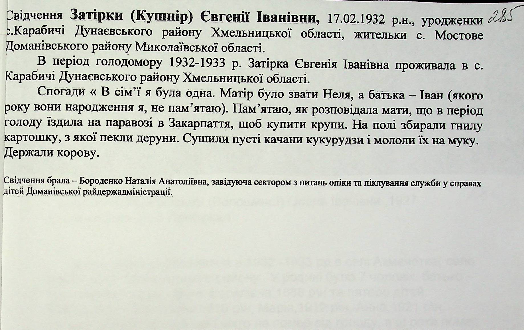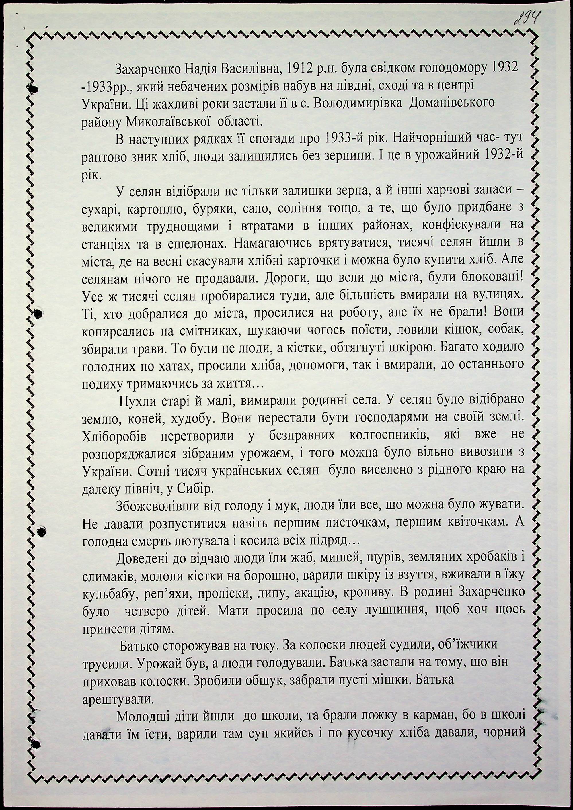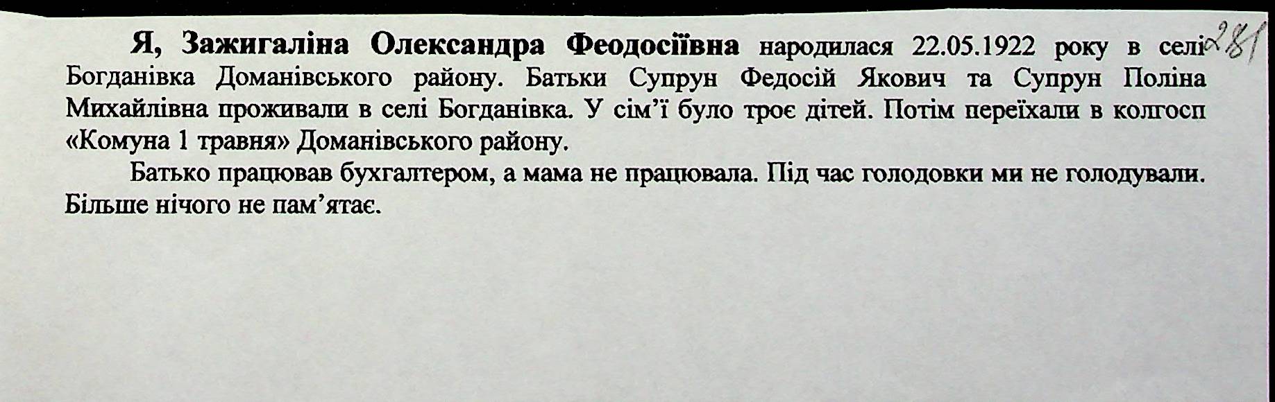 • • • • Справа № 26 “Свідчення очевидців Голодомору 1932-1933 років, які проживають у Доманівському районі, з прізвищами на літери А–І”
