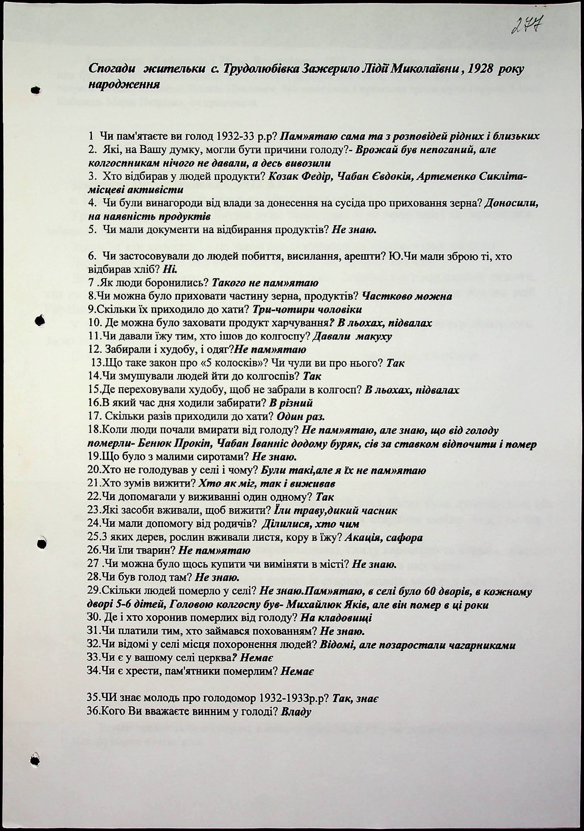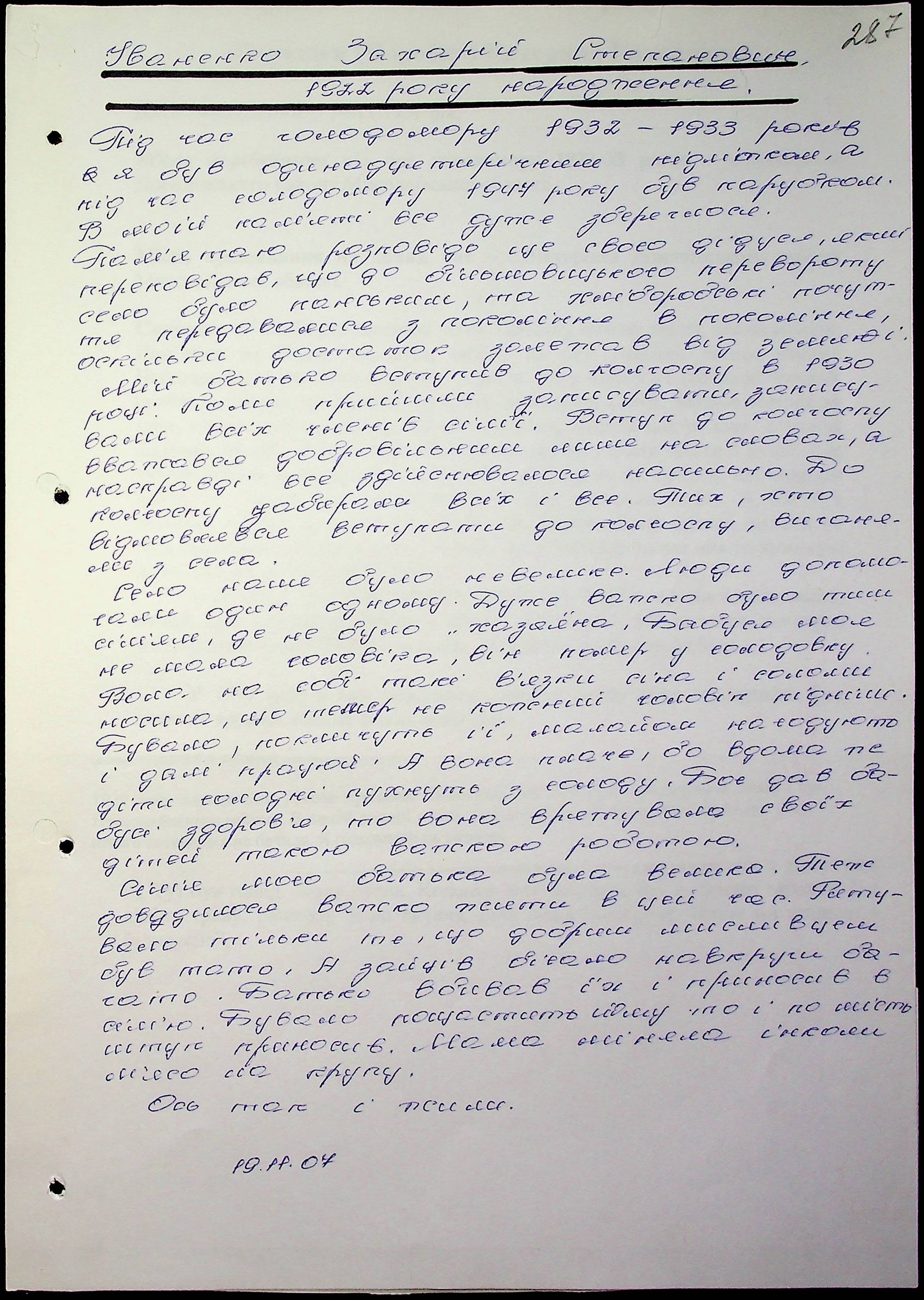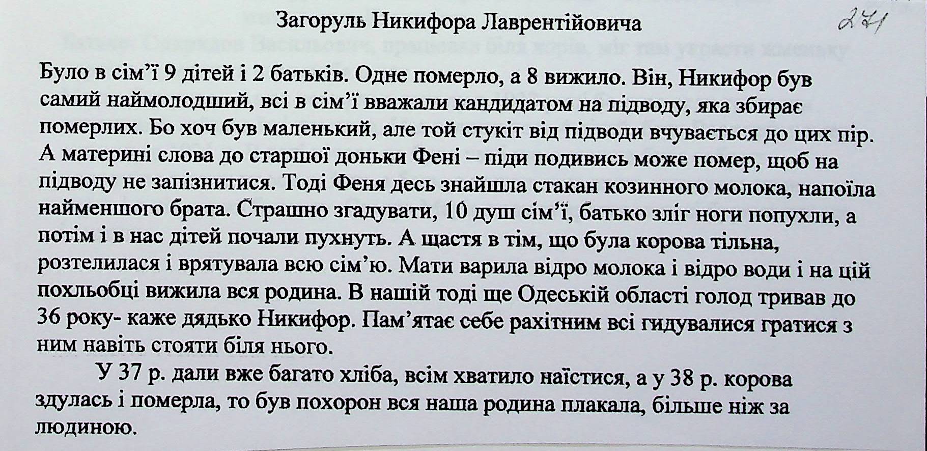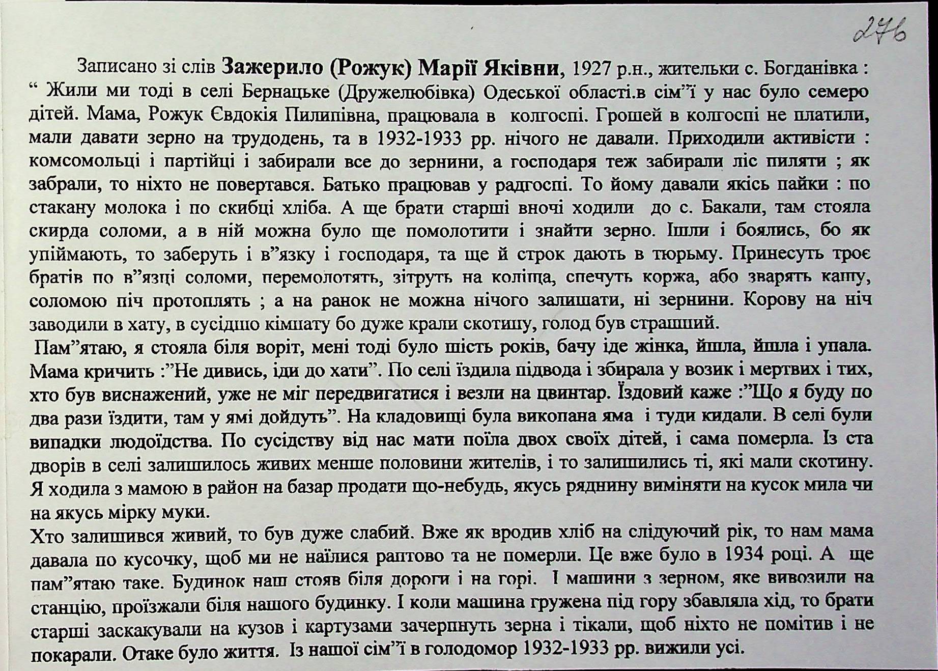 • • • • Справа № 26 “Свідчення очевидців Голодомору 1932-1933 років, які проживають у Доманівському районі, з прізвищами на літери А–І”