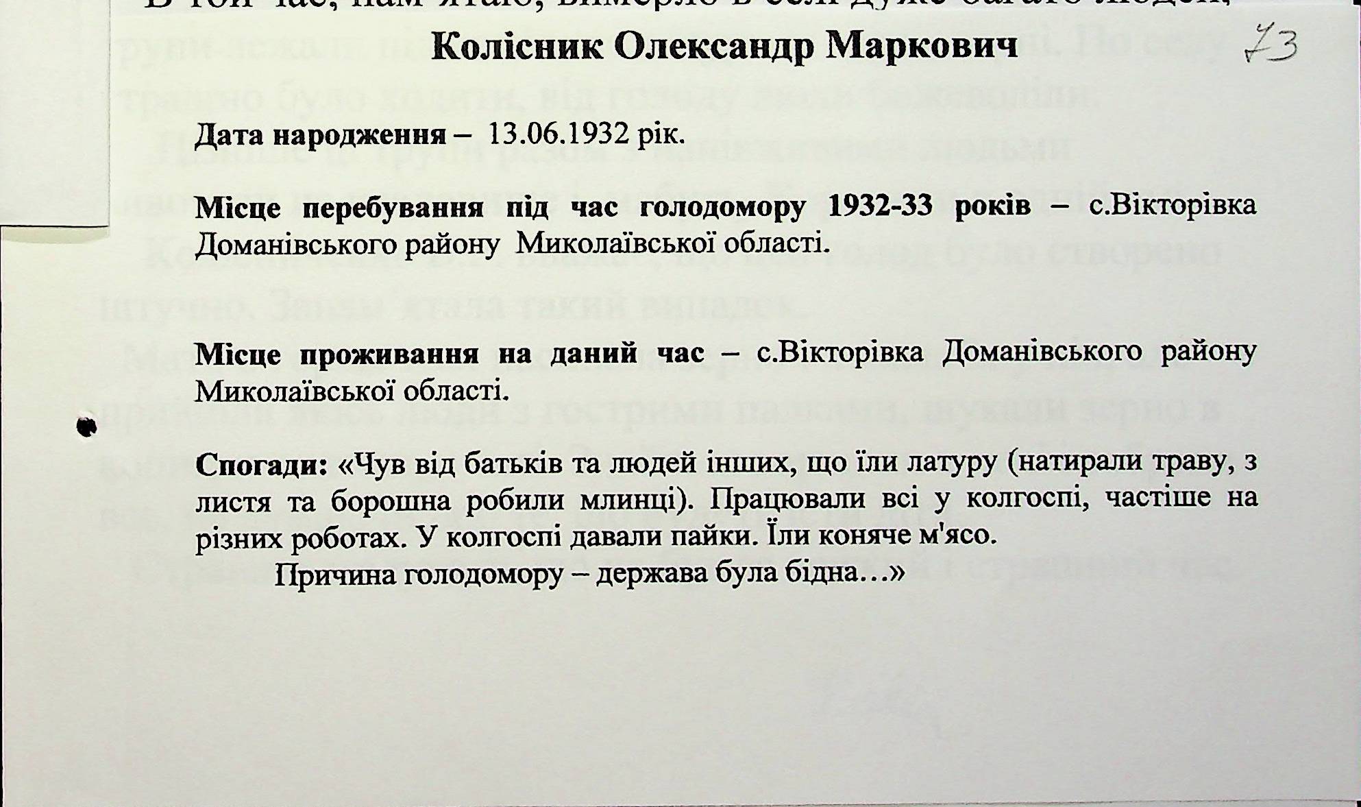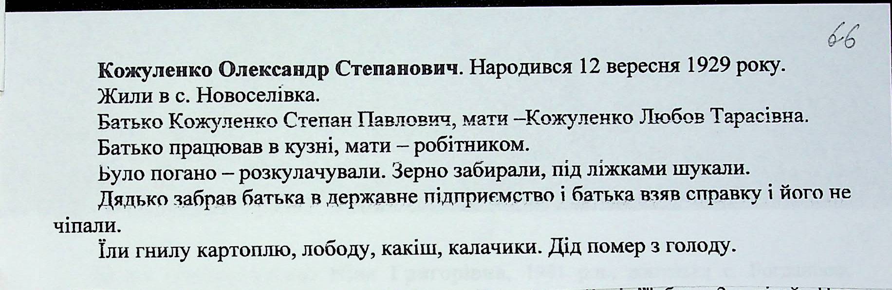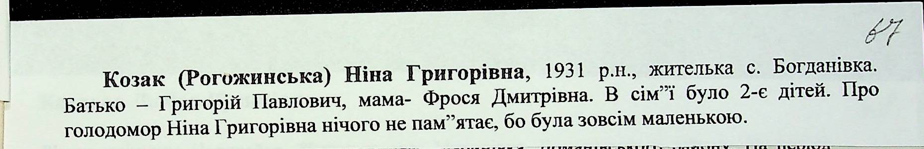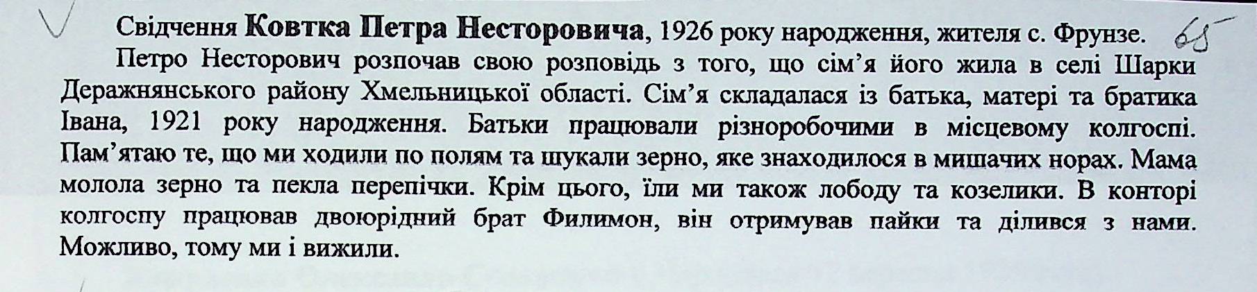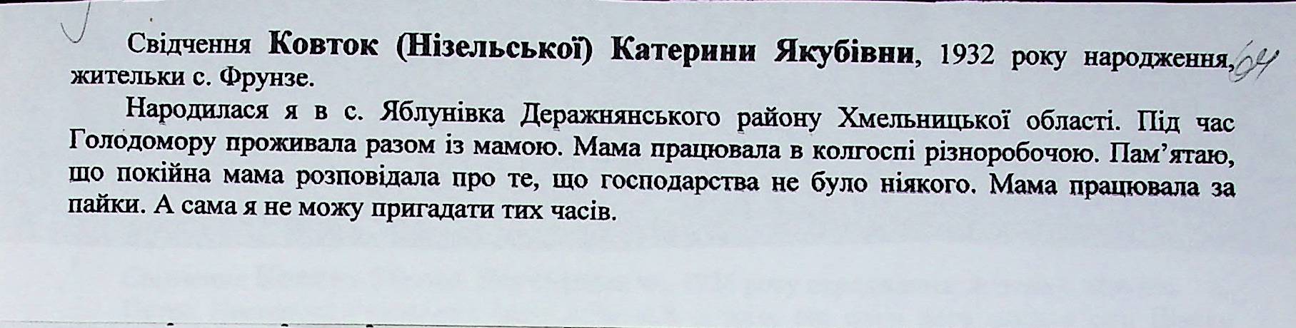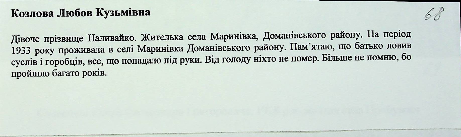 • • • • Справа № 27 “Свідчення очевидців Голодомору 1932-1933 років, які проживають у Доманівському районі, з прізвищами на літери К–Н”