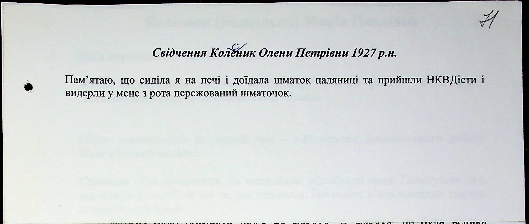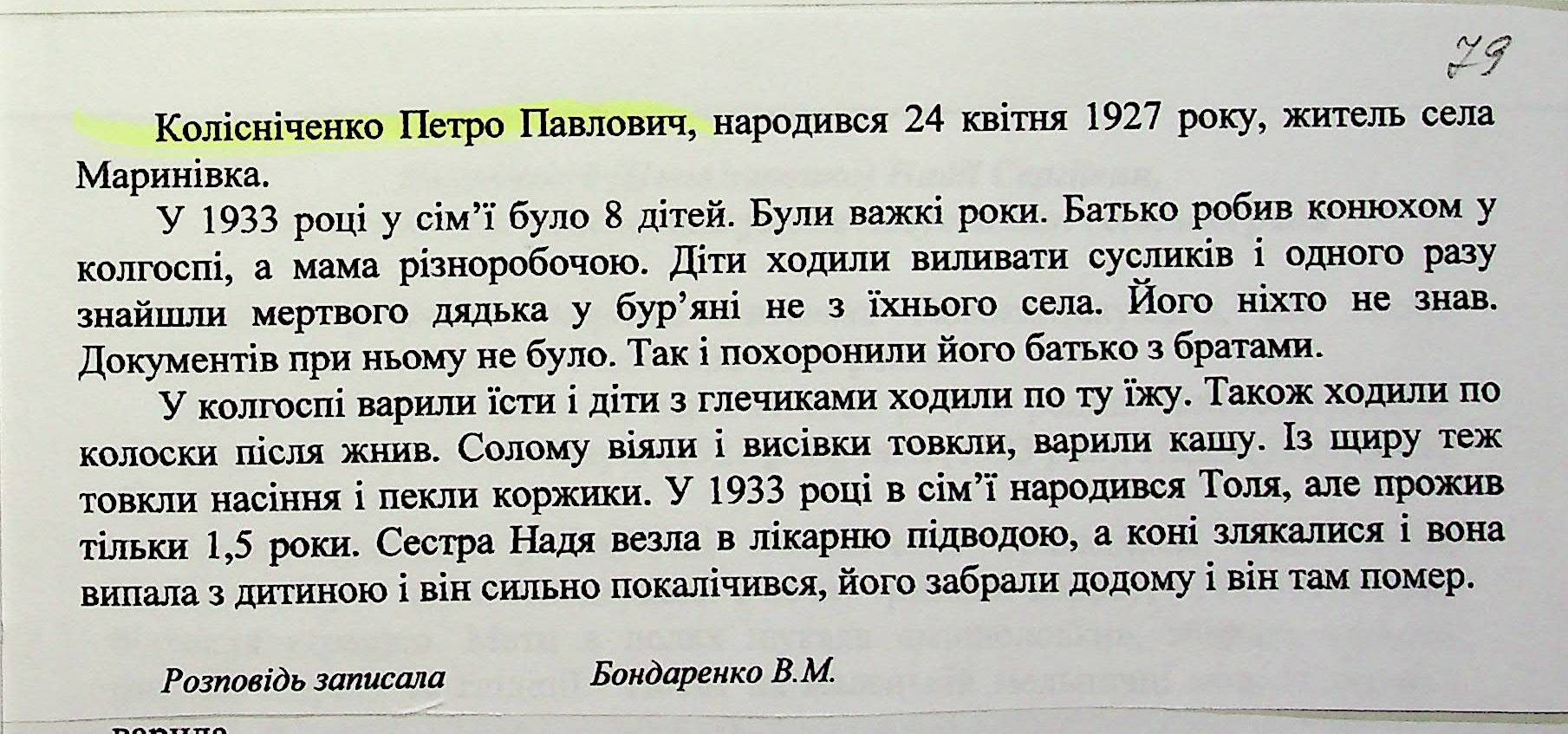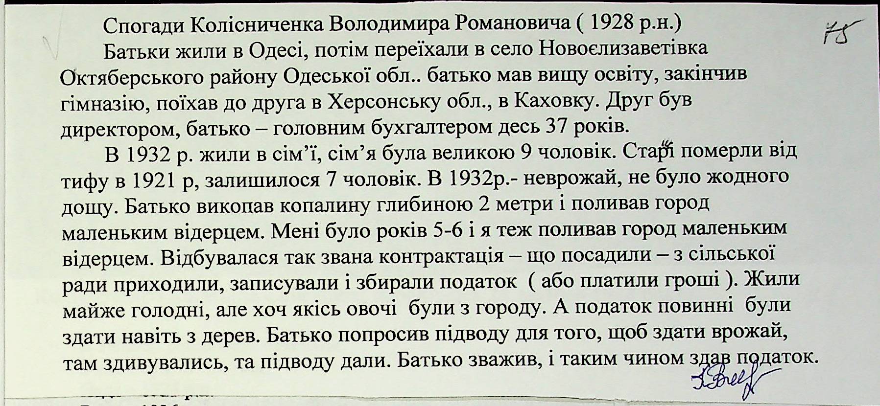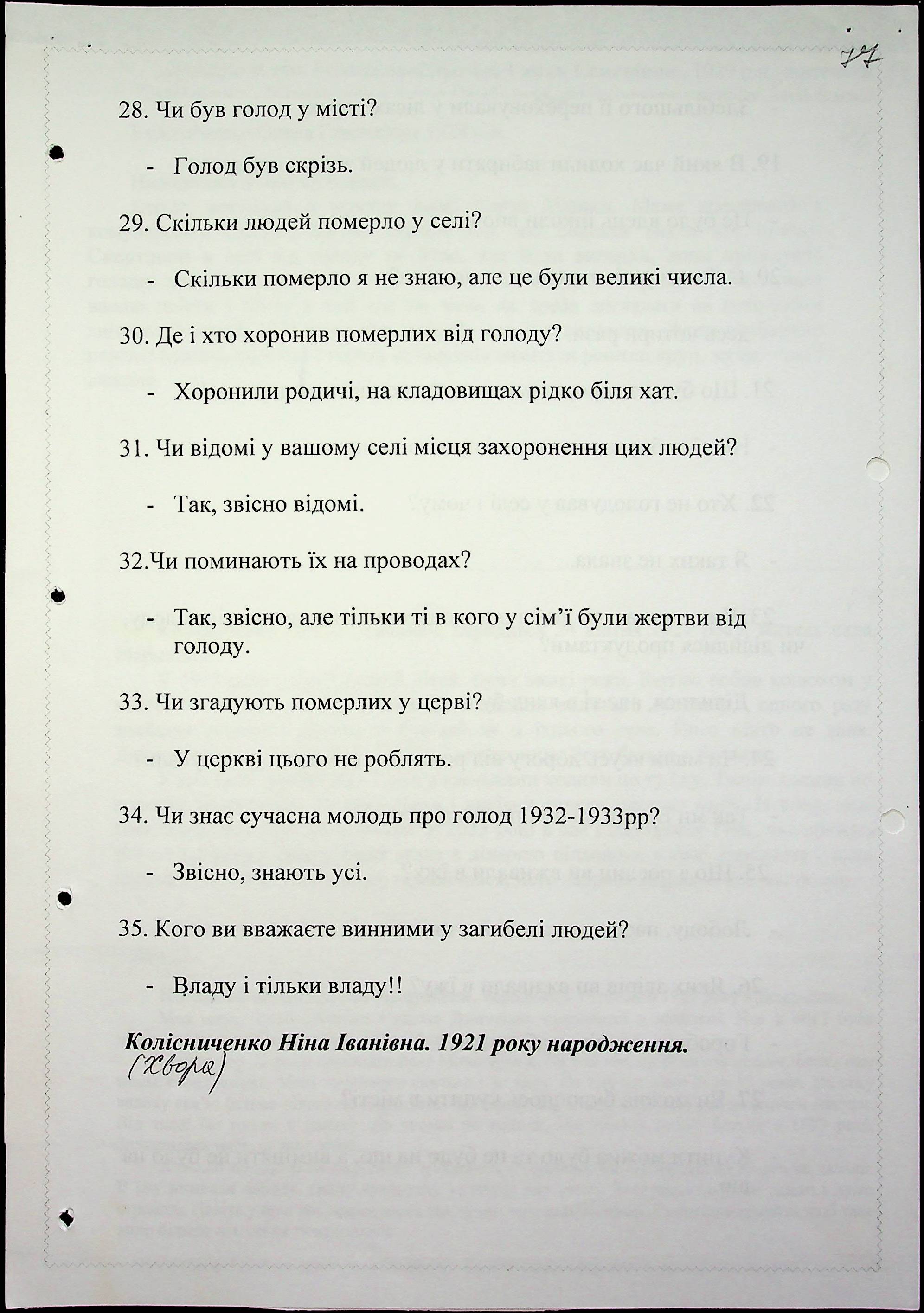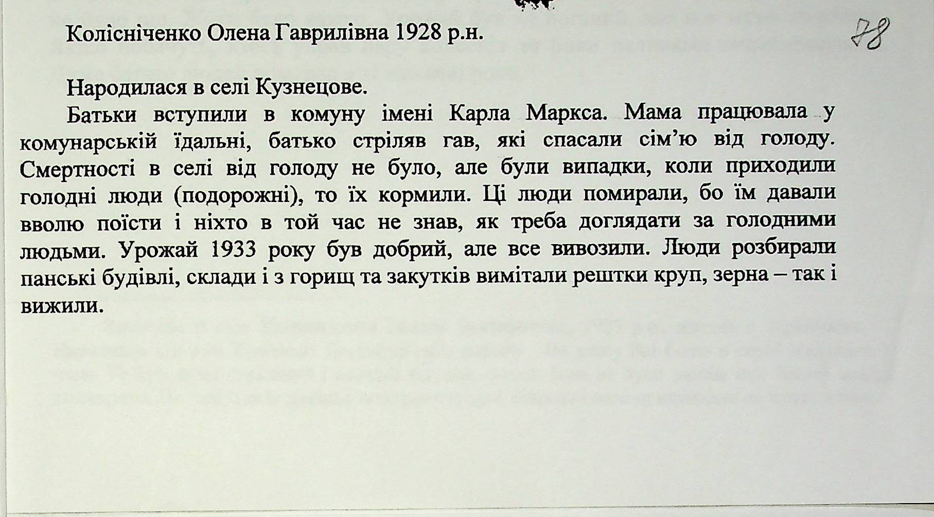 • • • • Справа № 27 “Свідчення очевидців Голодомору 1932-1933 років, які проживають у Доманівському районі, з прізвищами на літери К–Н”