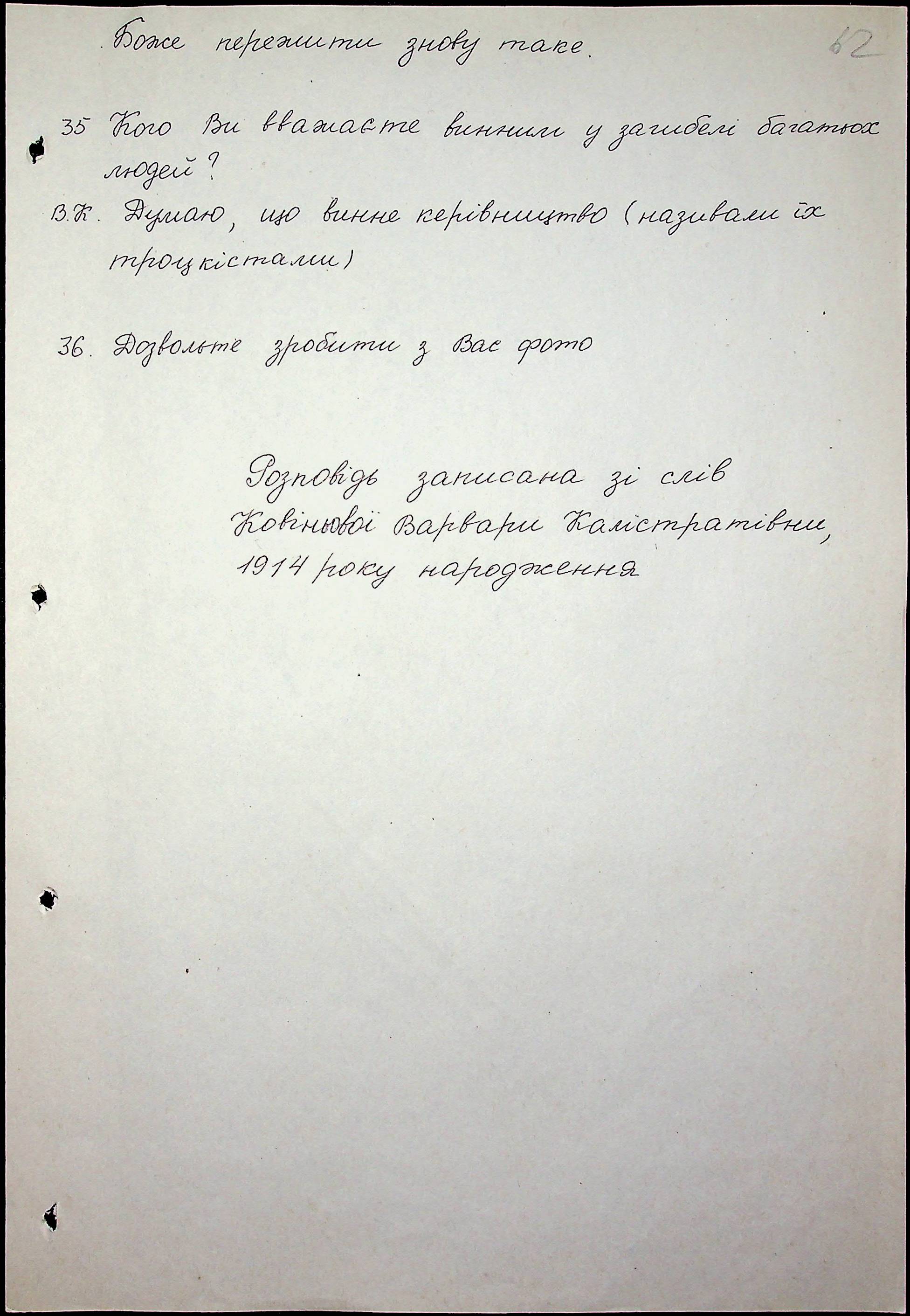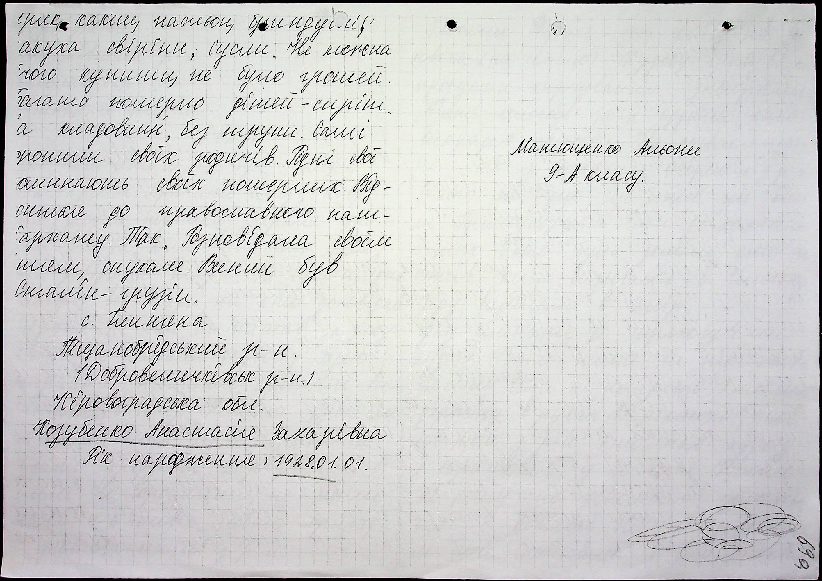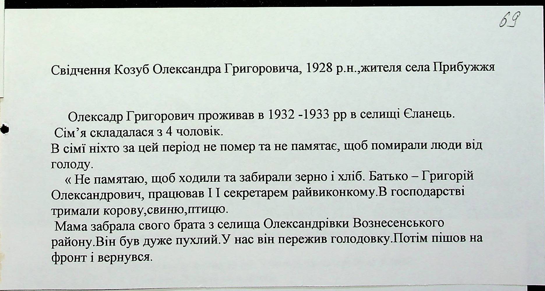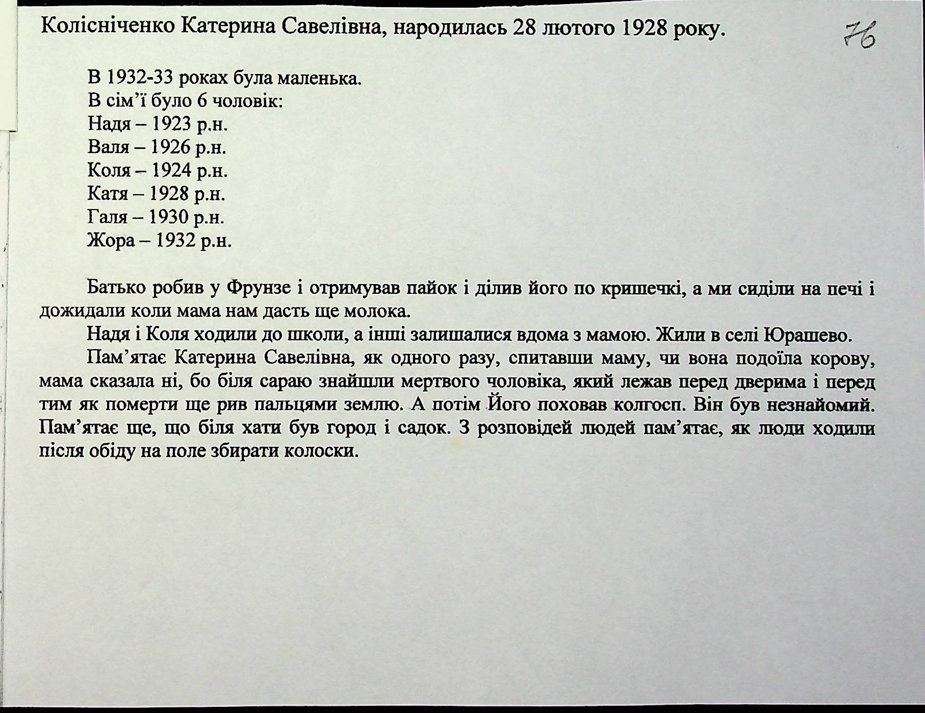 • • • • Справа № 27 “Свідчення очевидців Голодомору 1932-1933 років, які проживають у Доманівському районі, з прізвищами на літери К–Н”