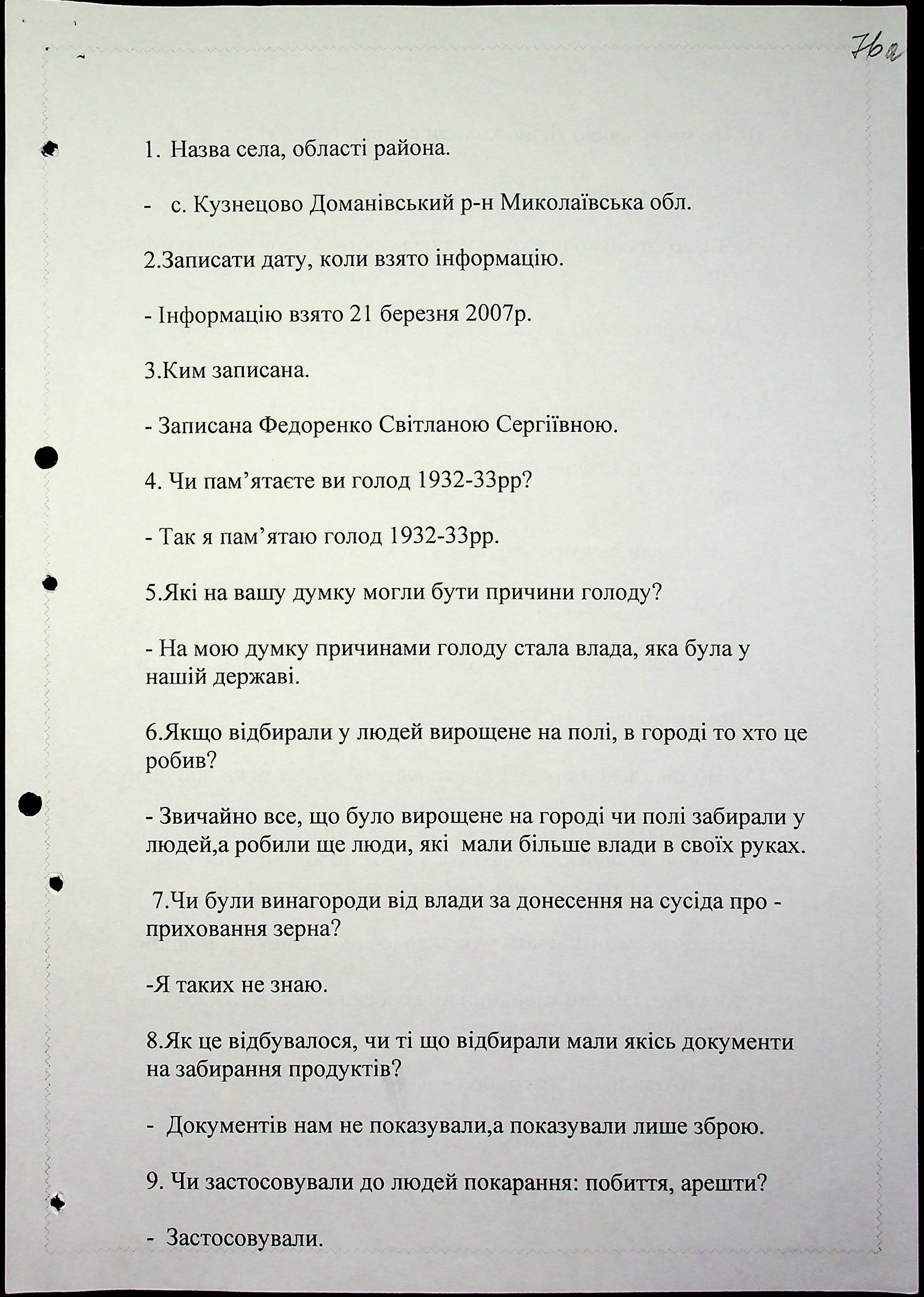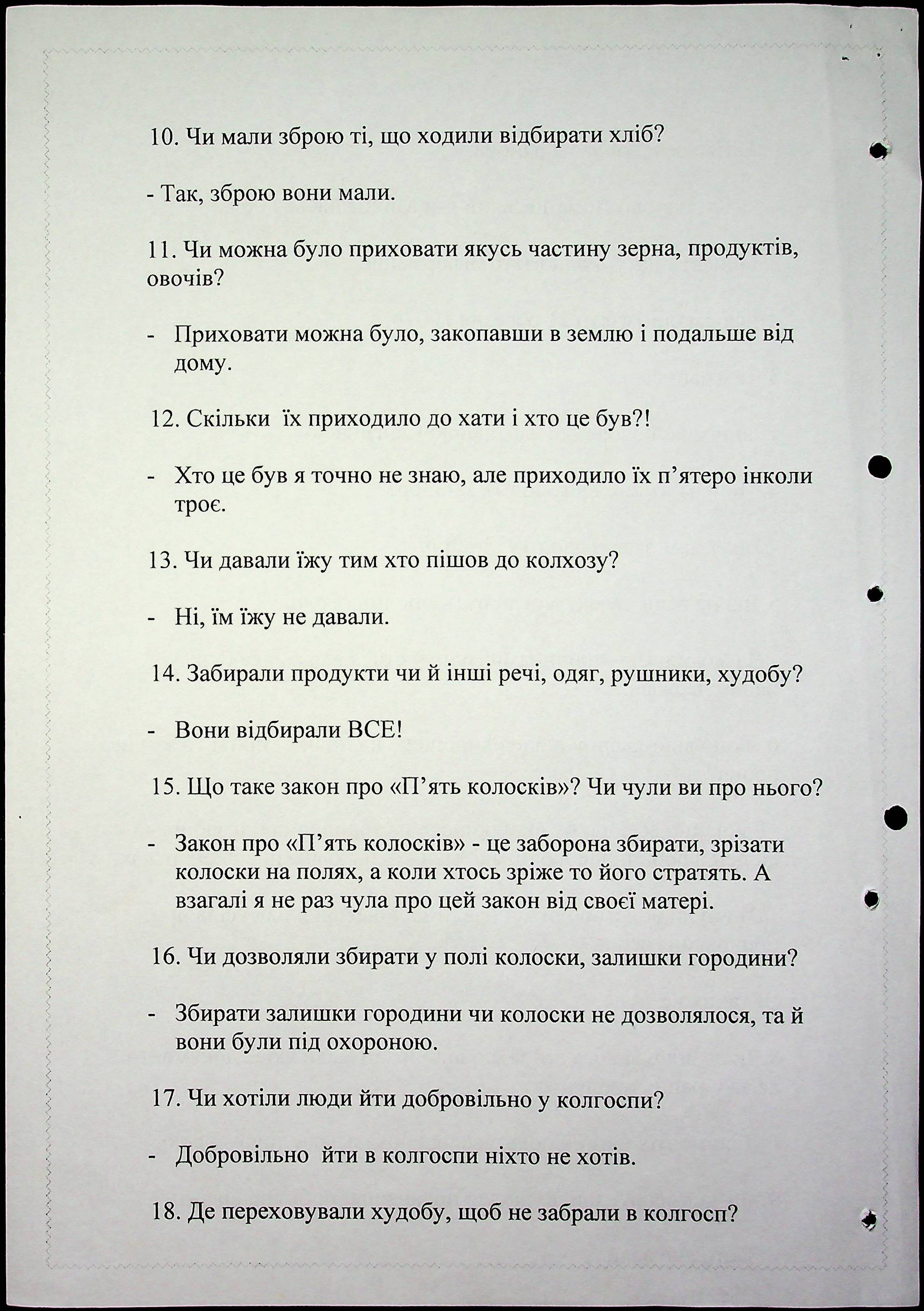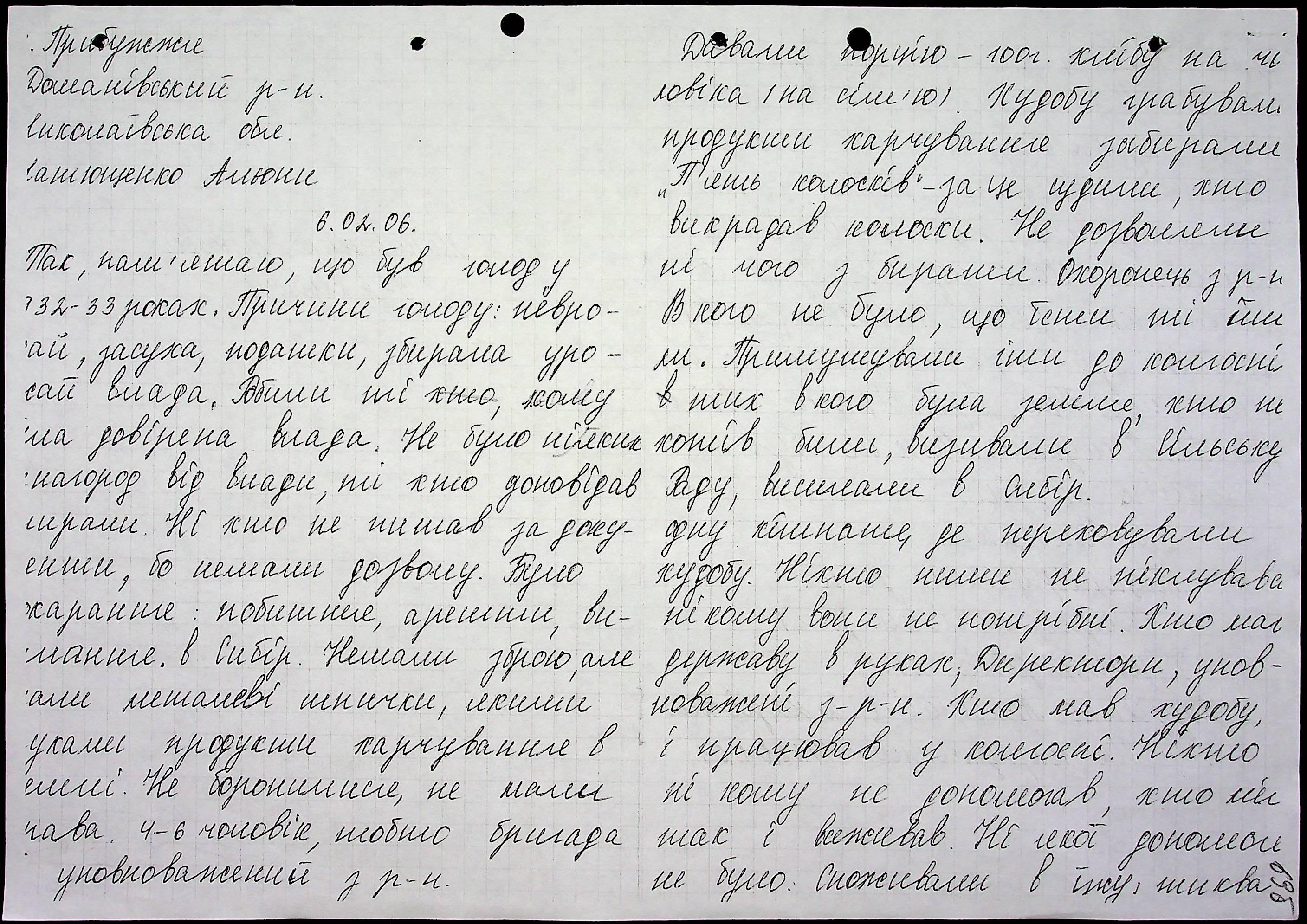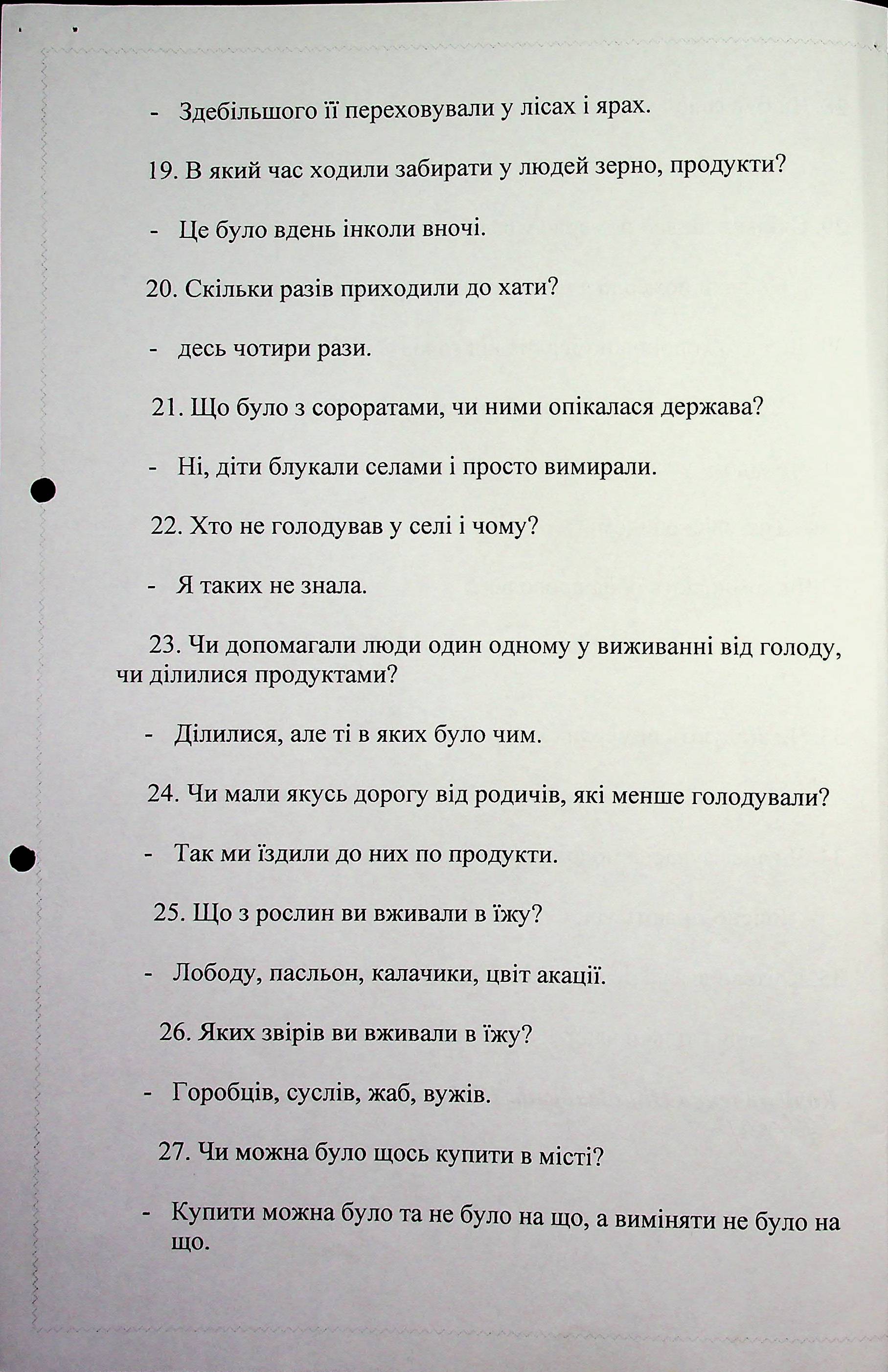 ◦ ◦ Фонд № 6146 “Колекція свідчень очевидців Голодомору 1932-1933 рр., нині проживаючих у Миколаївській області”