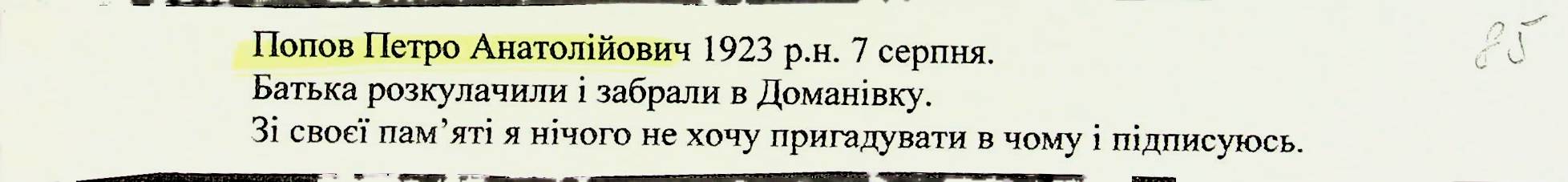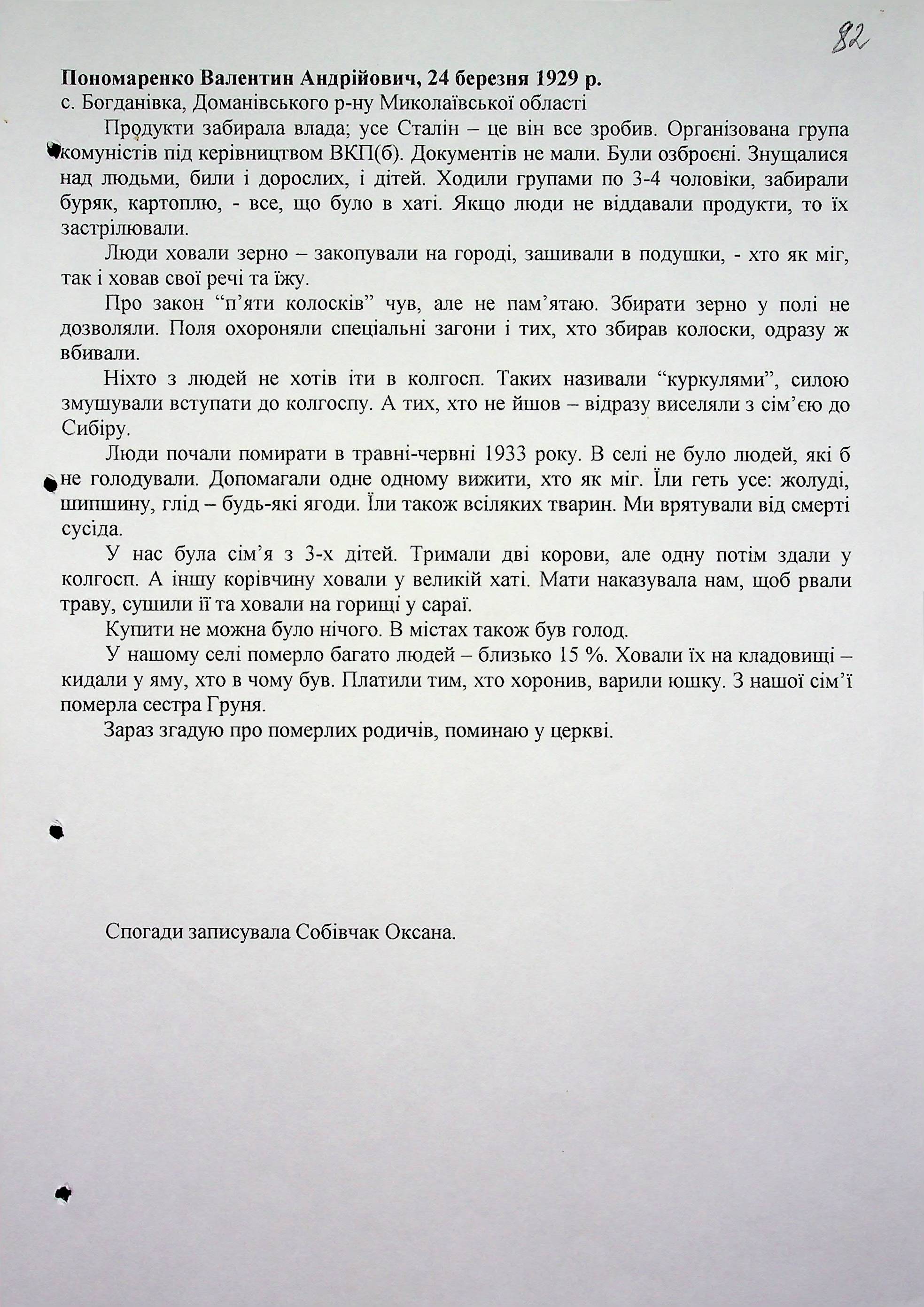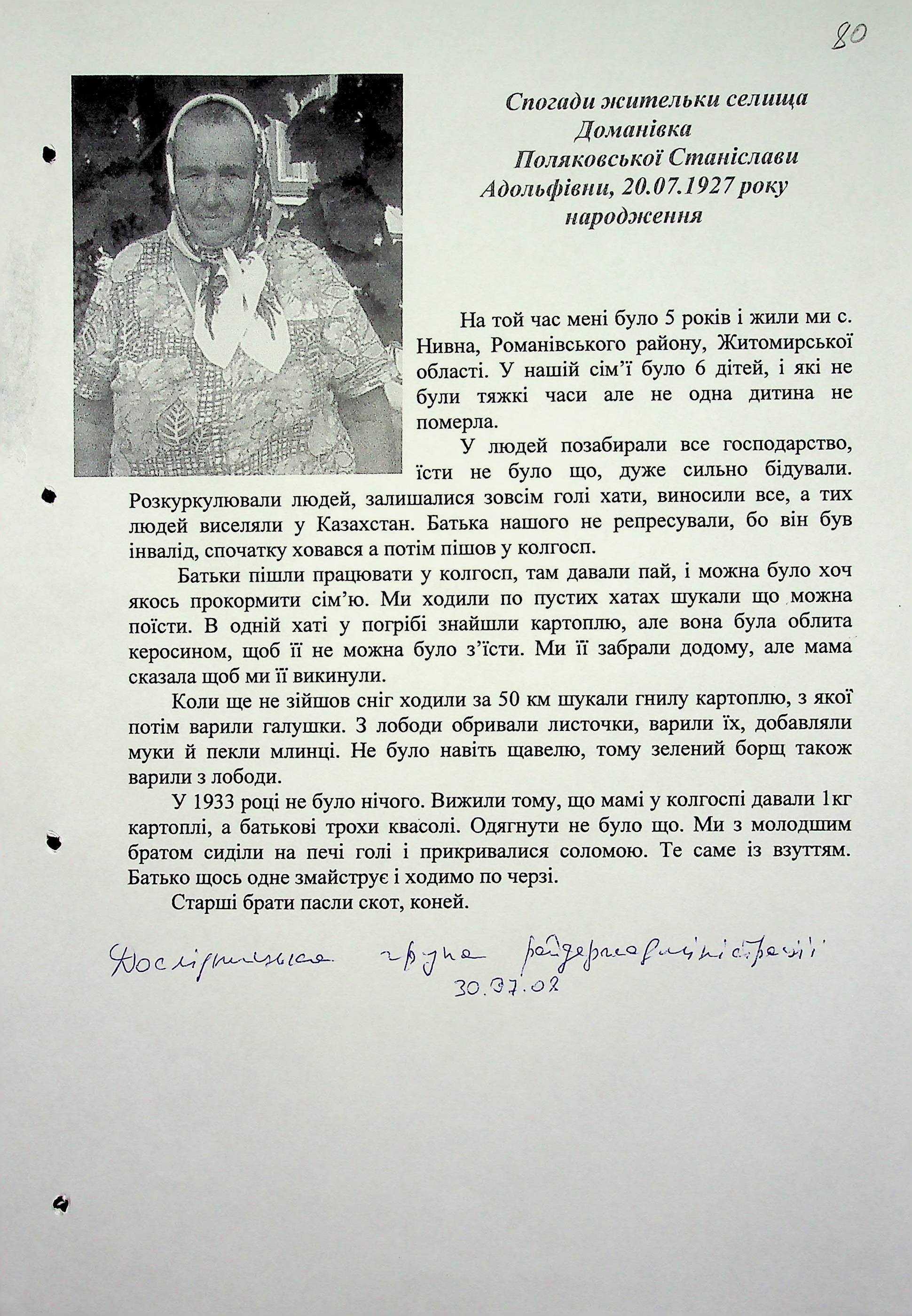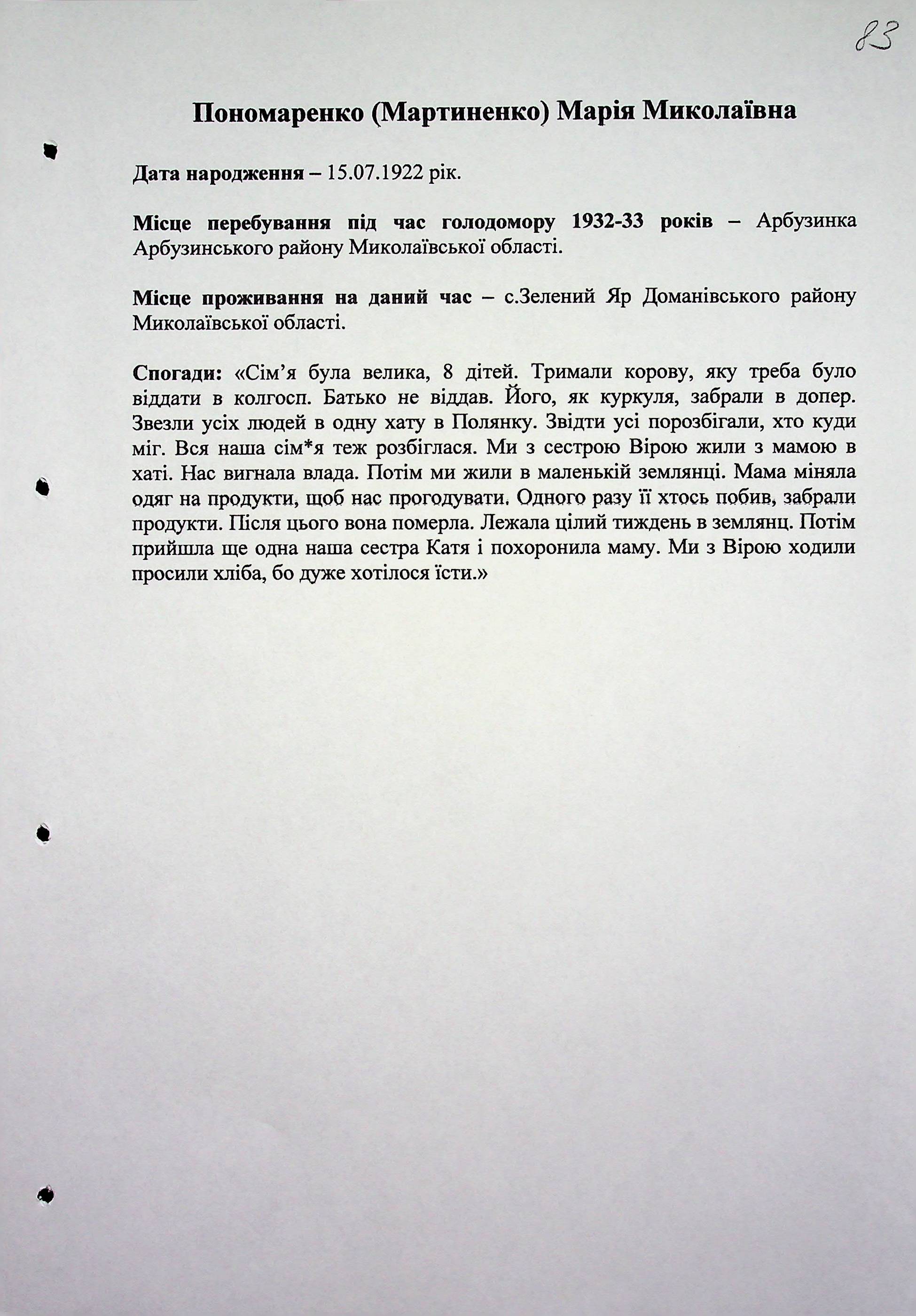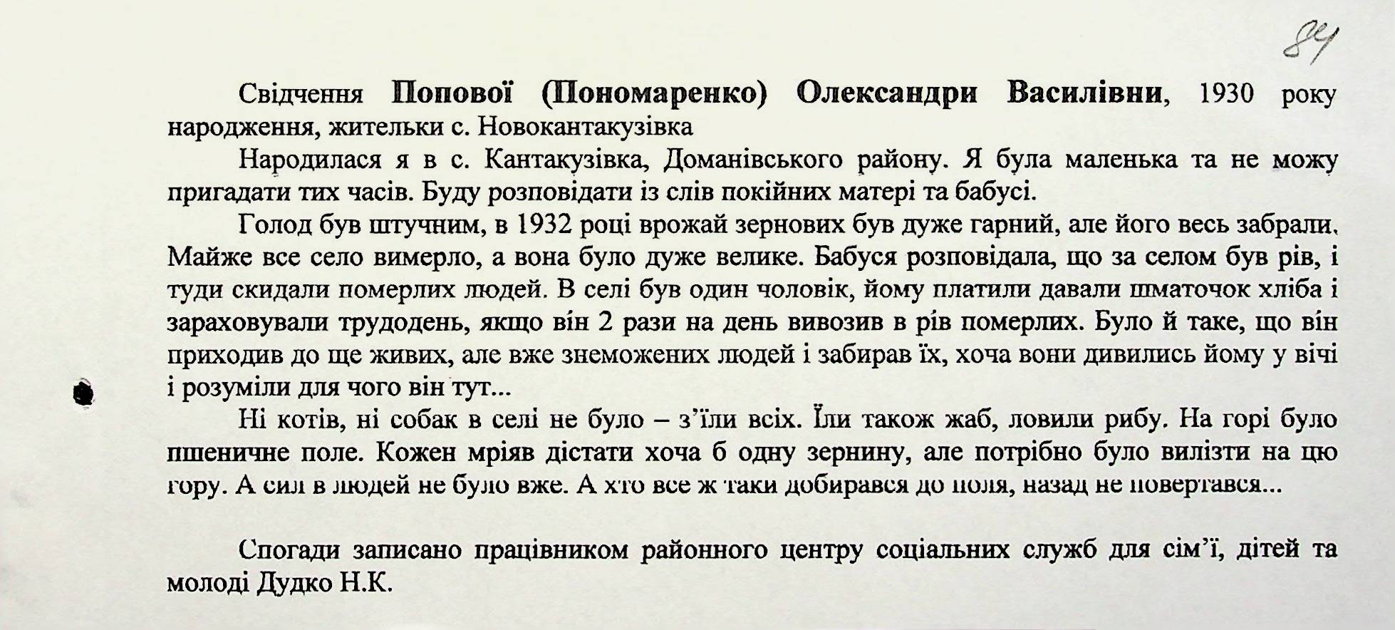• • • • Справа № 28 “Свідчення очевидців Голодомору 1932-1933 років, які проживають у Доманівському районі, з прізвищами на літери О–Я”