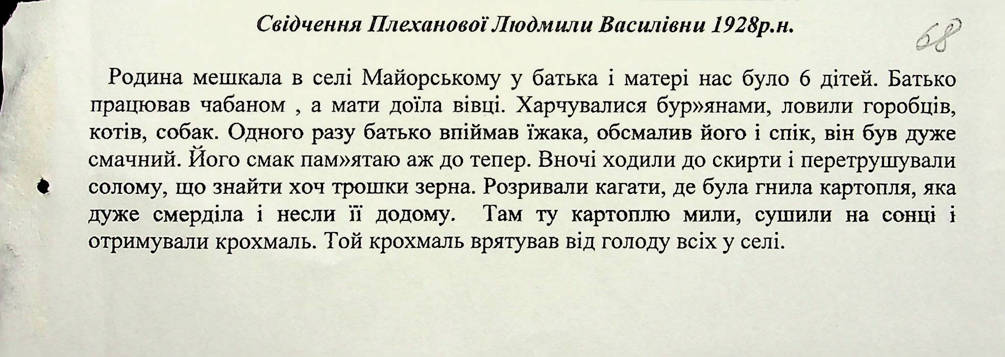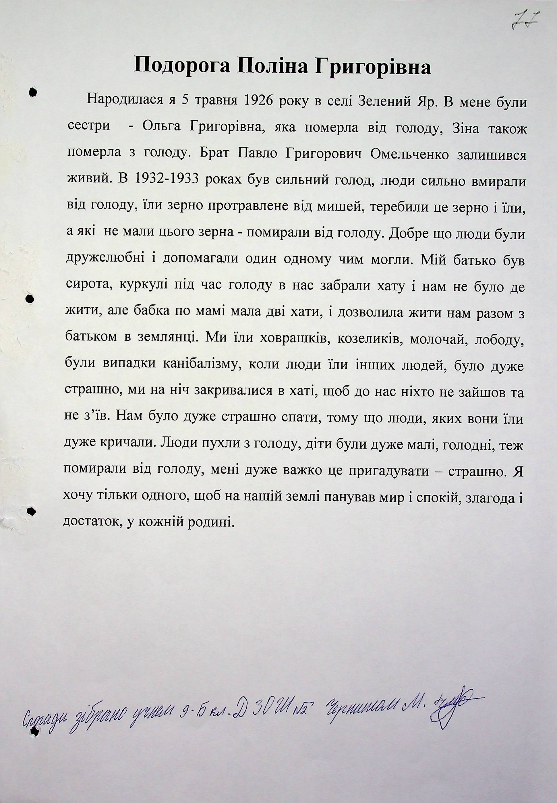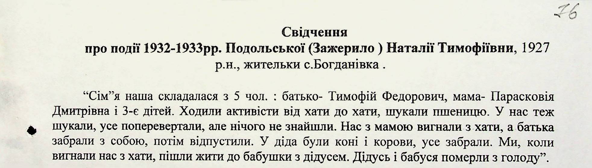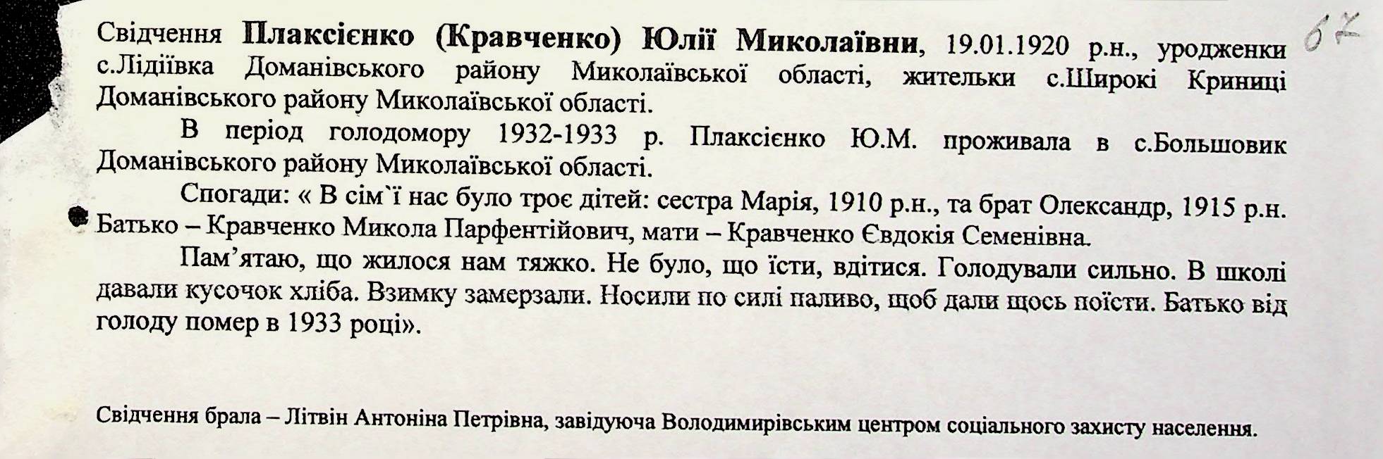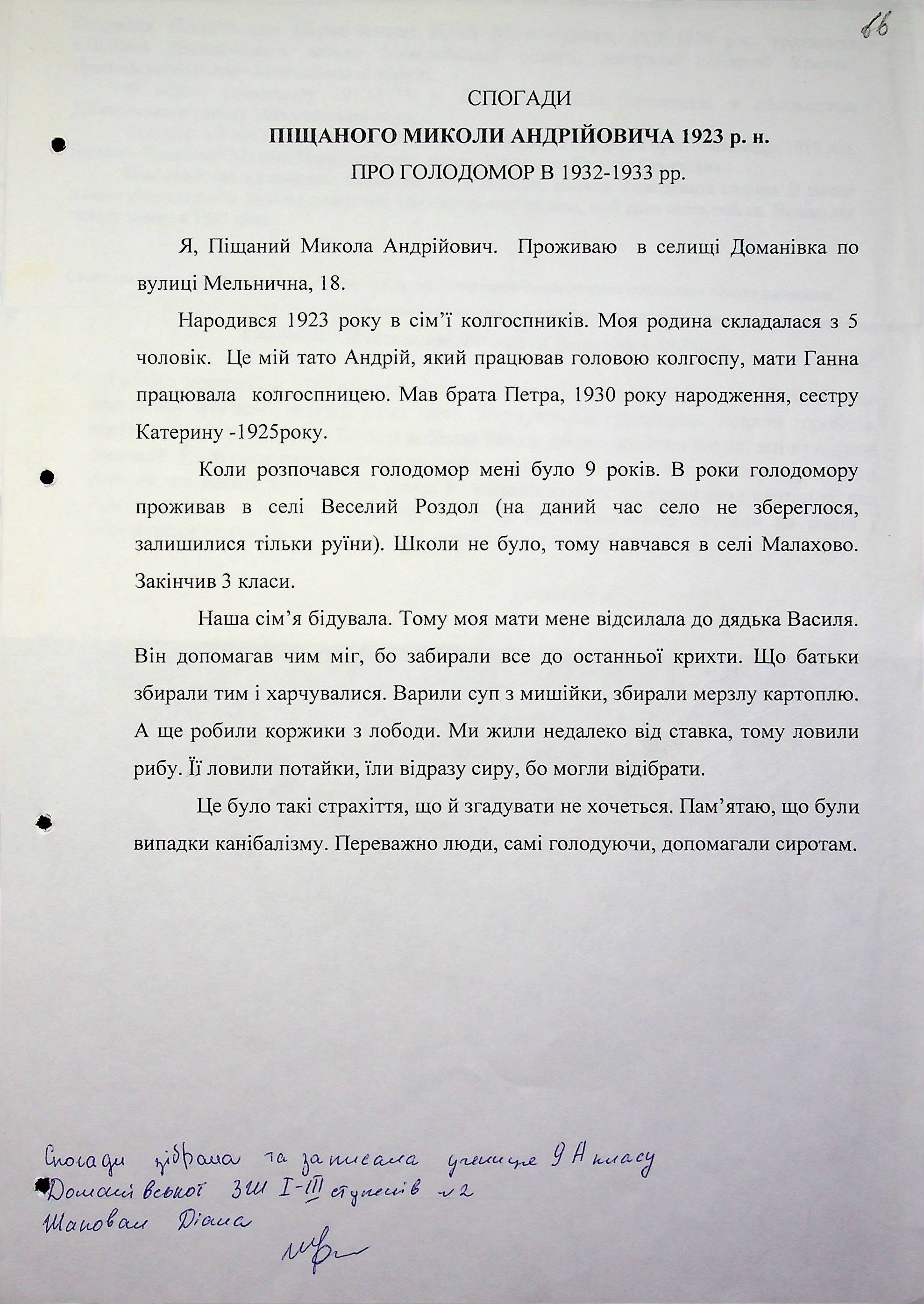 • • • • Справа № 28 “Свідчення очевидців Голодомору 1932-1933 років, які проживають у Доманівському районі, з прізвищами на літери О–Я”