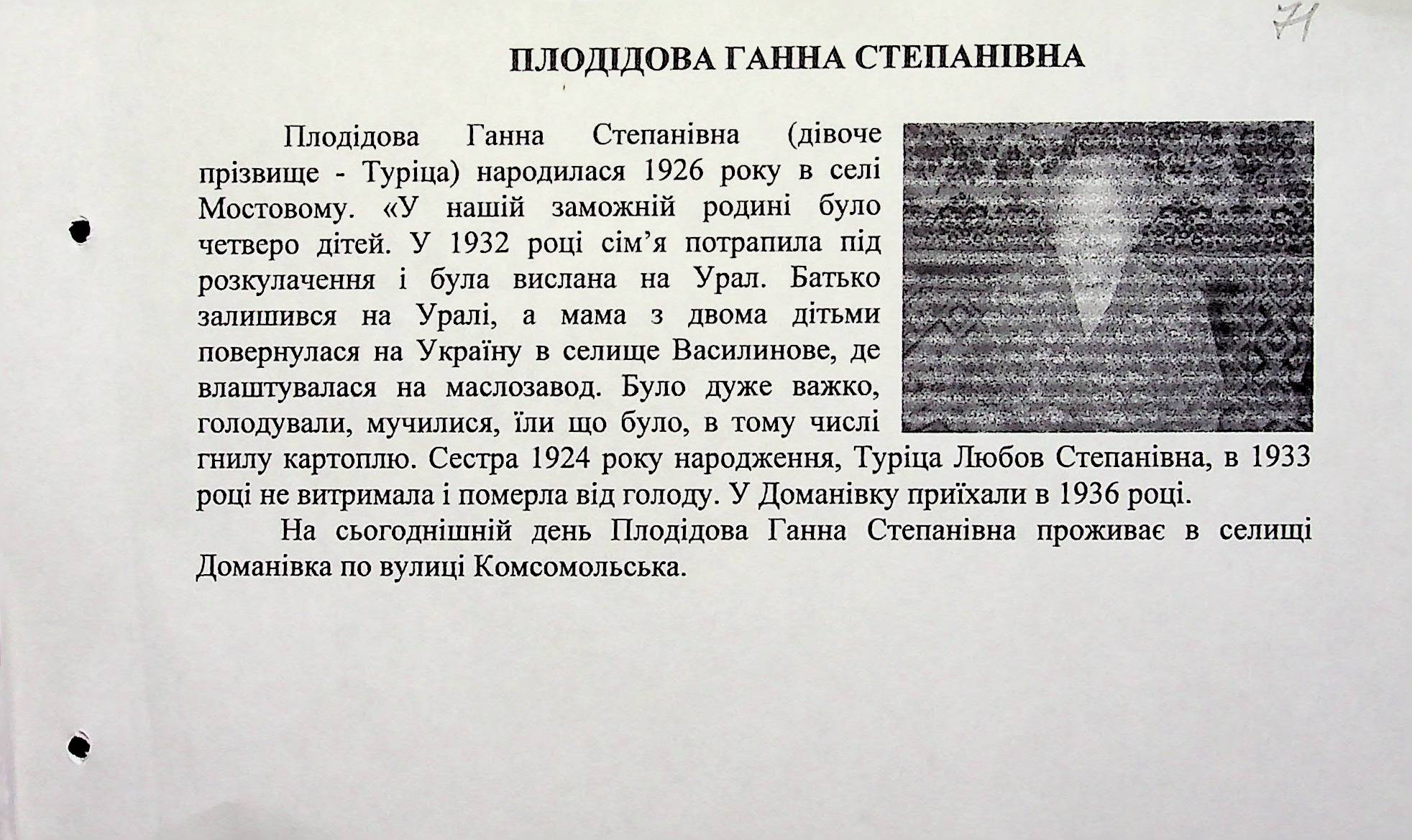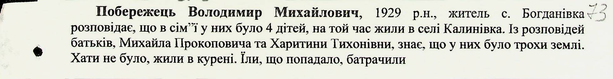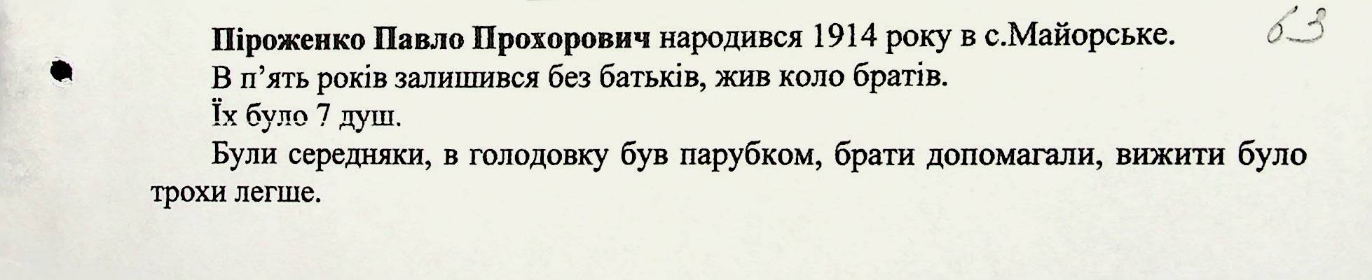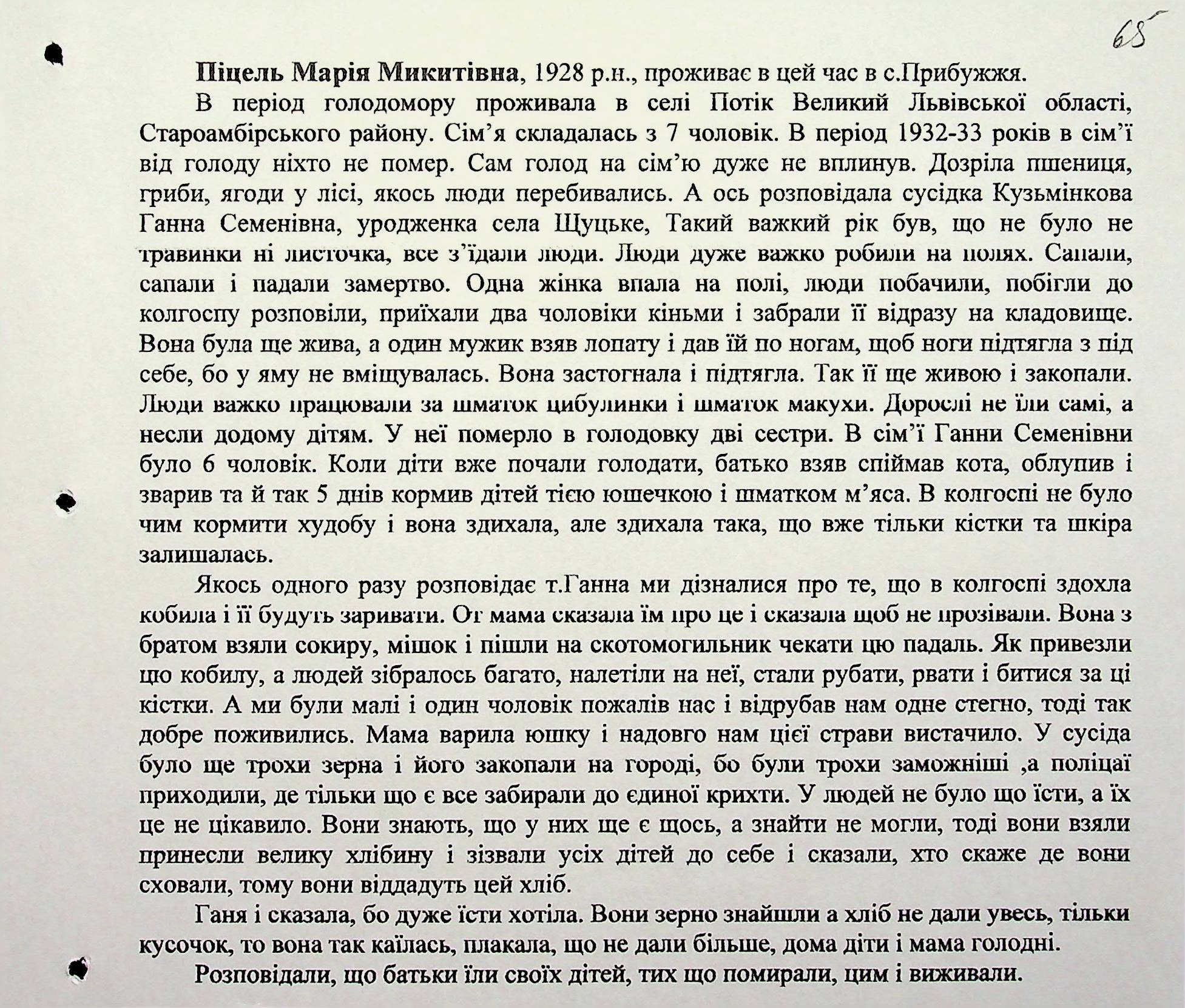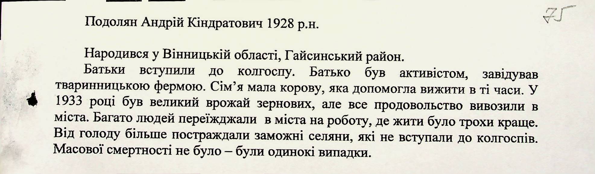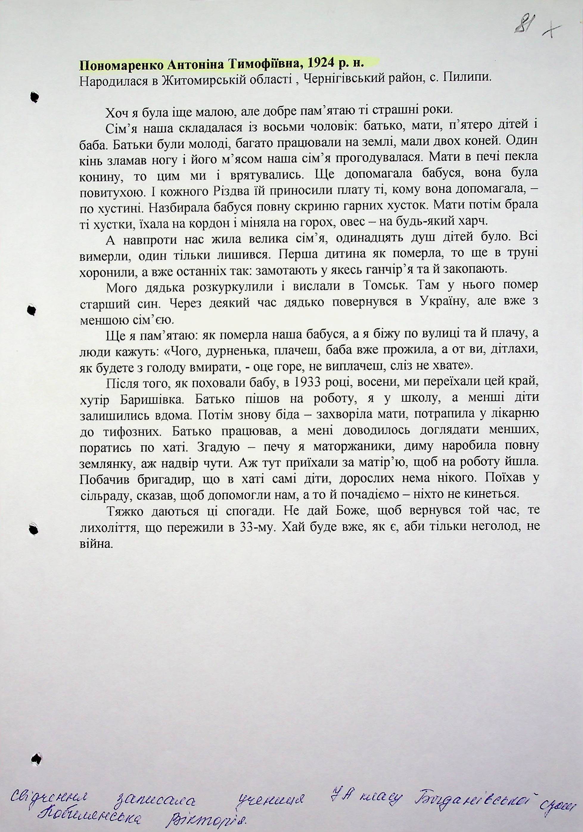 • • • • Справа № 28 “Свідчення очевидців Голодомору 1932-1933 років, які проживають у Доманівському районі, з прізвищами на літери О–Я”