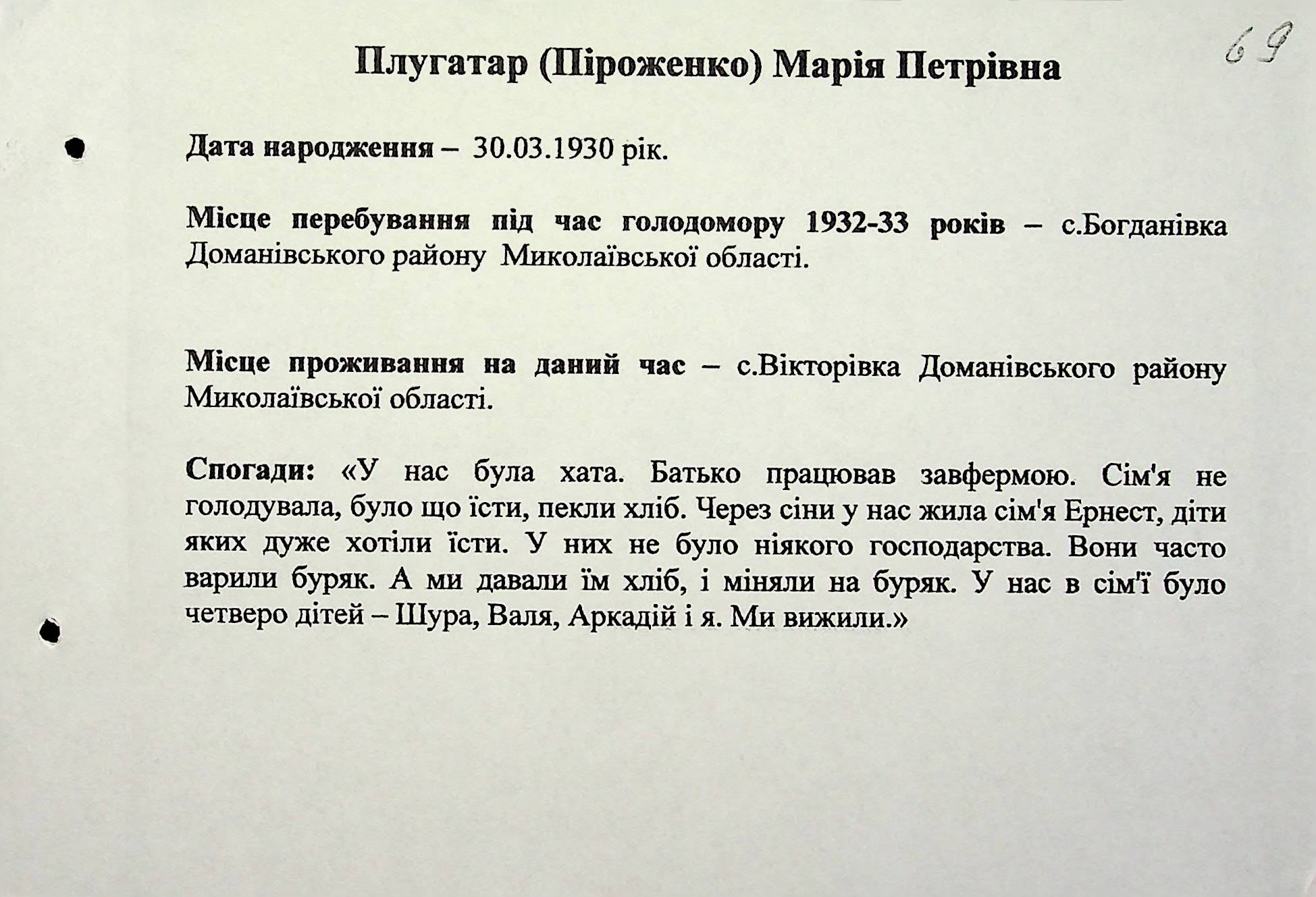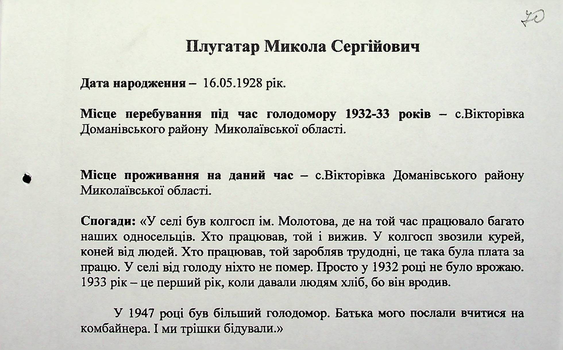 ◦ ◦ Фонд № 6146 “Колекція свідчень очевидців Голодомору 1932-1933 рр., нині проживаючих у Миколаївській області”