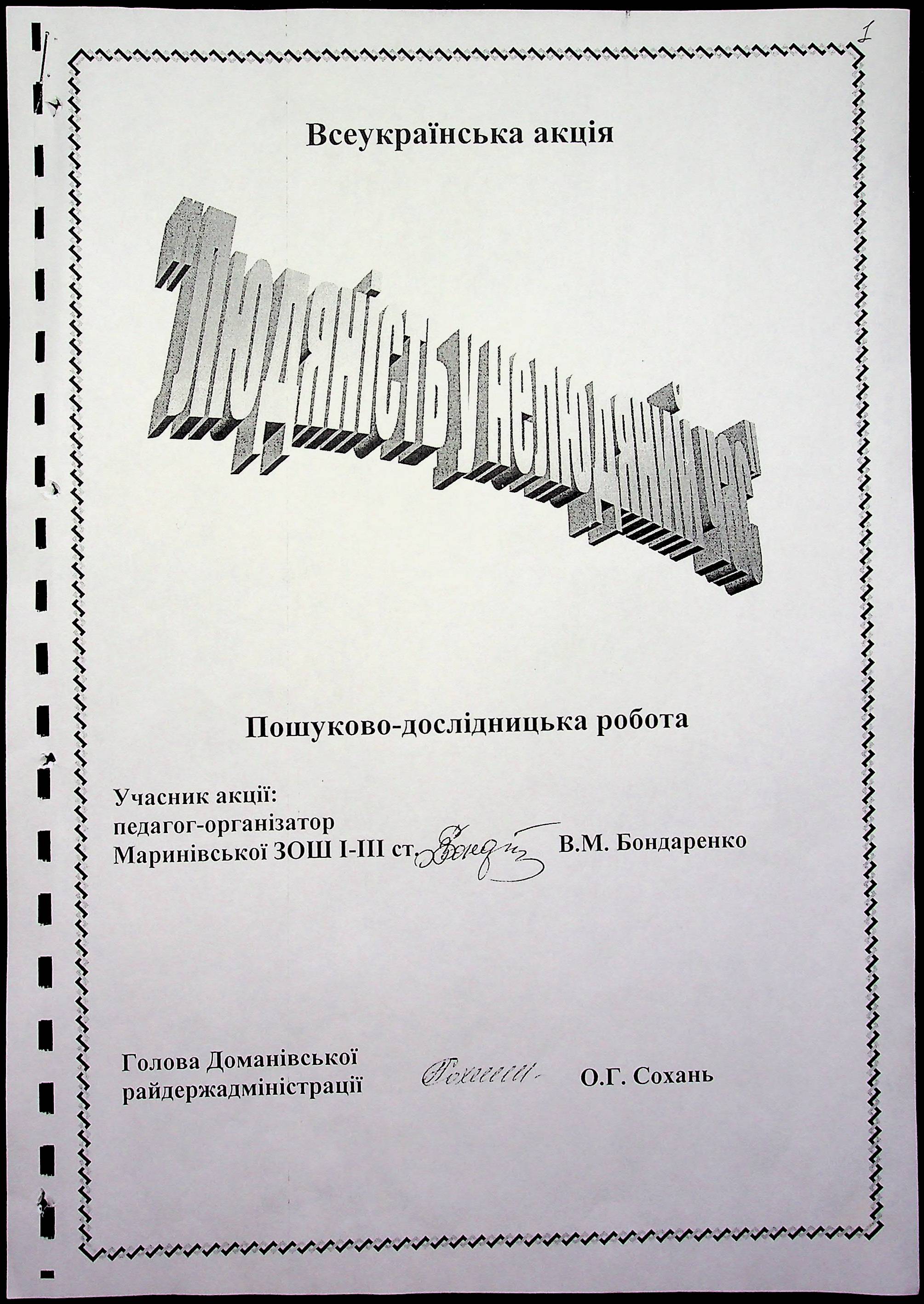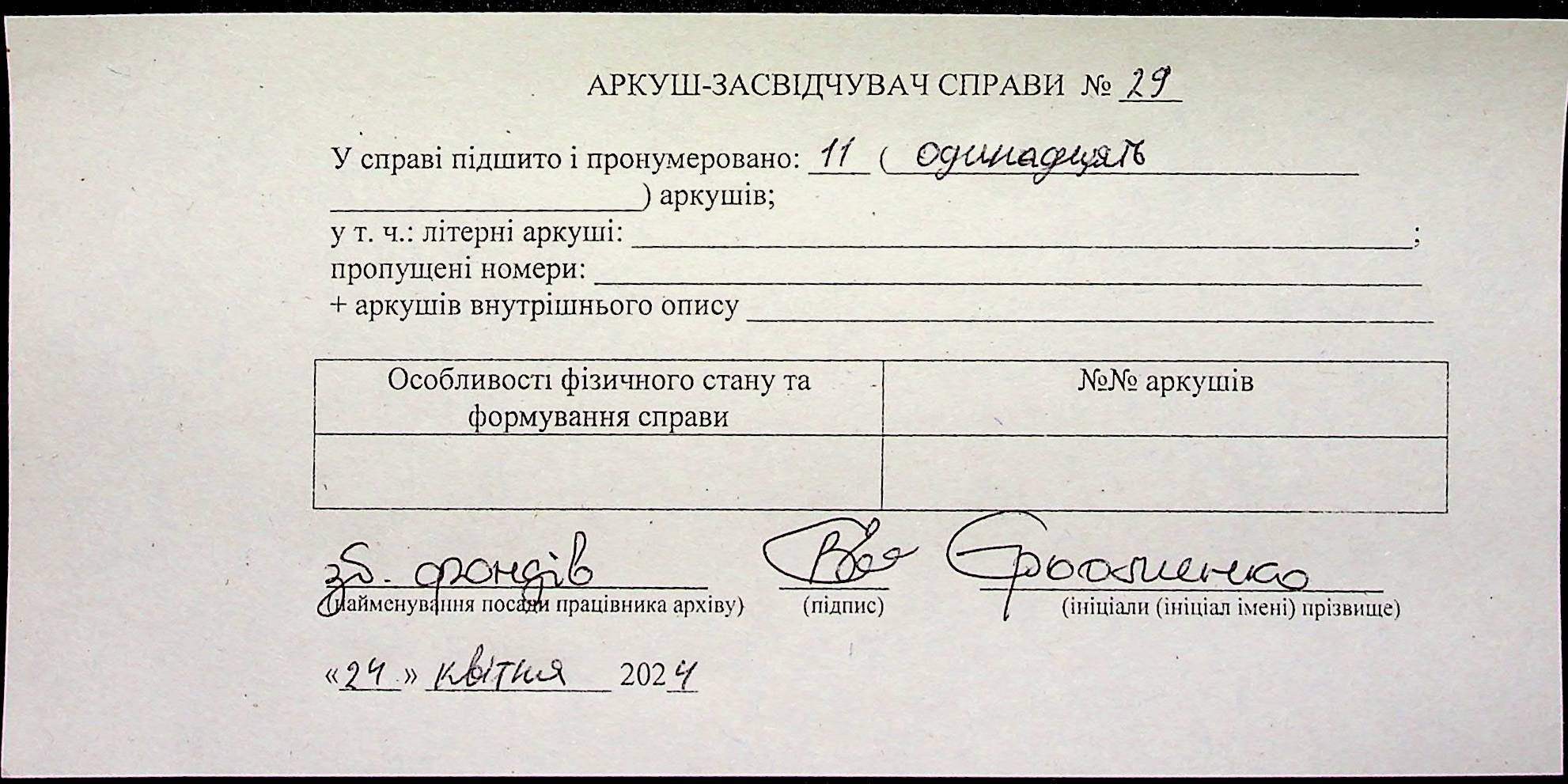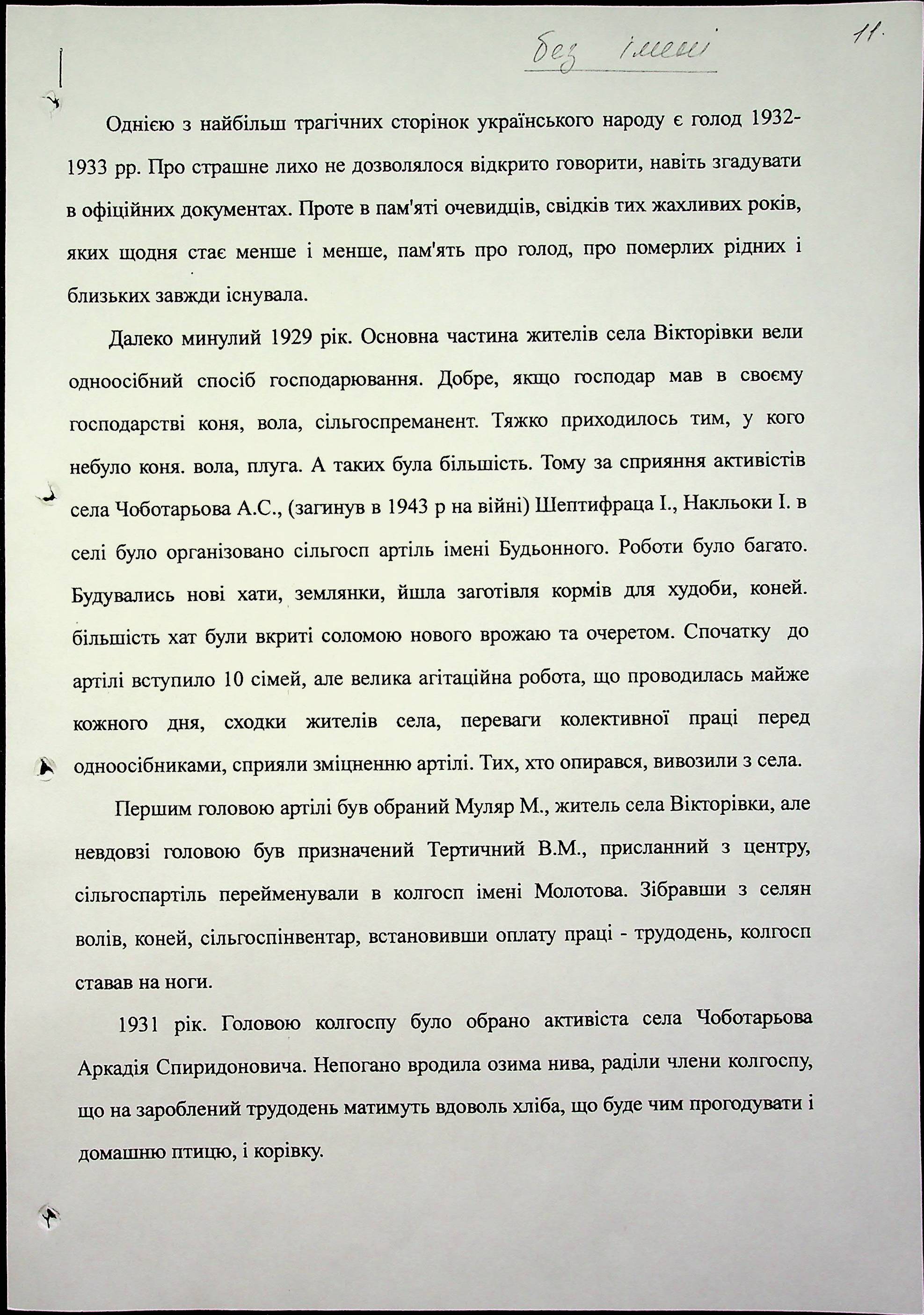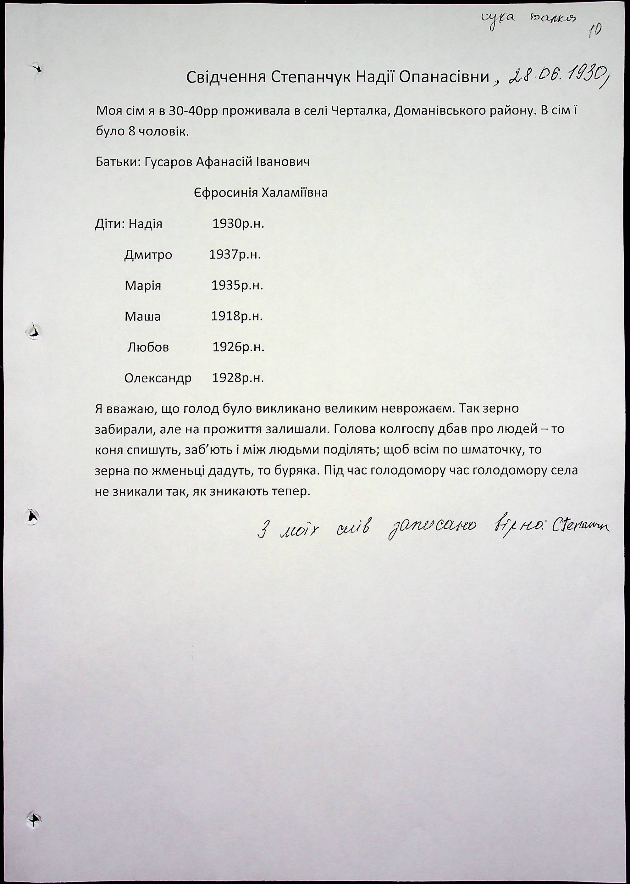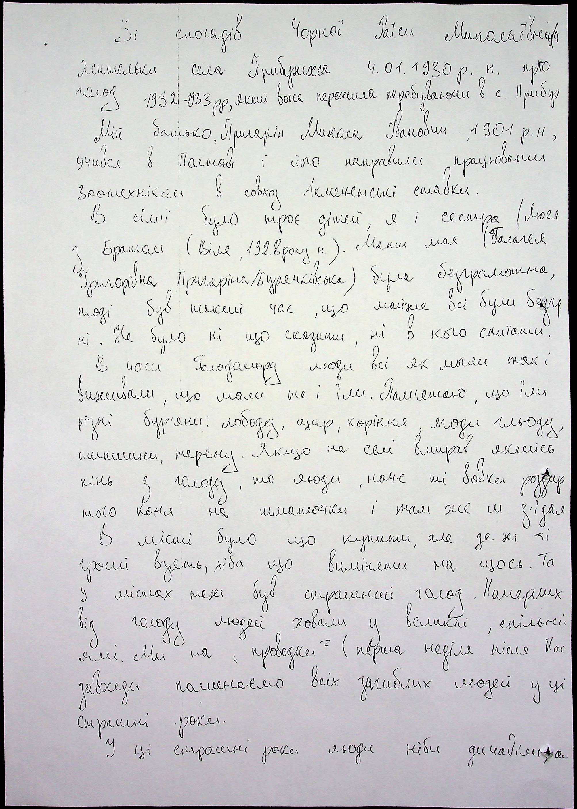 • • • • Справа № 29 “Свідчення очевидців Голодомору 1932-1933 років, які проживають у Доманівському районі, з прізвищами на літери Б-Ч (доповнення)”