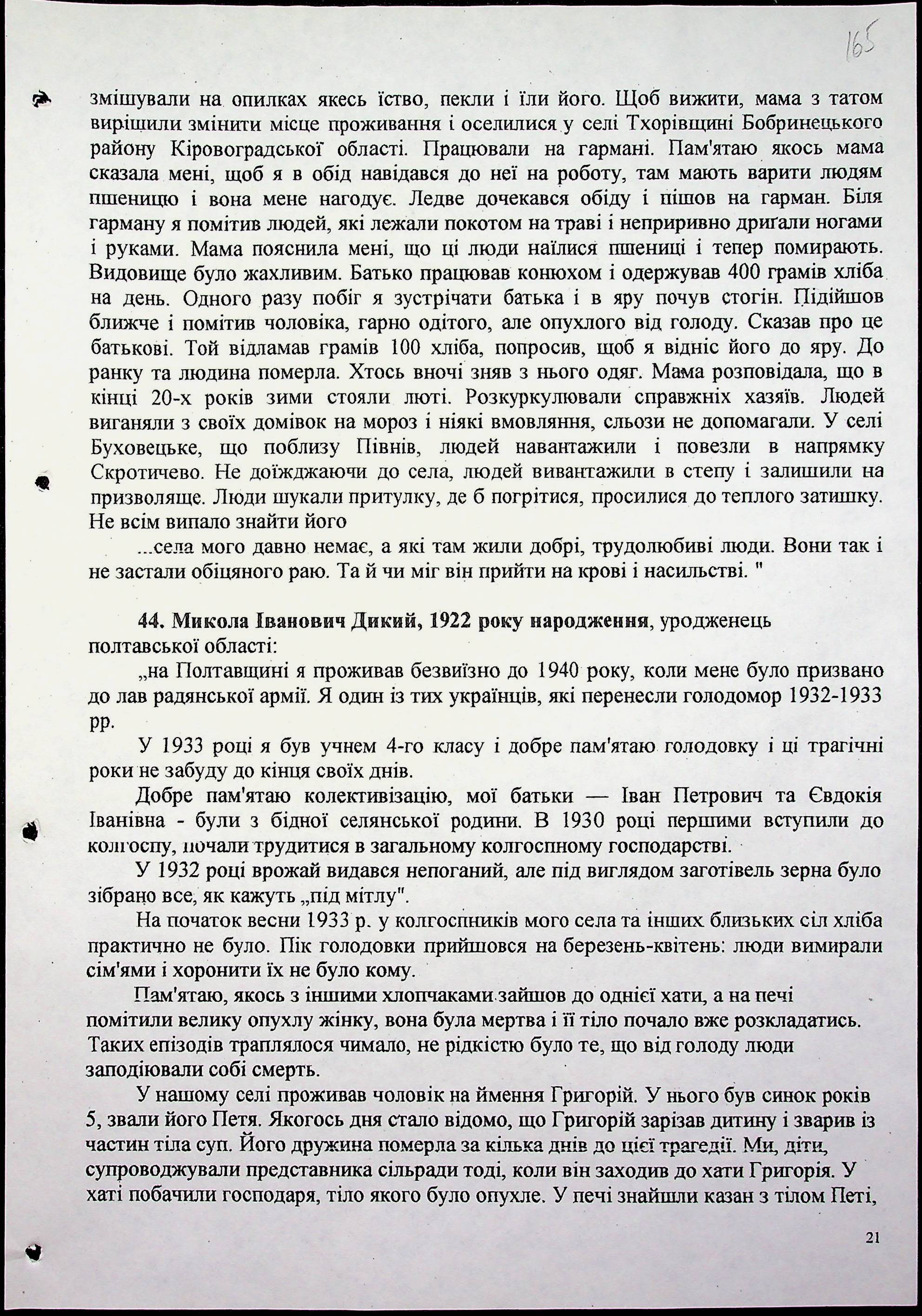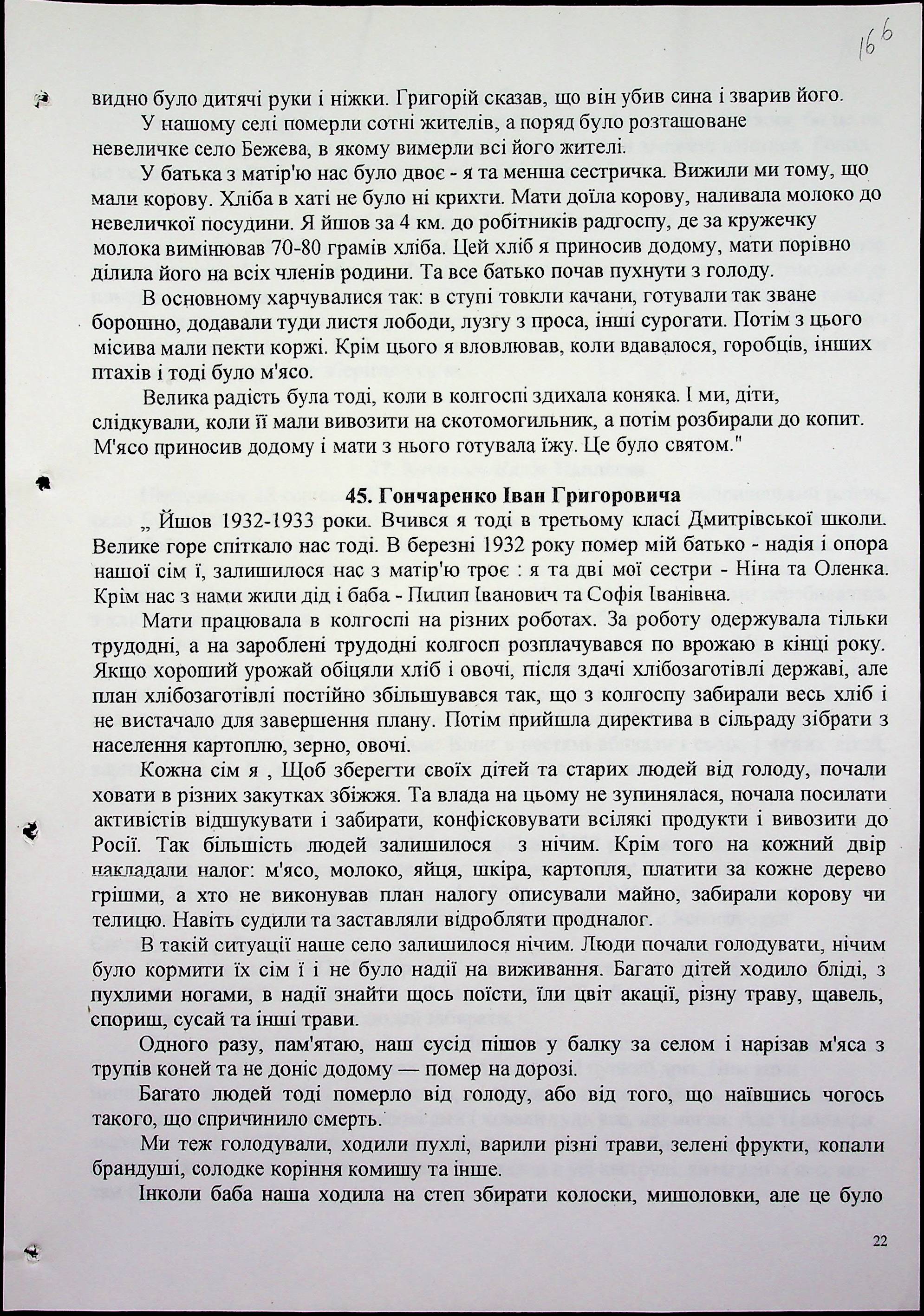 ◦ ◦ Фонд № 6146 “Колекція свідчень очевидців Голодомору 1932-1933 рр., нині проживаючих у Миколаївській області”