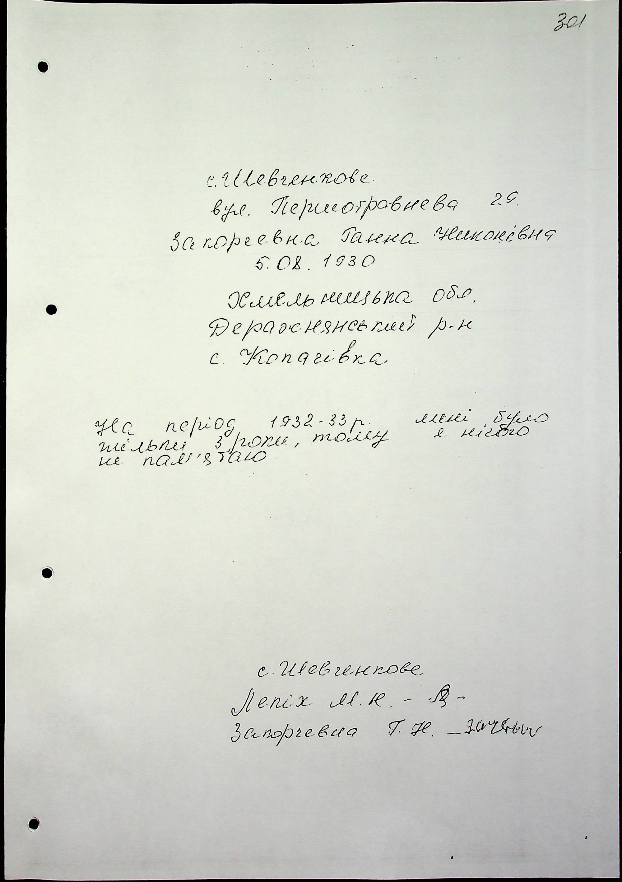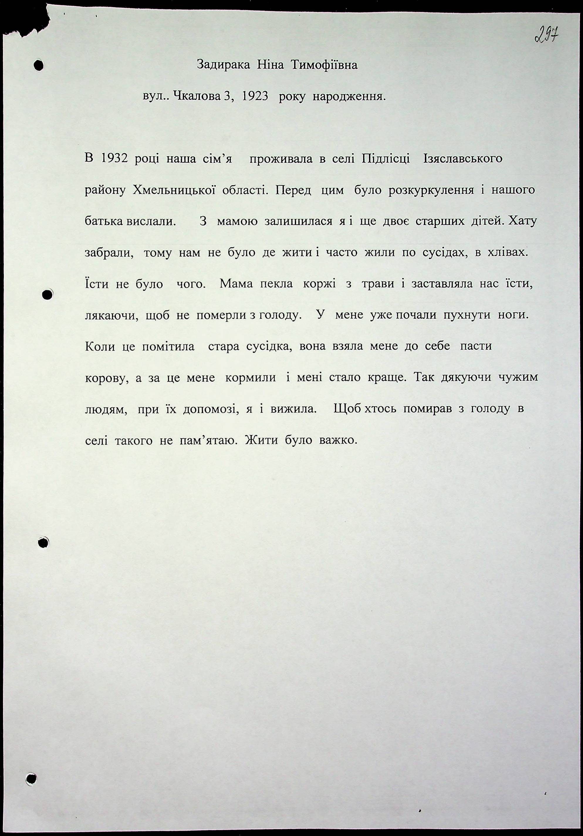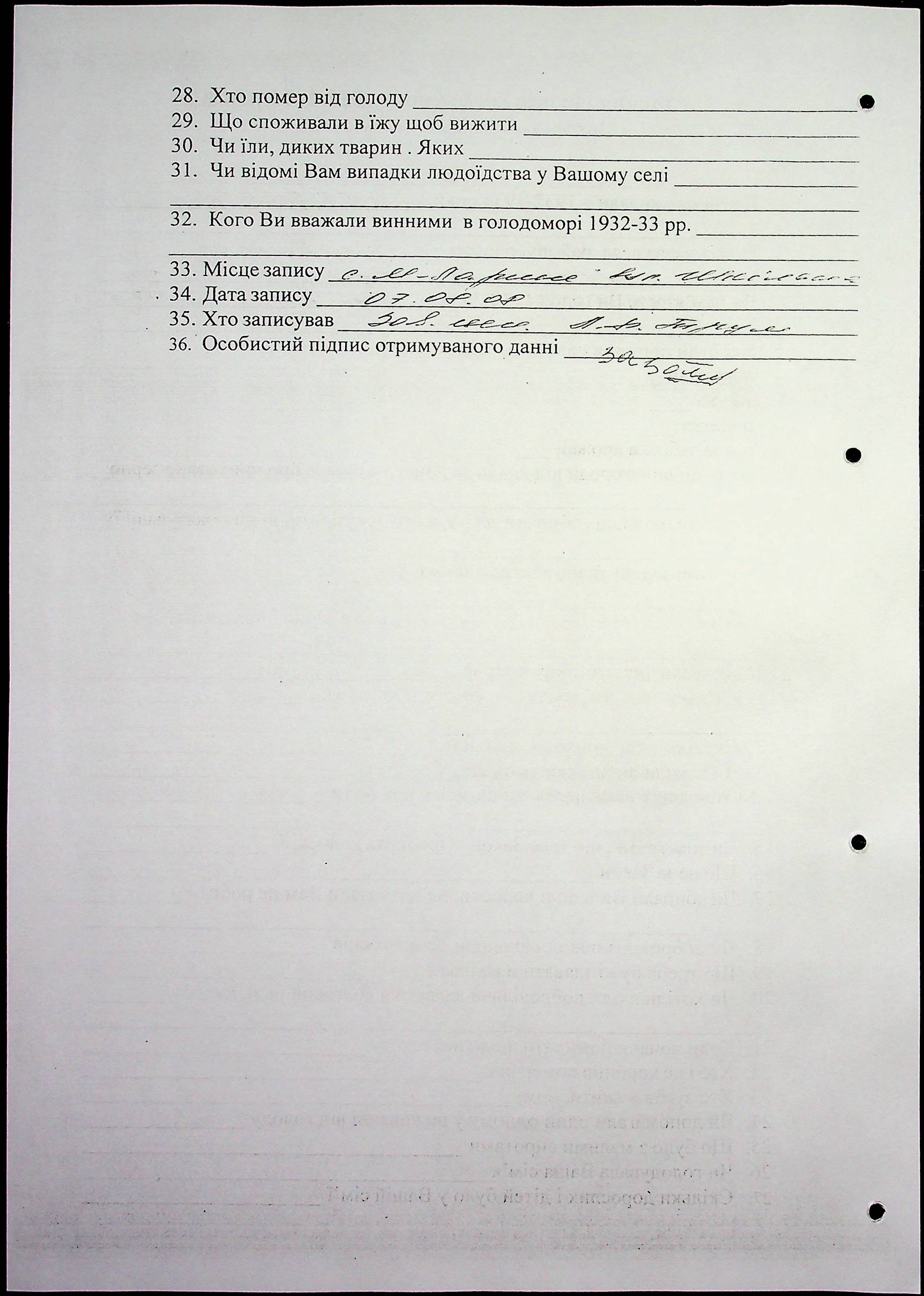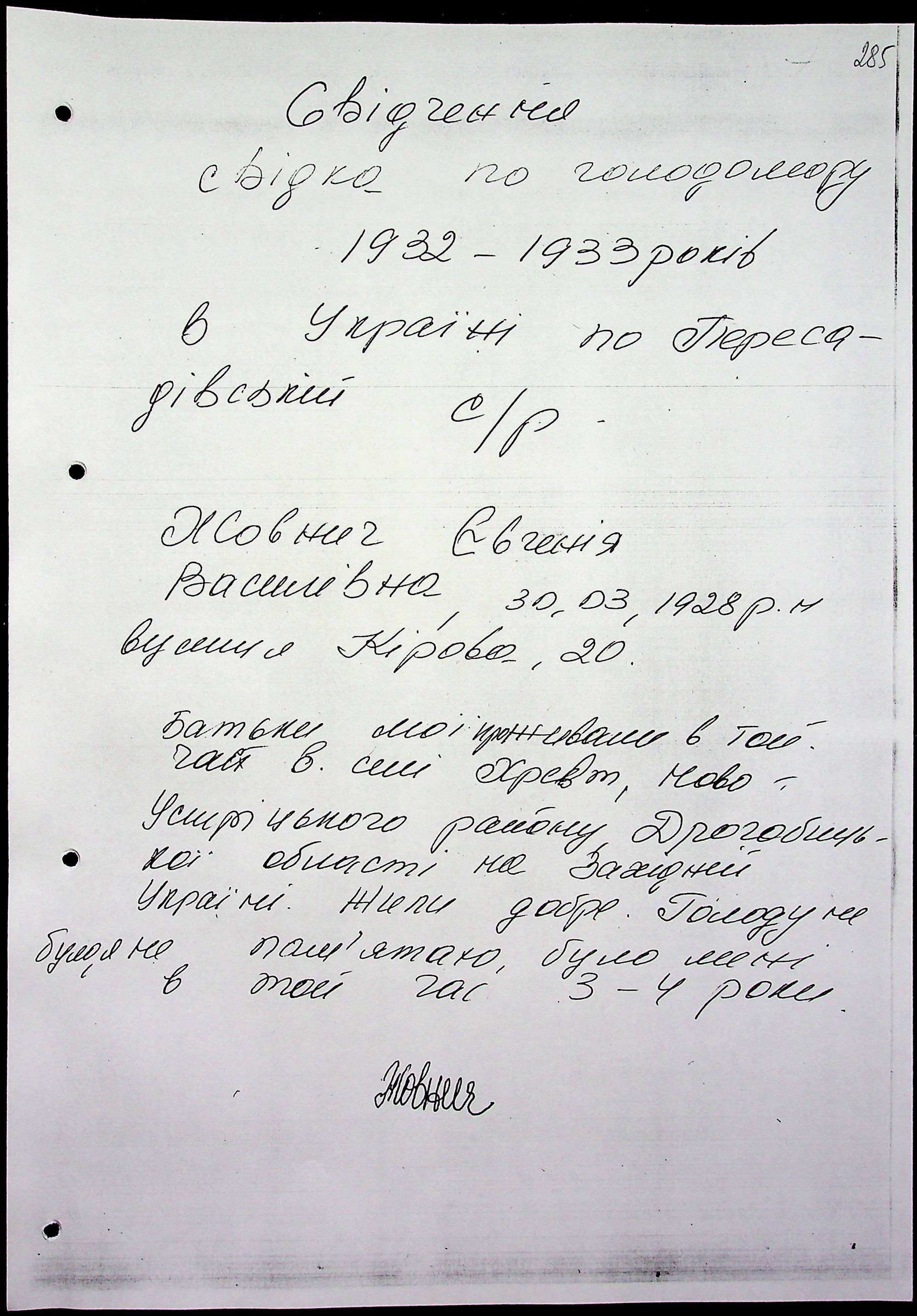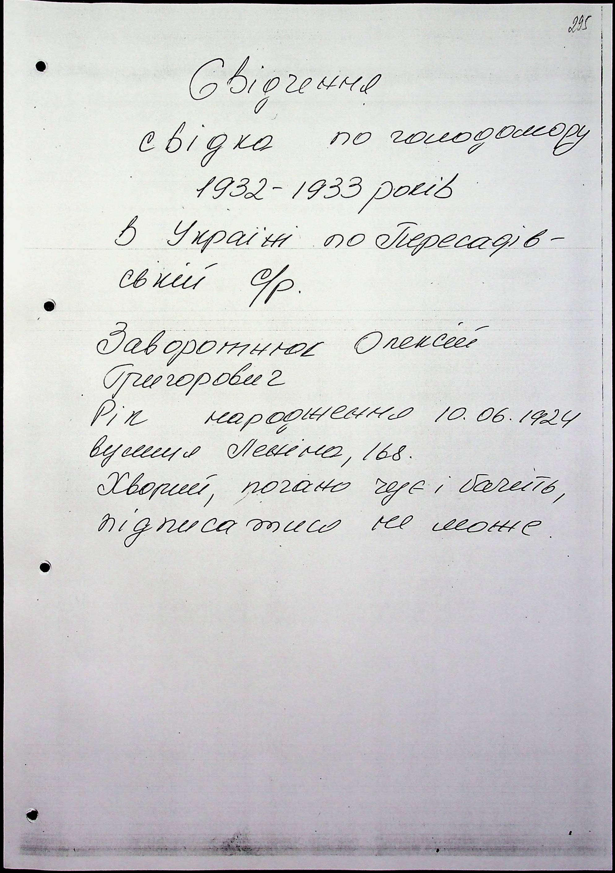 • • • • Справа № 31 “Свідчення очевидців Голодомору 1932-1933 років, які проживають у Жовтневому районі, з прізвищами на літери А–З”