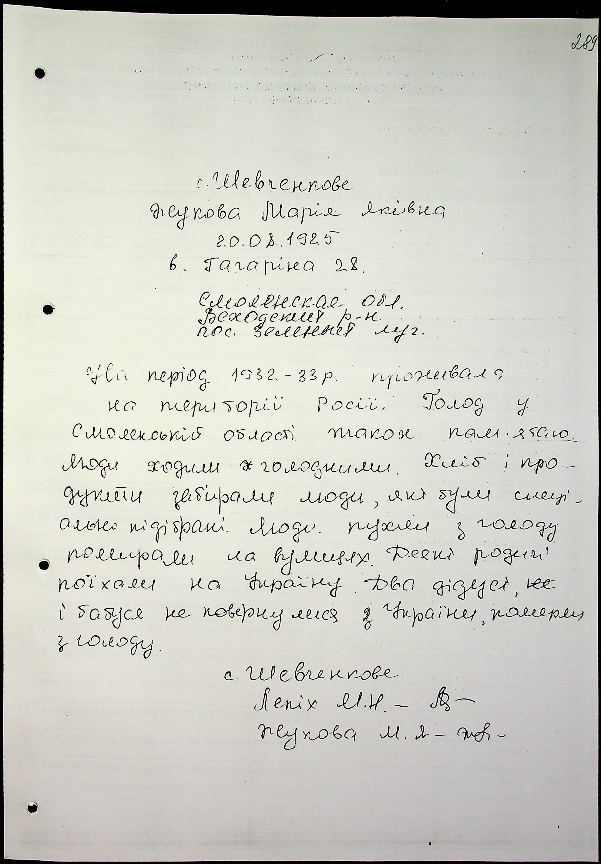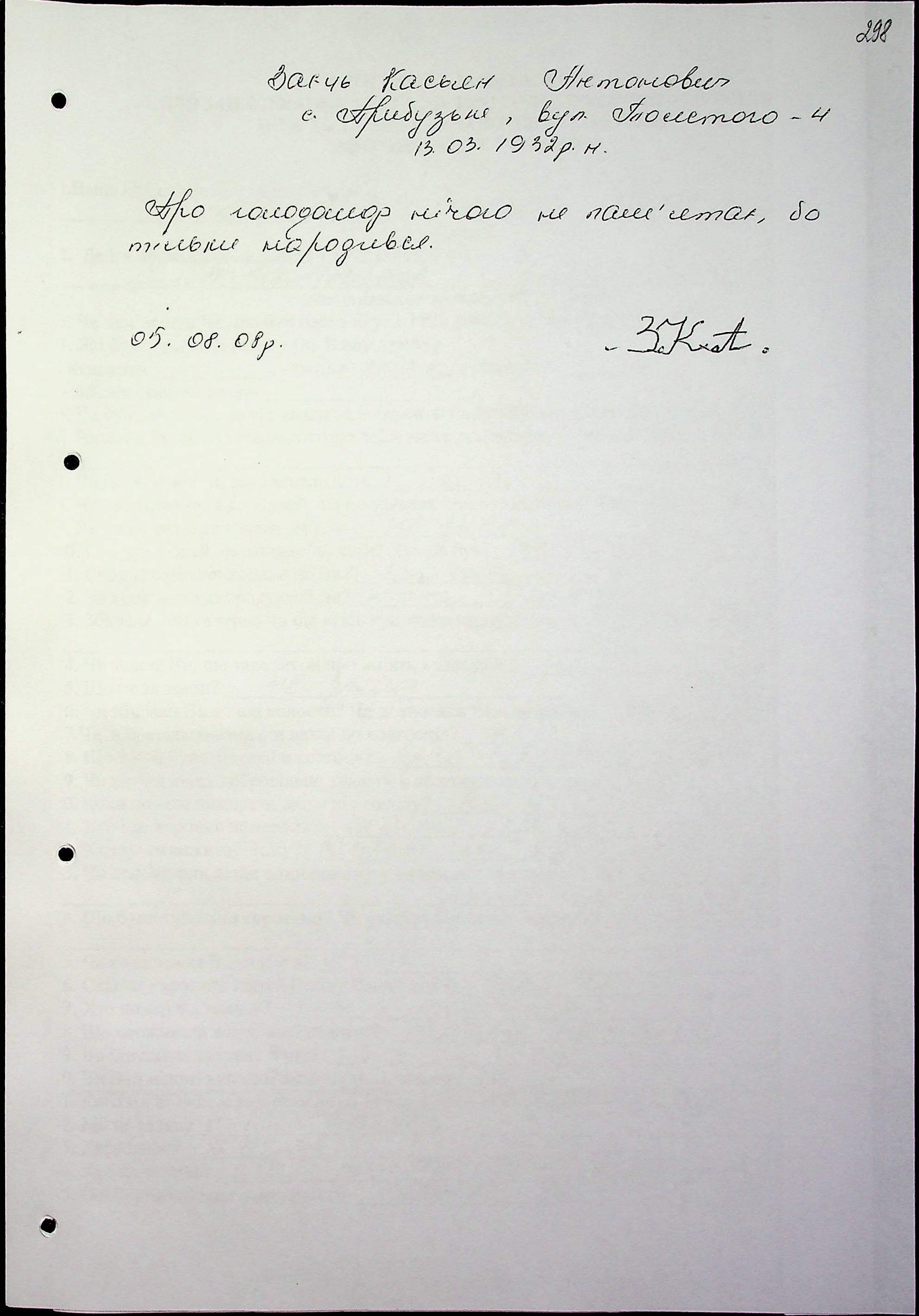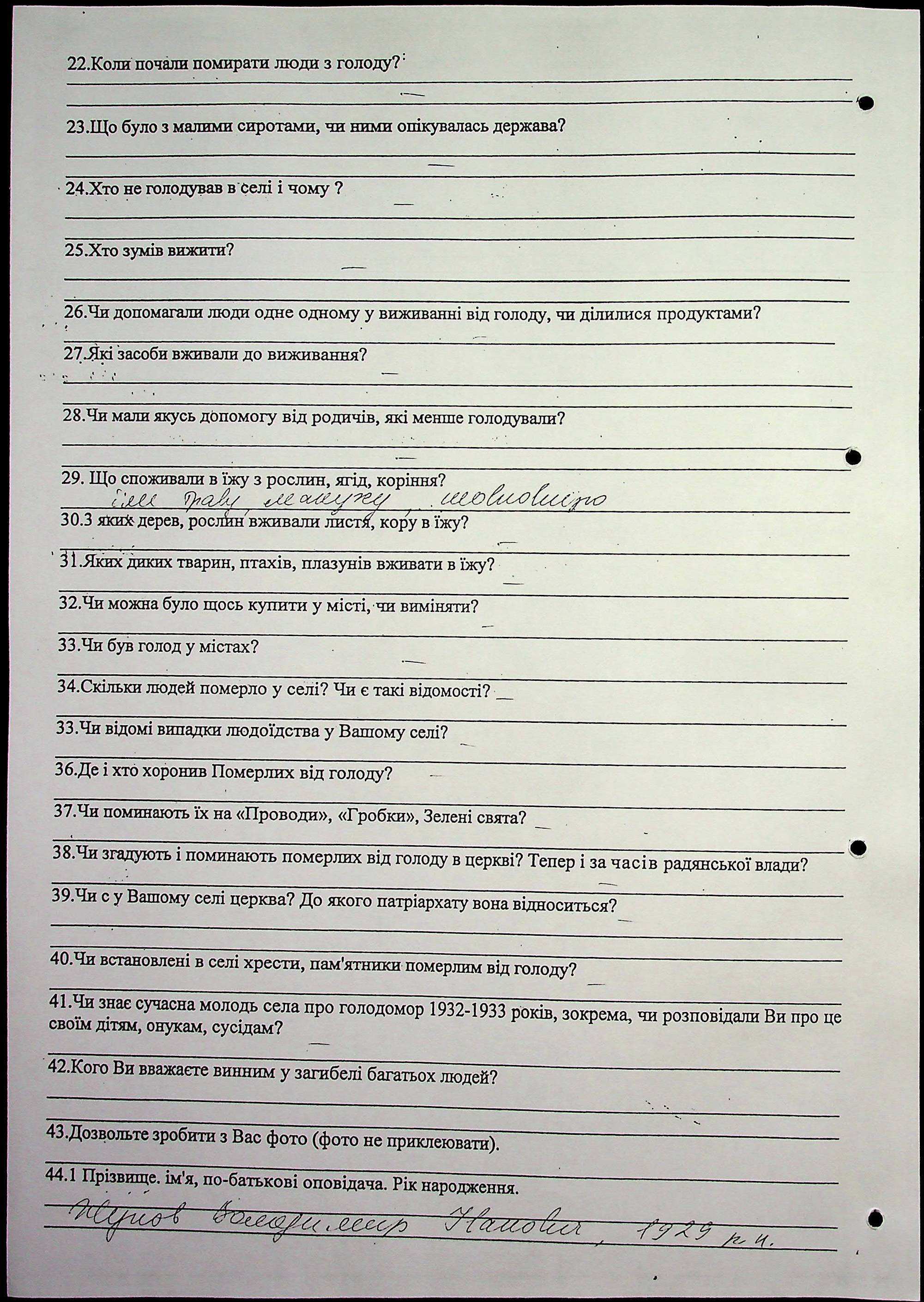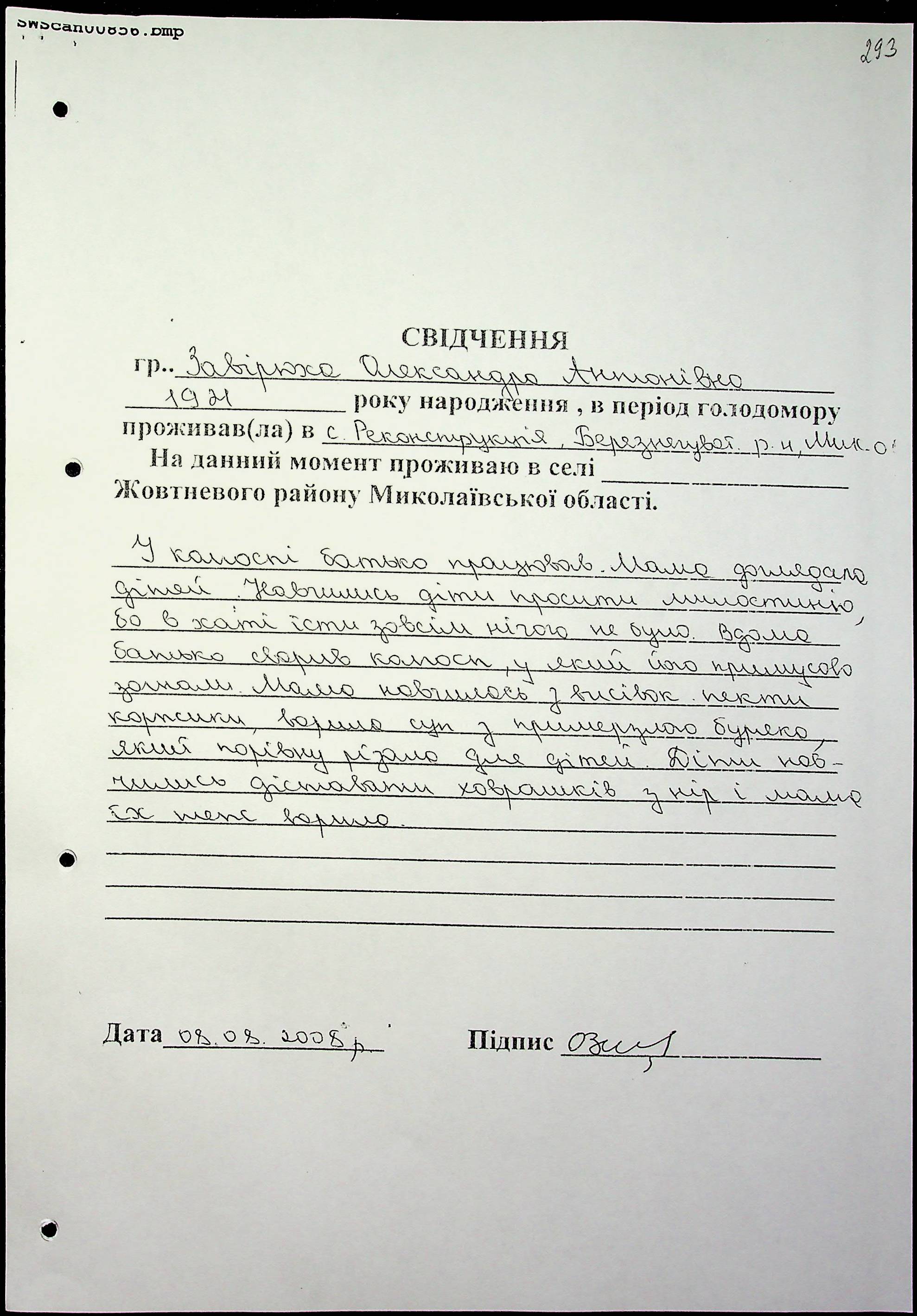 • • • • Справа № 31 “Свідчення очевидців Голодомору 1932-1933 років, які проживають у Жовтневому районі, з прізвищами на літери А–З”