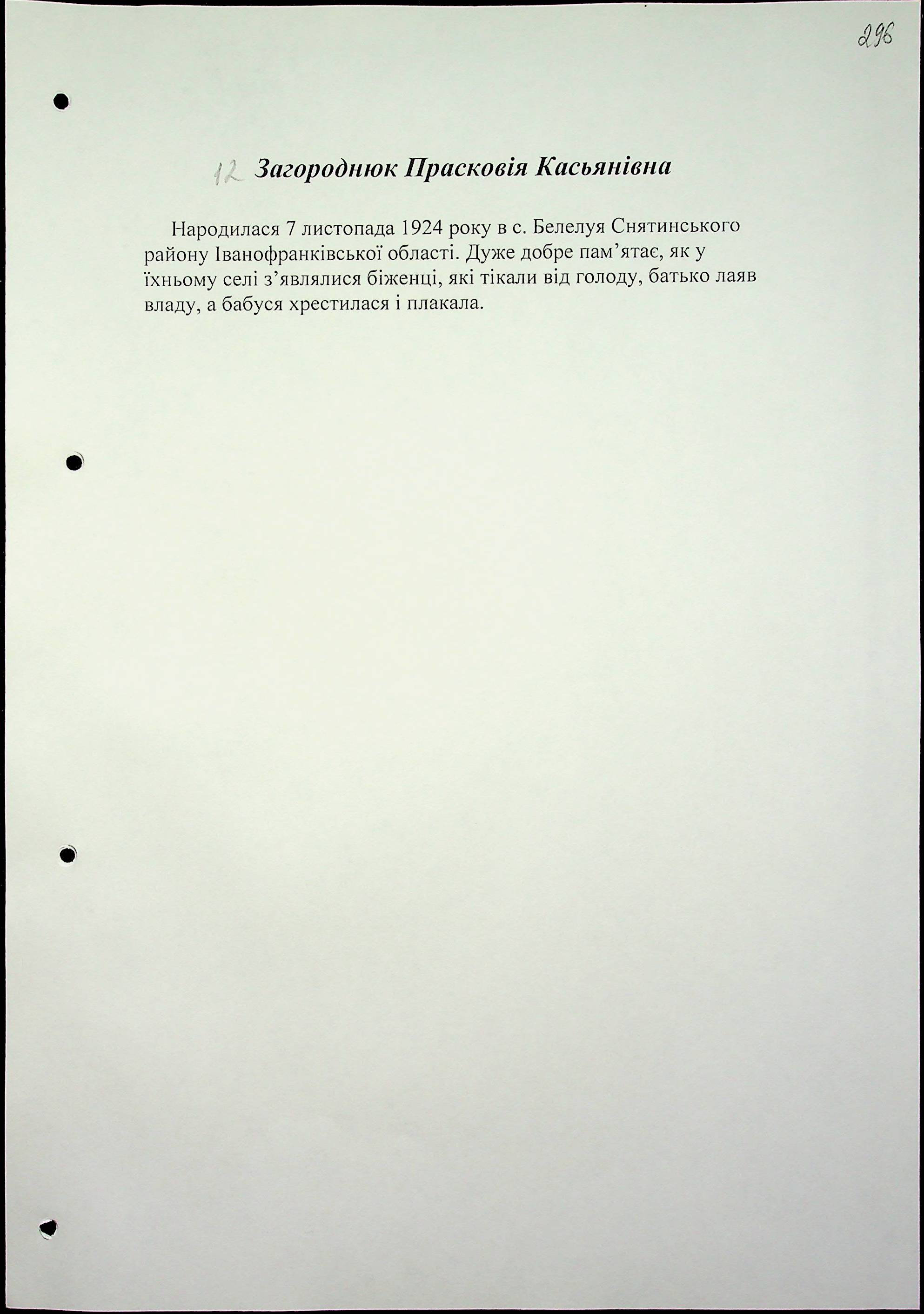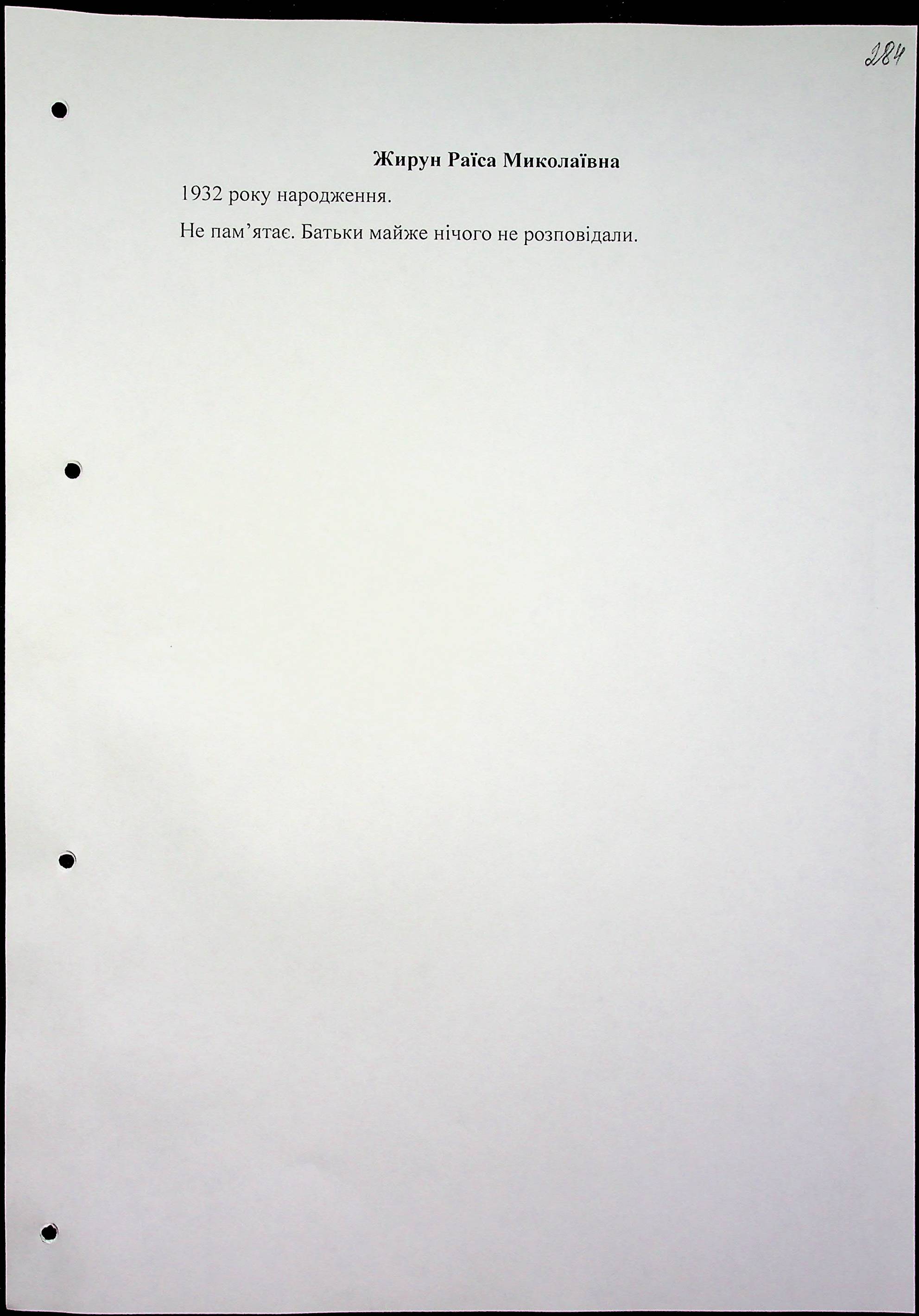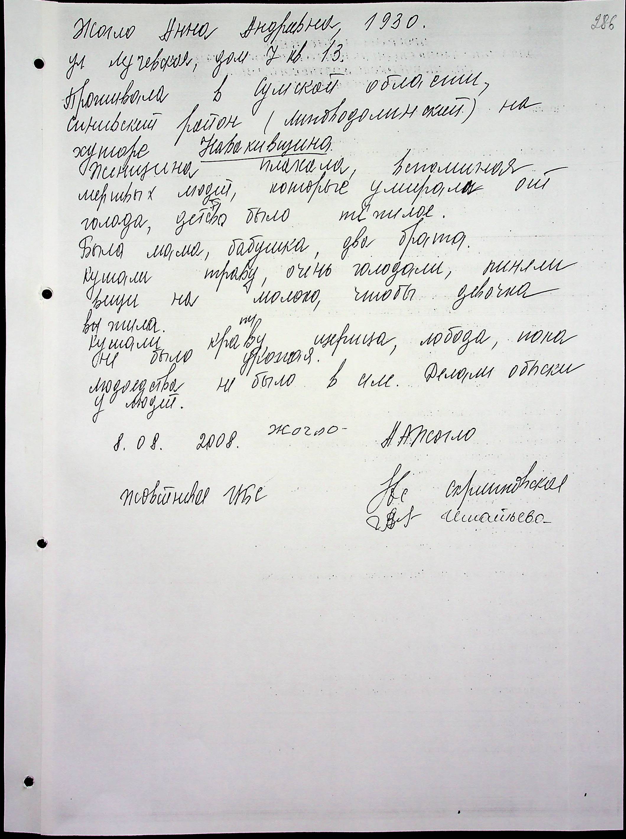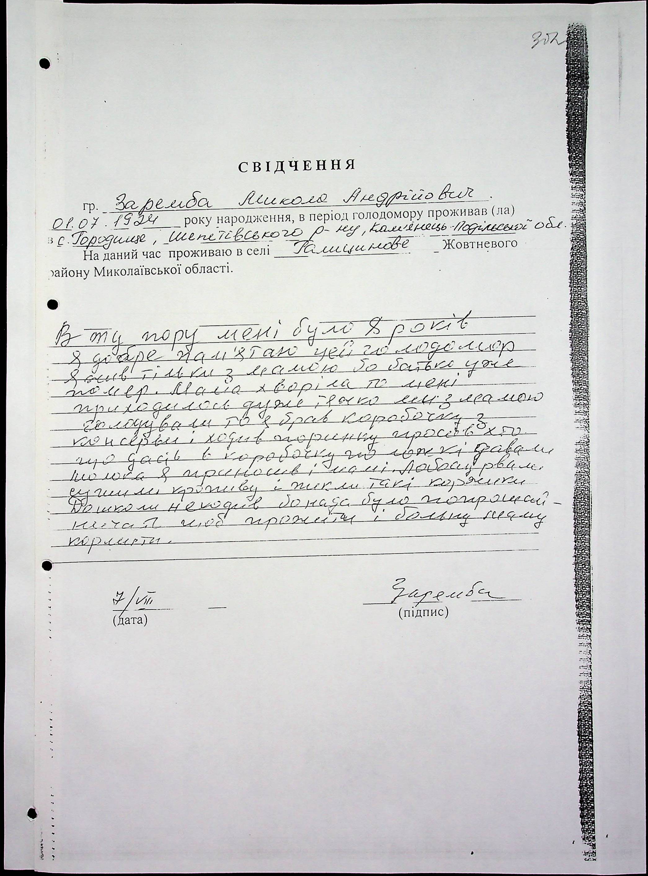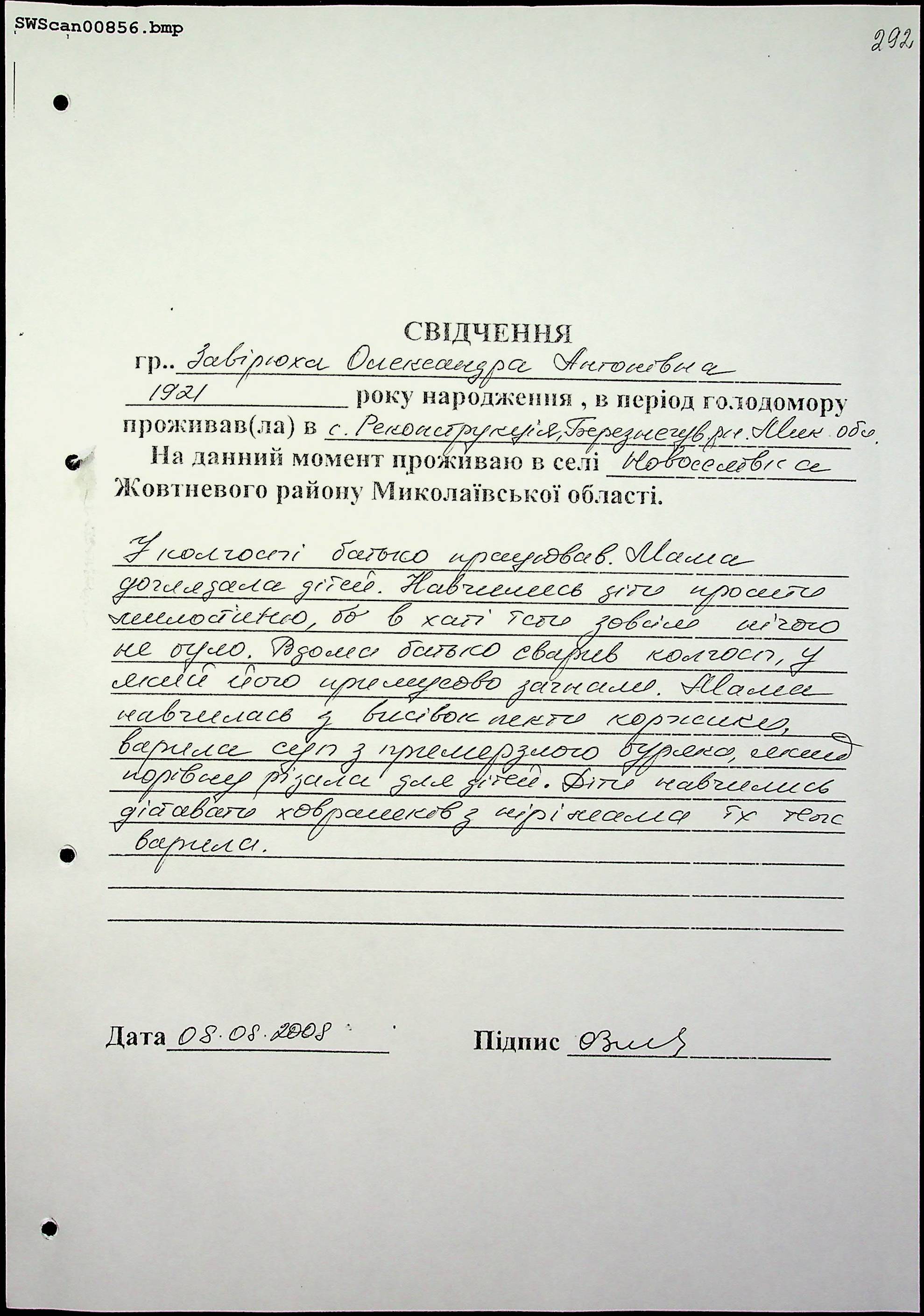 • • • • Справа № 31 “Свідчення очевидців Голодомору 1932-1933 років, які проживають у Жовтневому районі, з прізвищами на літери А–З”