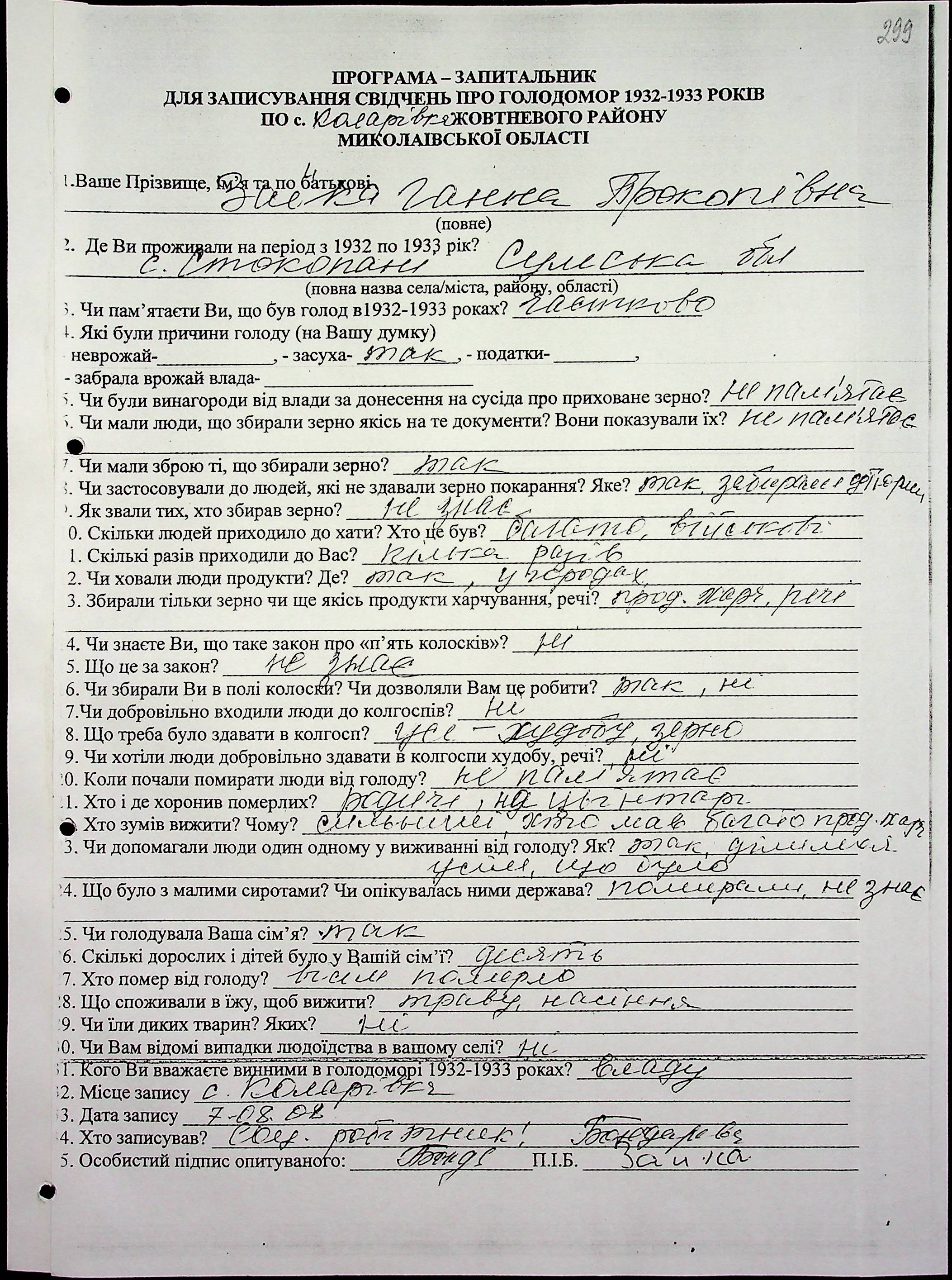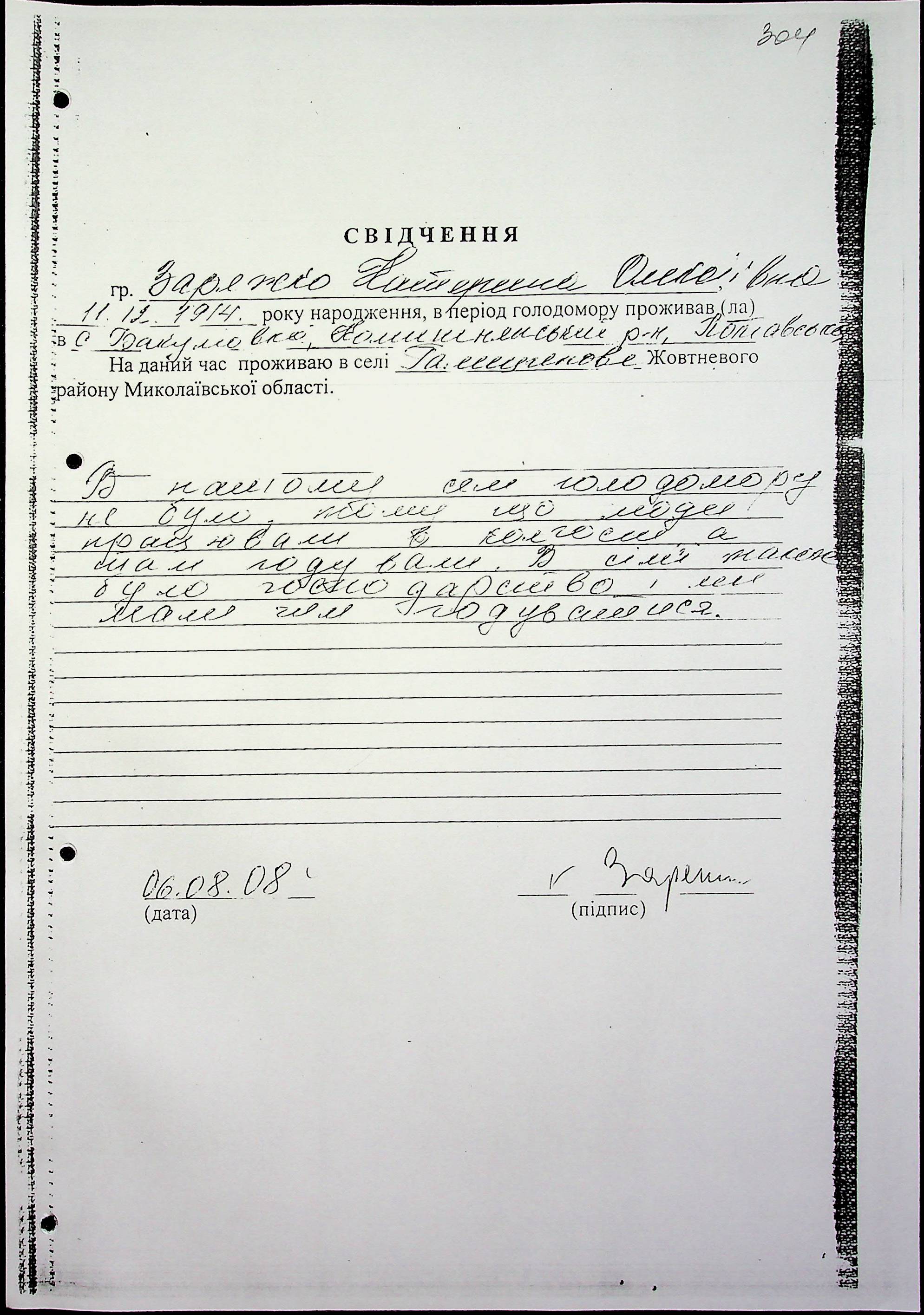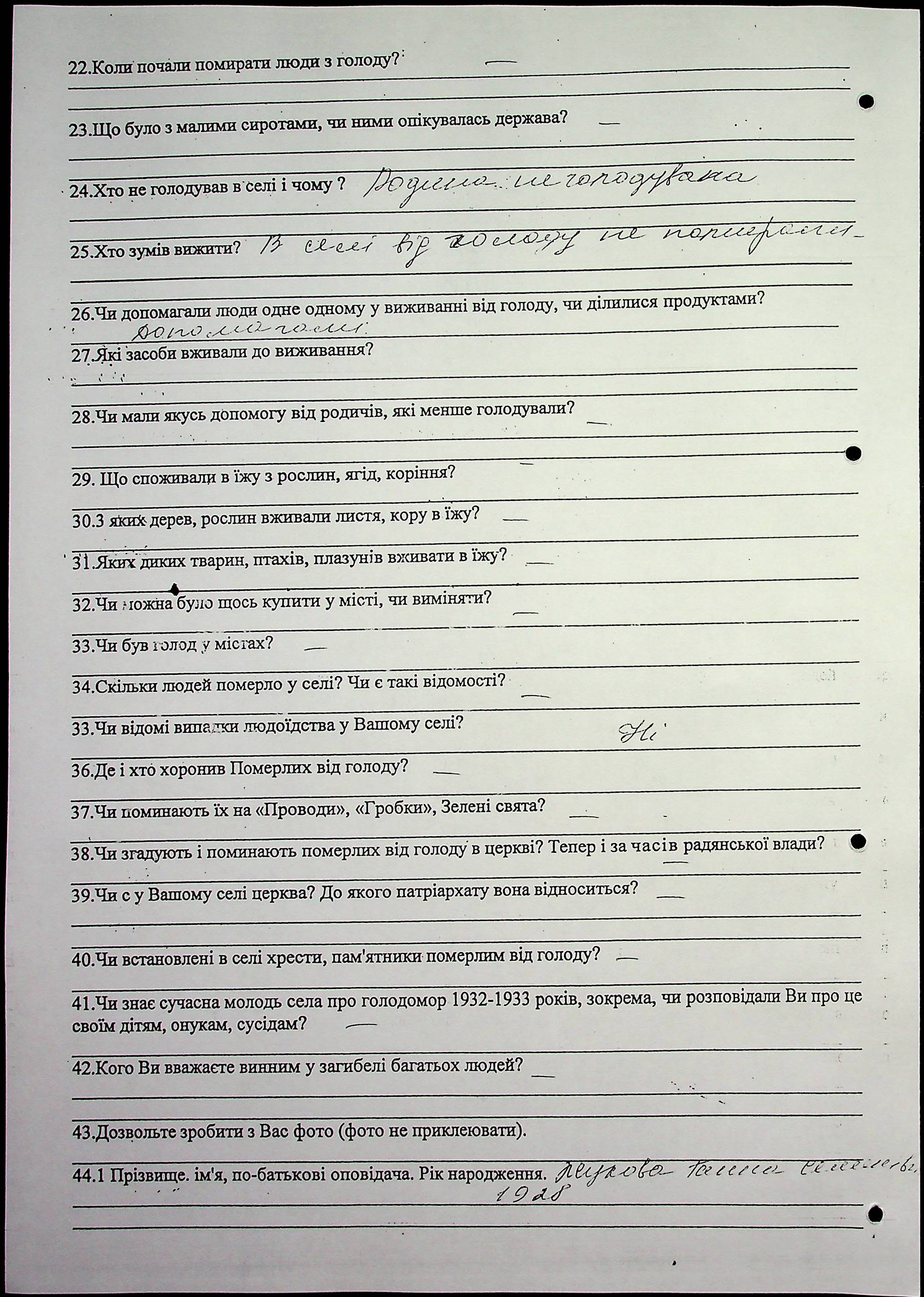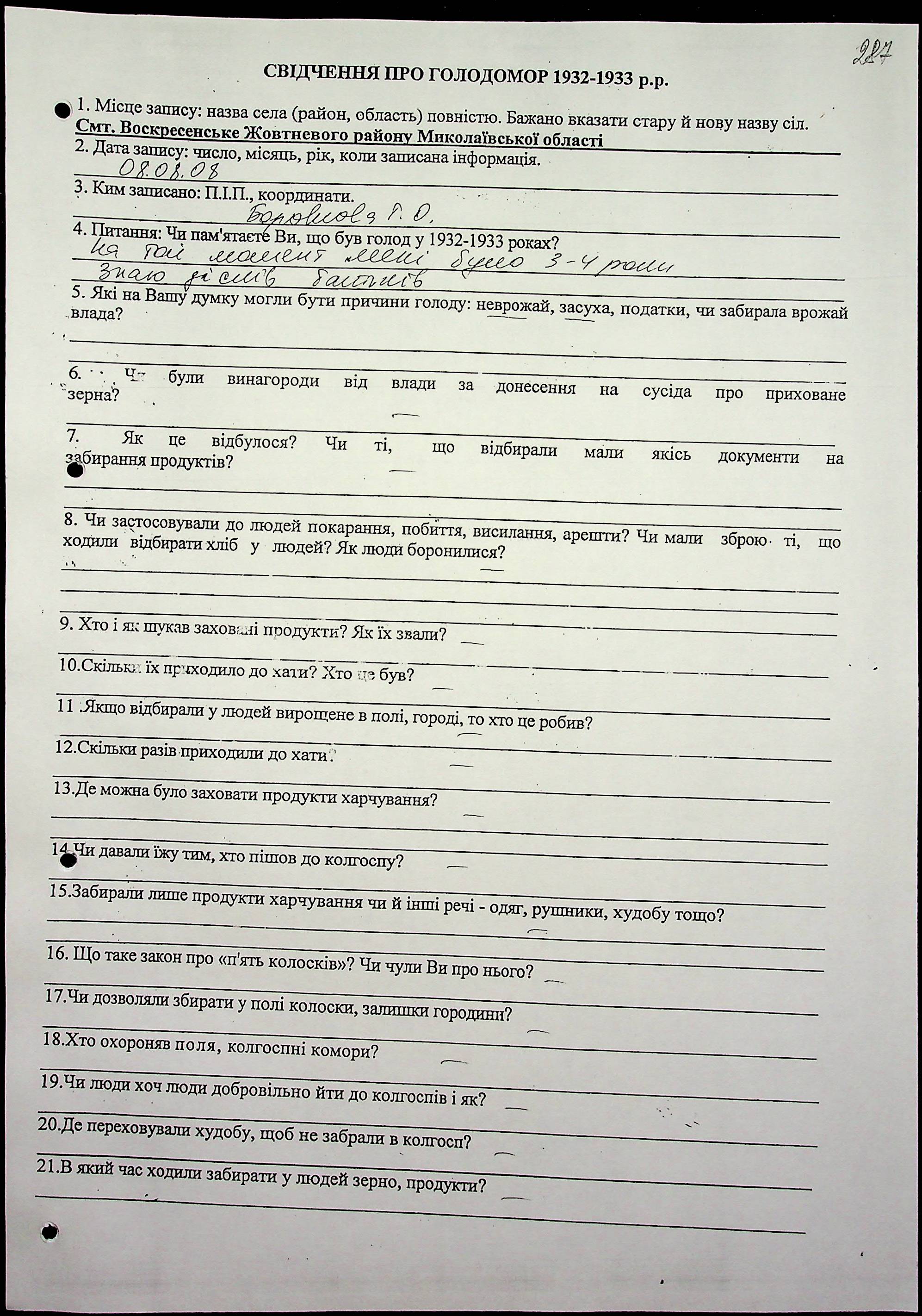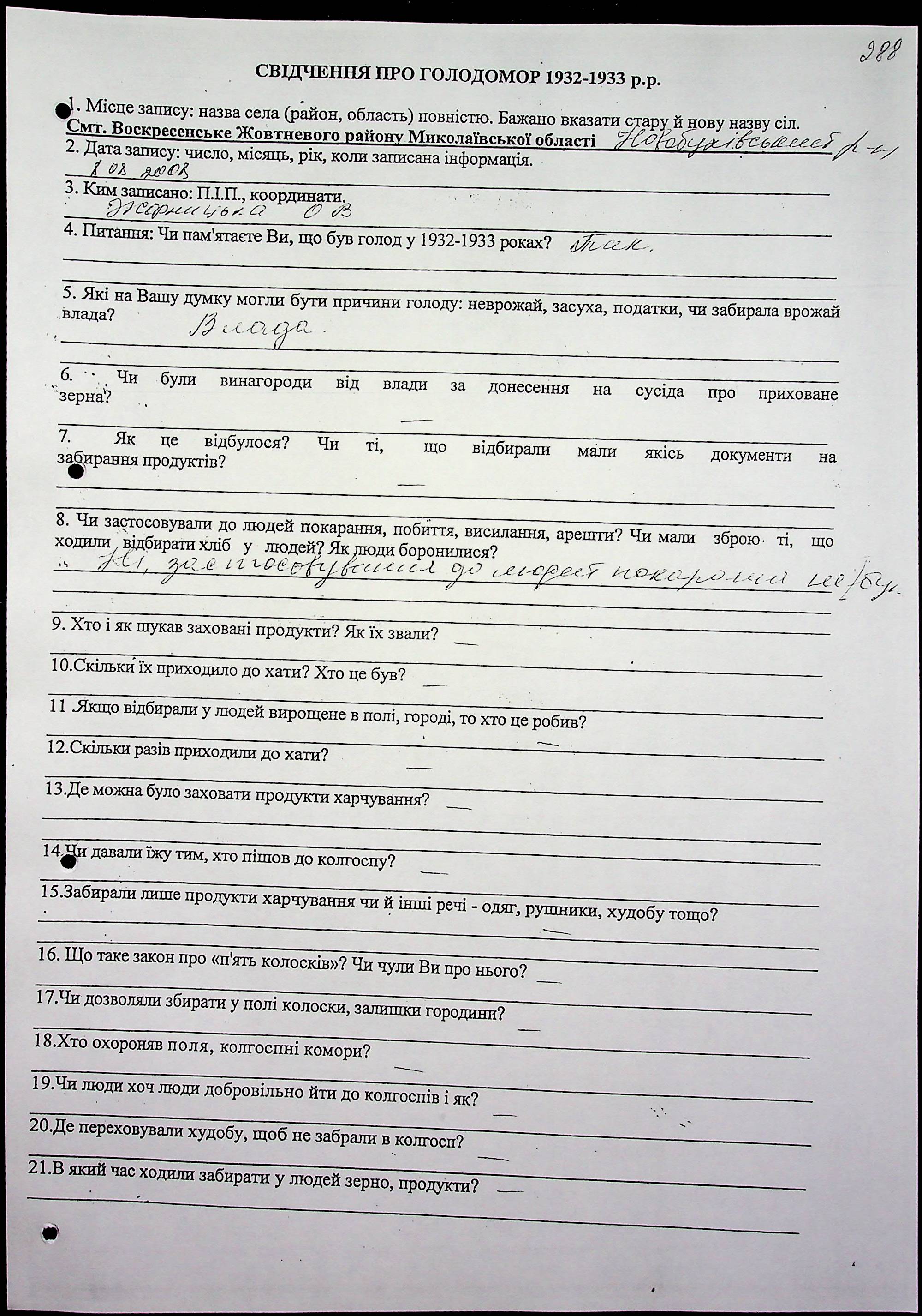◦ ◦ Фонд № 6146 “Колекція свідчень очевидців Голодомору 1932-1933 рр., нині проживаючих у Миколаївській області”