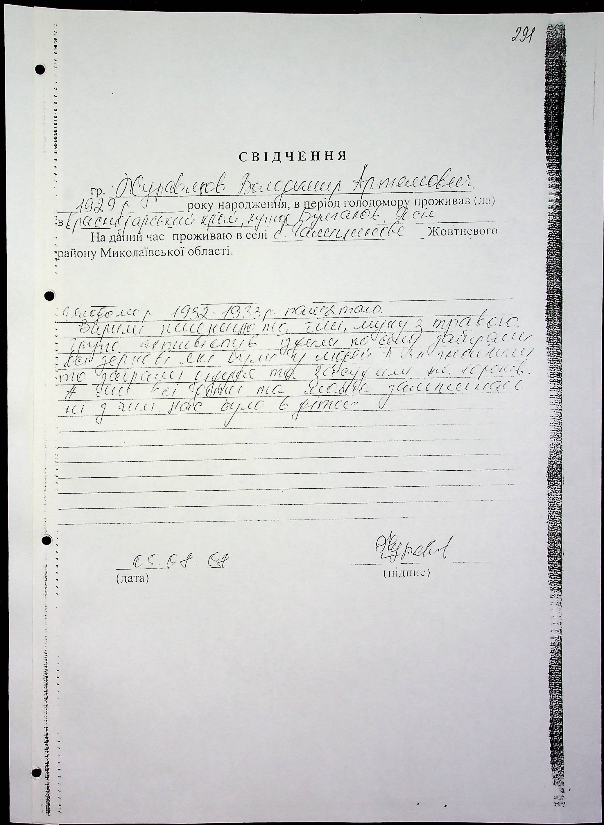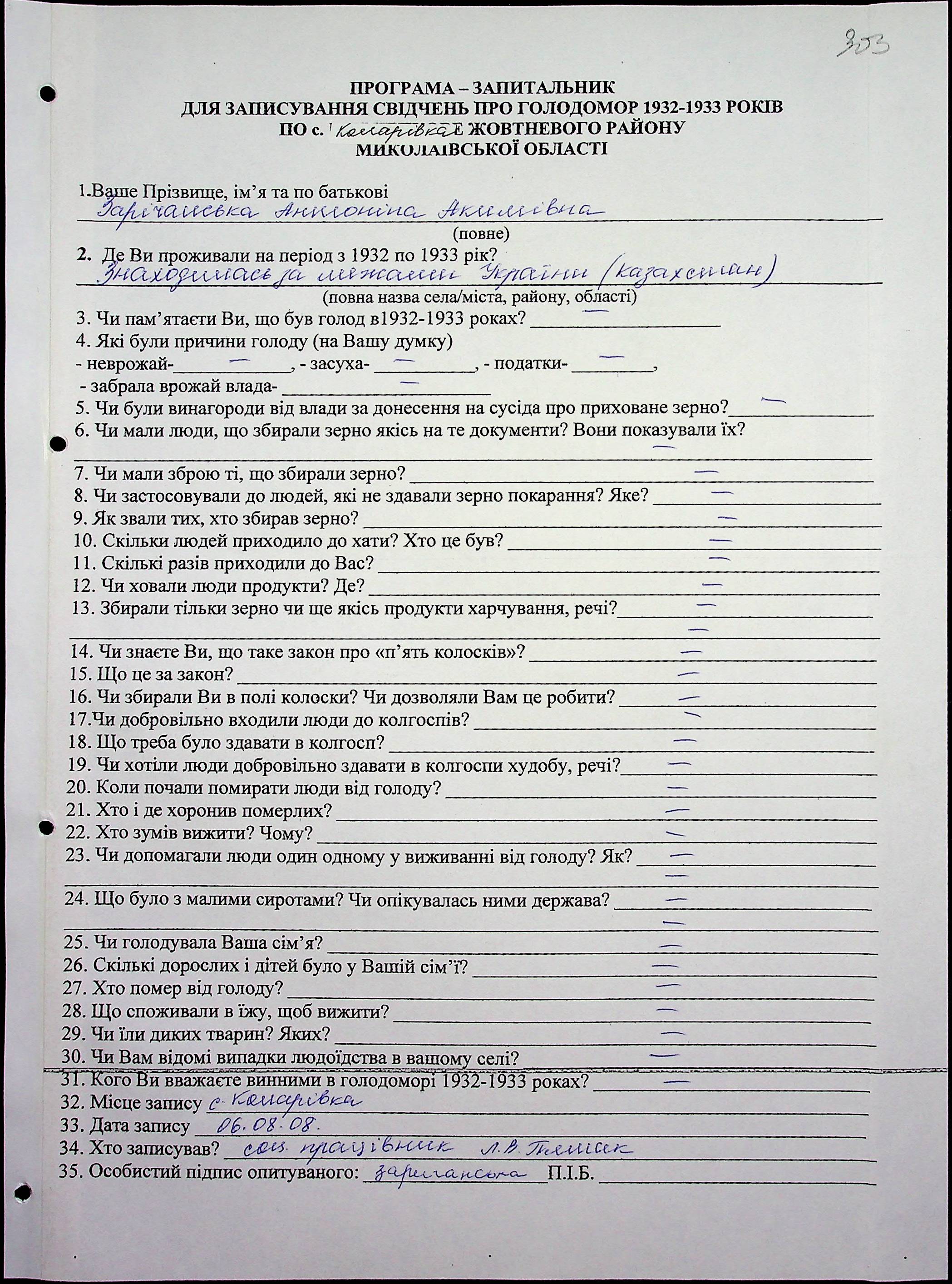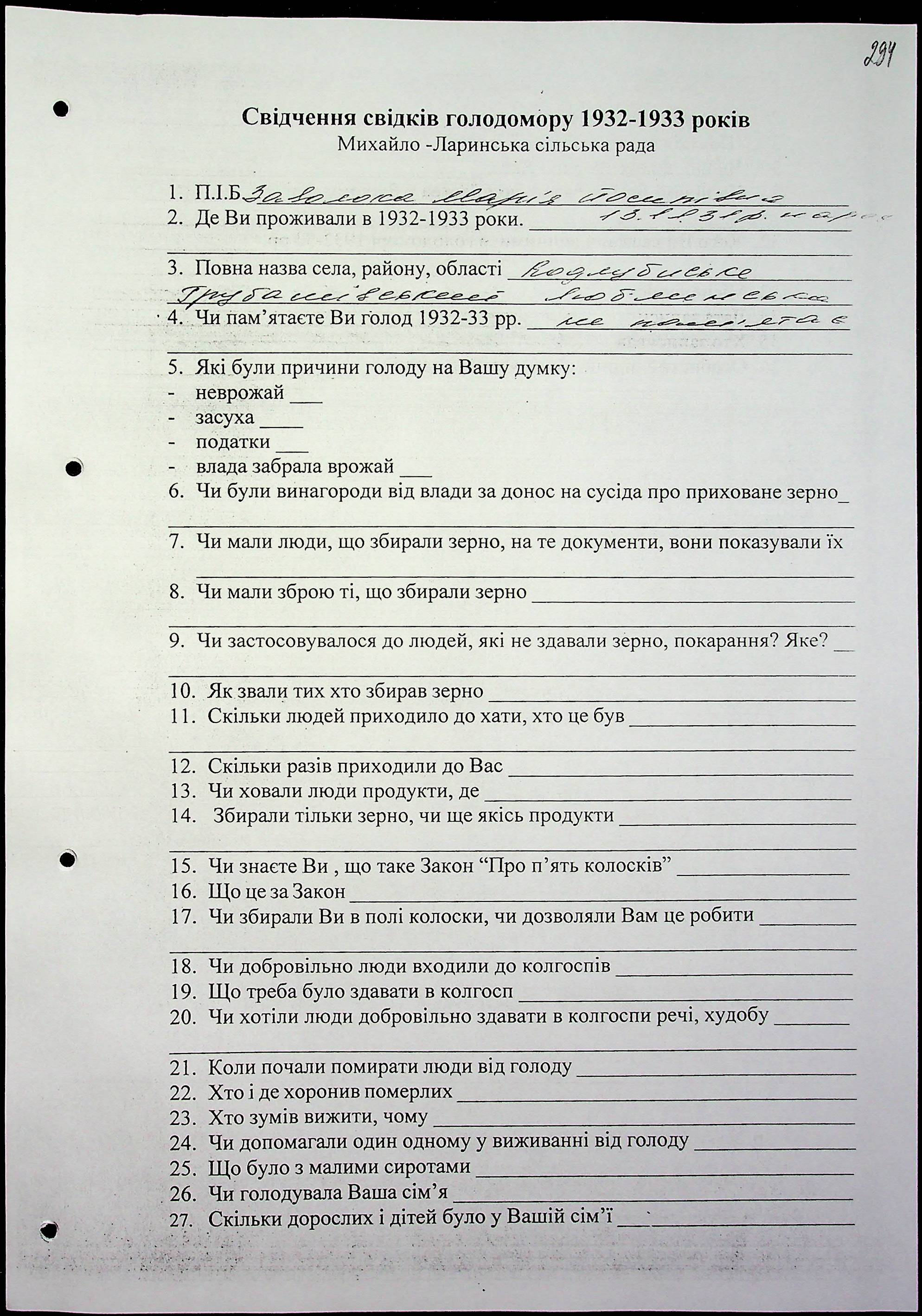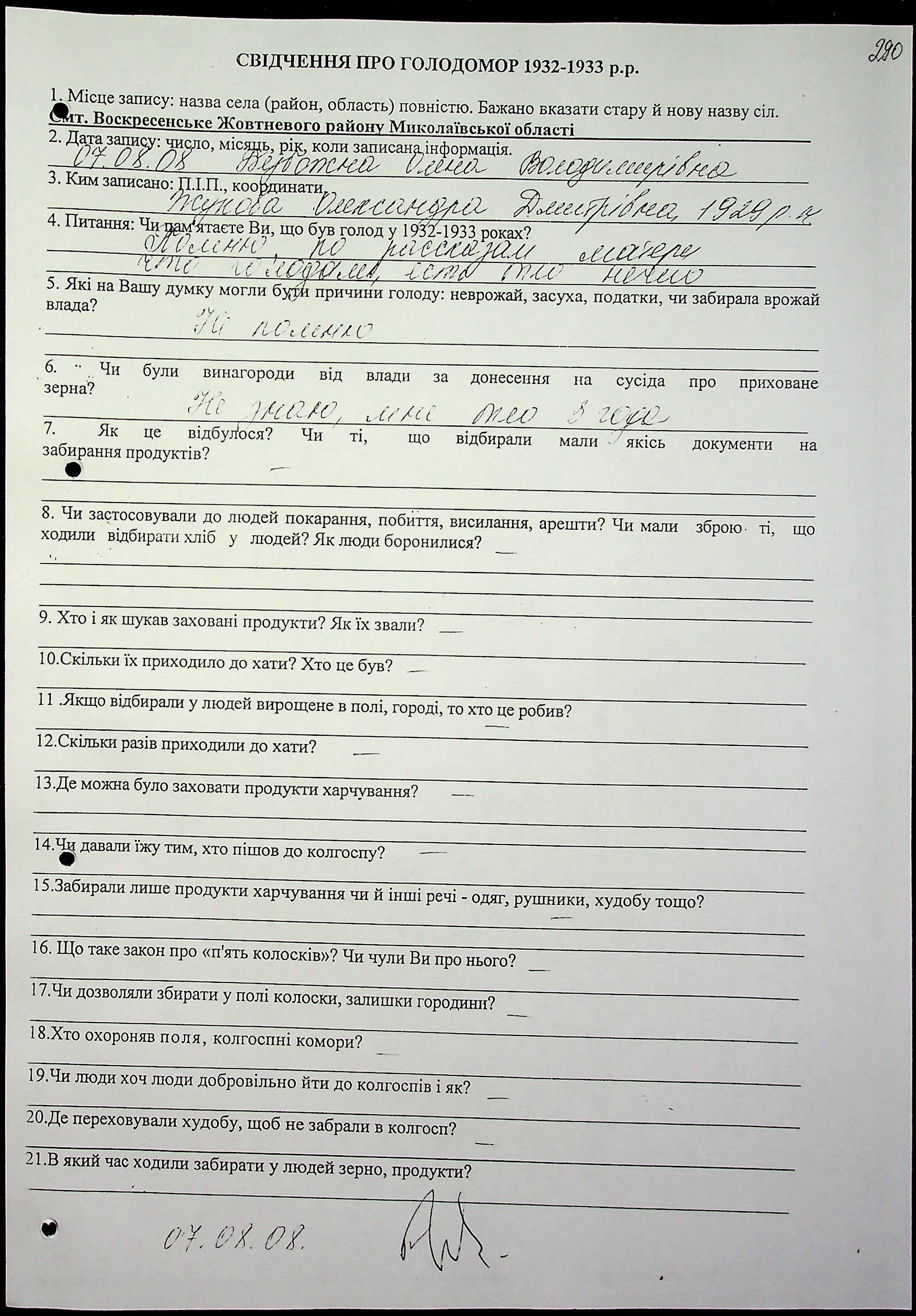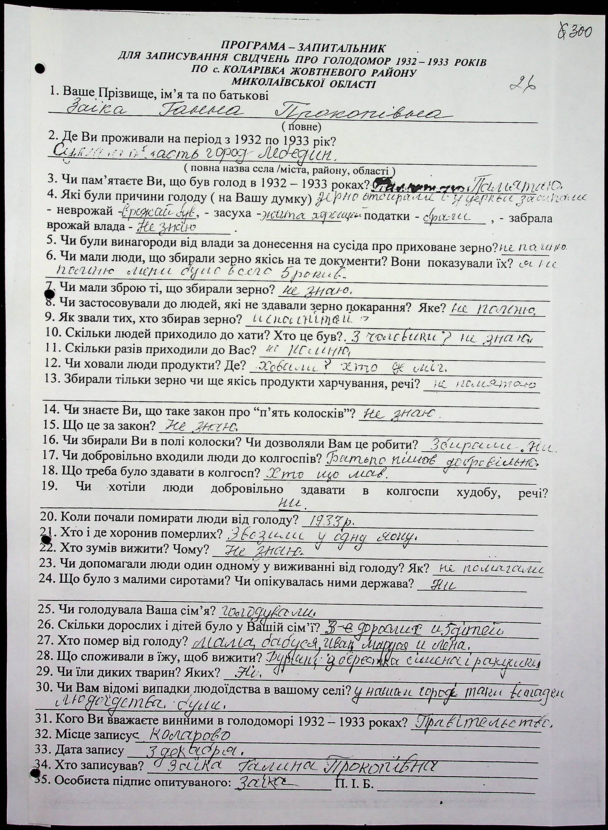 ◦ ◦ Фонд № 6146 “Колекція свідчень очевидців Голодомору 1932-1933 рр., нині проживаючих у Миколаївській області”
