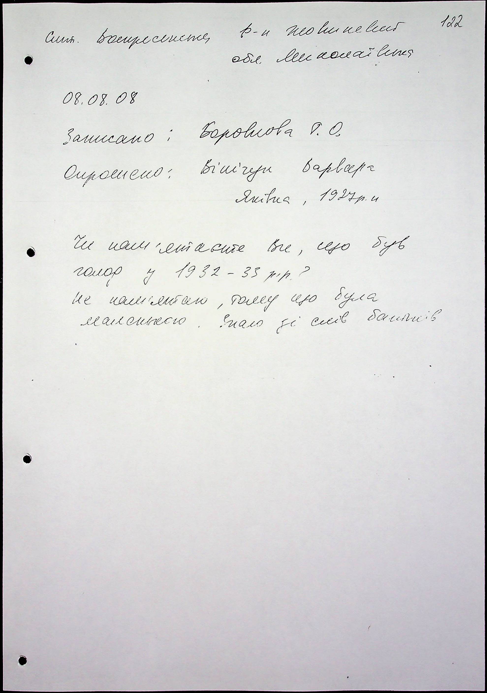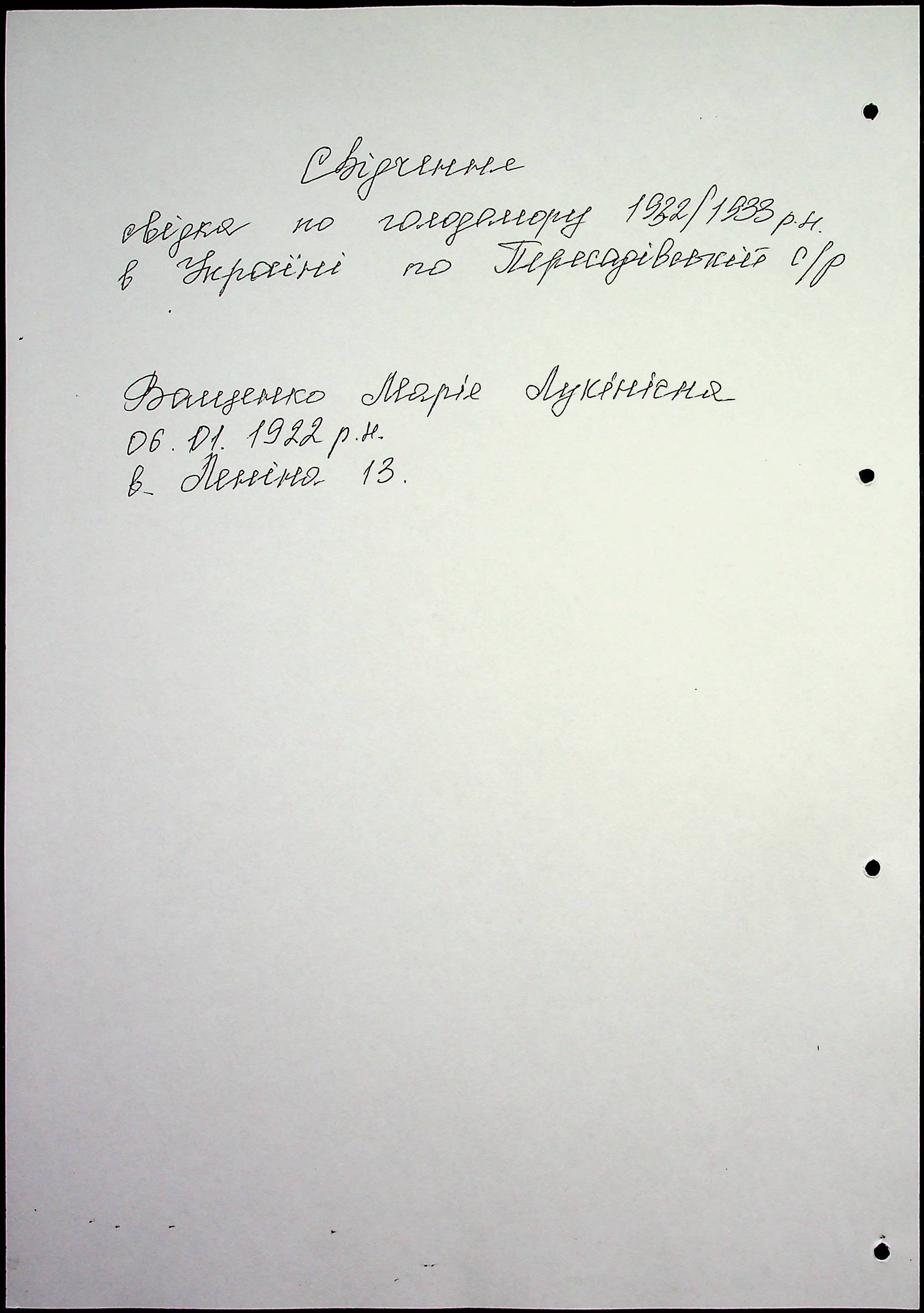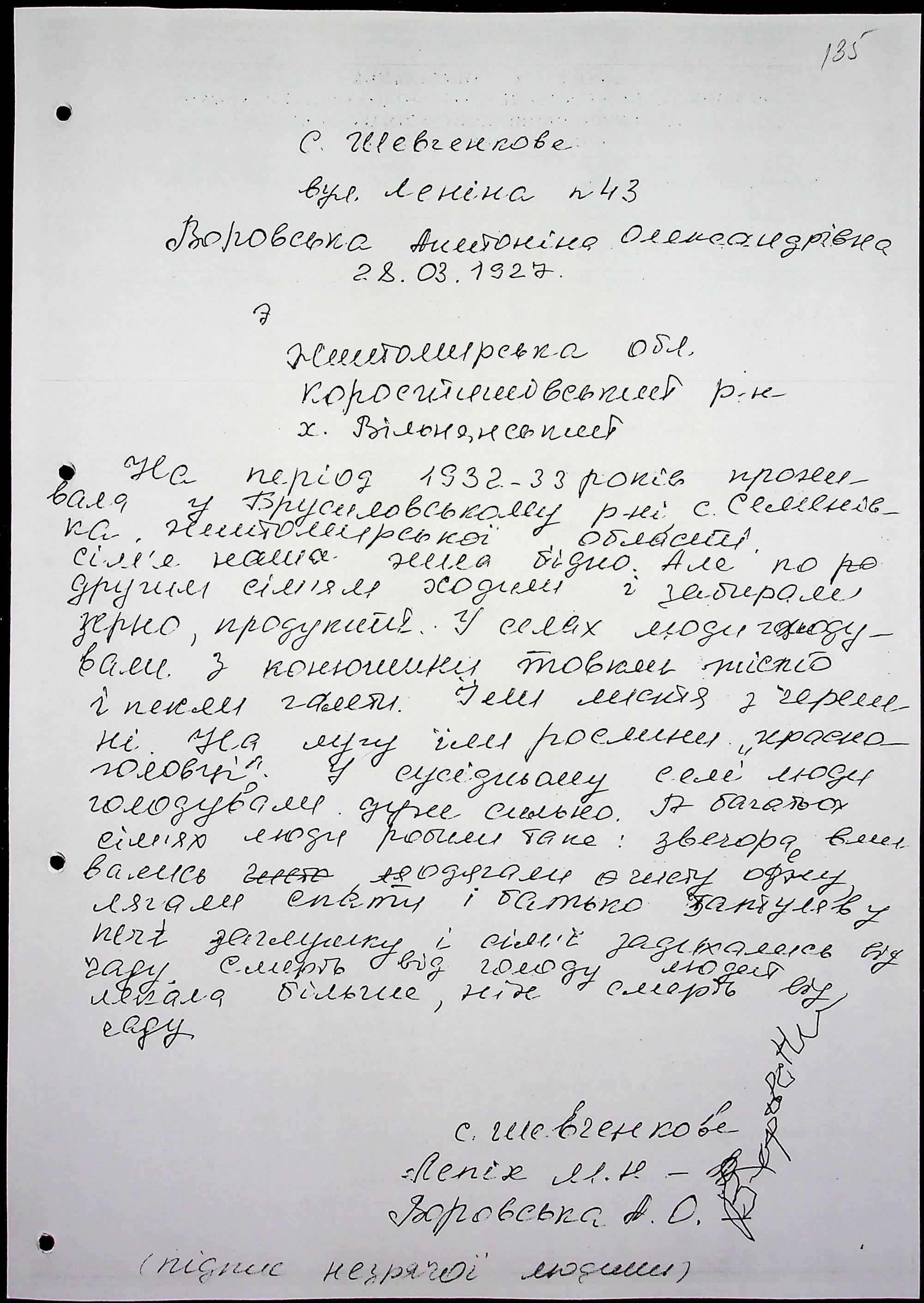 • • • • Справа № 31 “Свідчення очевидців Голодомору 1932-1933 років, які проживають у Жовтневому районі, з прізвищами на літери А–З”