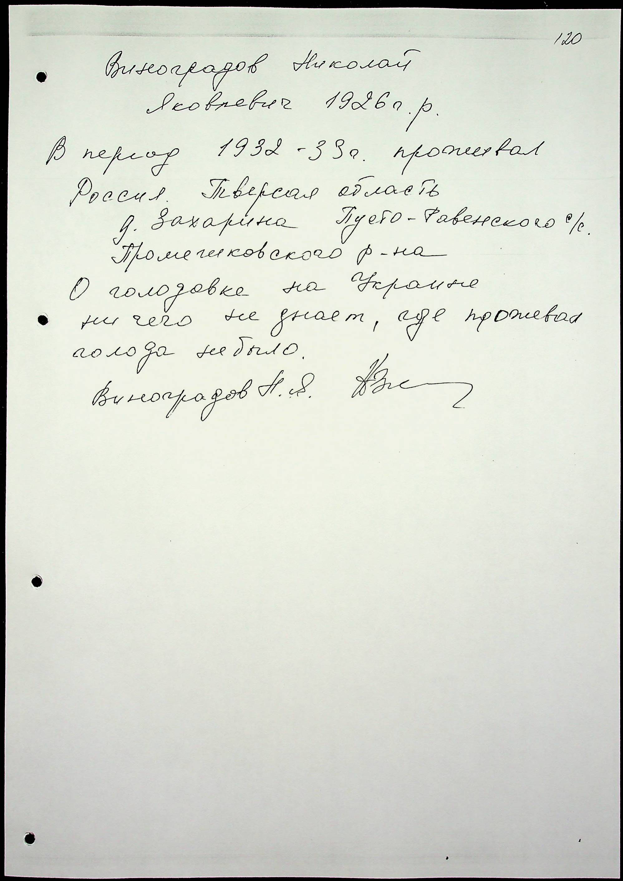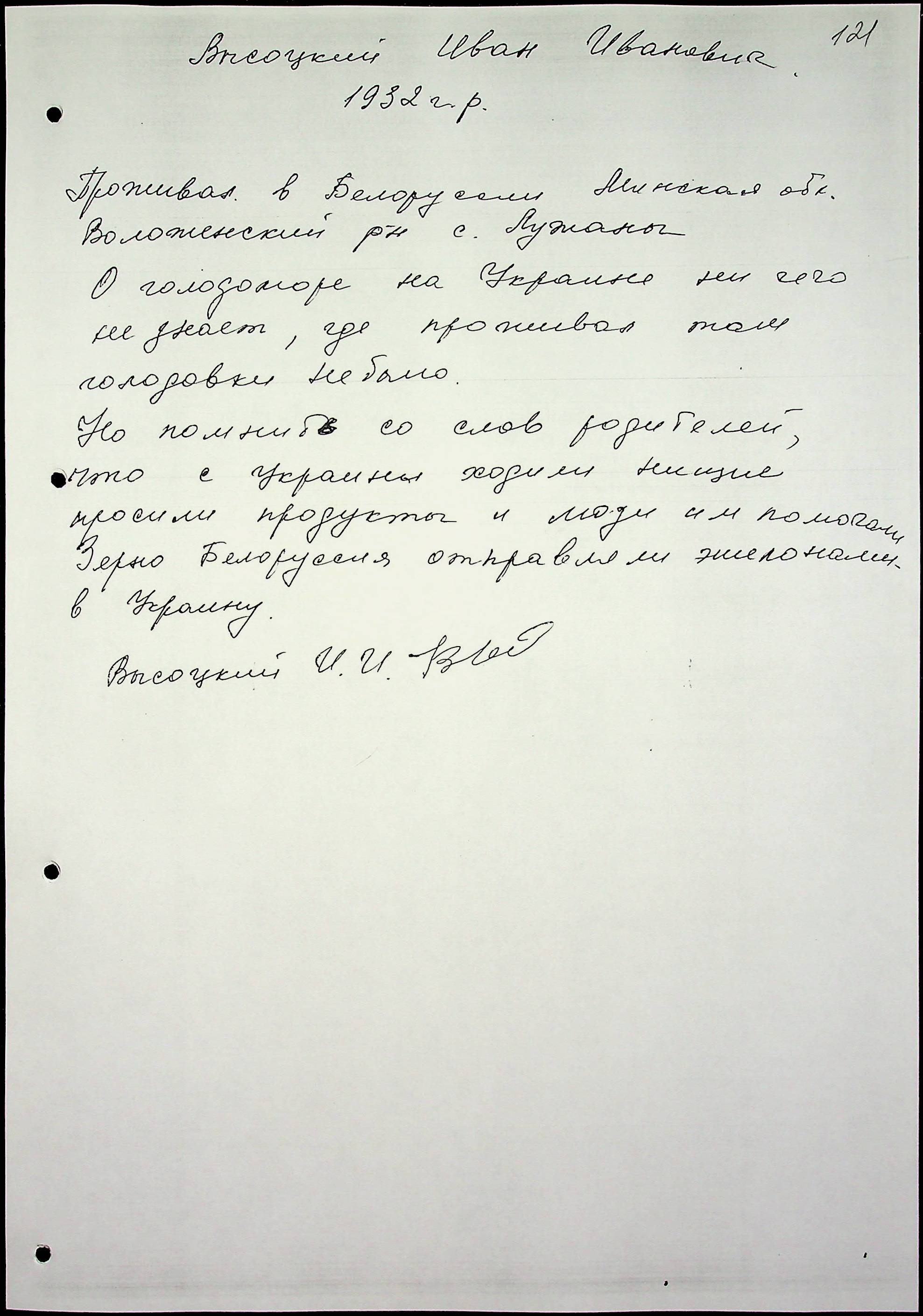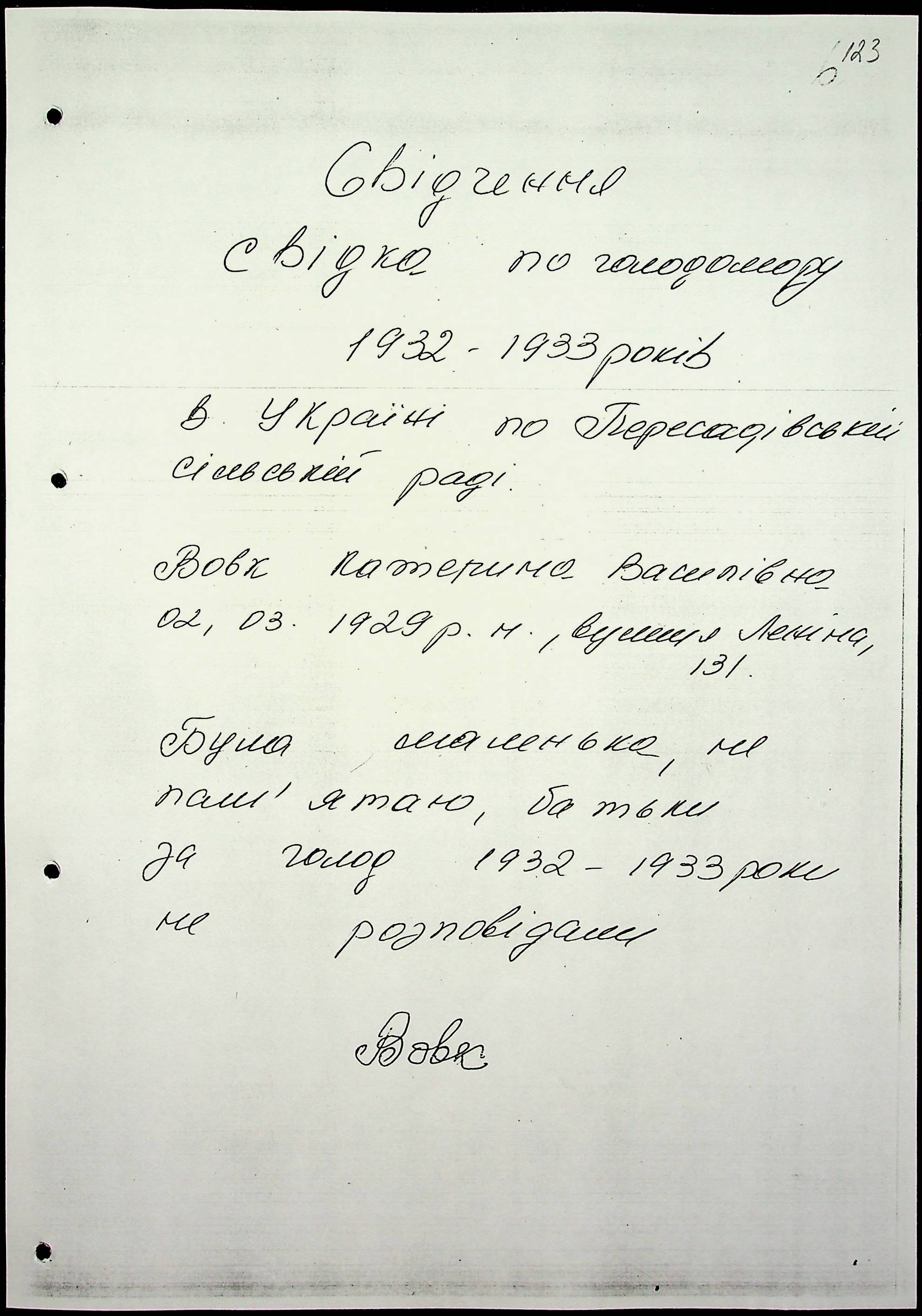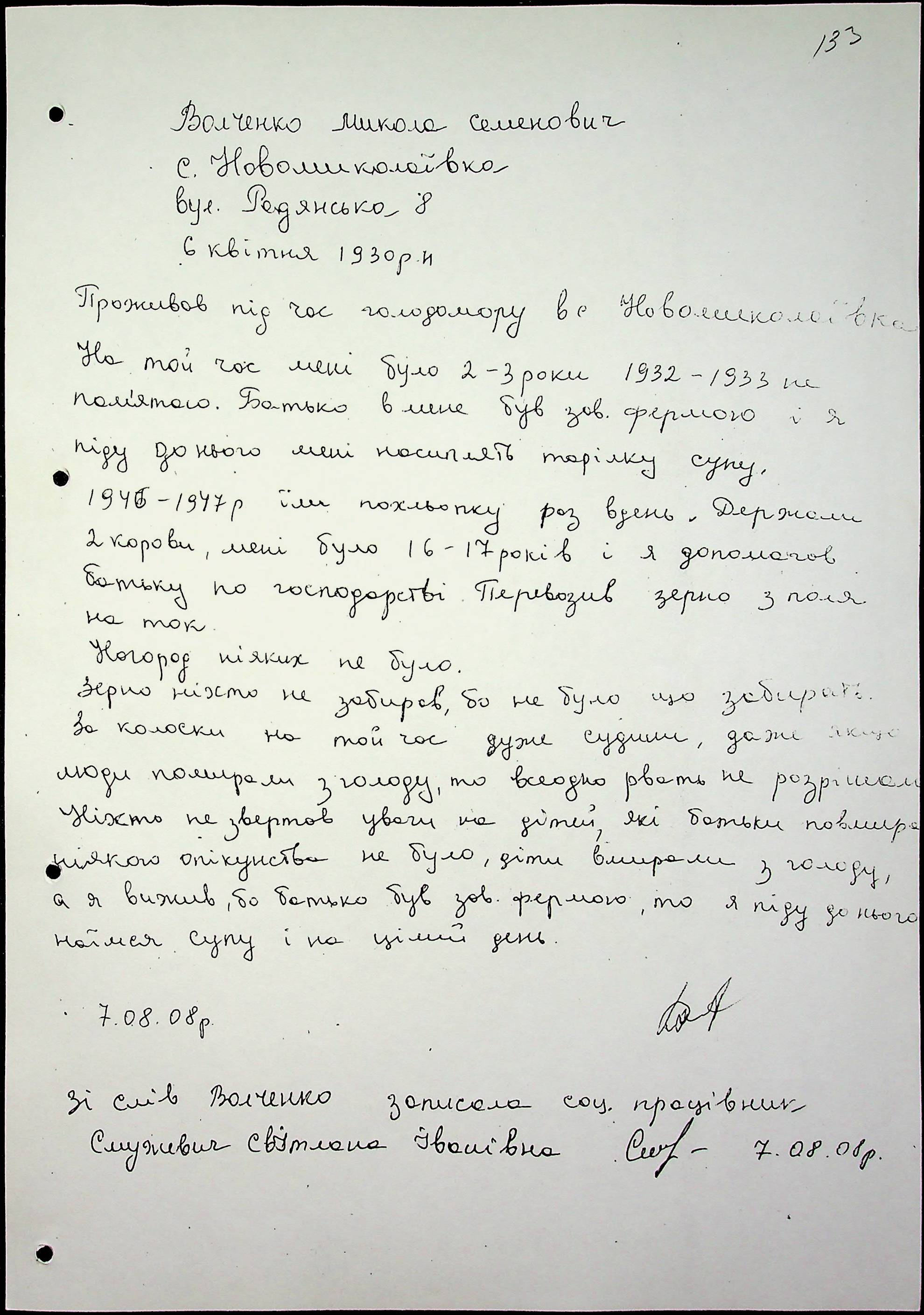 • • • • Справа № 31 “Свідчення очевидців Голодомору 1932-1933 років, які проживають у Жовтневому районі, з прізвищами на літери А–З”