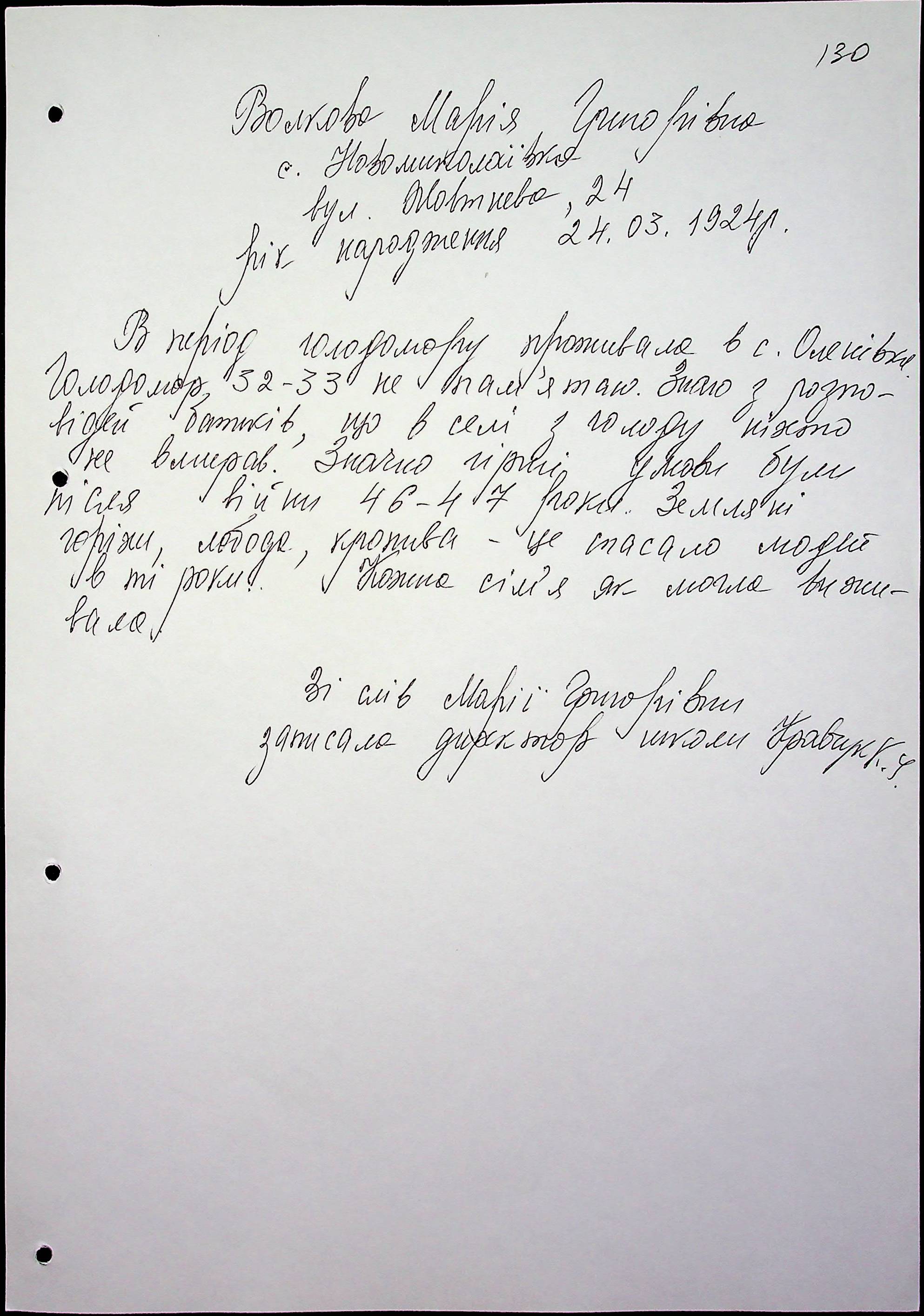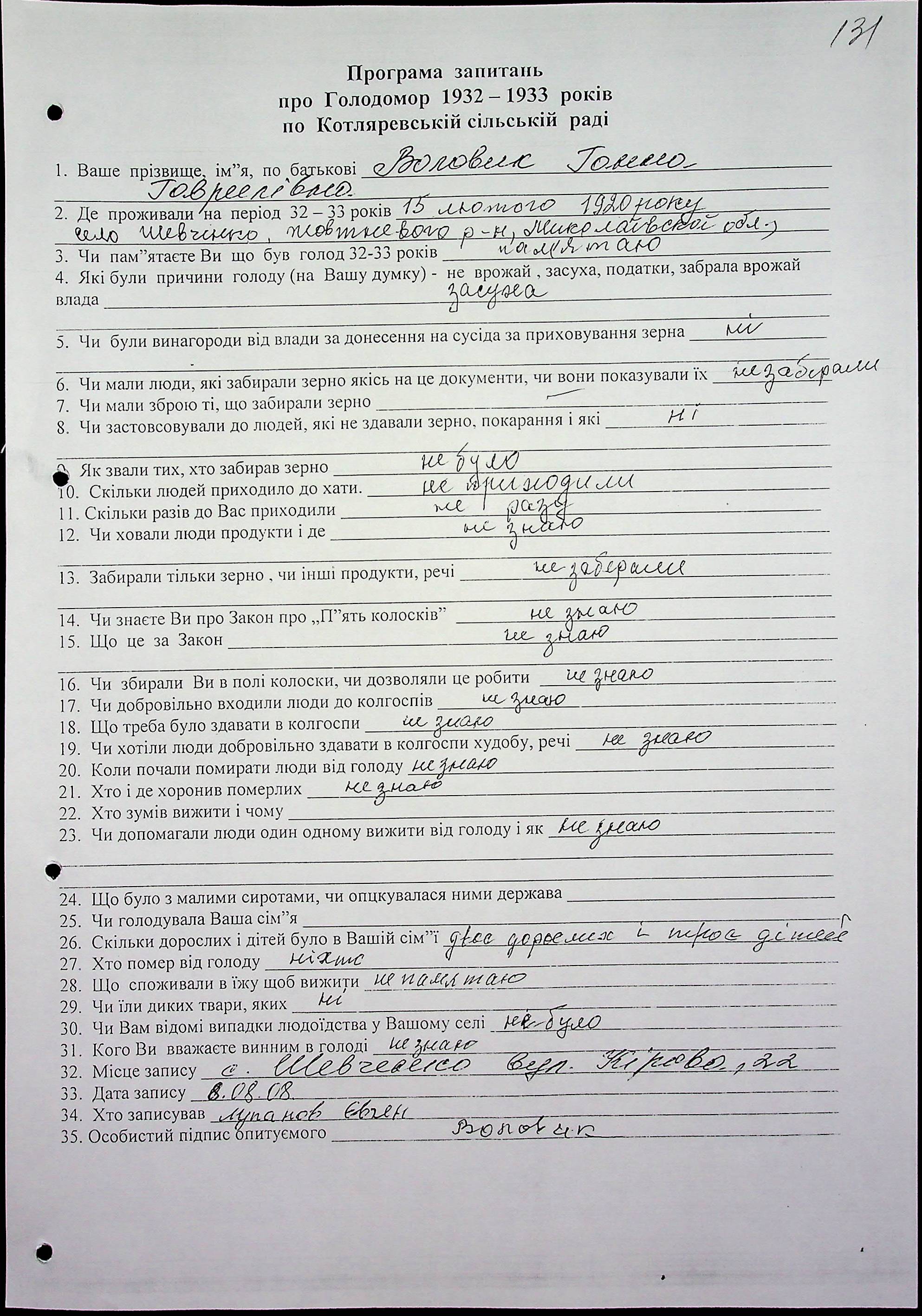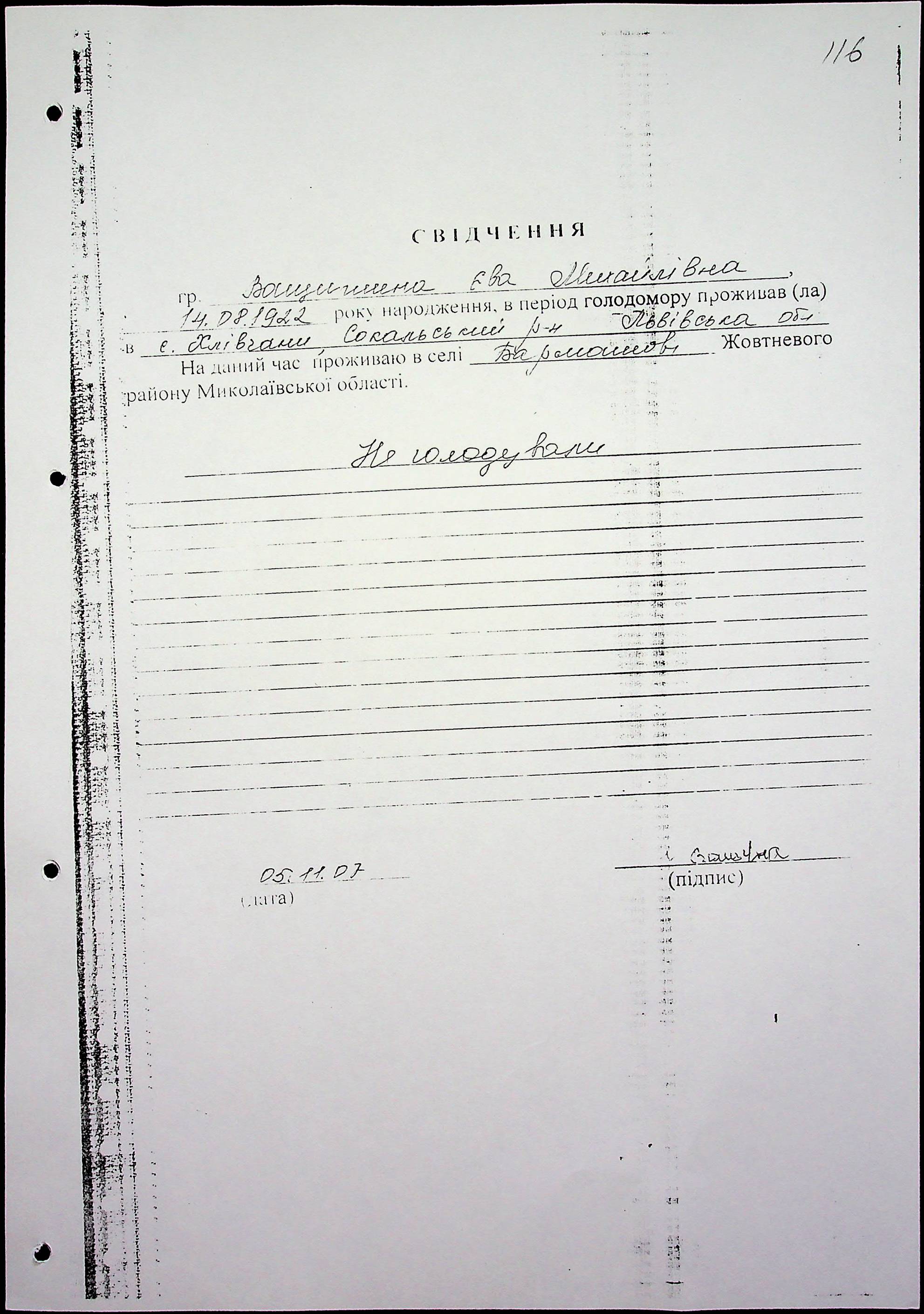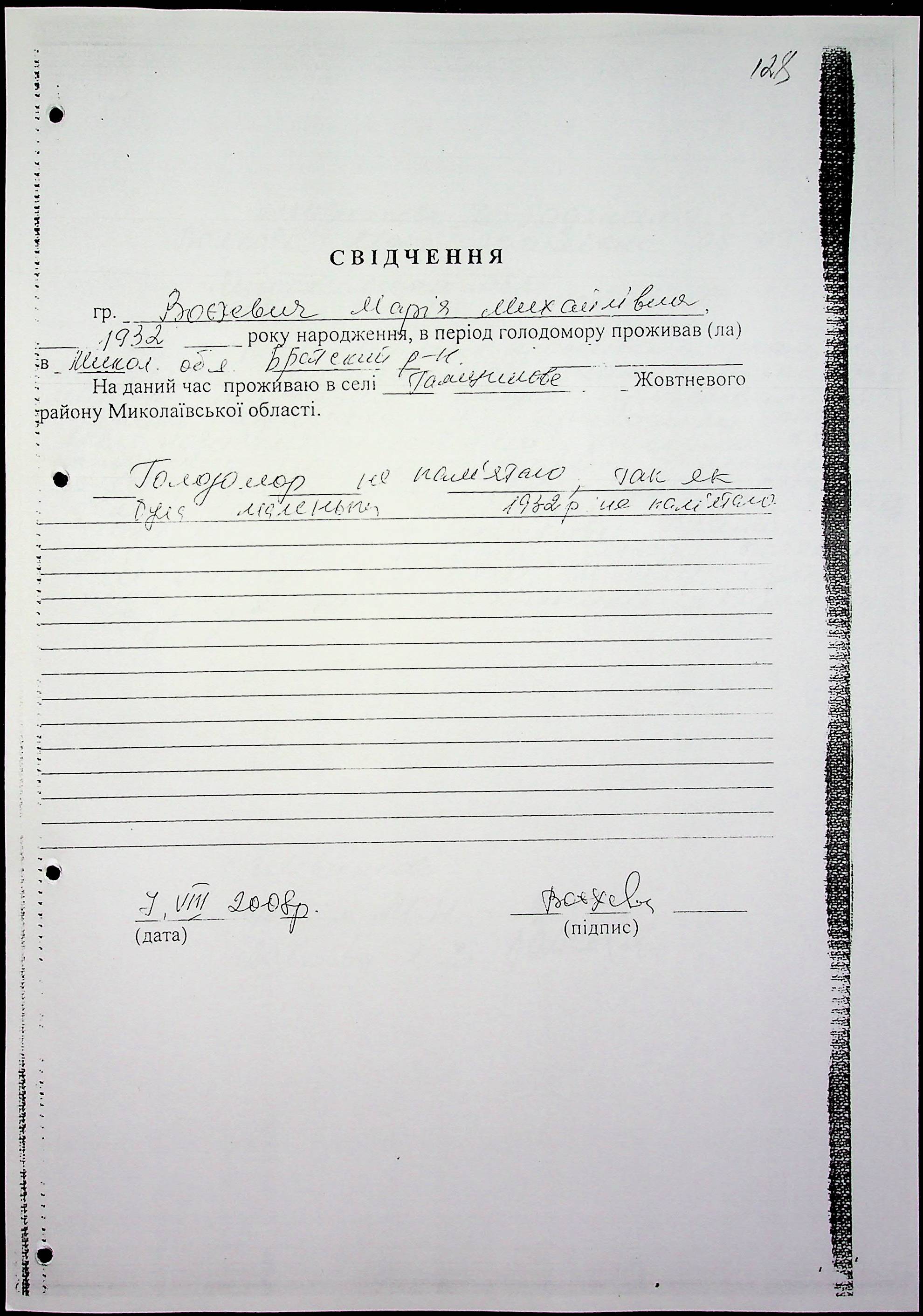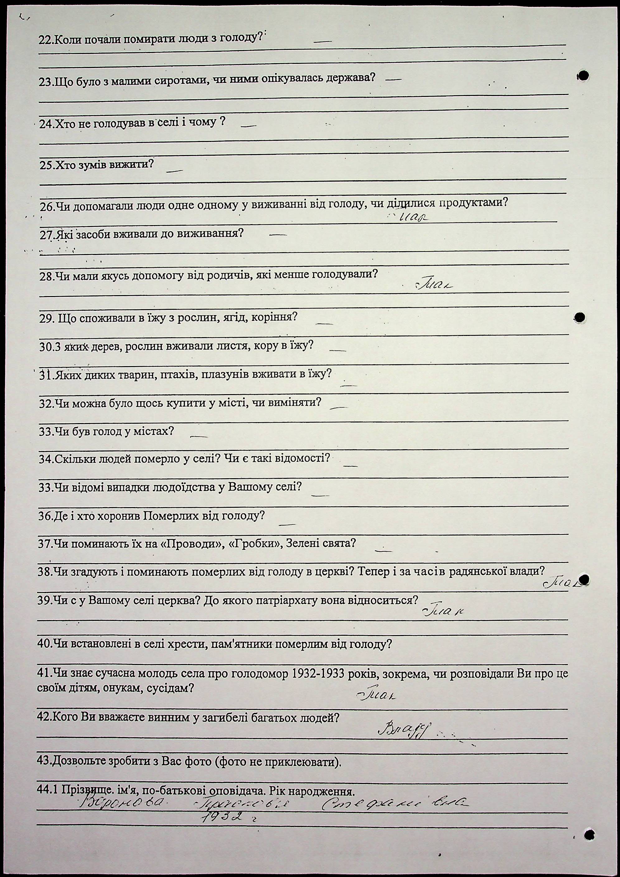 ◦ ◦ Фонд № 6146 “Колекція свідчень очевидців Голодомору 1932-1933 рр., нині проживаючих у Миколаївській області”