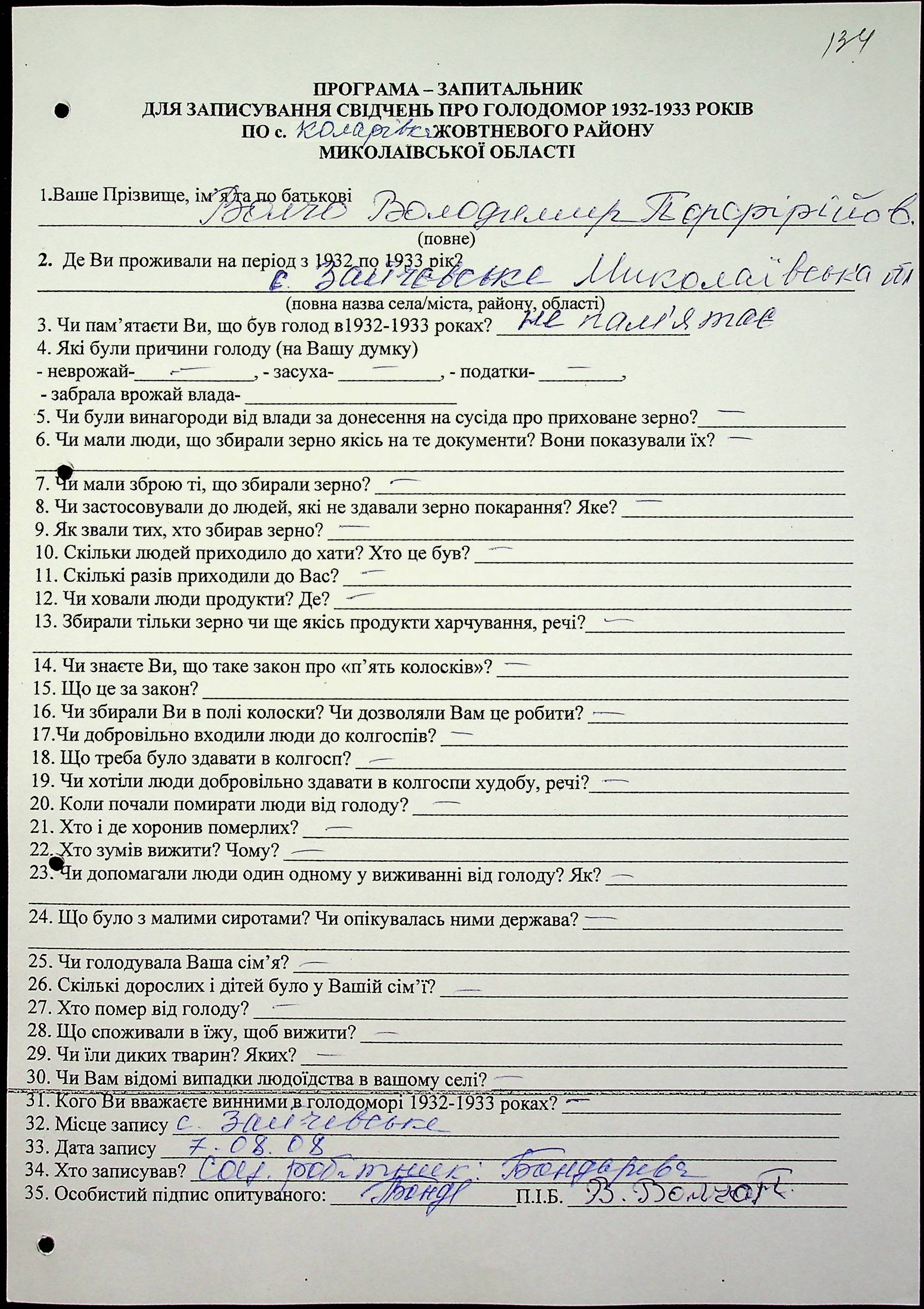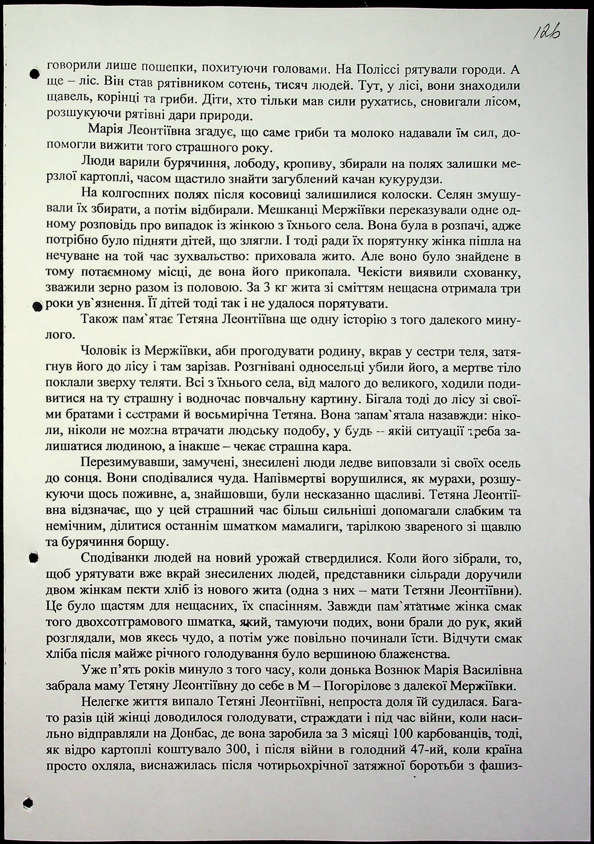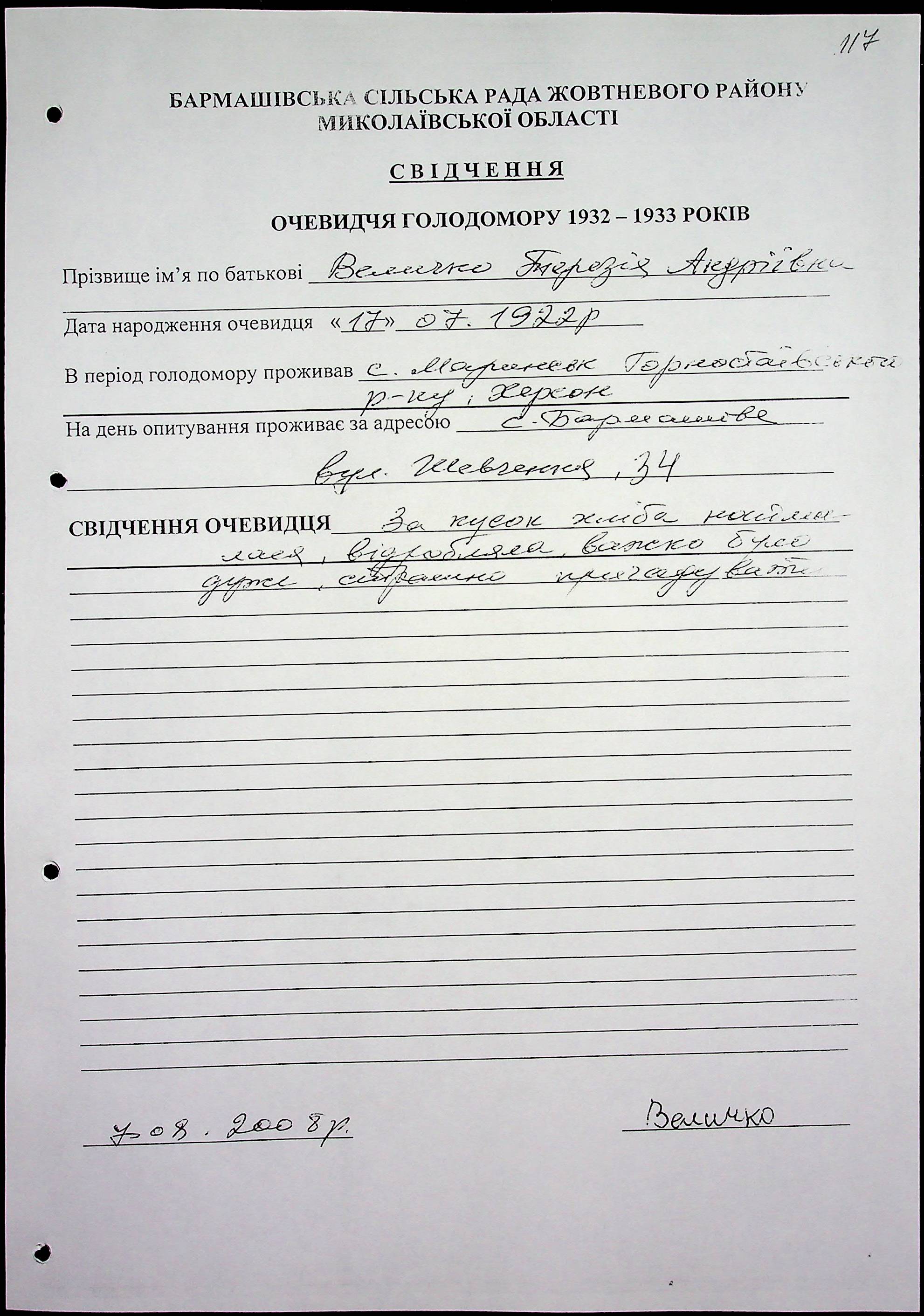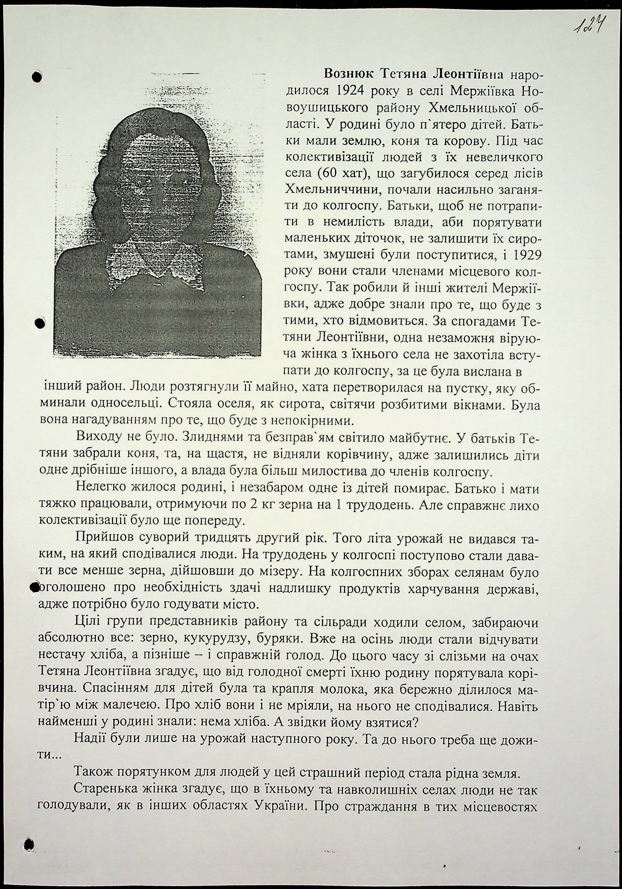 ◦ ◦ Фонд № 6146 “Колекція свідчень очевидців Голодомору 1932-1933 рр., нині проживаючих у Миколаївській області”