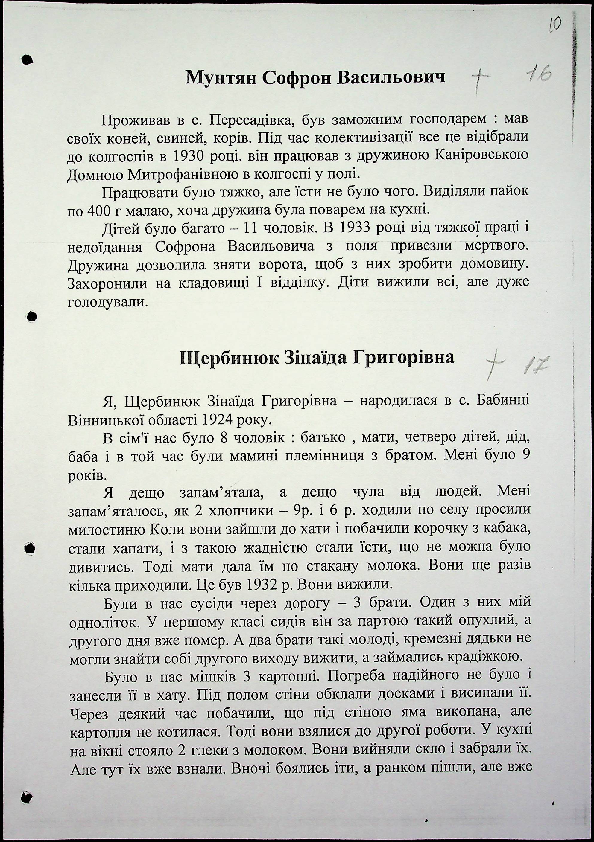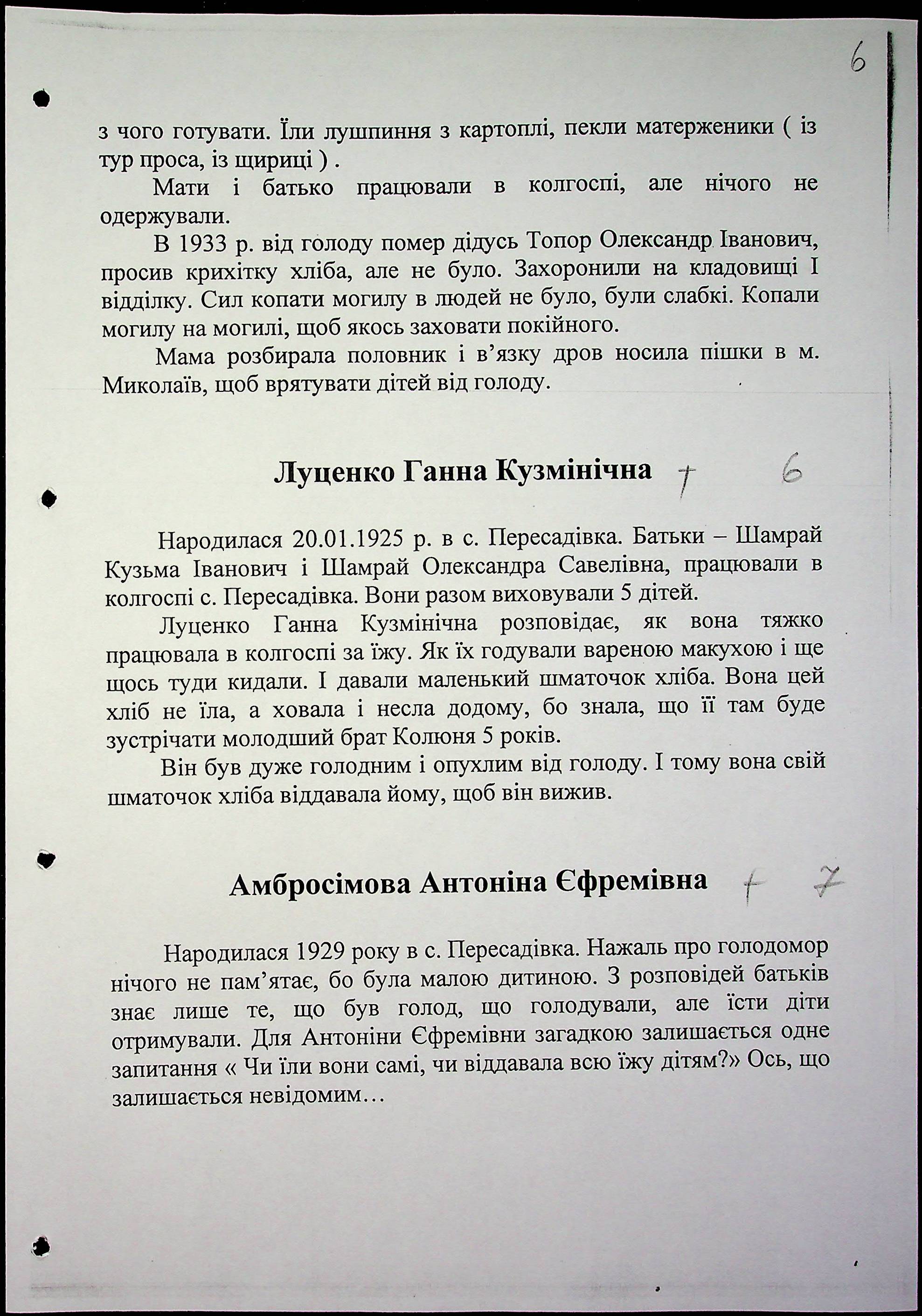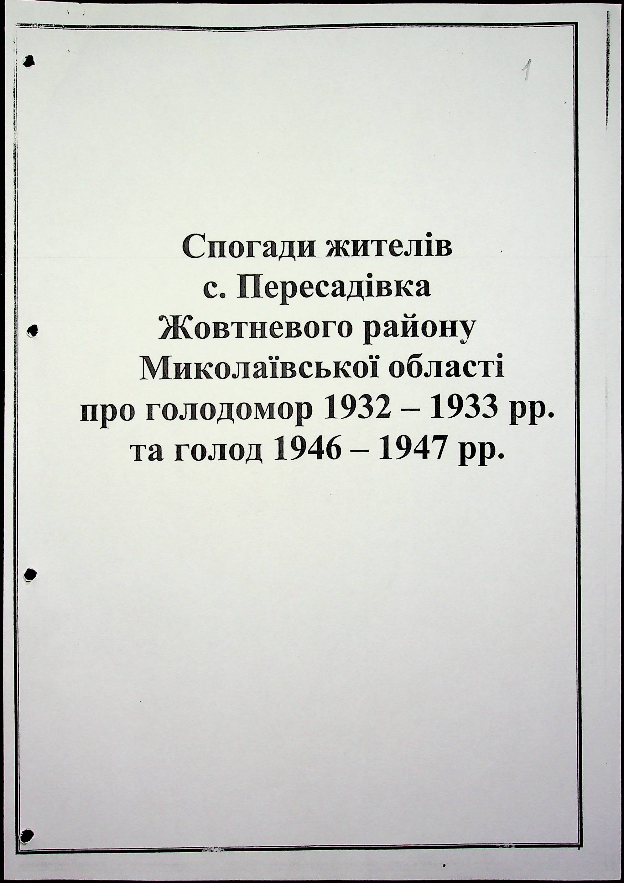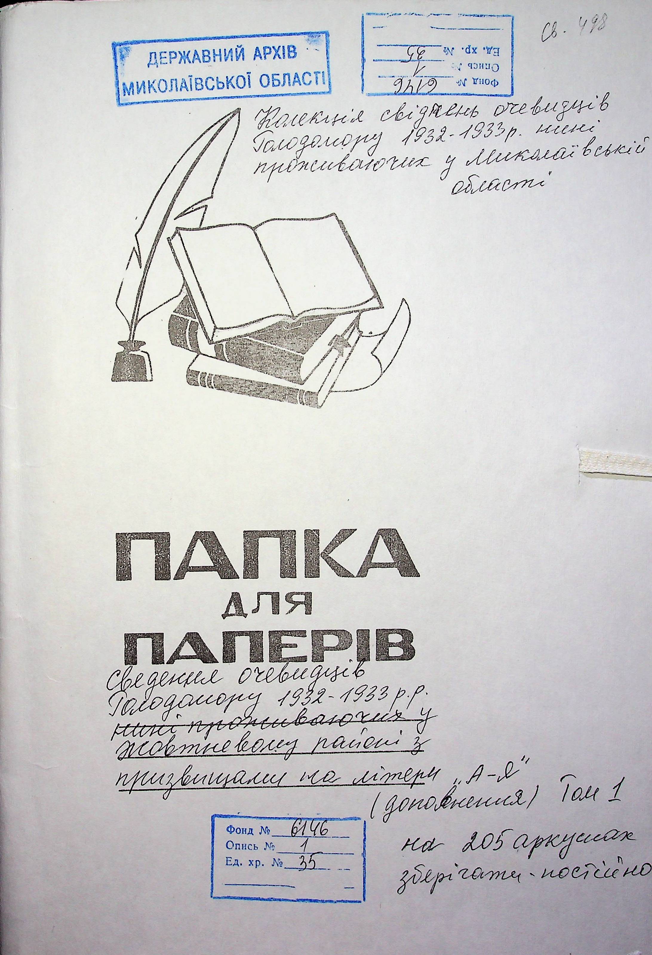 ◦ ◦ Фонд № 6146 “Колекція свідчень очевидців Голодомору 1932-1933 рр., нині проживаючих у Миколаївській області”