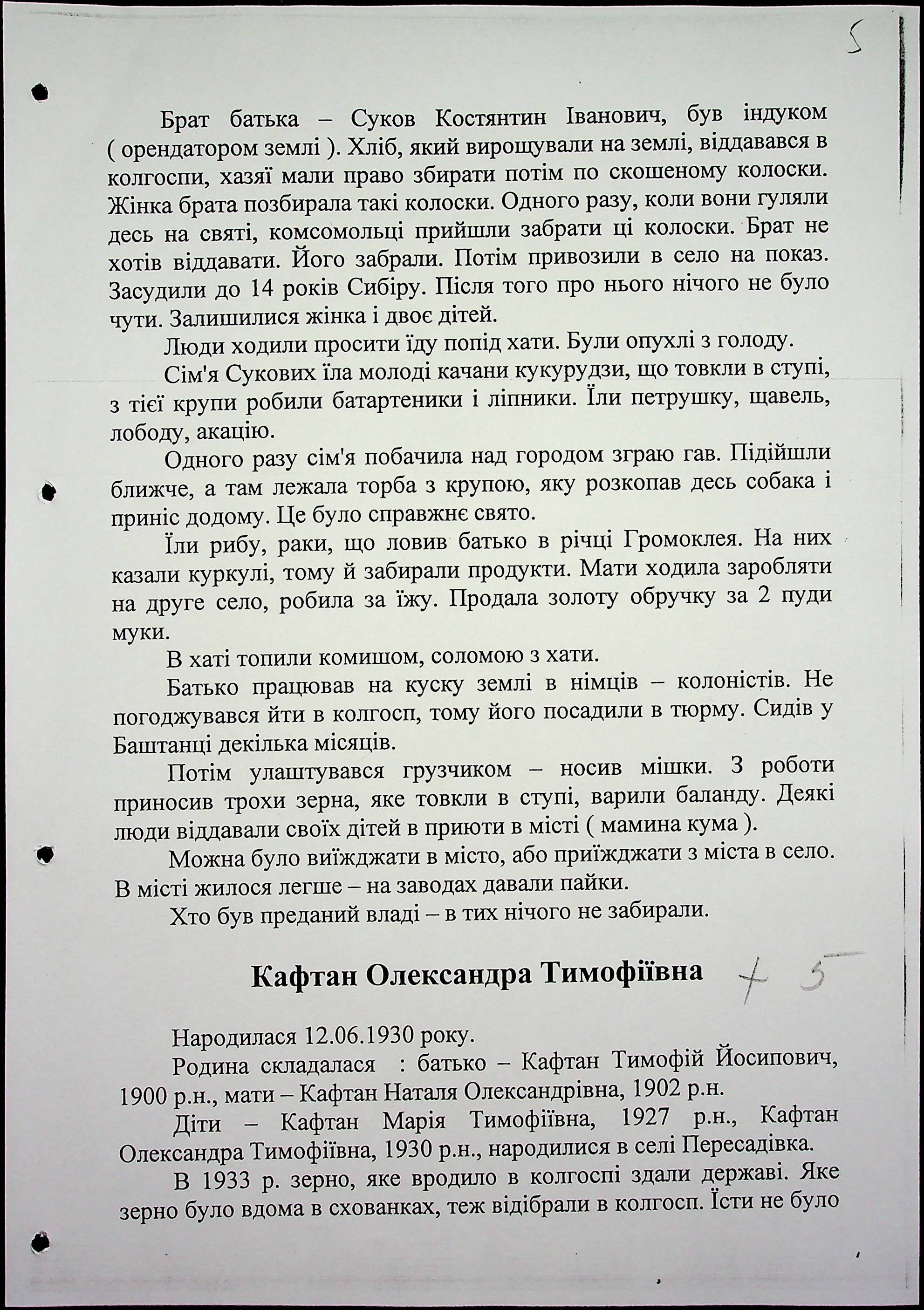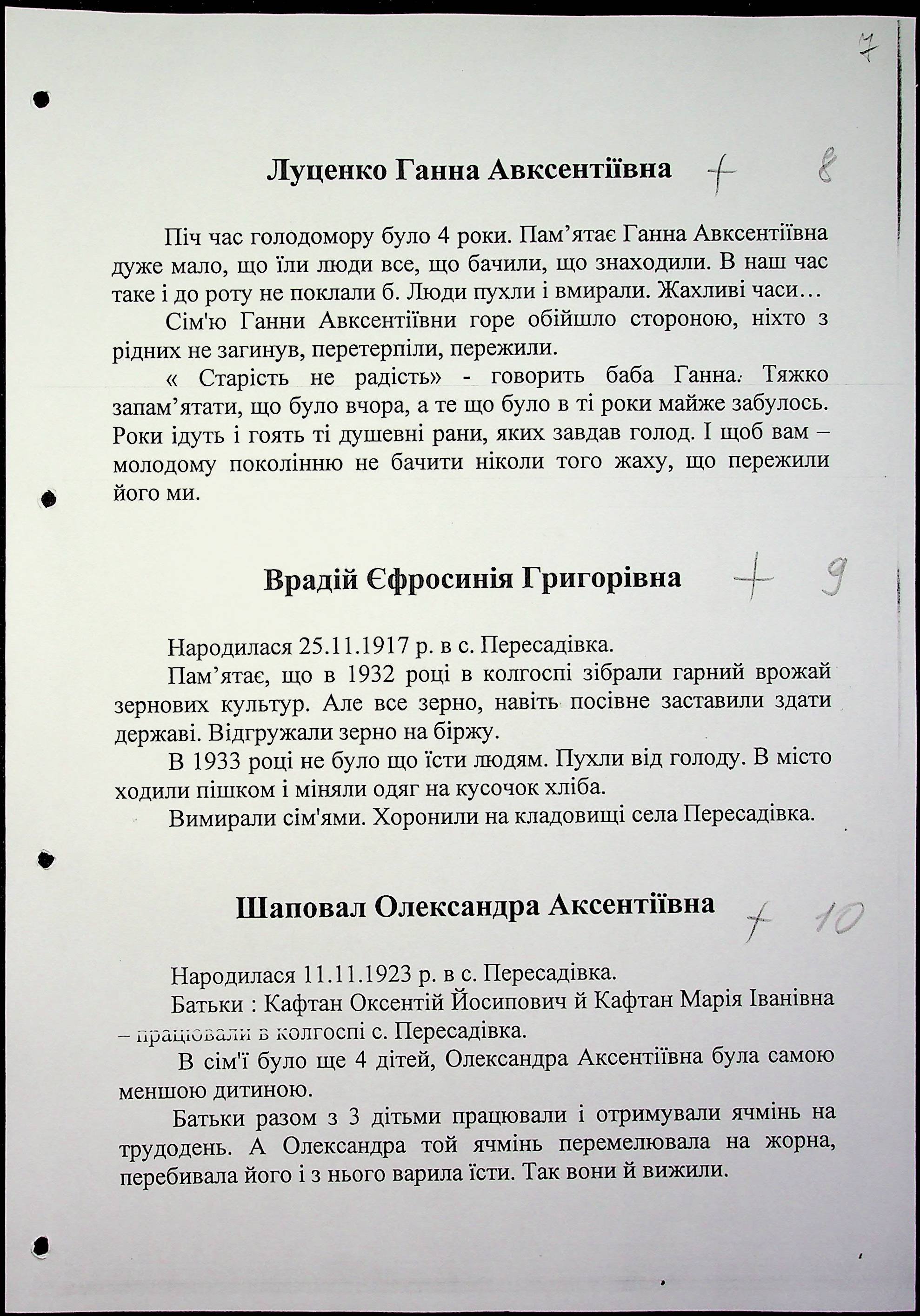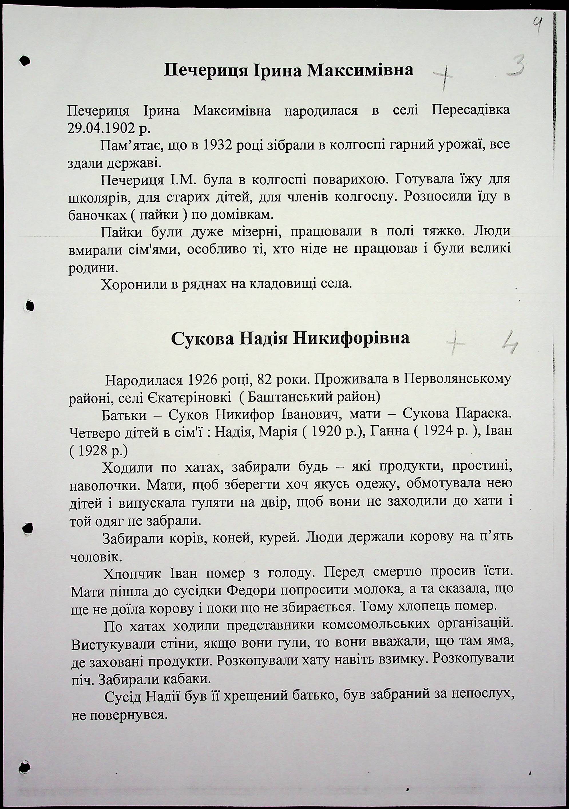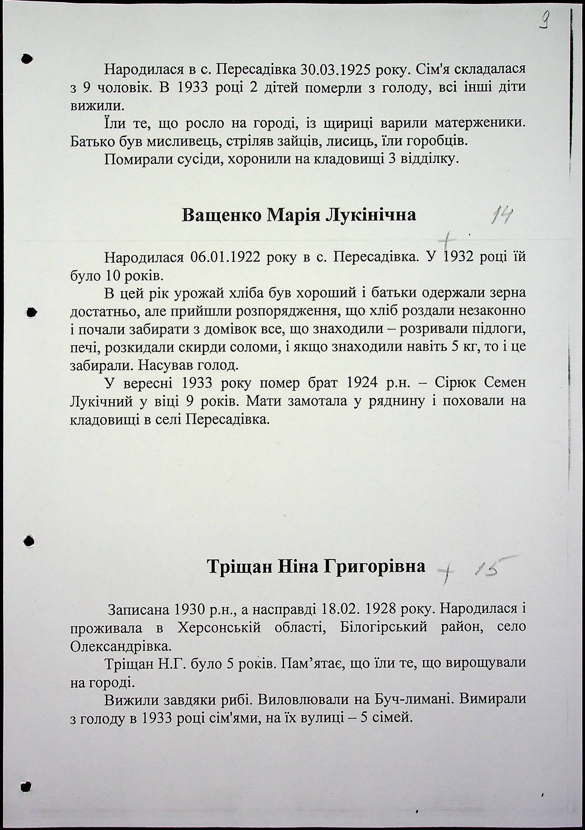 ◦ ◦ Фонд № 6146 “Колекція свідчень очевидців Голодомору 1932-1933 рр., нині проживаючих у Миколаївській області”