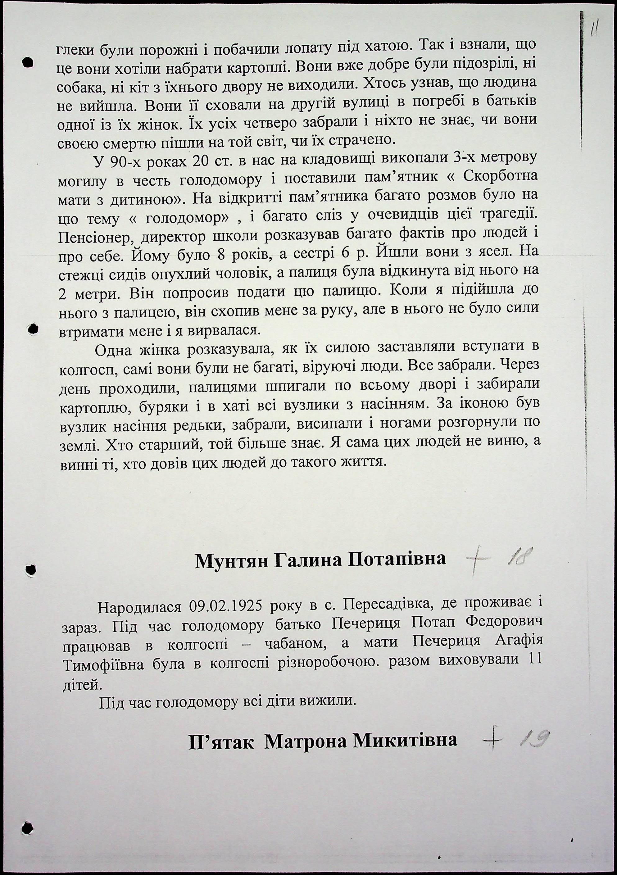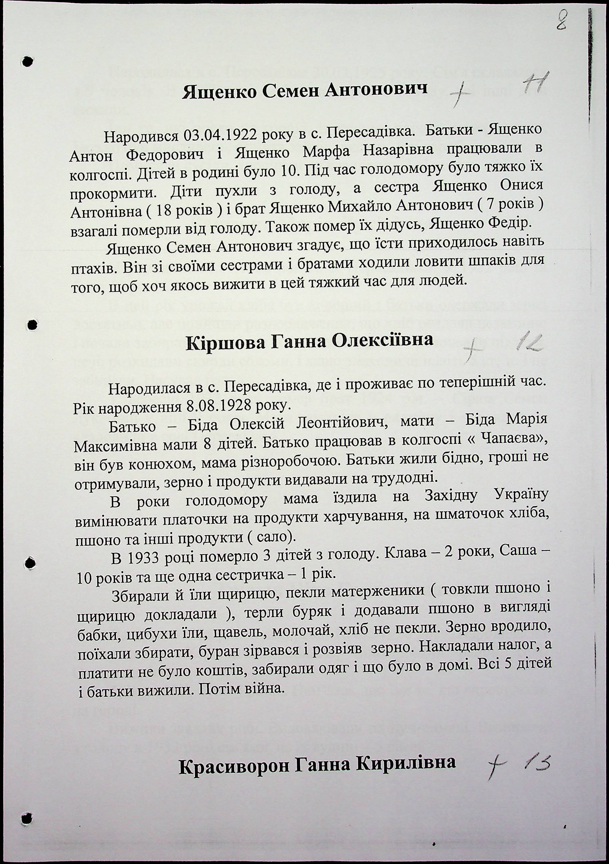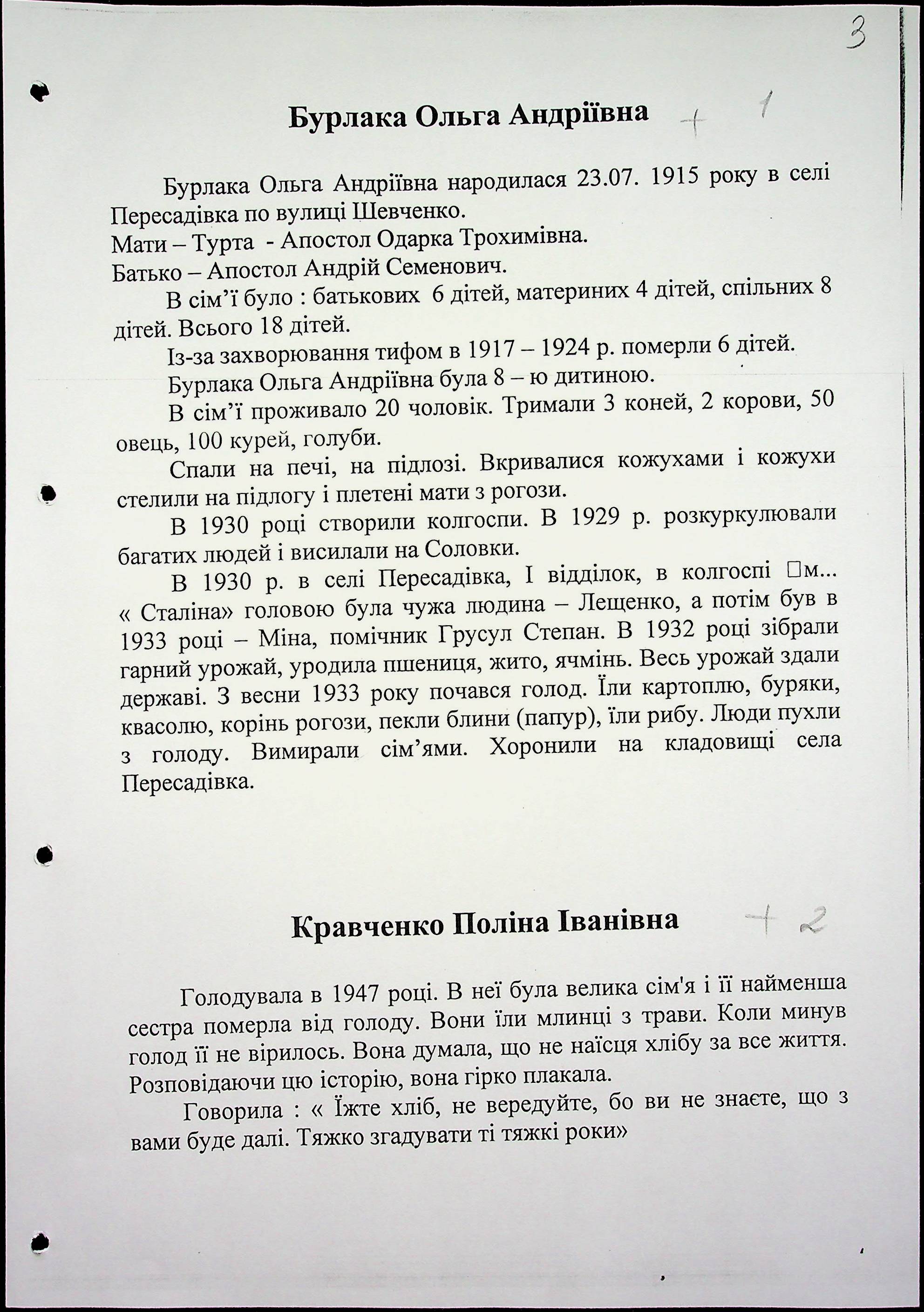 • • • • Справа № 35 “Свідчення очевидців Голодомору 1932-1933 років, які проживають у Жовтневому районі, з прізвищами на літери А–Я (доповнення). Том 1”