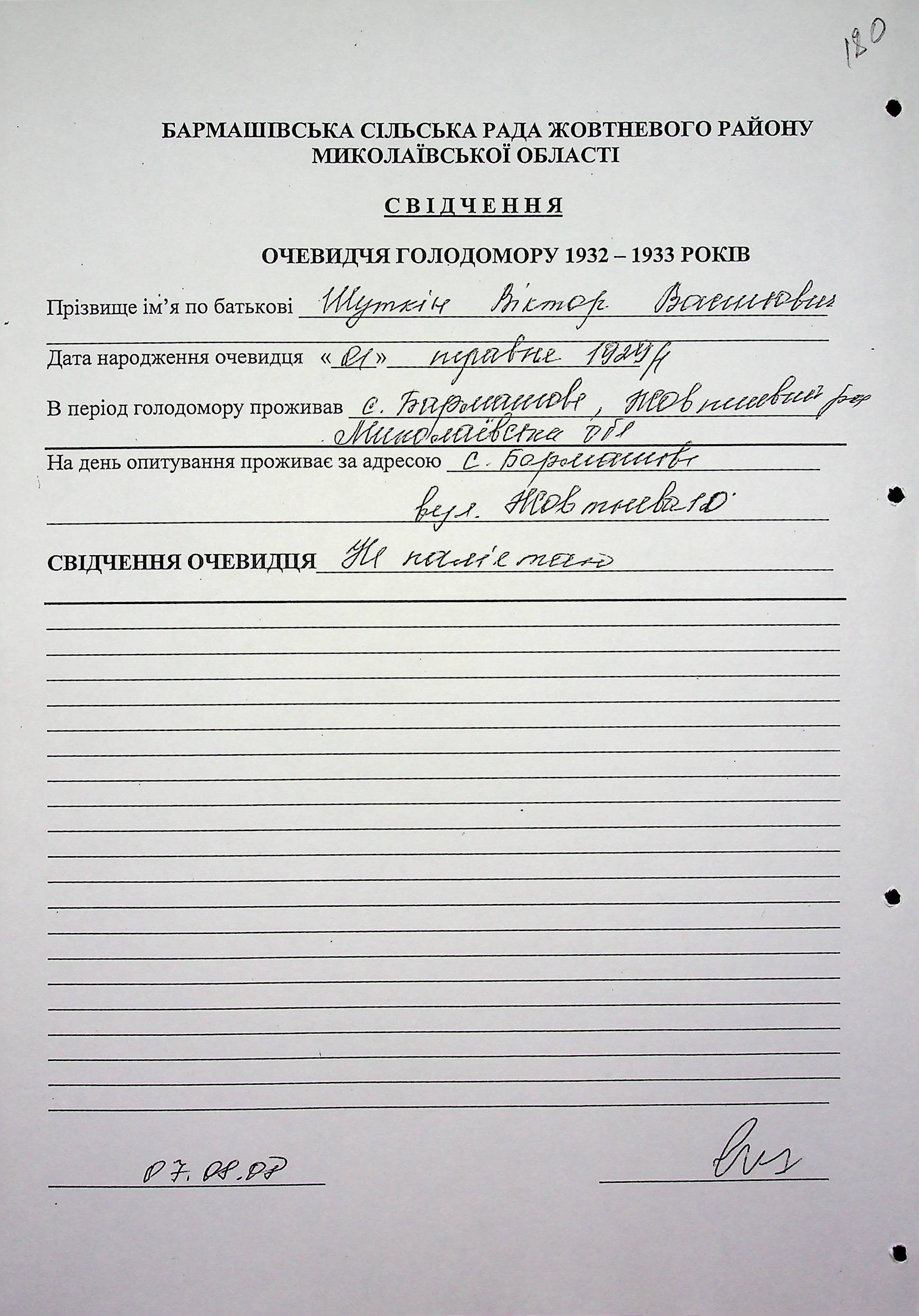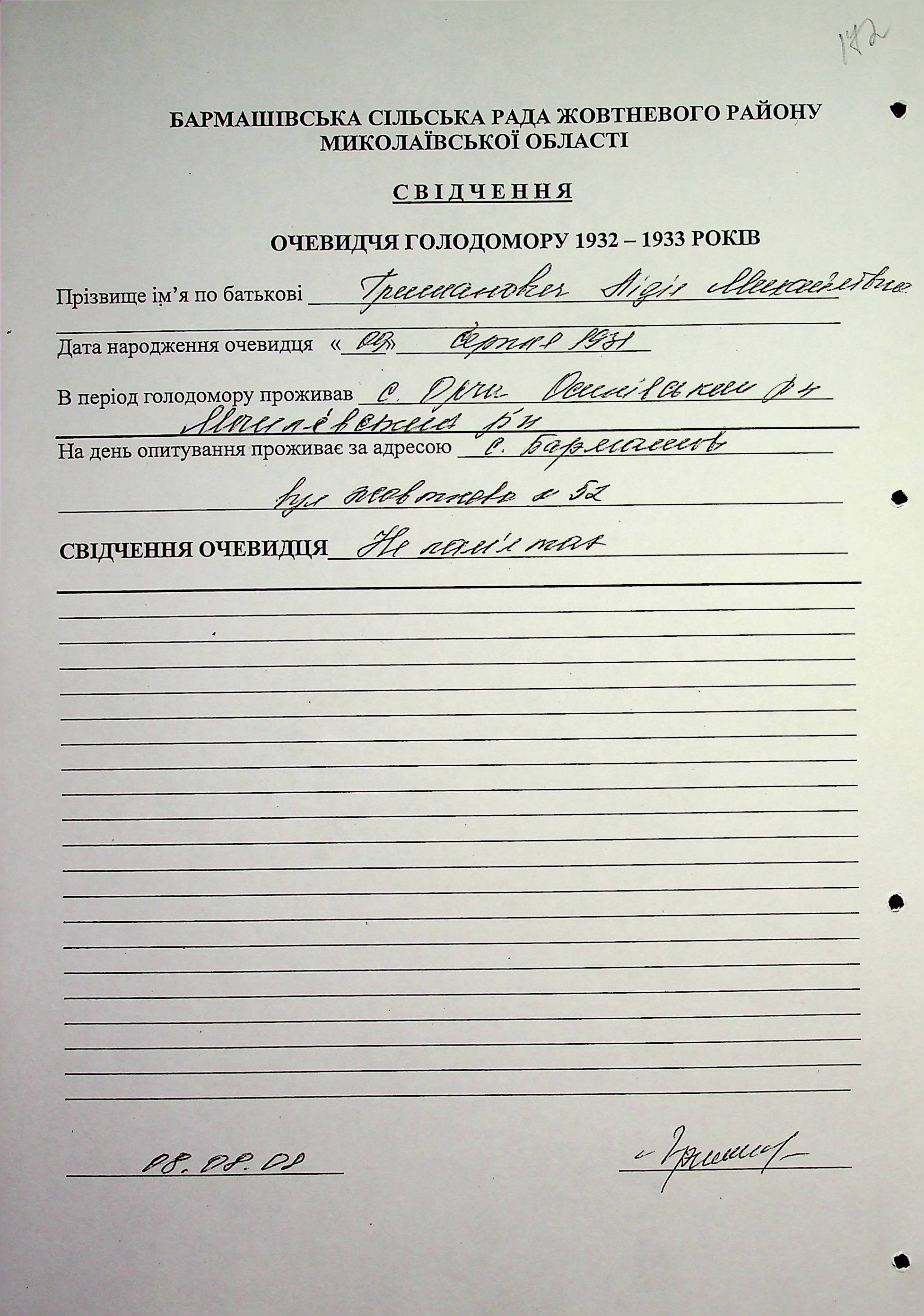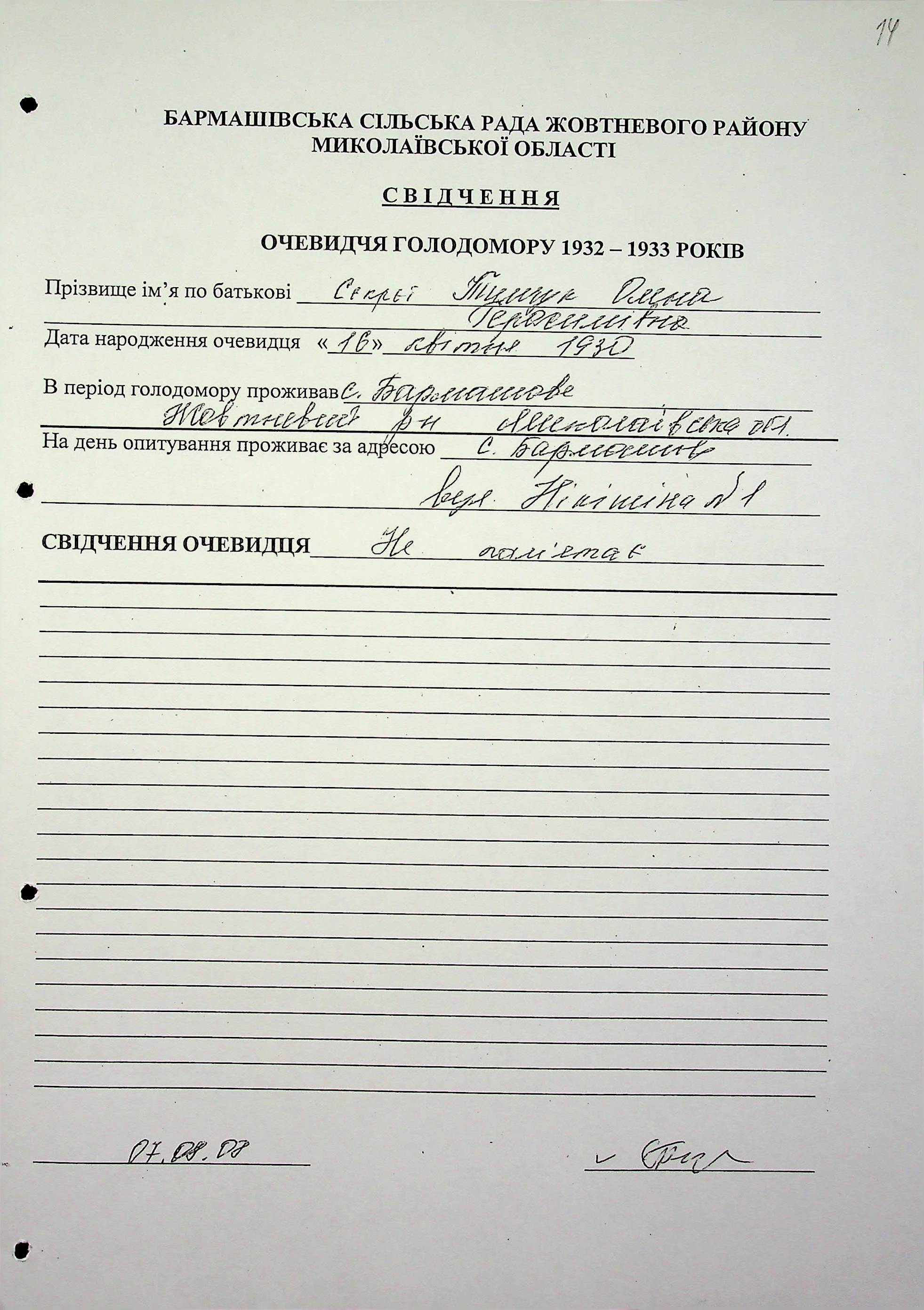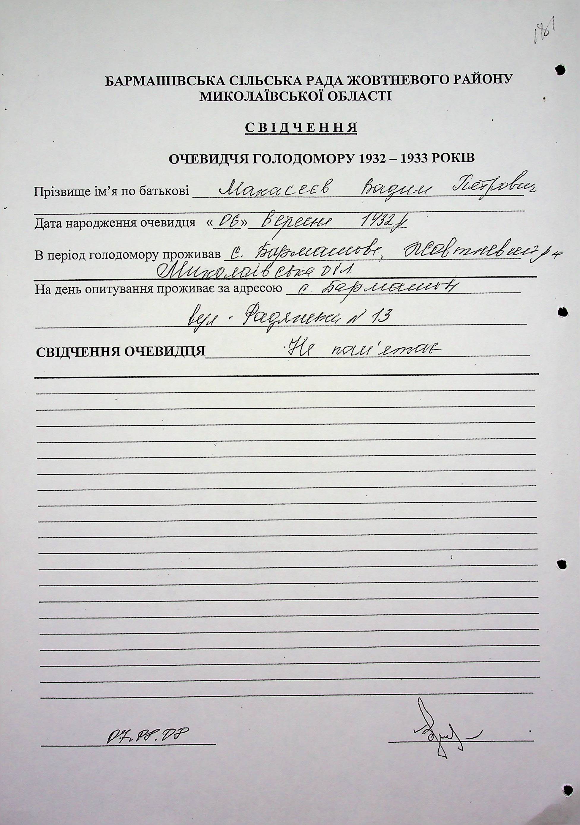 ◦ ◦ Фонд № 6146 “Колекція свідчень очевидців Голодомору 1932-1933 рр., нині проживаючих у Миколаївській області”