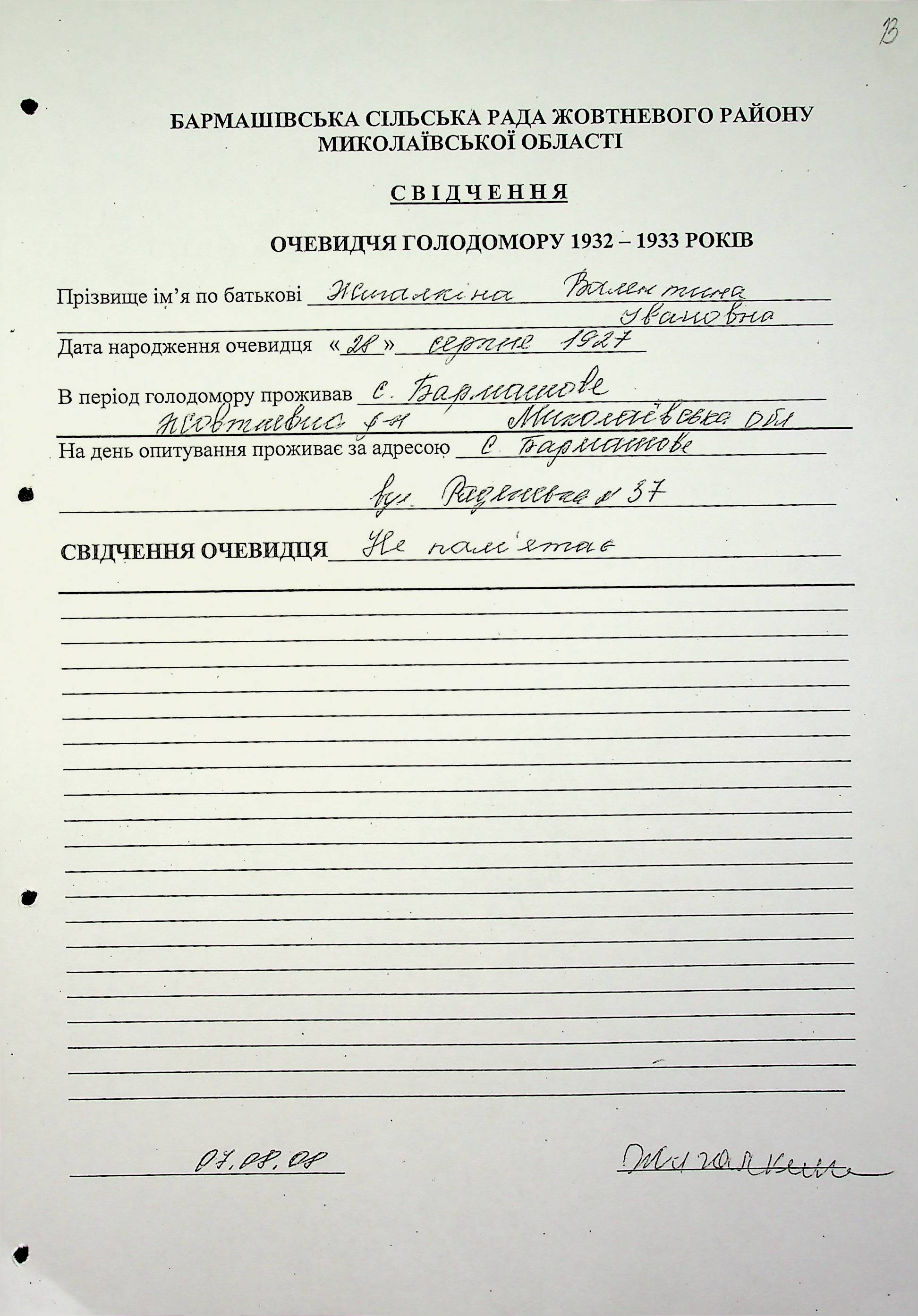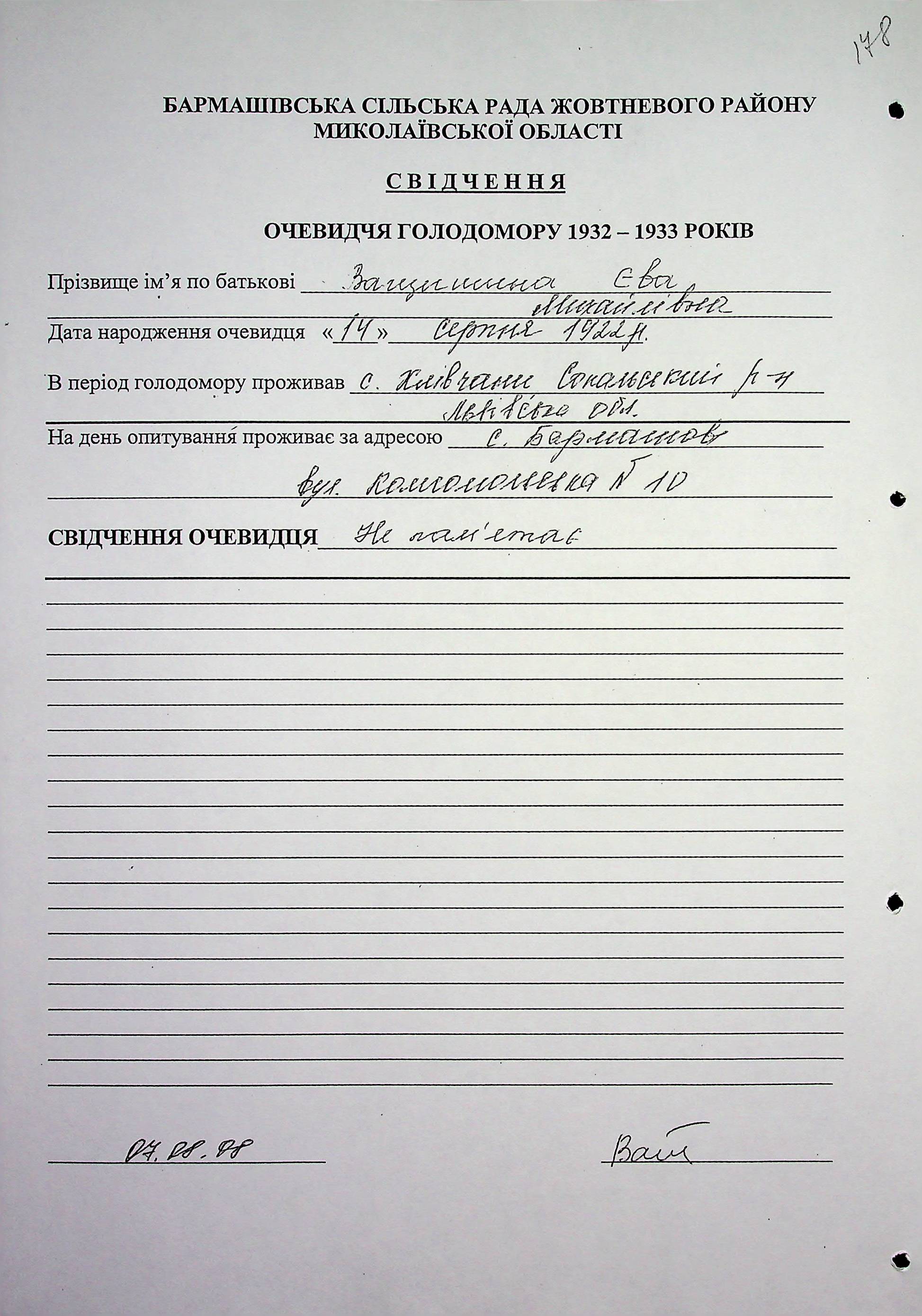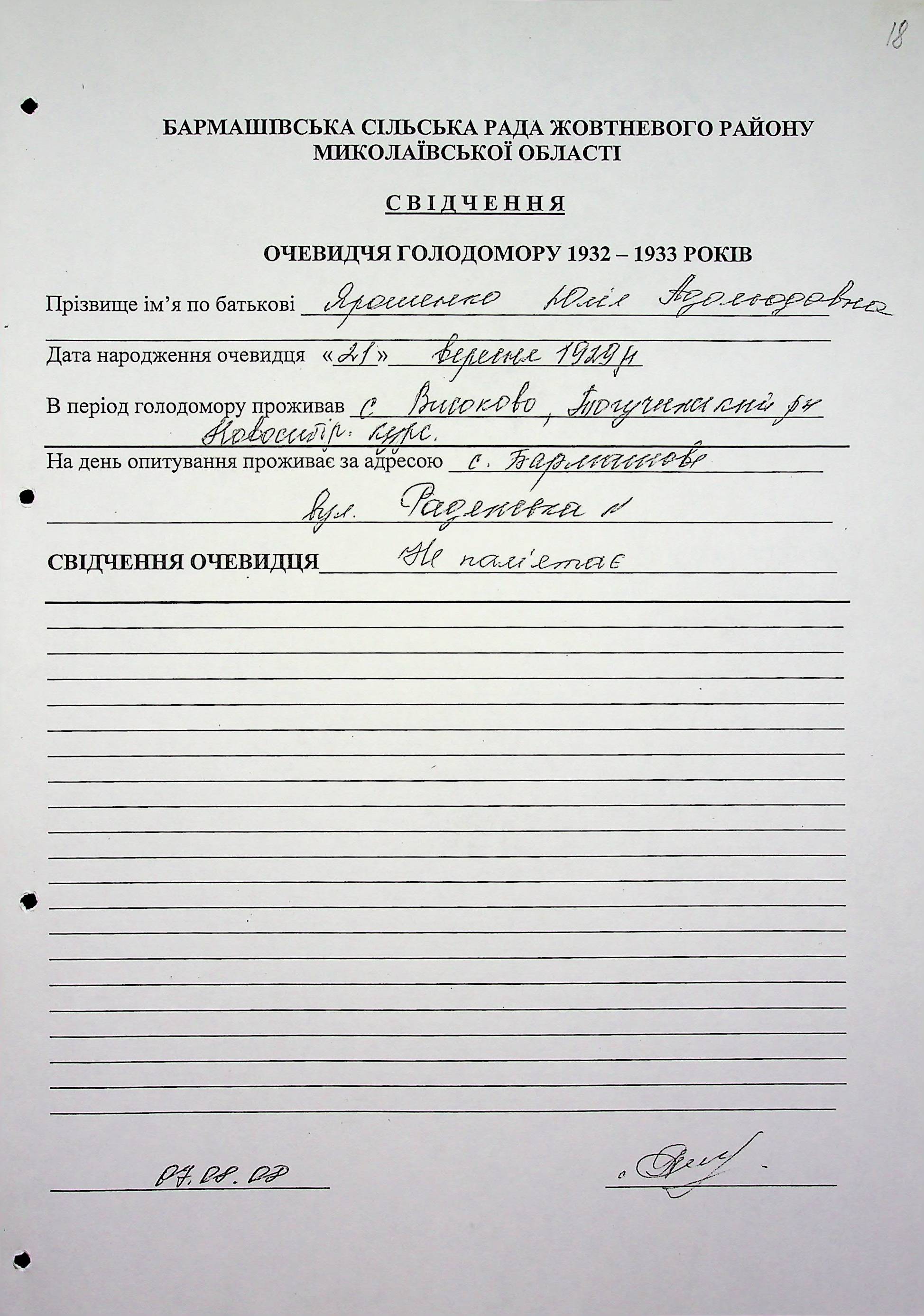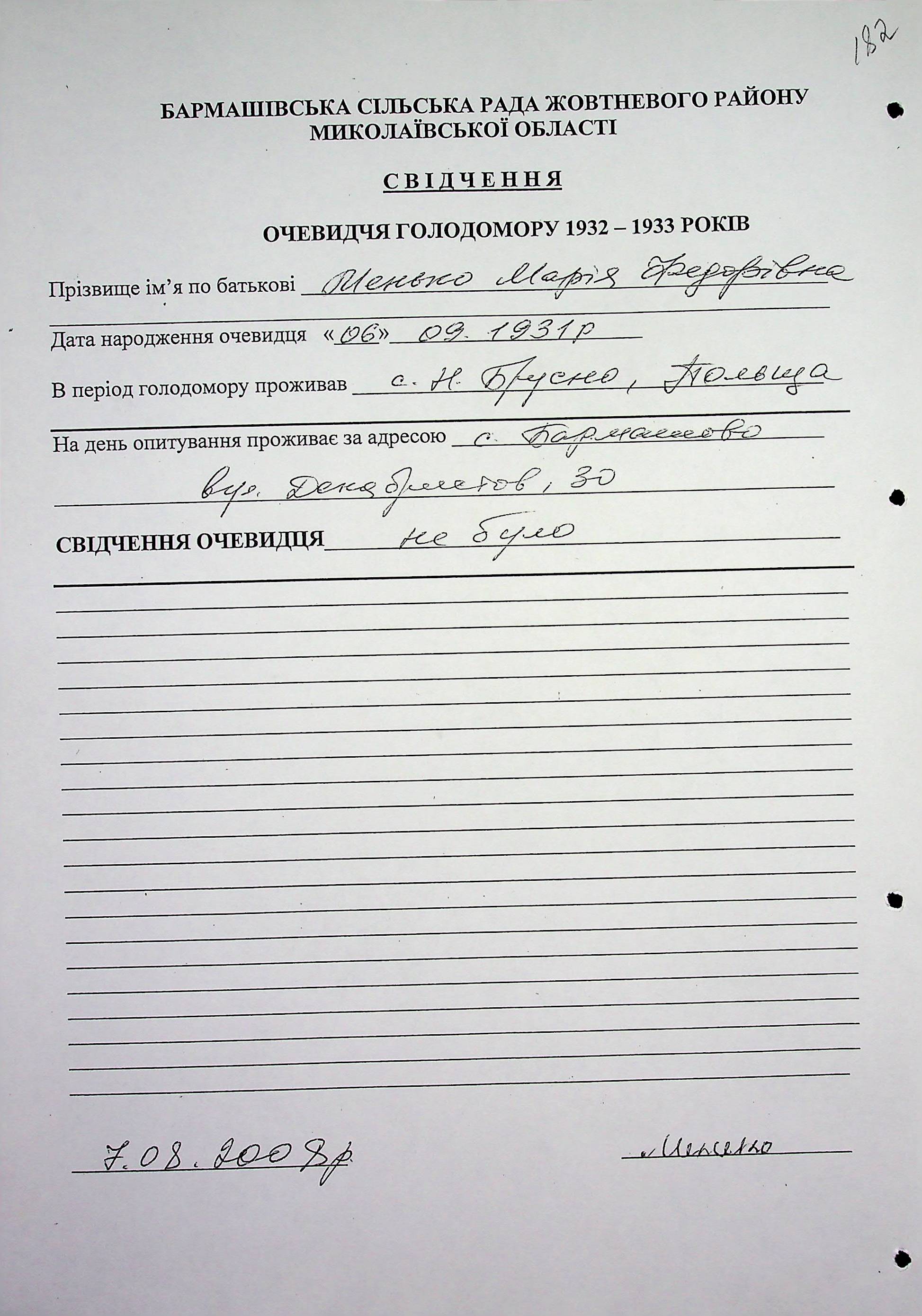 ◦ ◦ Фонд № 6146 “Колекція свідчень очевидців Голодомору 1932-1933 рр., нині проживаючих у Миколаївській області”