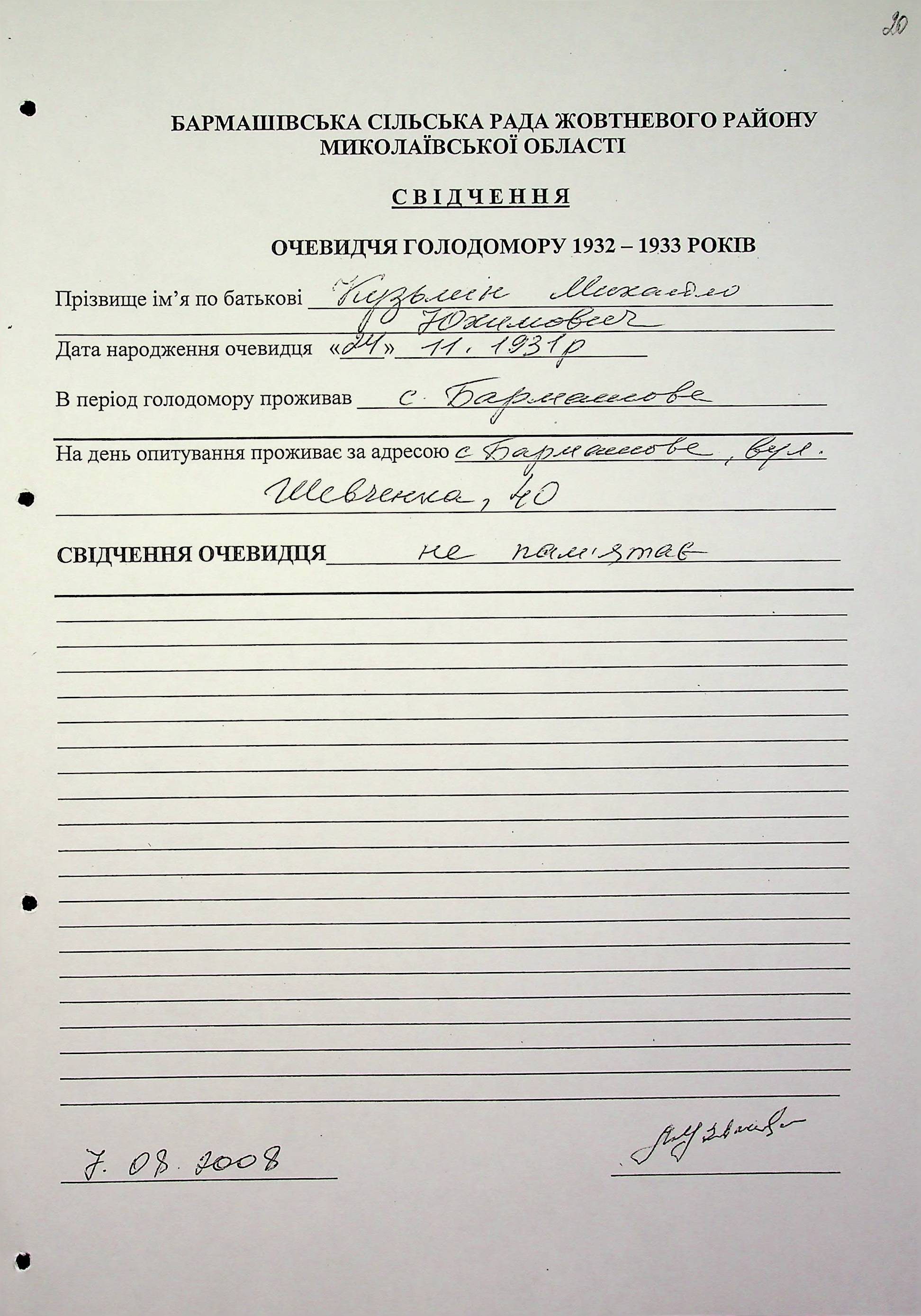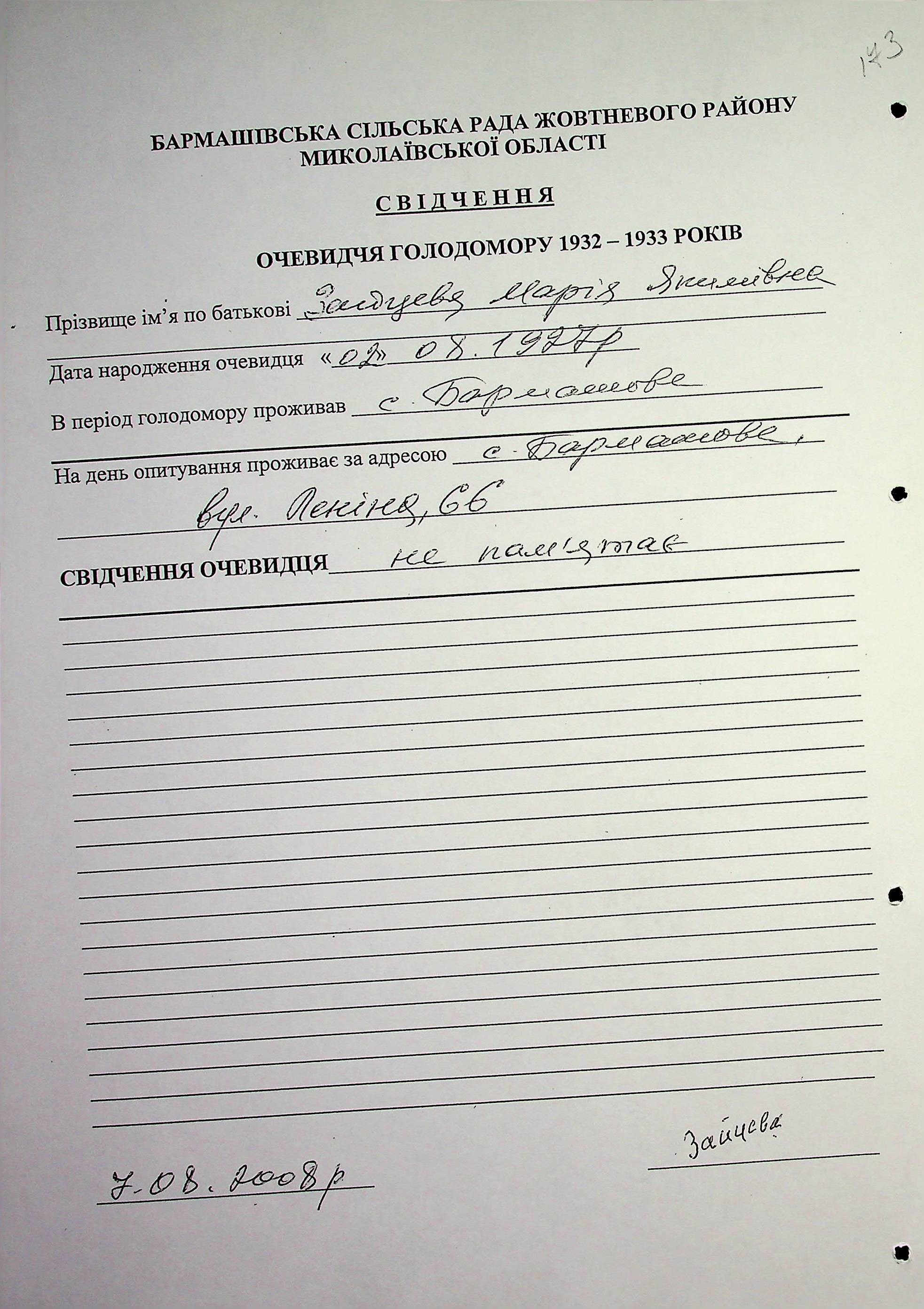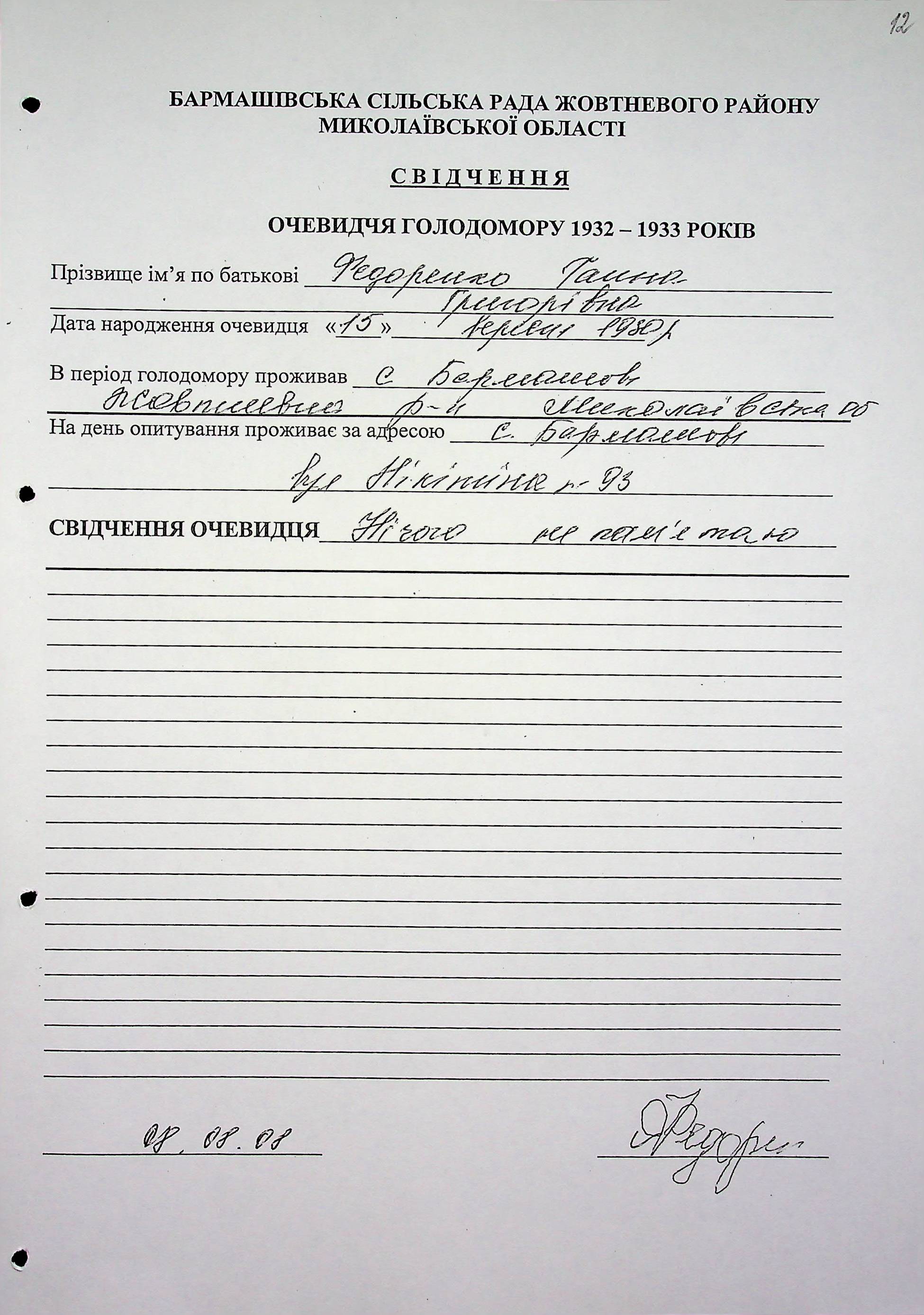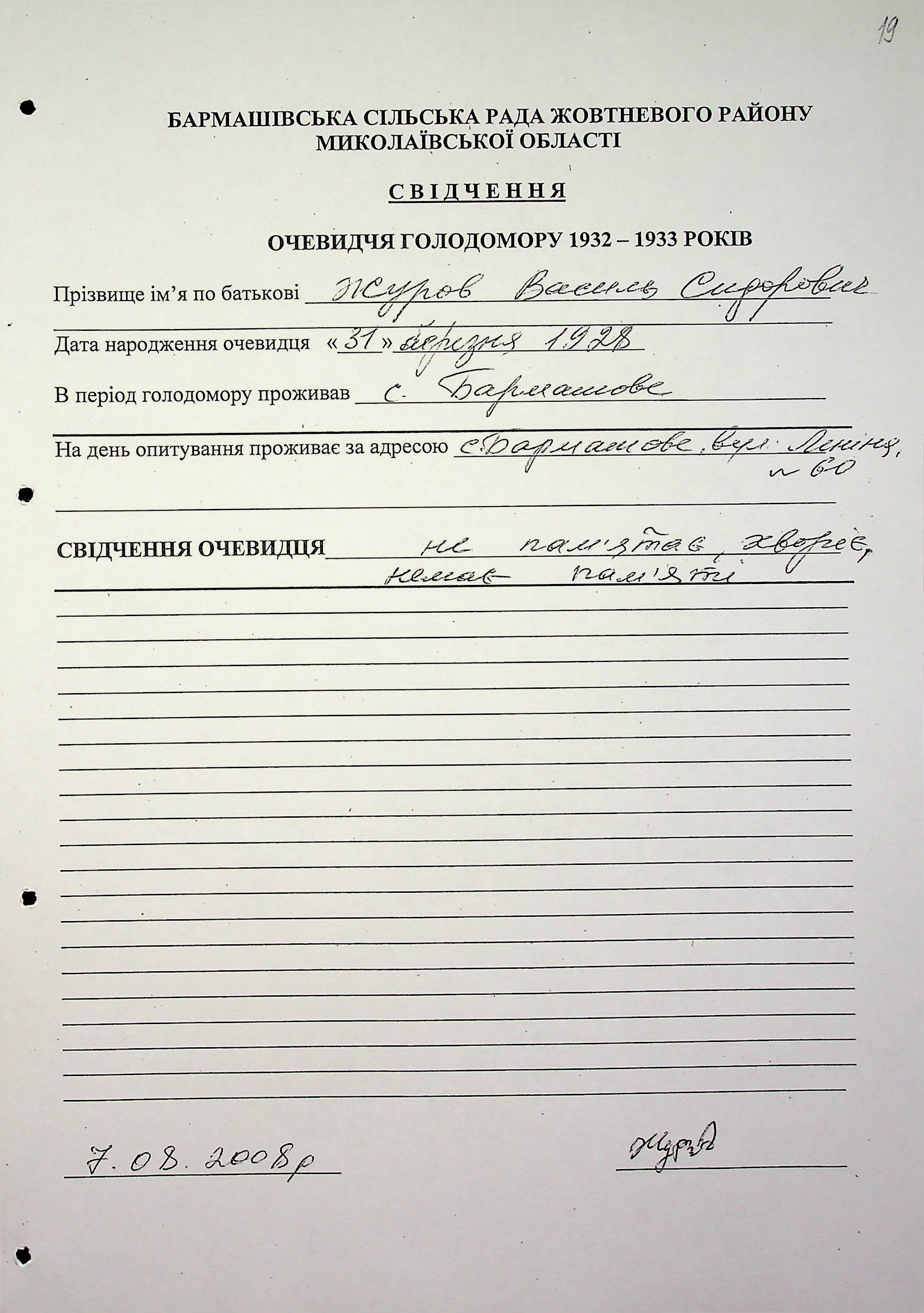 ◦ ◦ Фонд № 6146 “Колекція свідчень очевидців Голодомору 1932-1933 рр., нині проживаючих у Миколаївській області”
