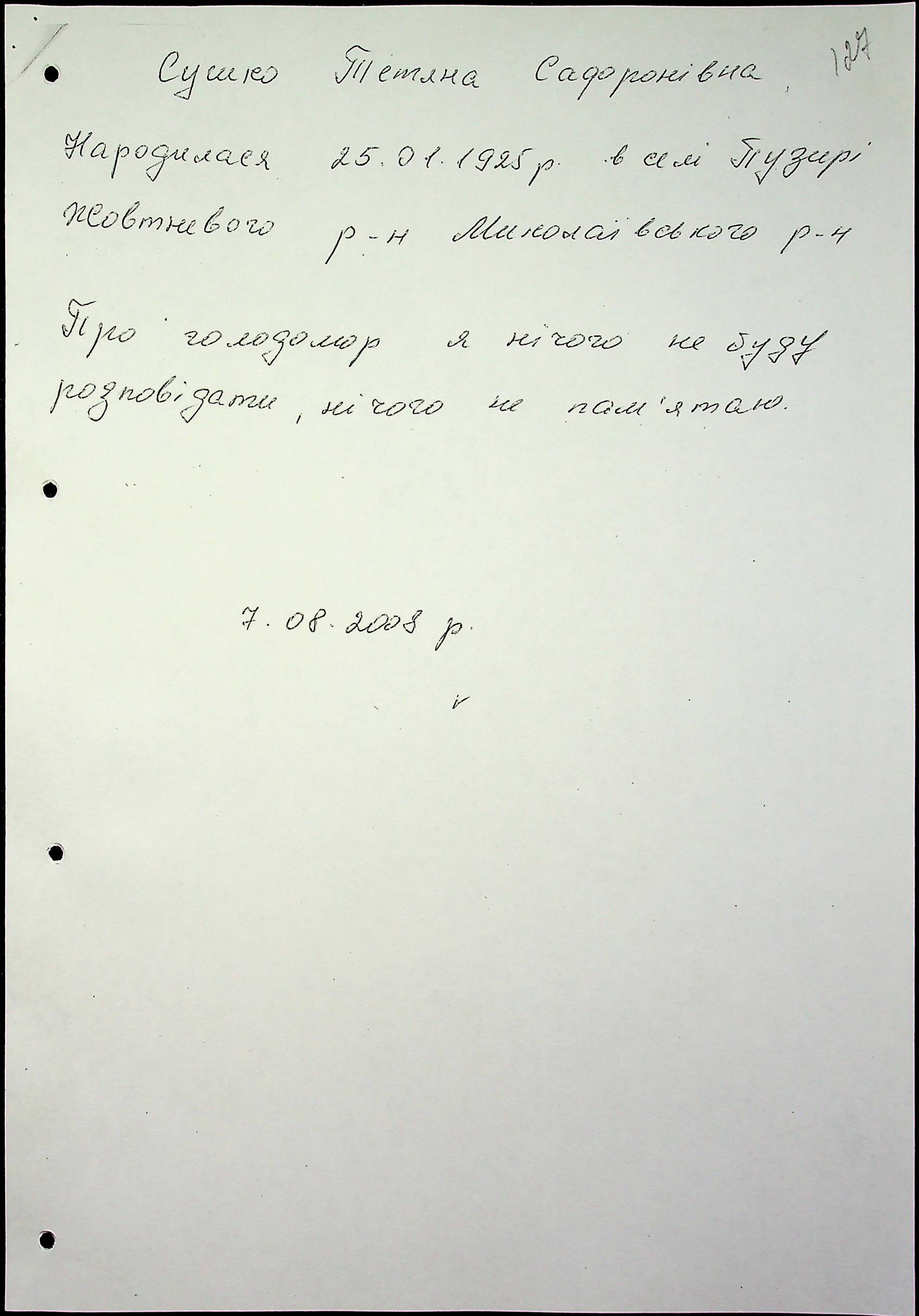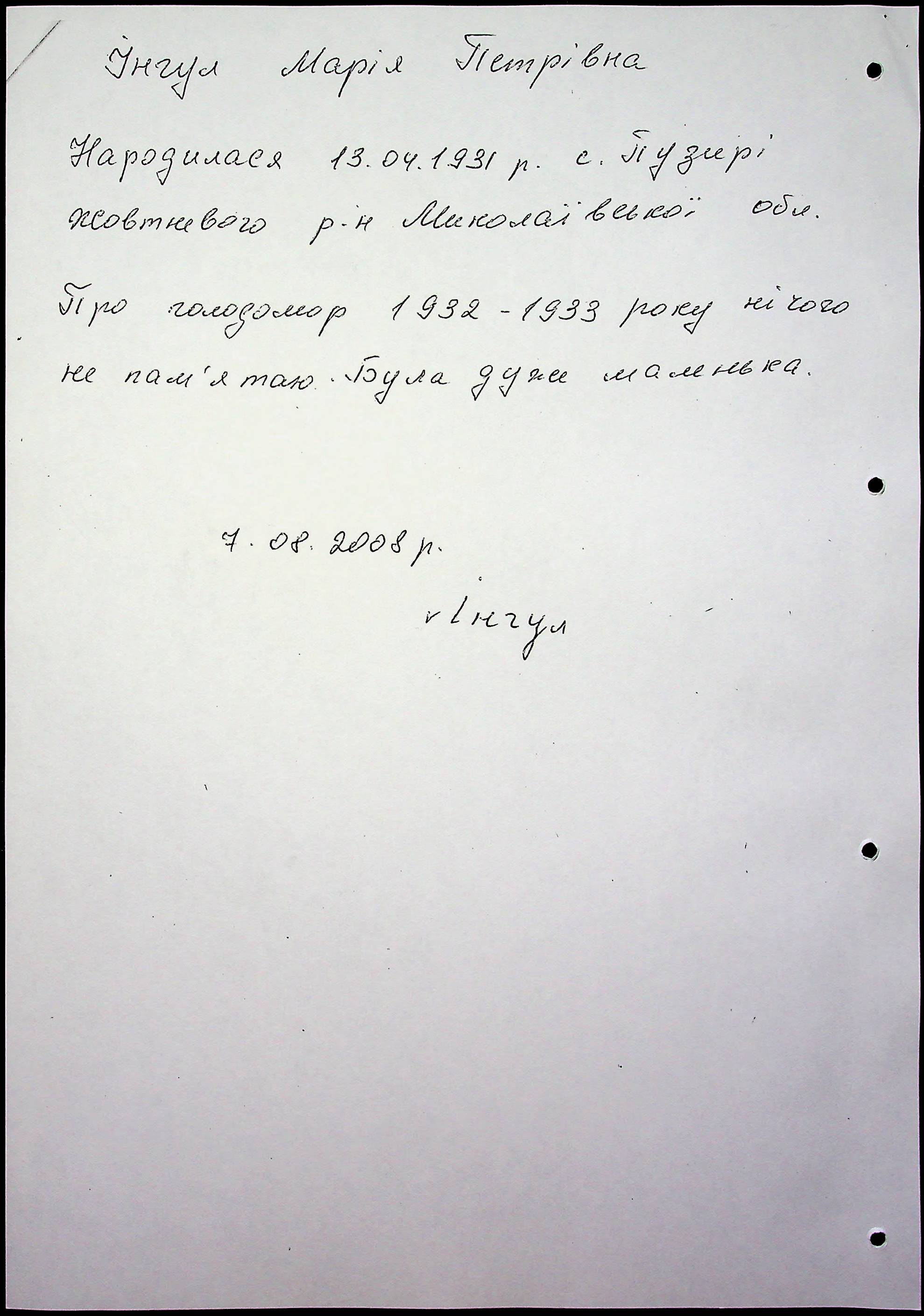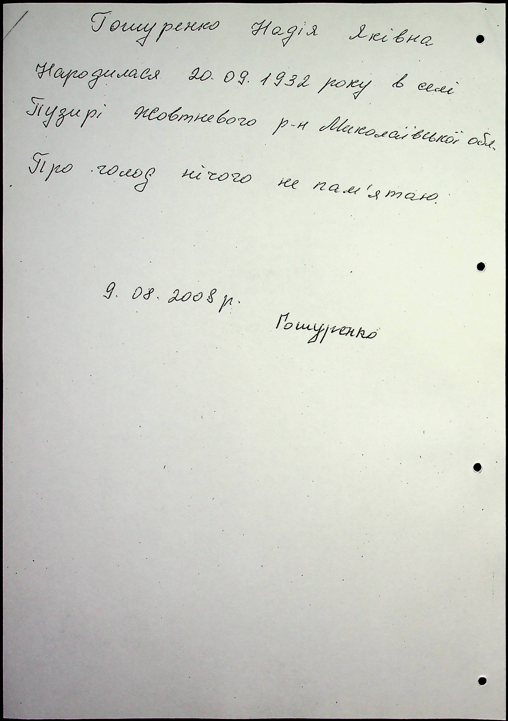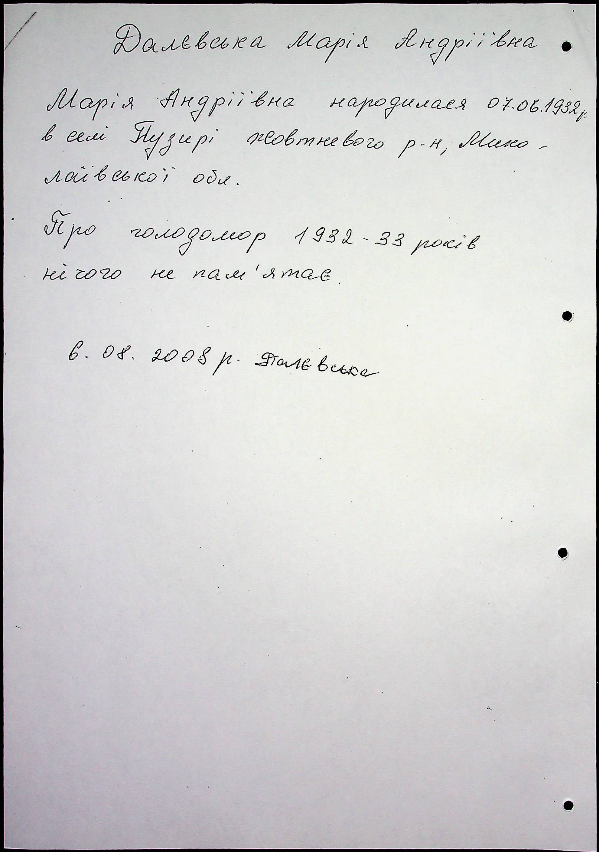 ◦ ◦ Фонд № 6146 “Колекція свідчень очевидців Голодомору 1932-1933 рр., нині проживаючих у Миколаївській області”