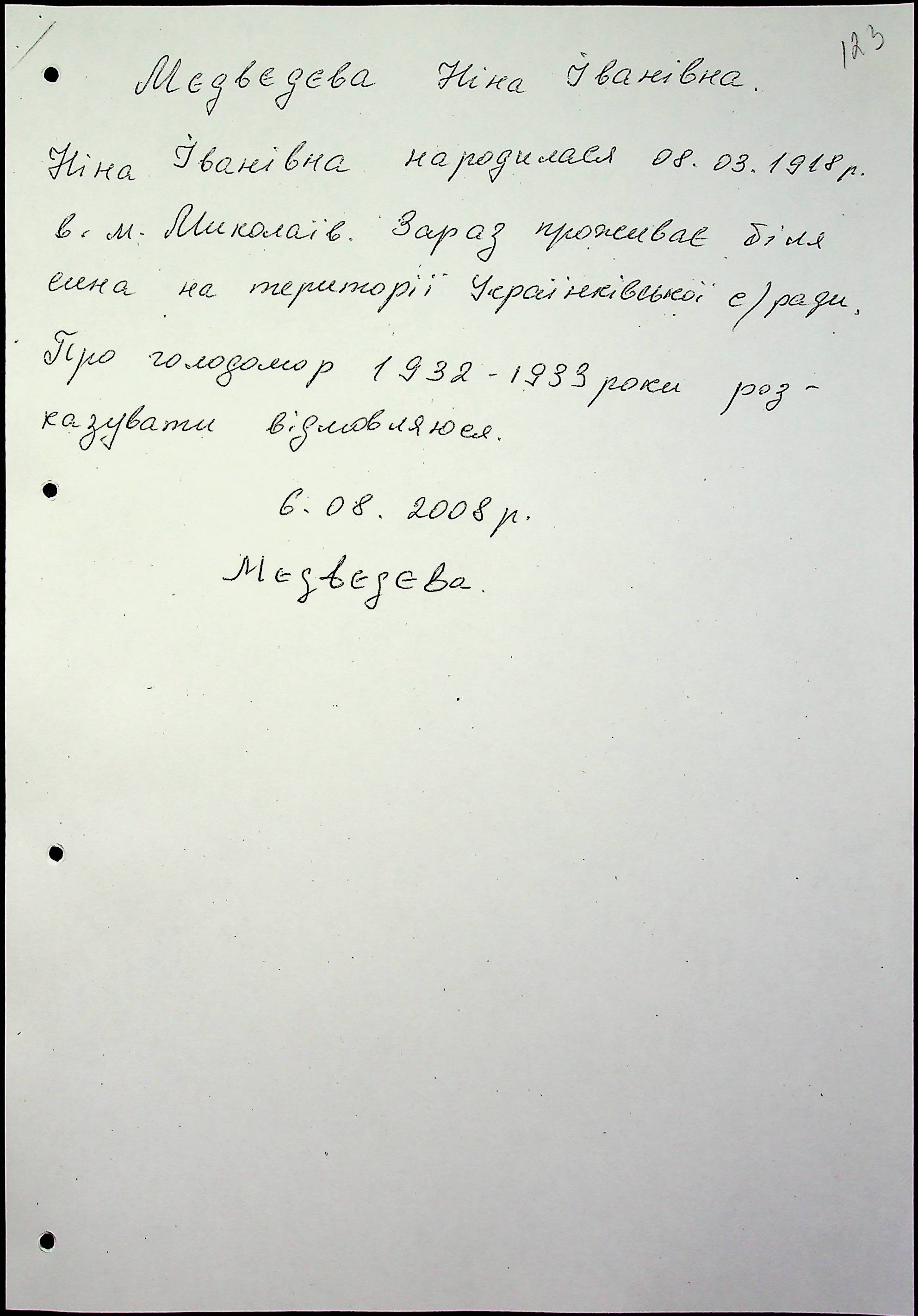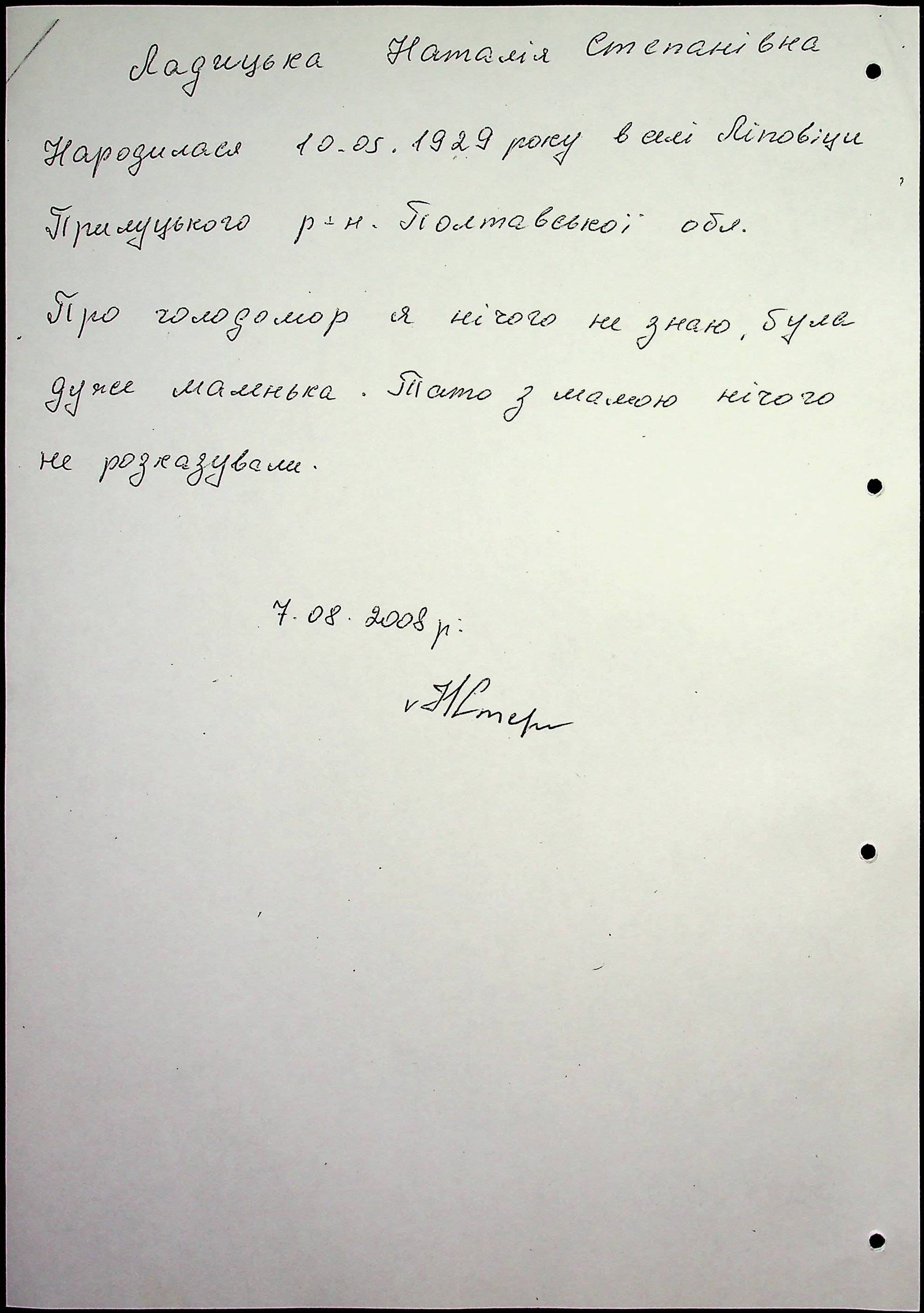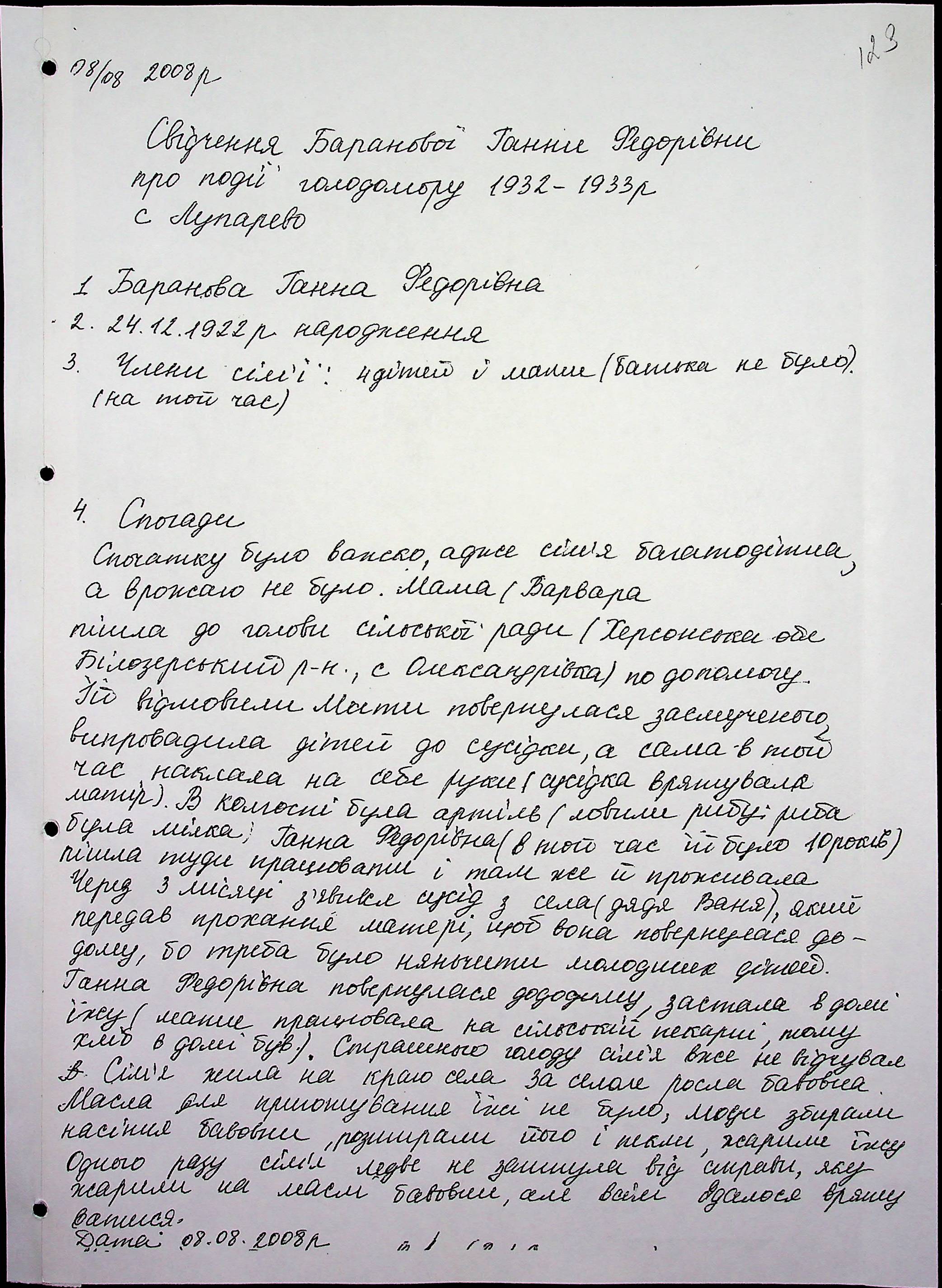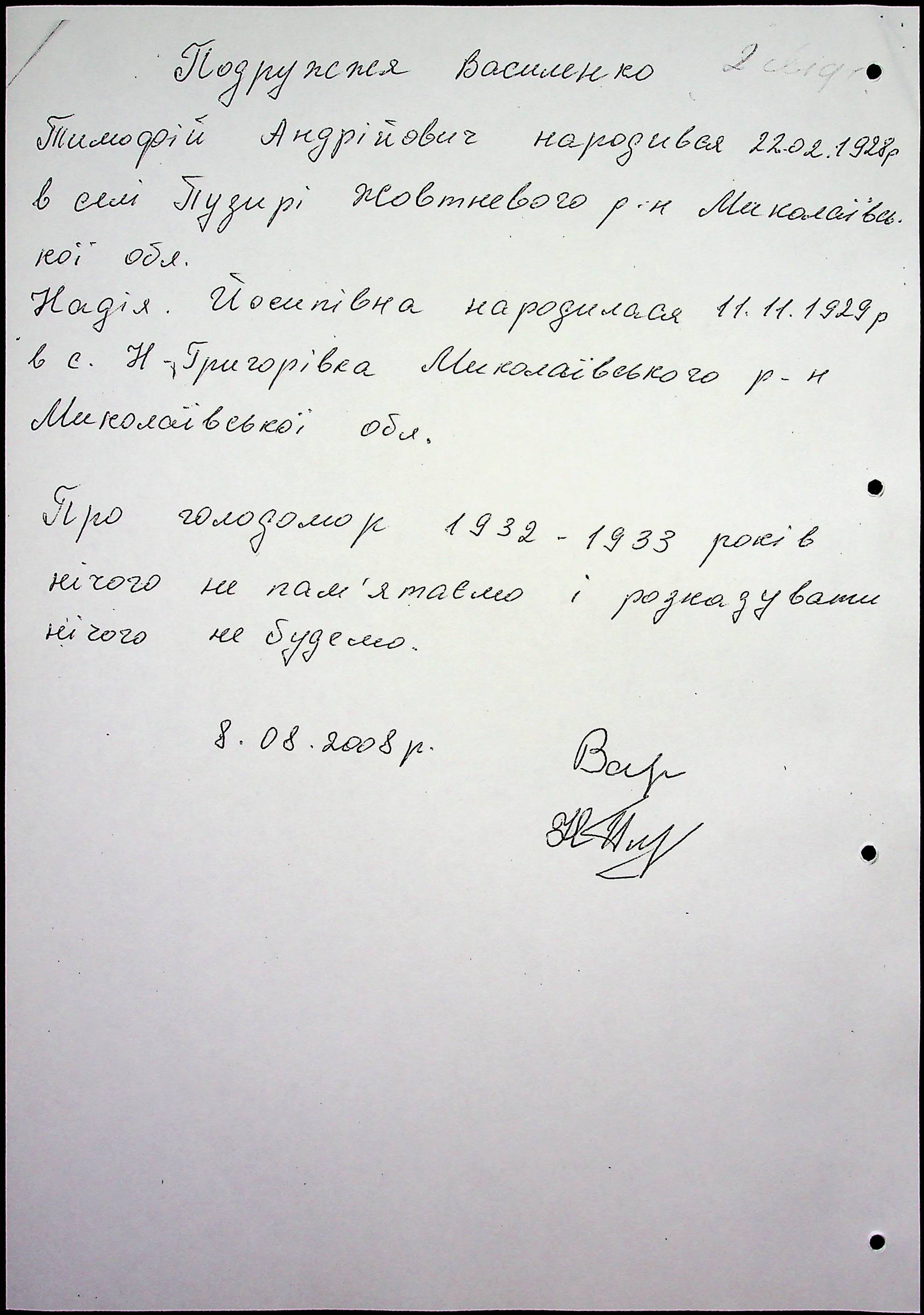 ◦ ◦ Фонд № 6146 “Колекція свідчень очевидців Голодомору 1932-1933 рр., нині проживаючих у Миколаївській області”