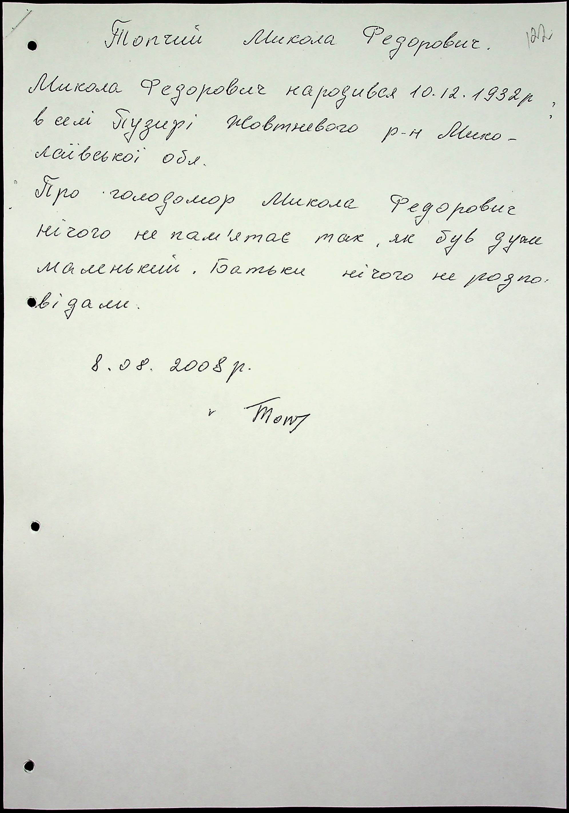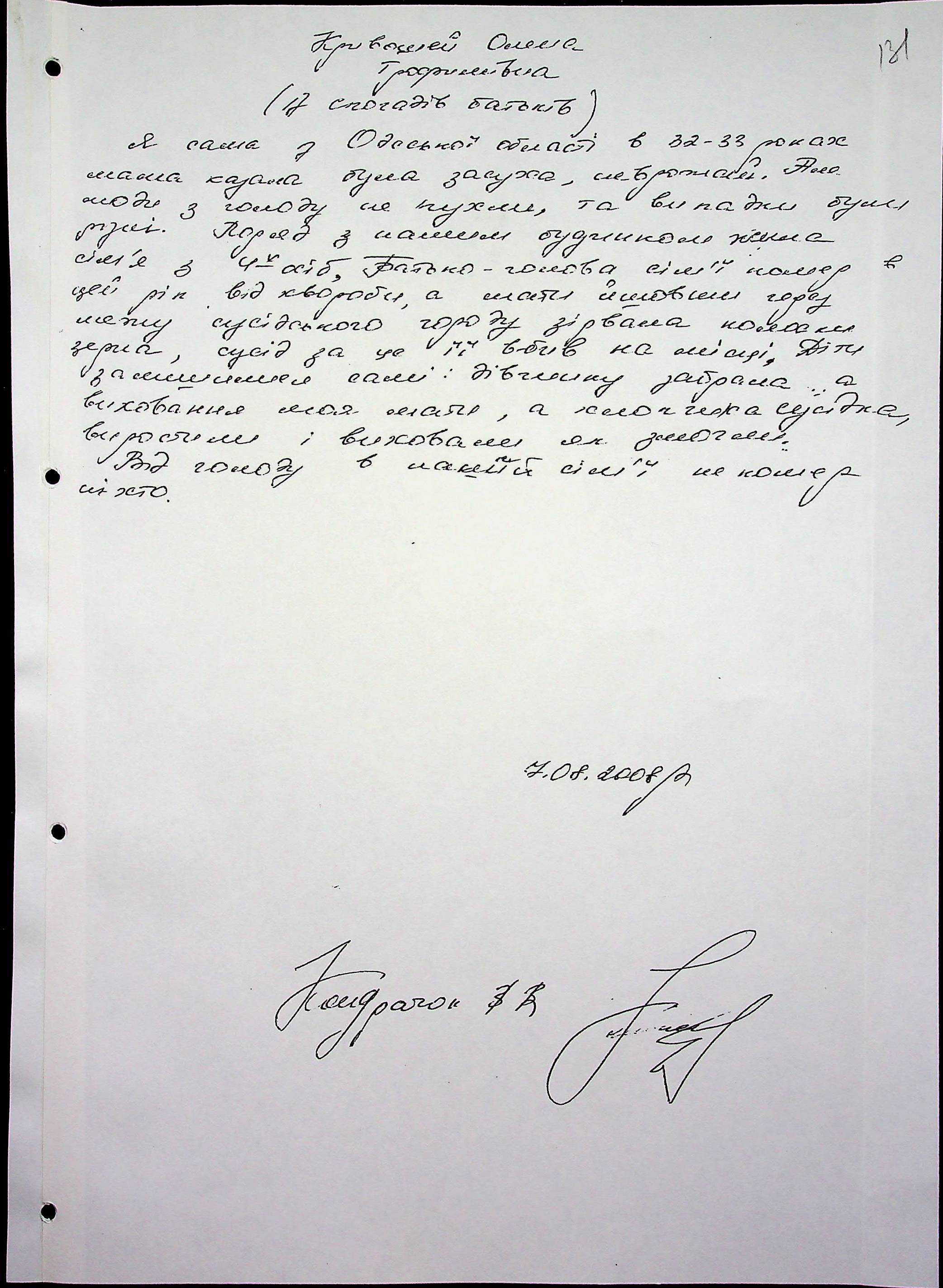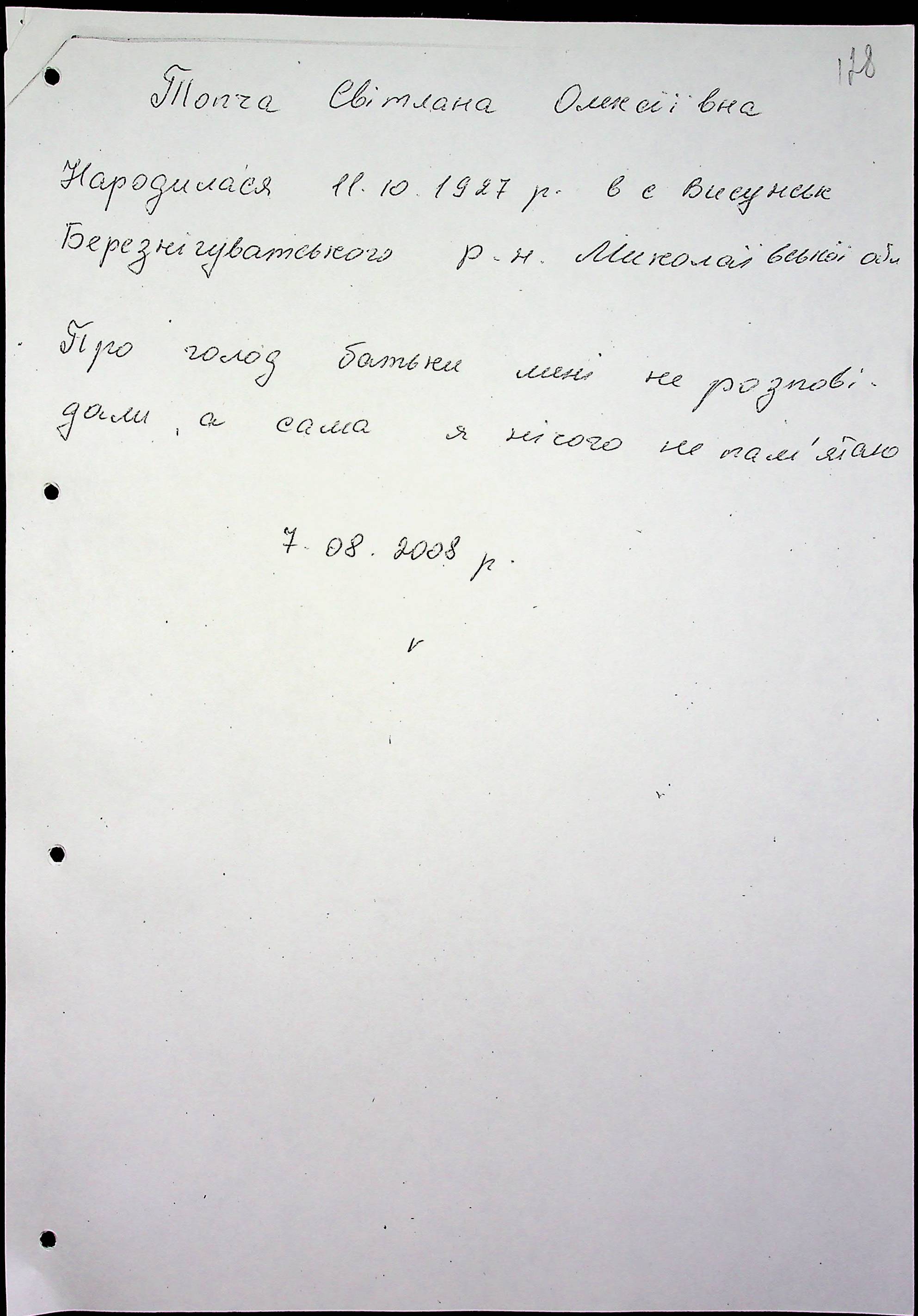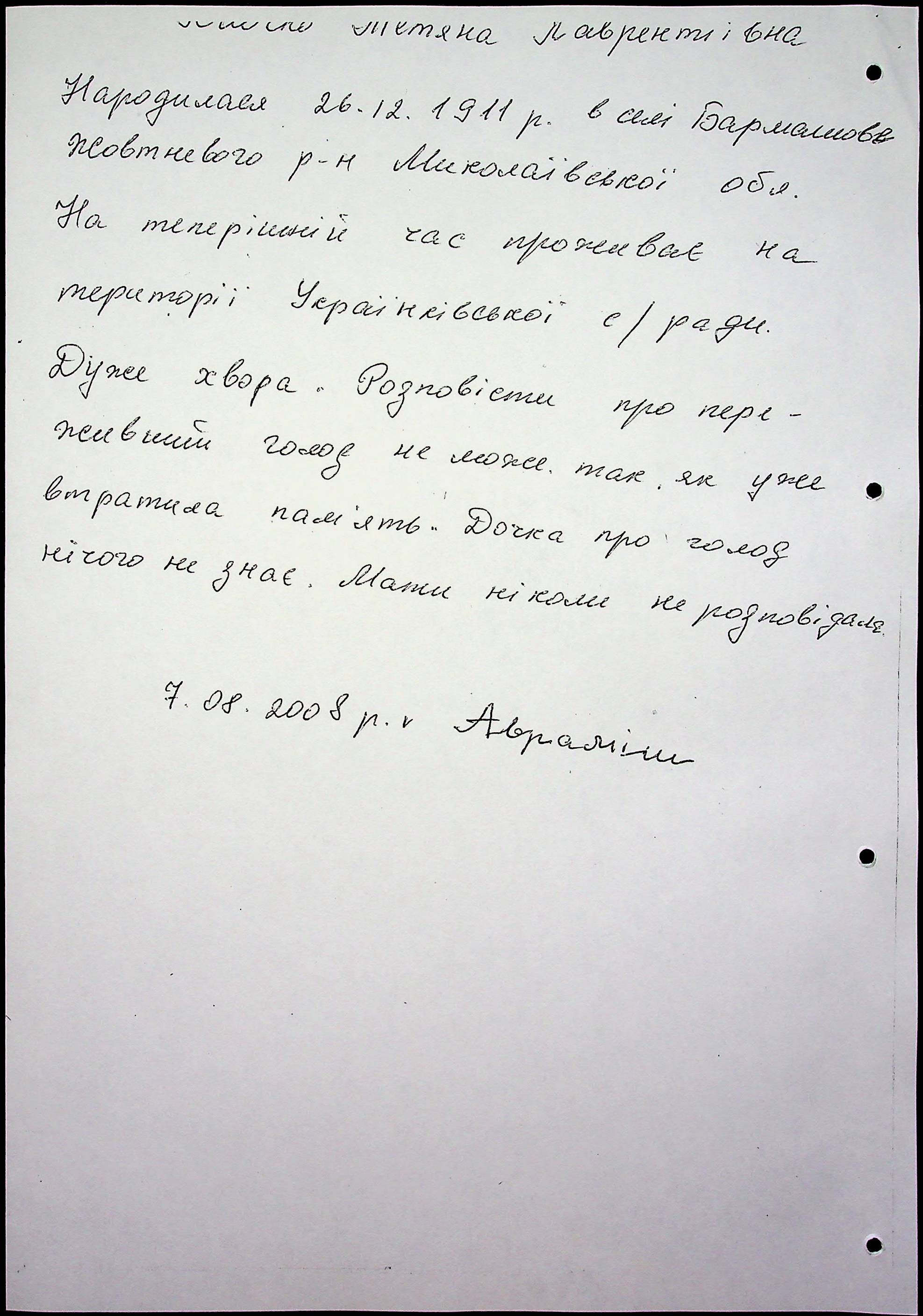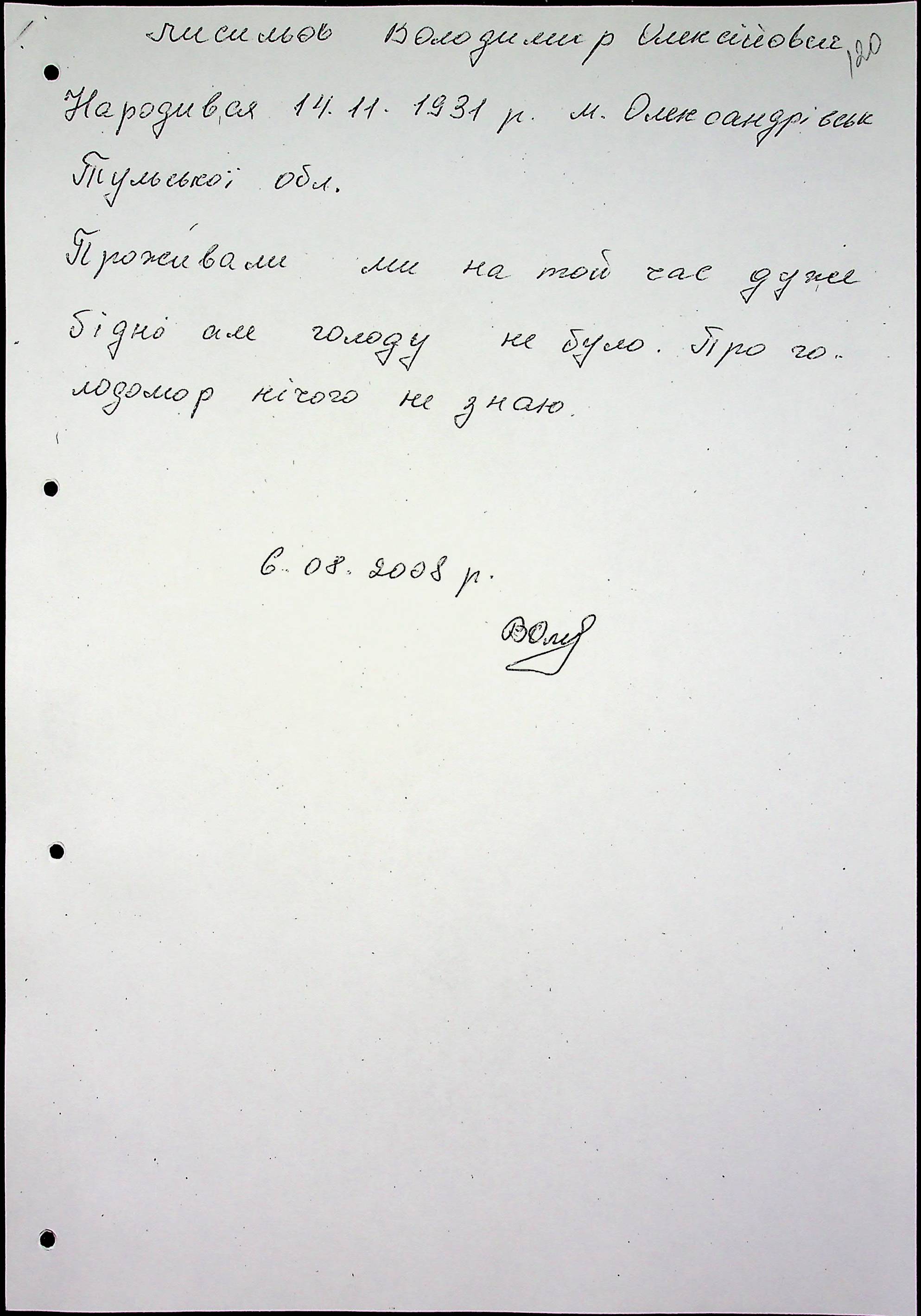 ◦ ◦ Фонд № 6146 “Колекція свідчень очевидців Голодомору 1932-1933 рр., нині проживаючих у Миколаївській області”