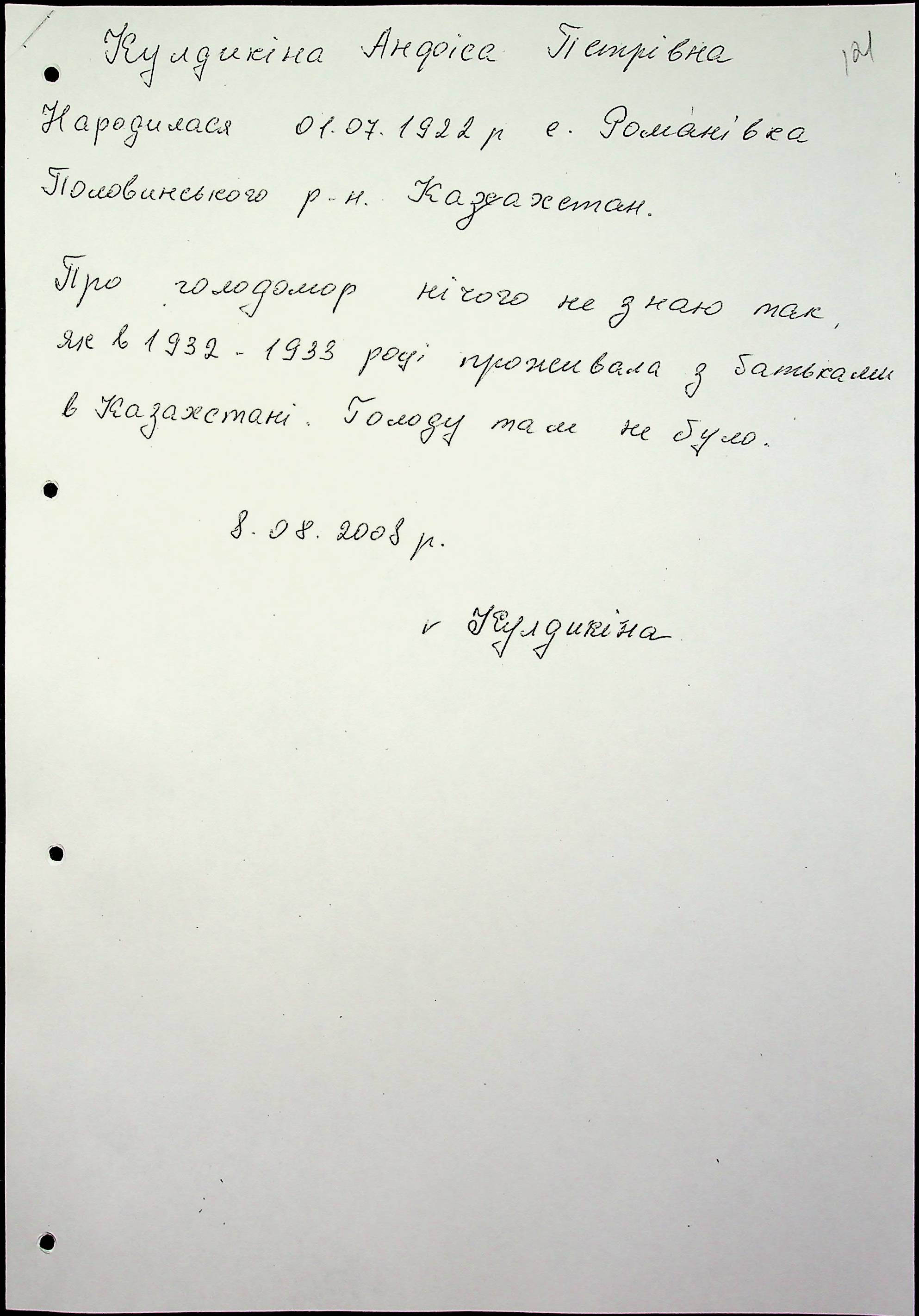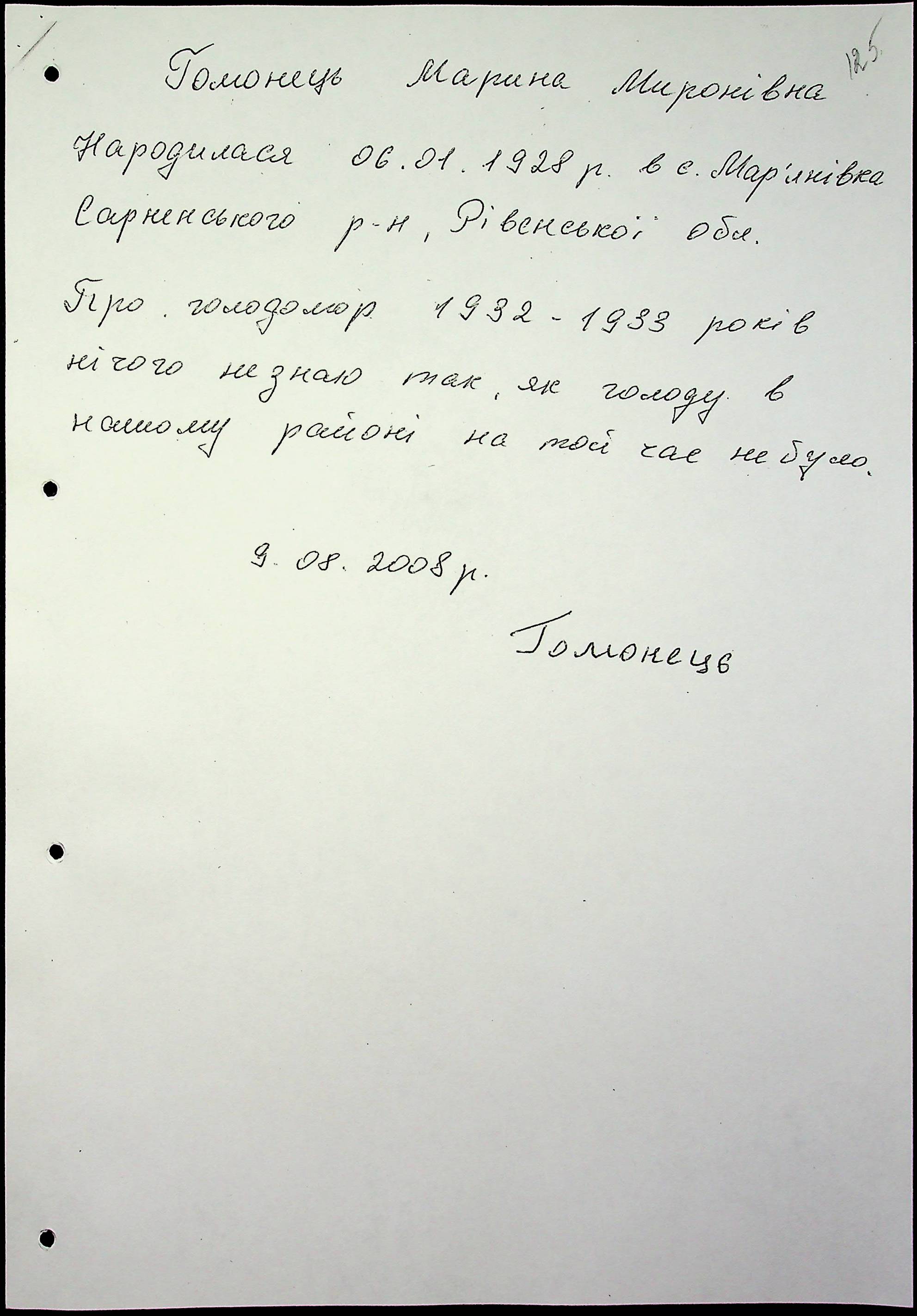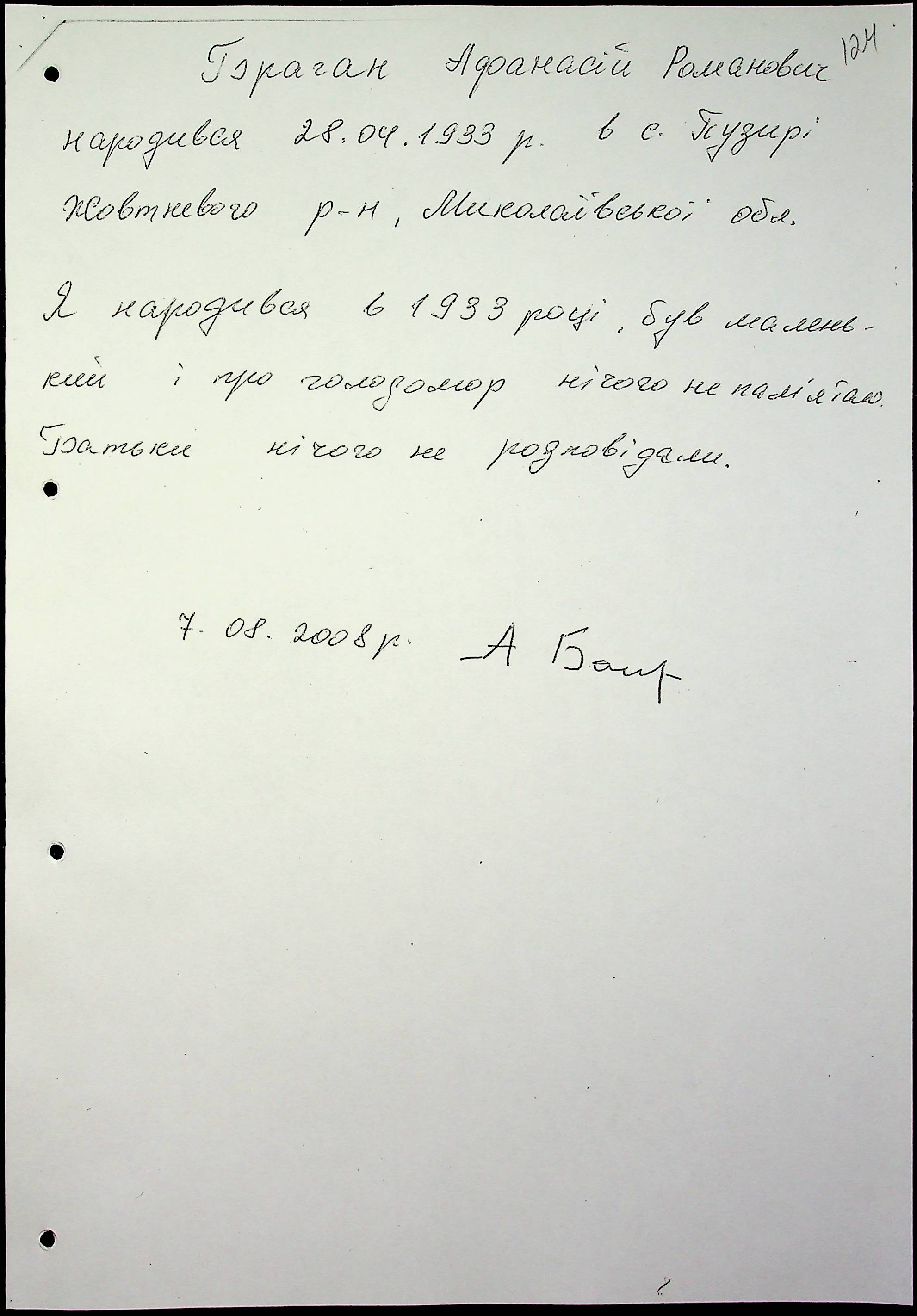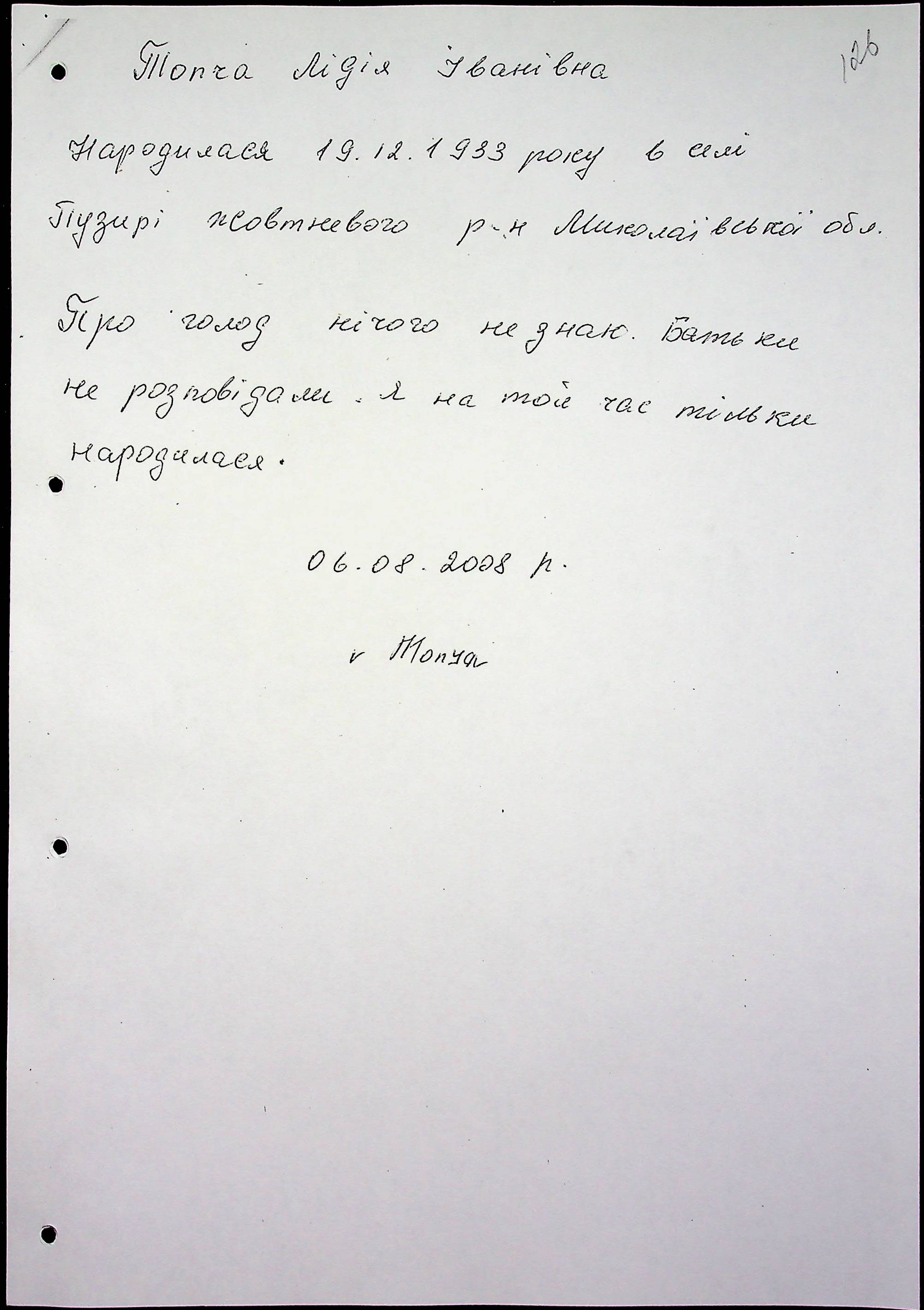 ◦ ◦ Фонд № 6146 “Колекція свідчень очевидців Голодомору 1932-1933 рр., нині проживаючих у Миколаївській області”