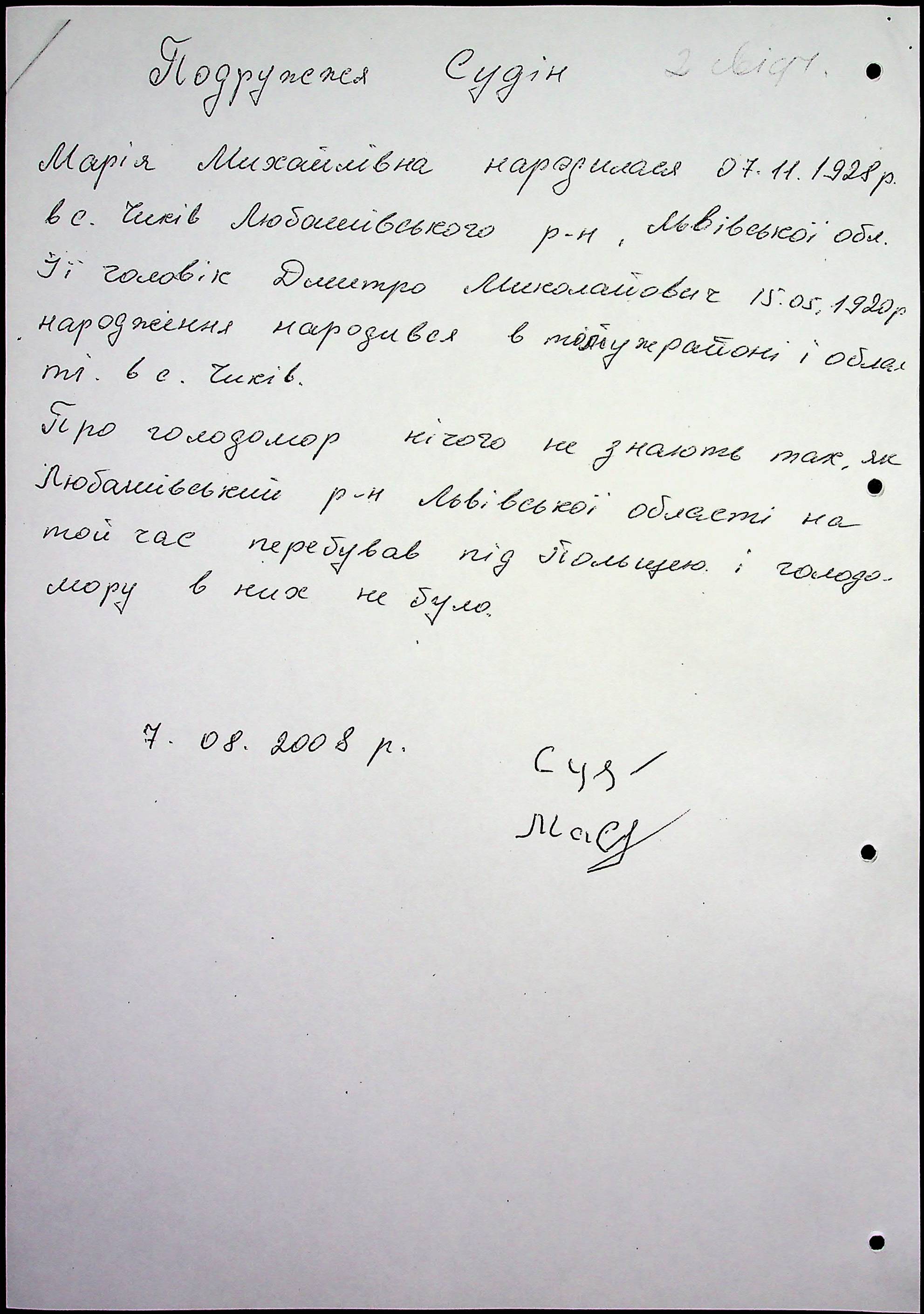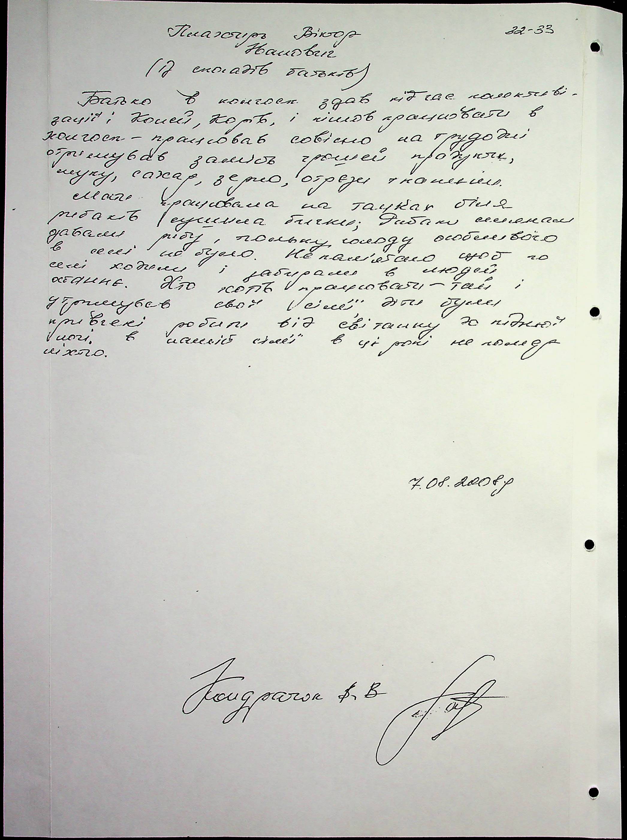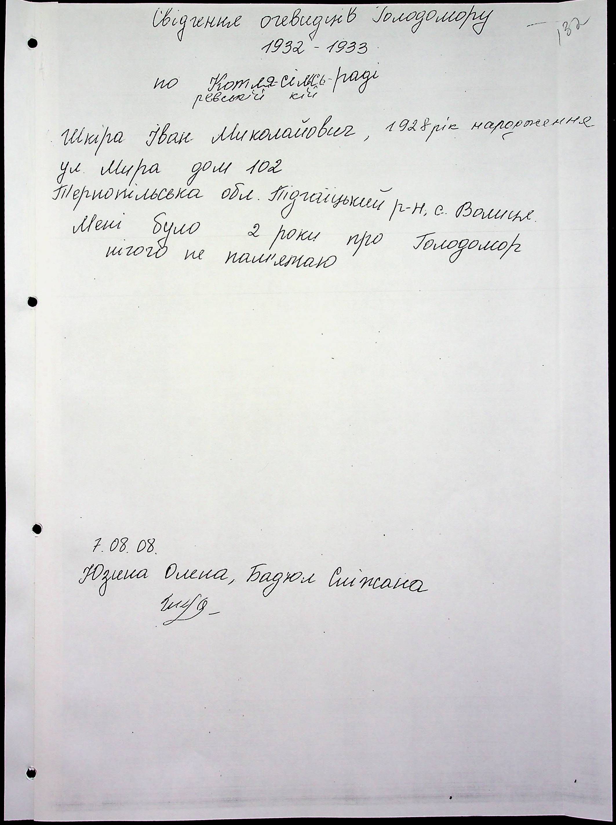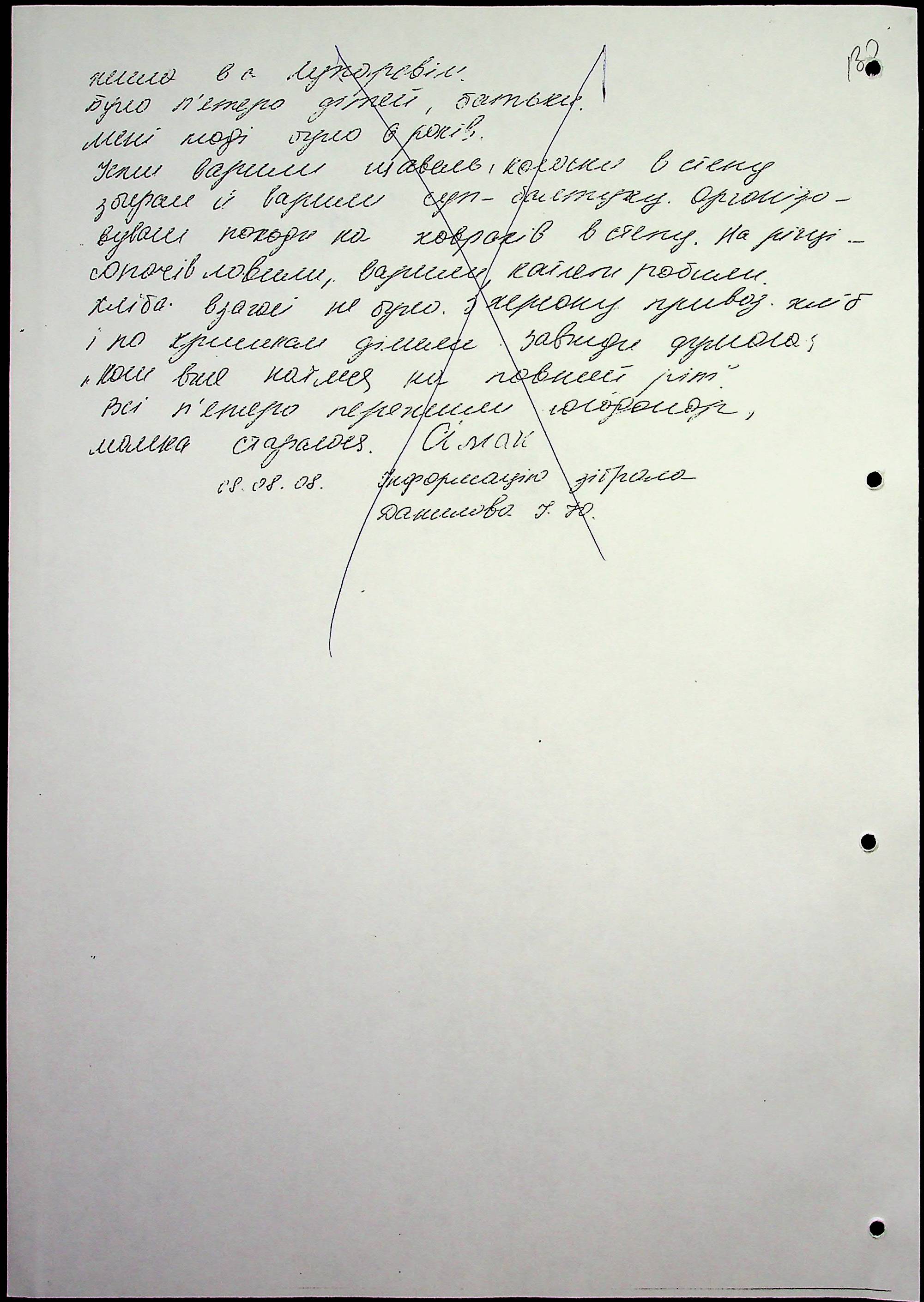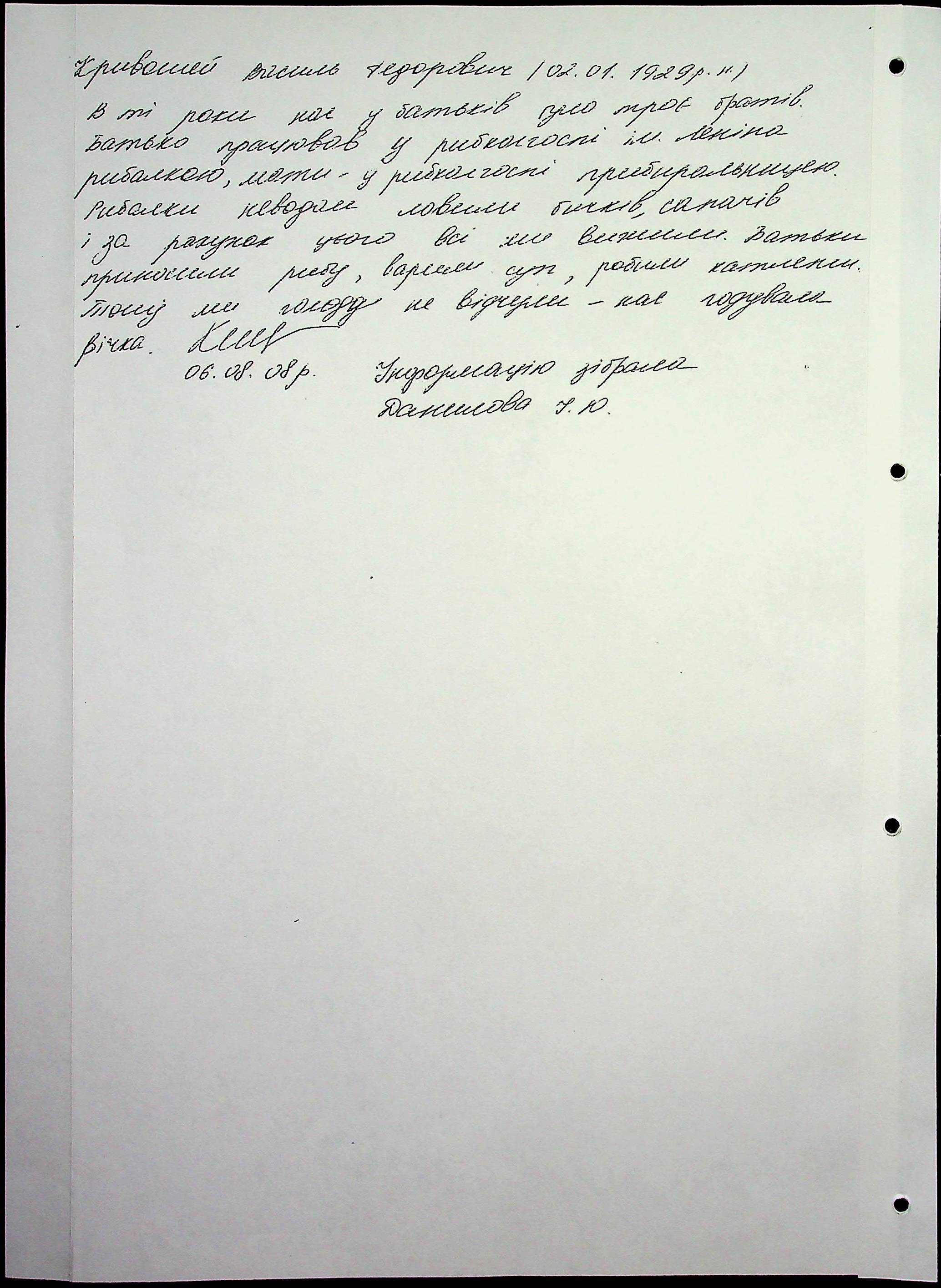 • • • • Справа № 37 ” Свідчення очевидців Голодомору 1932-1933 років, які проживають у Жовтневому районі, з прізвищами на літери А–Я (доповнення). Том 3″