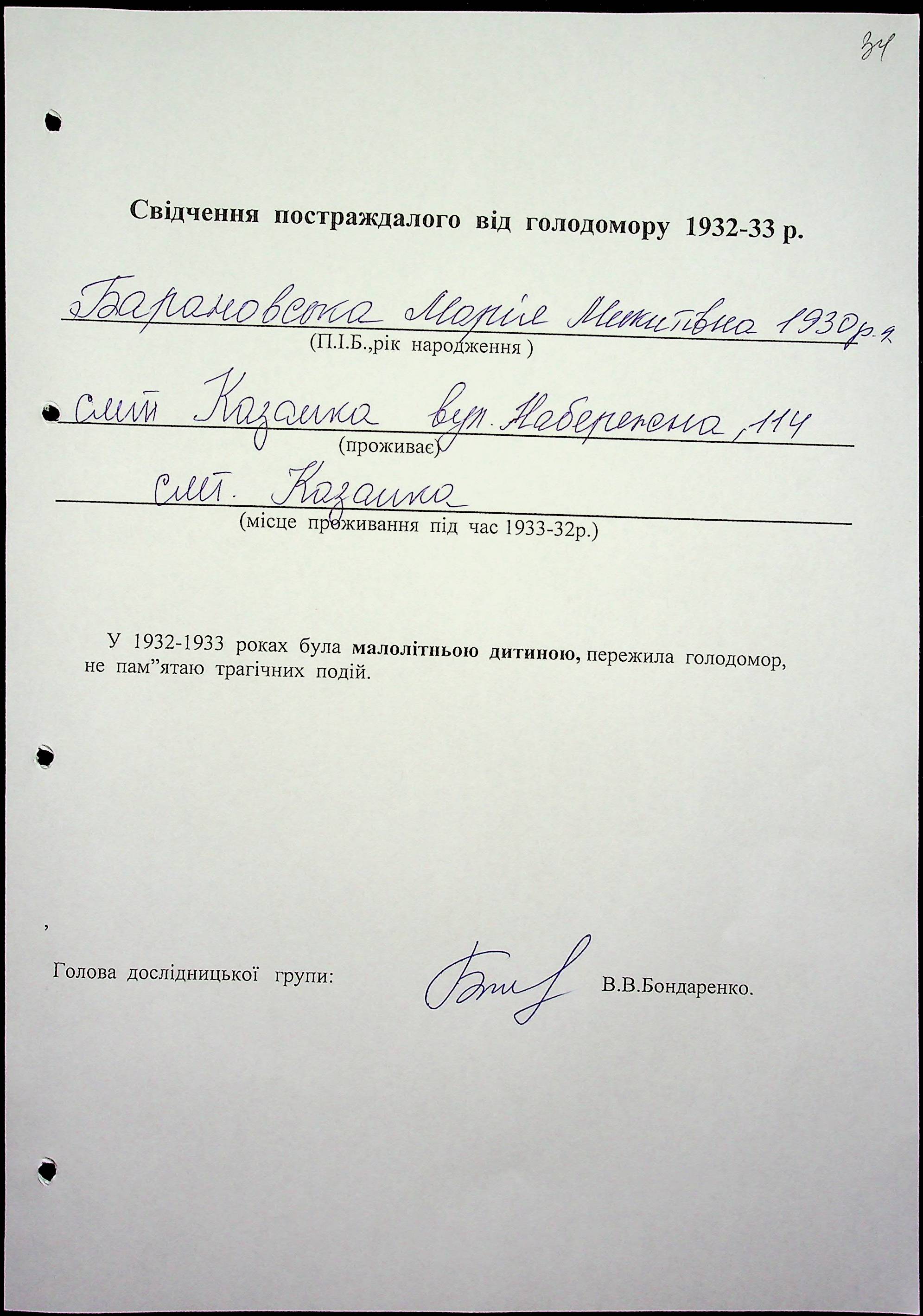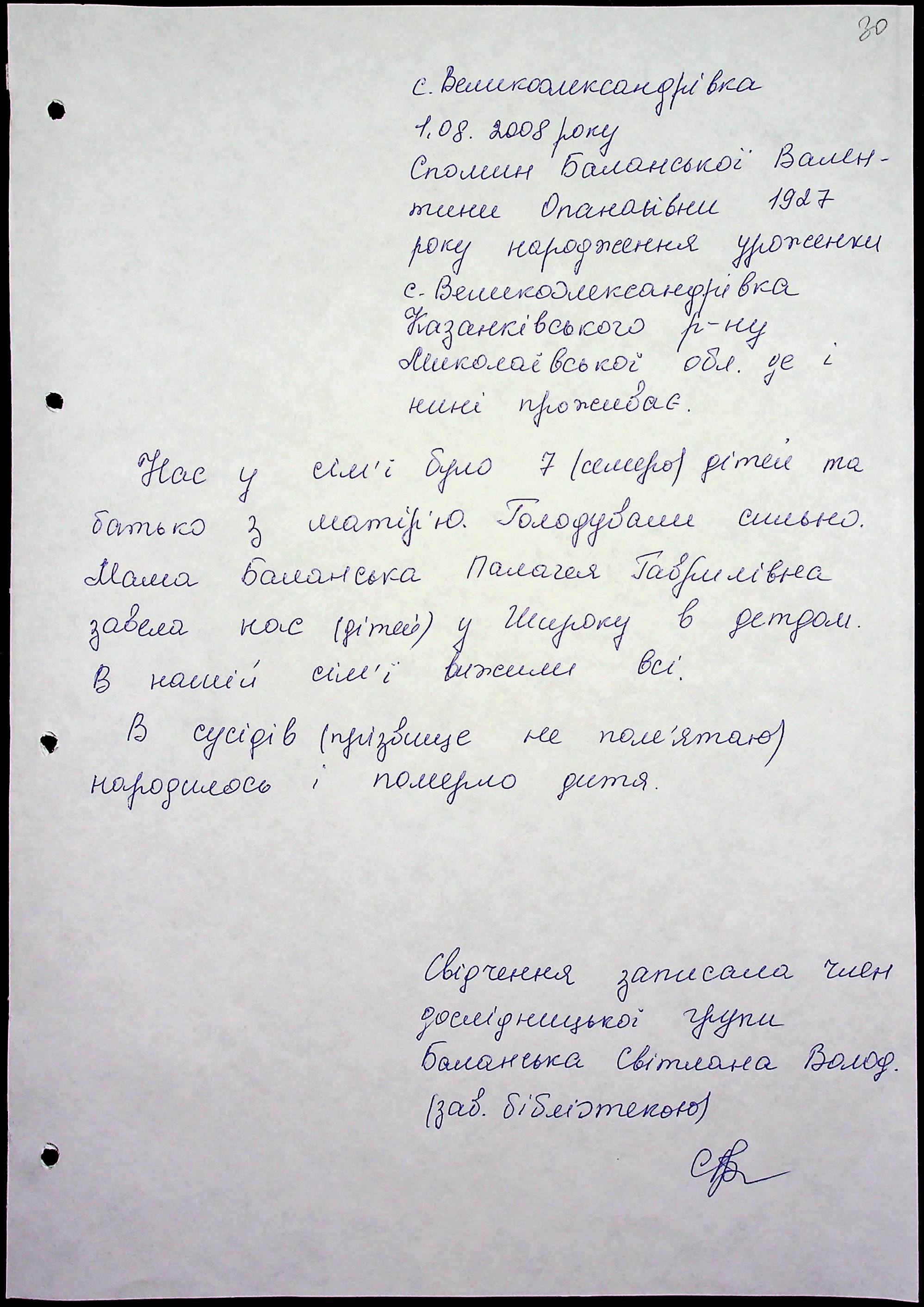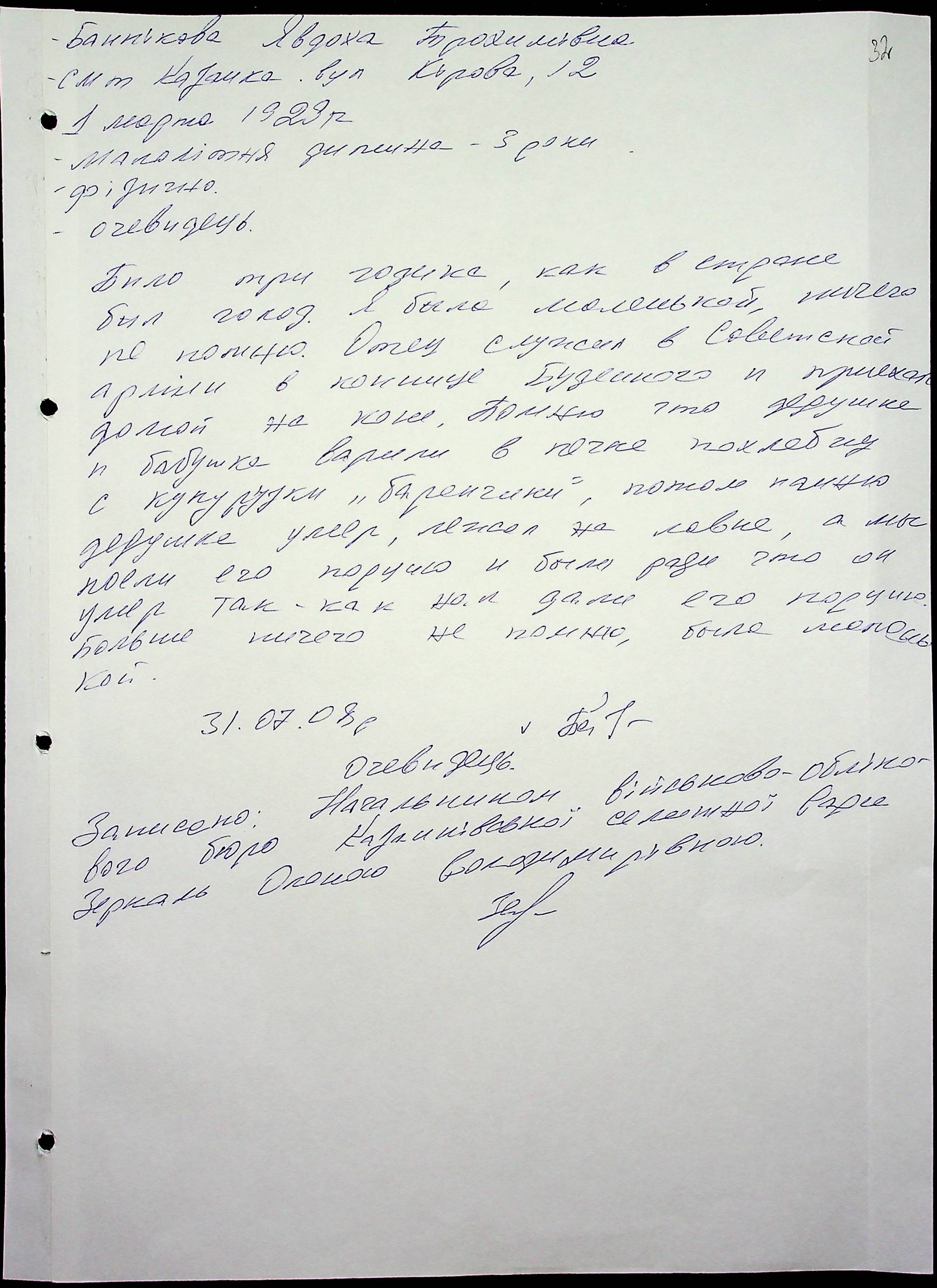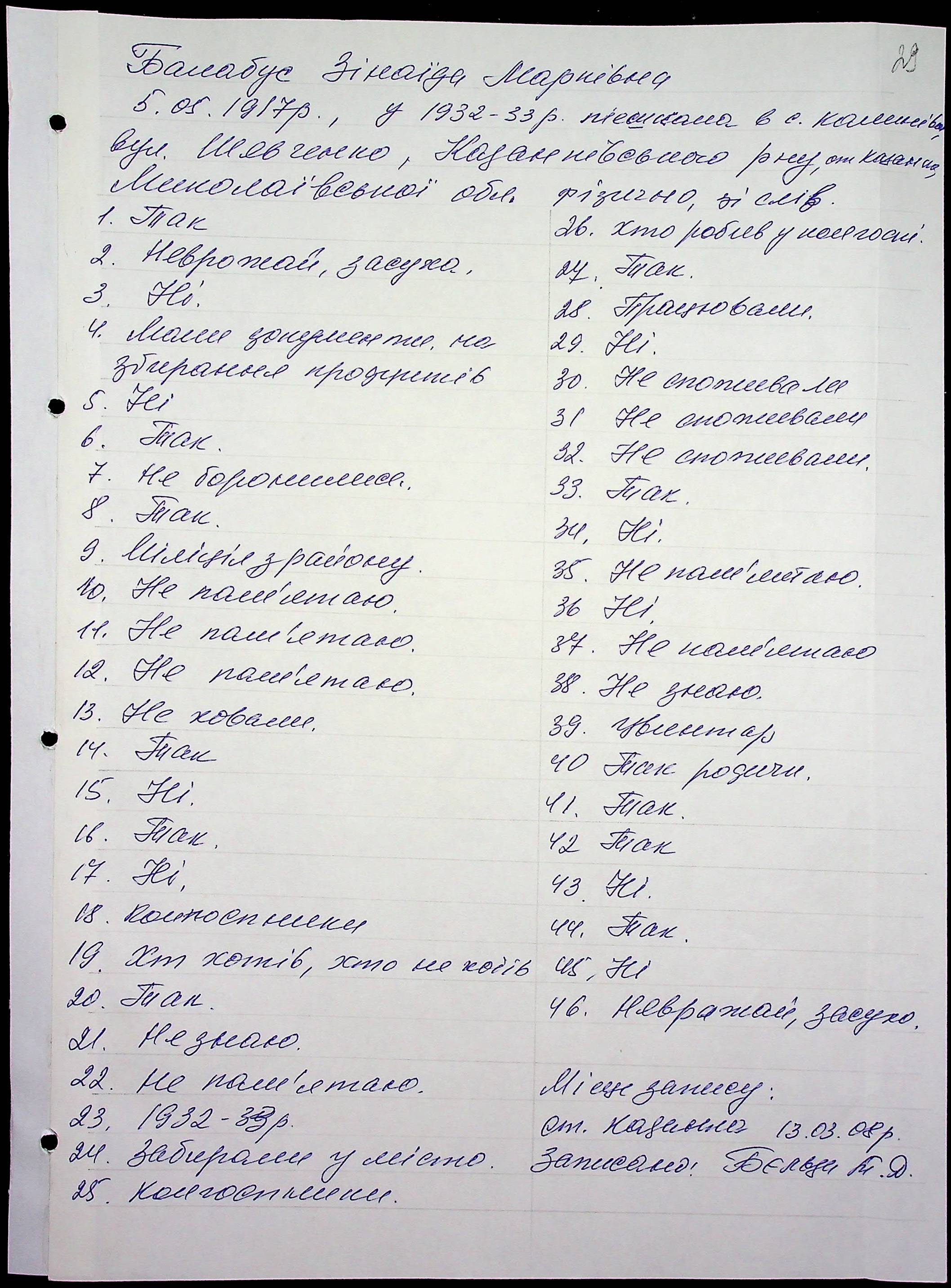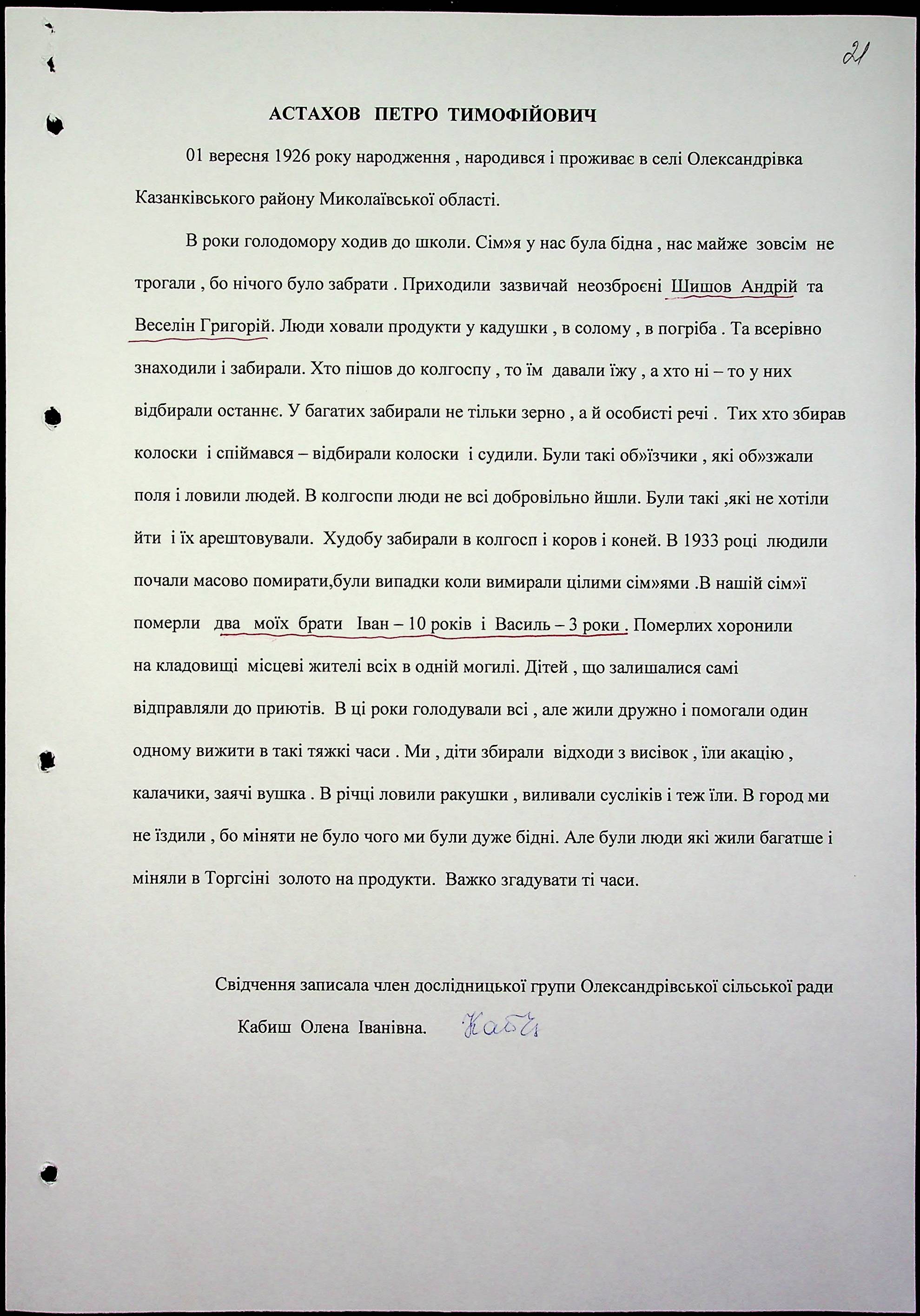 • • • • Справа № 38 “Свідчення очевидців Голодомору 1932-1933 років, які проживають у Казанківському районі, з прізвищами на літери А–І”