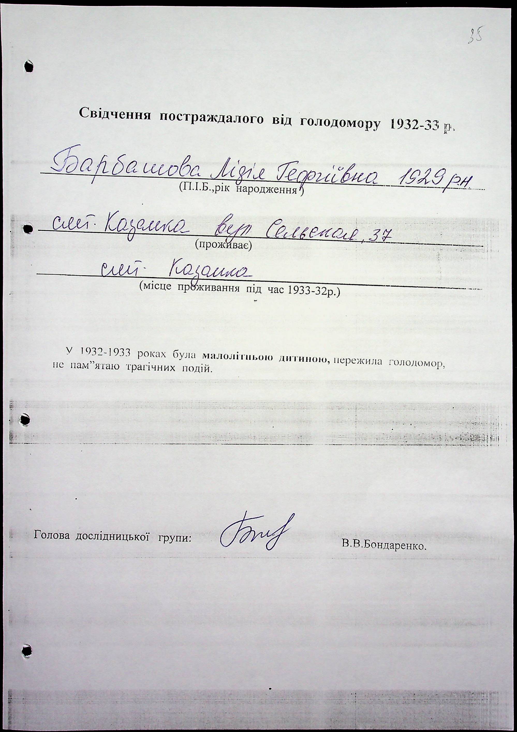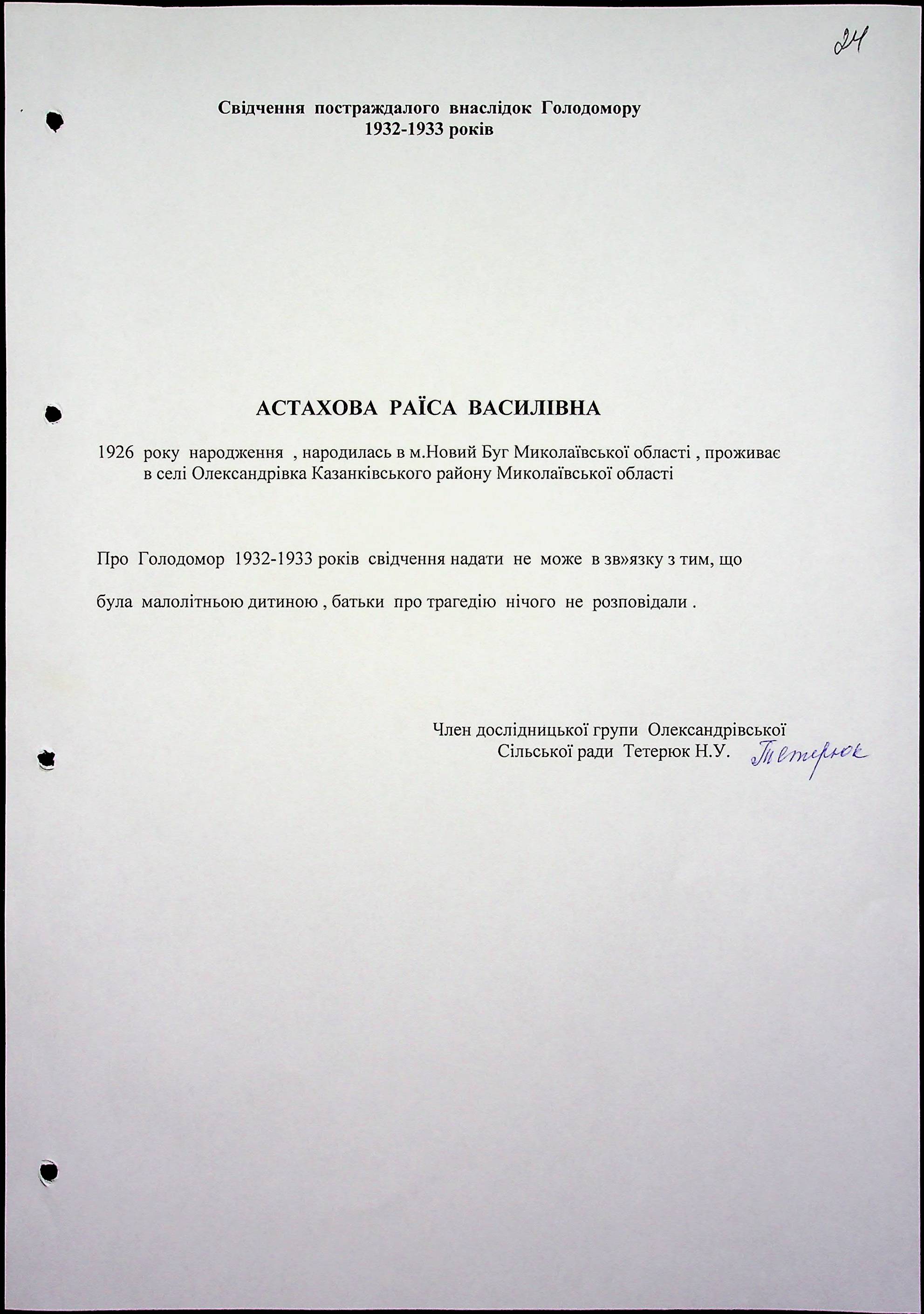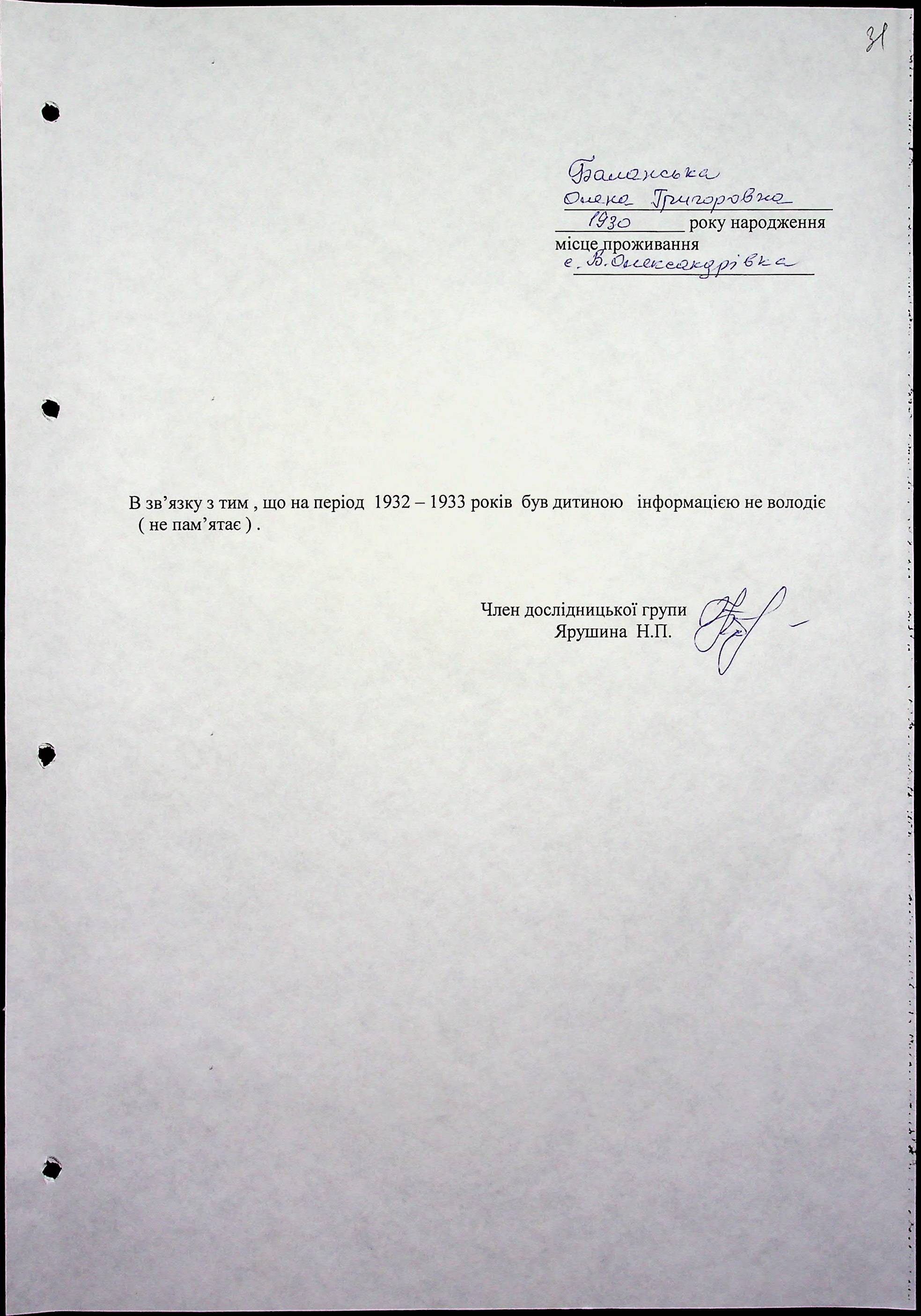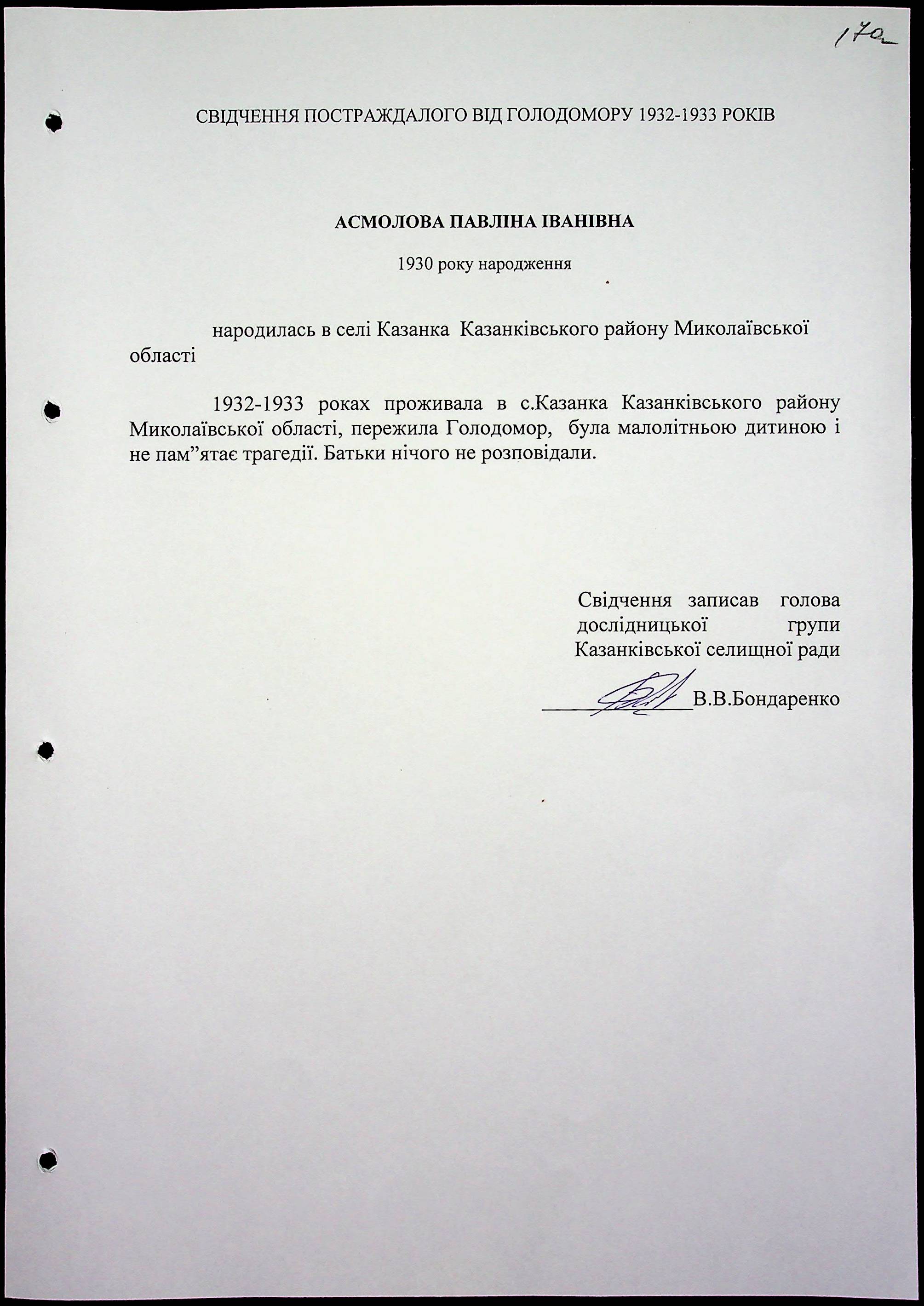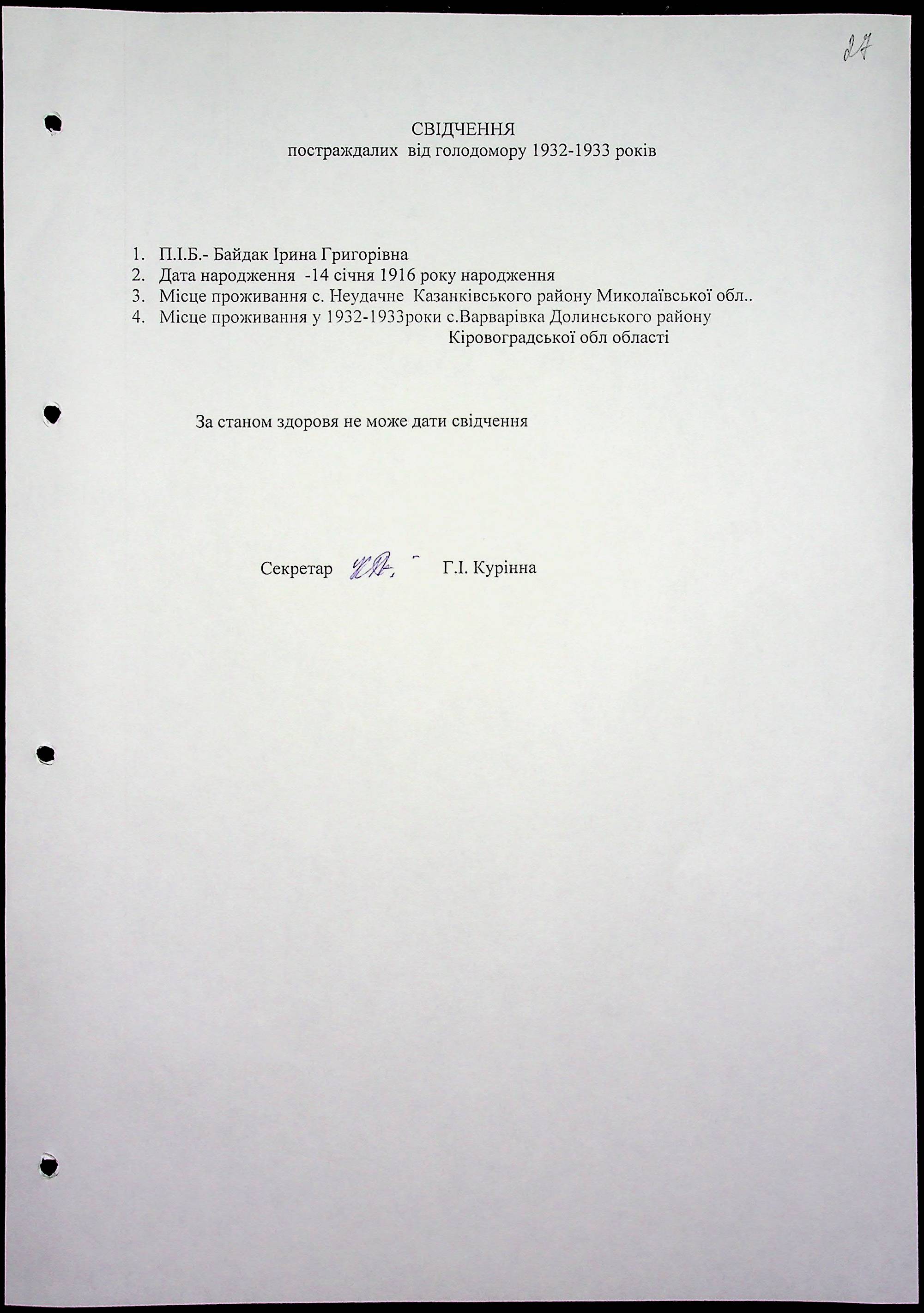 • • • • Справа № 38 “Свідчення очевидців Голодомору 1932-1933 років, які проживають у Казанківському районі, з прізвищами на літери А–І”