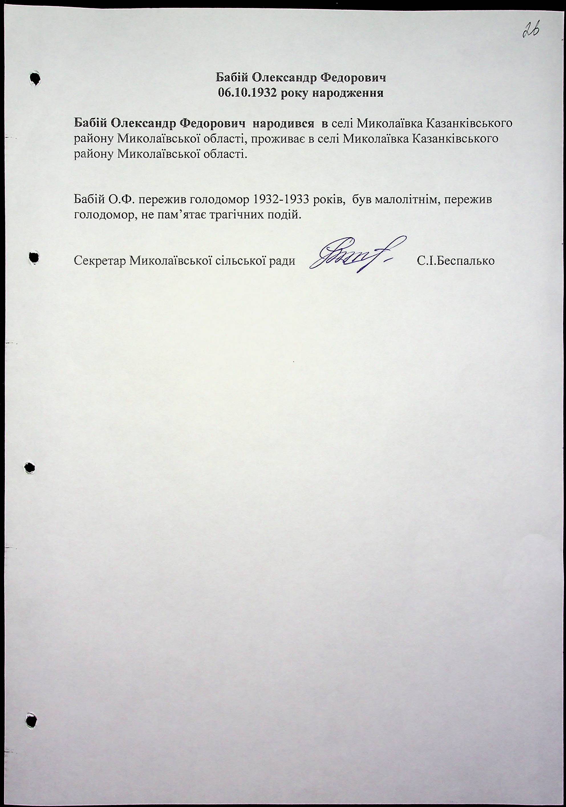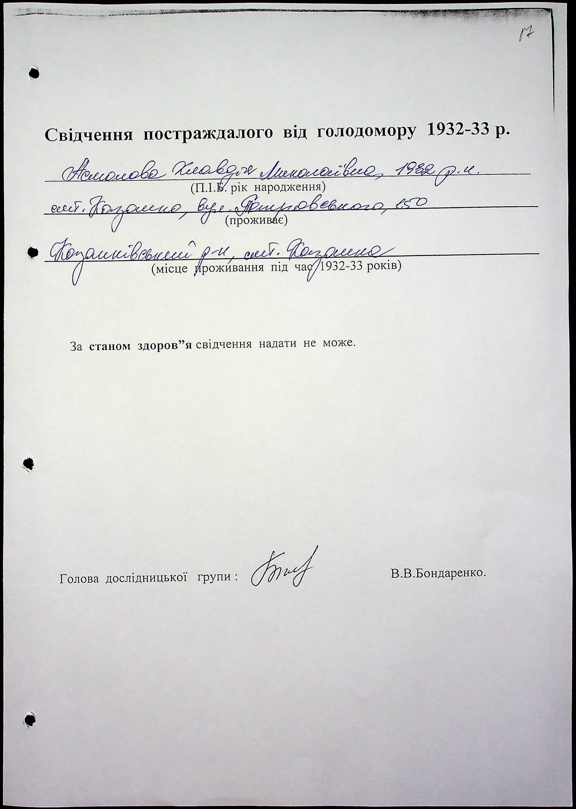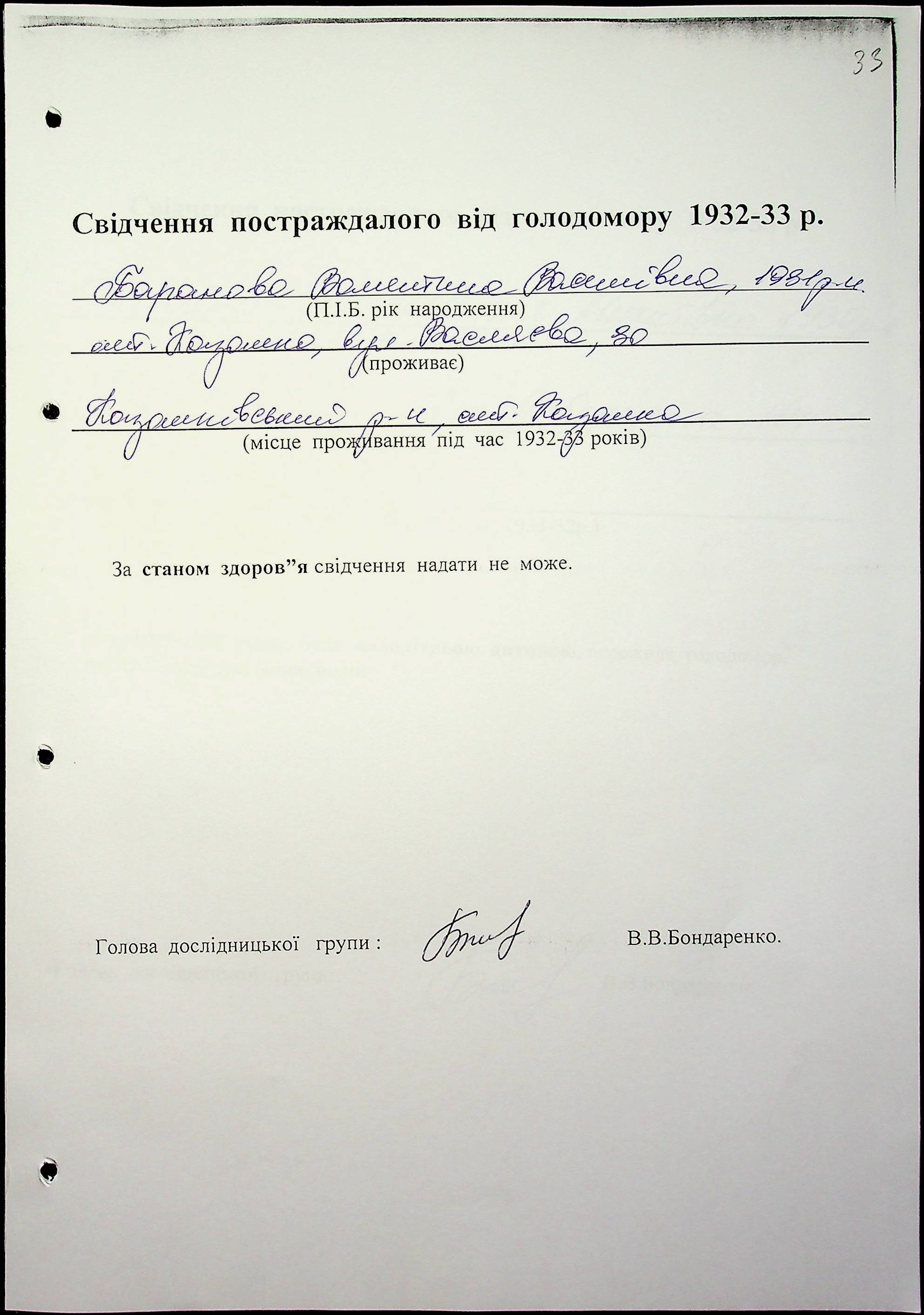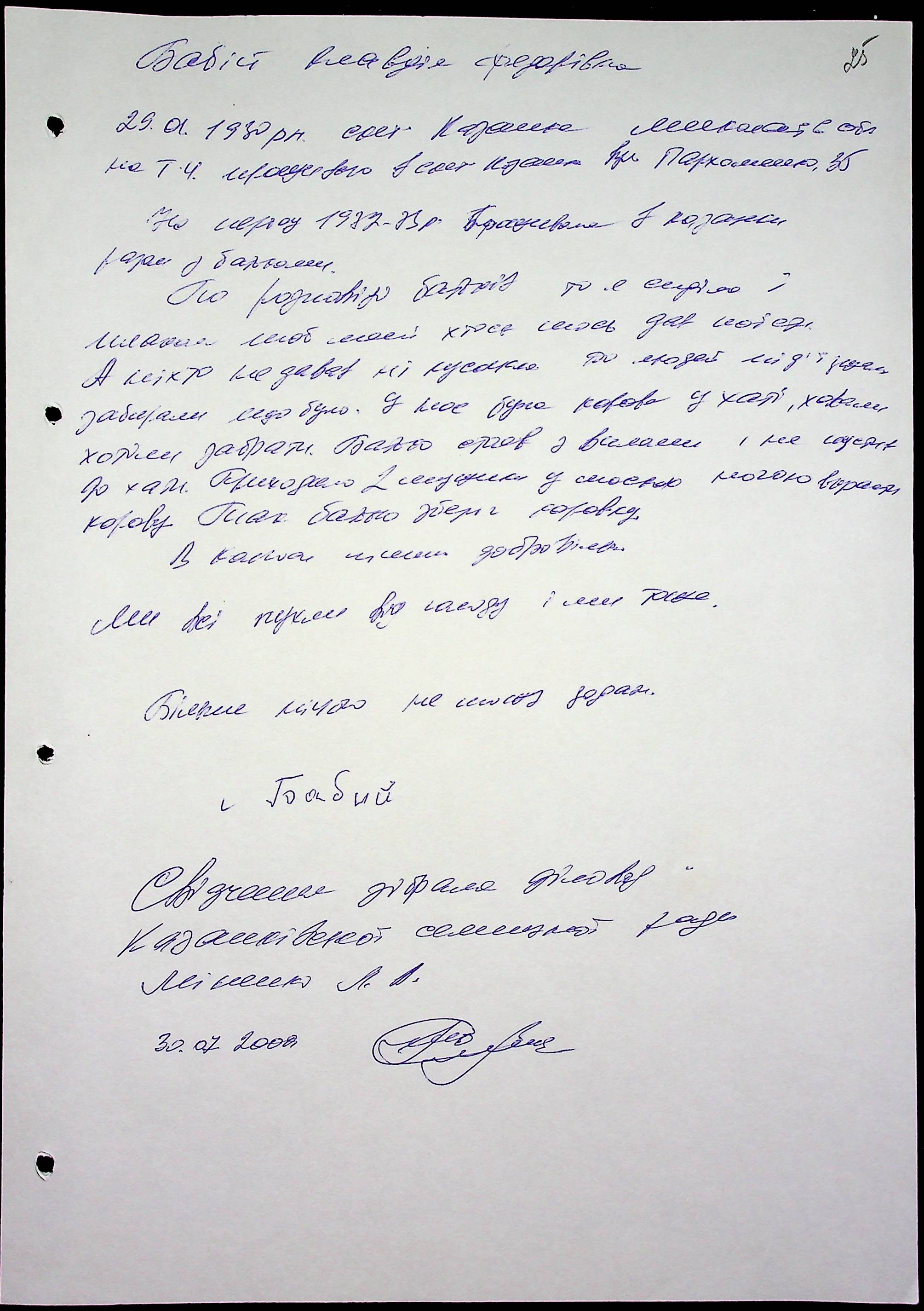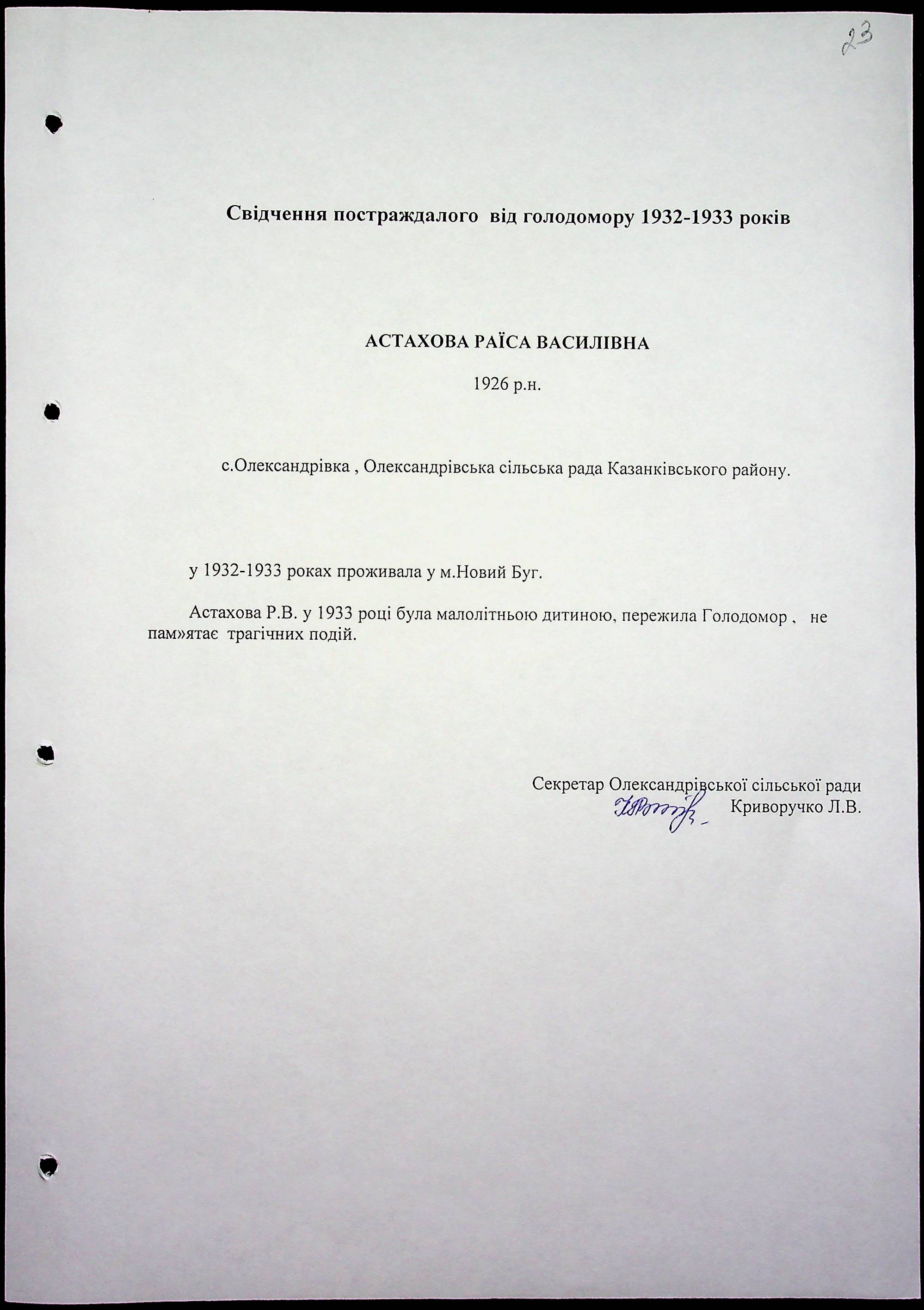 • • • • Справа № 38 “Свідчення очевидців Голодомору 1932-1933 років, які проживають у Казанківському районі, з прізвищами на літери А–І”