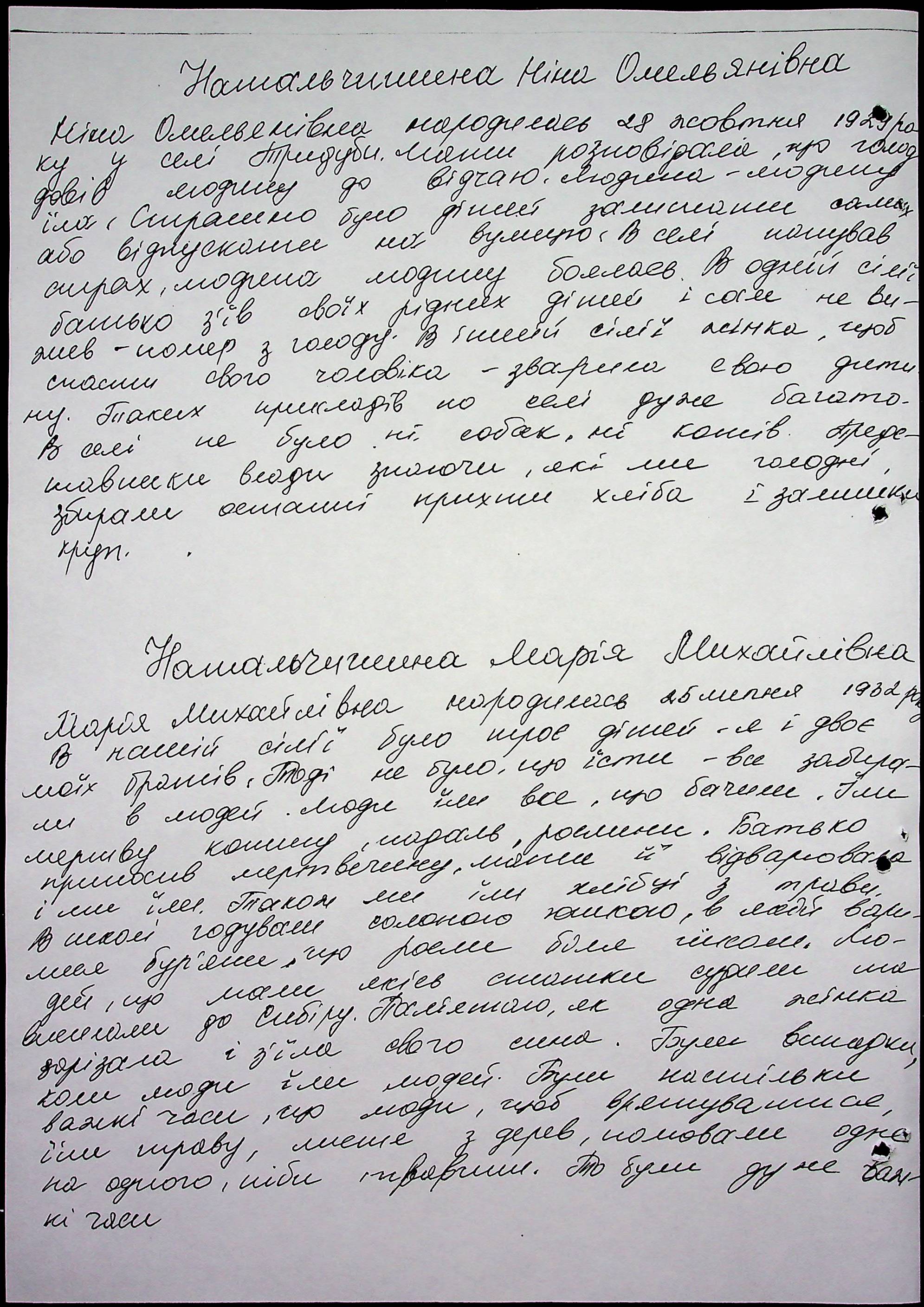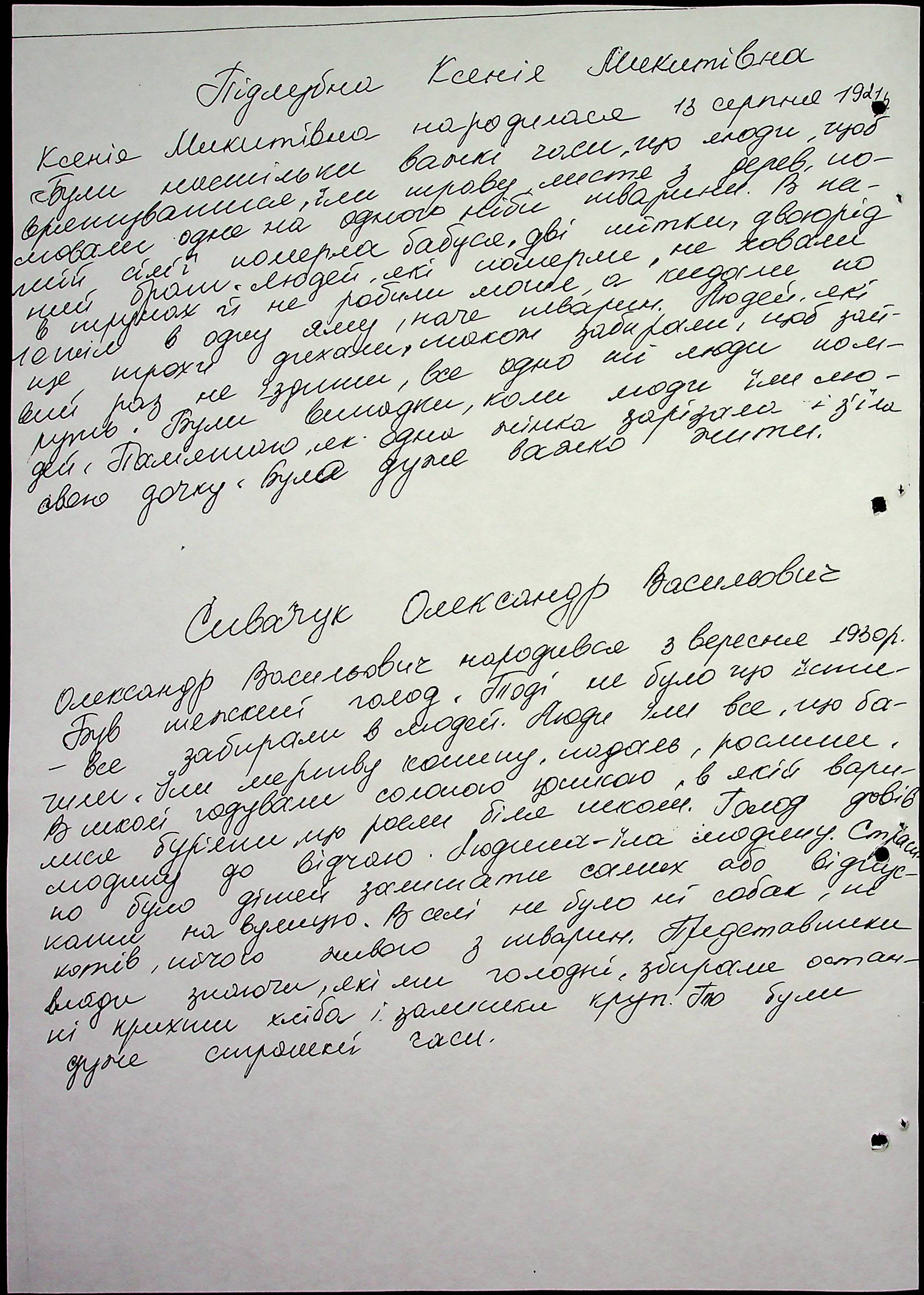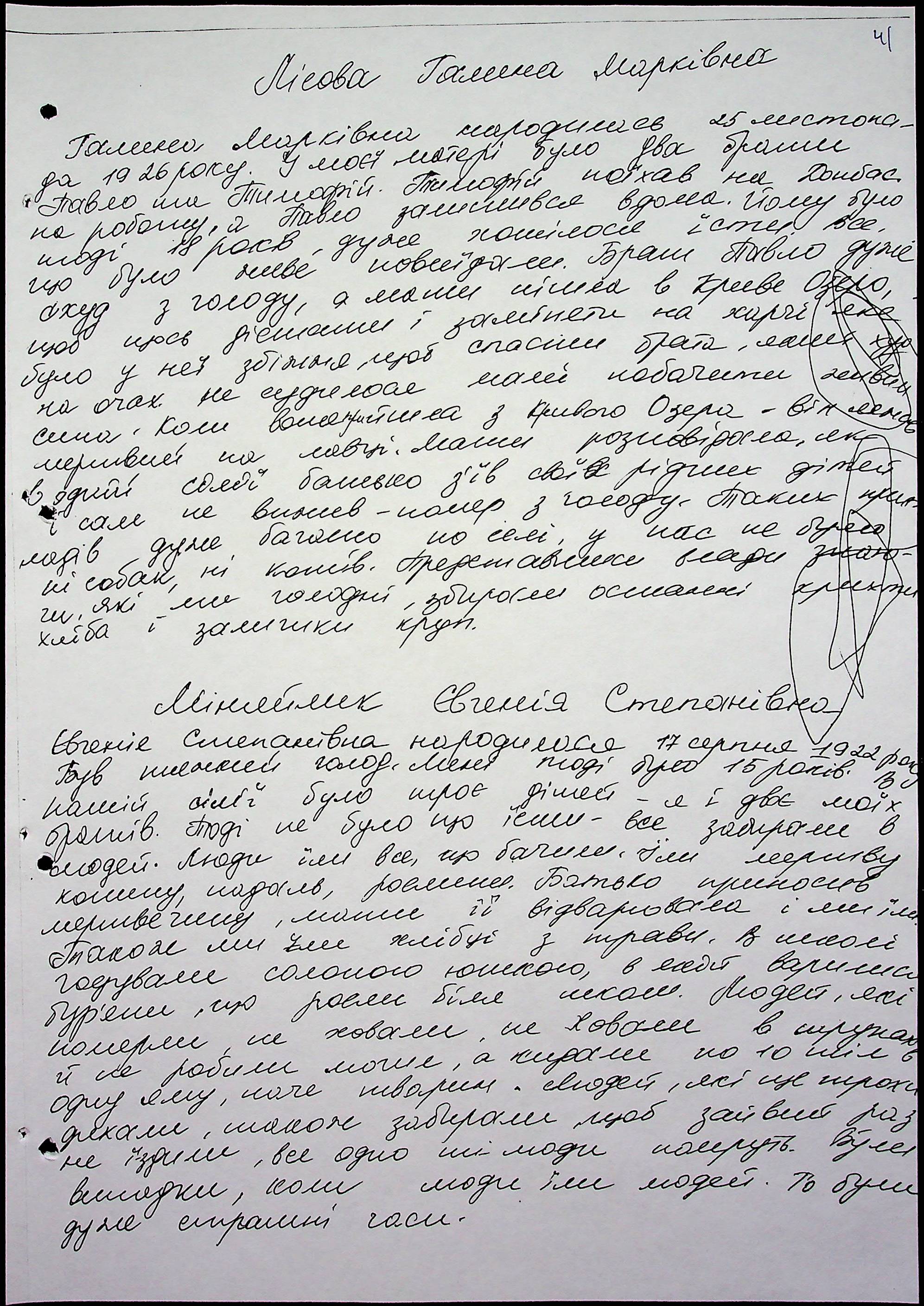 • • • • Справа № 42 “Свідчення очевидців Голодомору 1932-1933 років, які проживають у Кривоозерському районі. Том 1.”