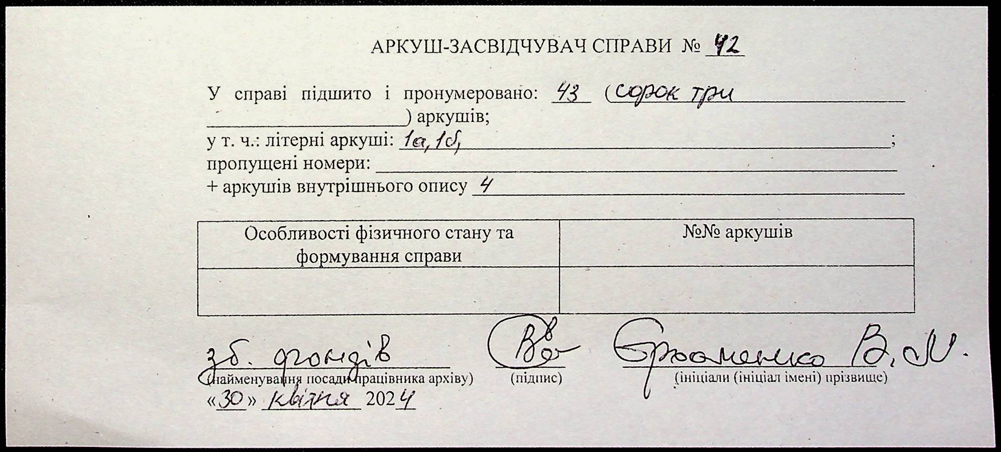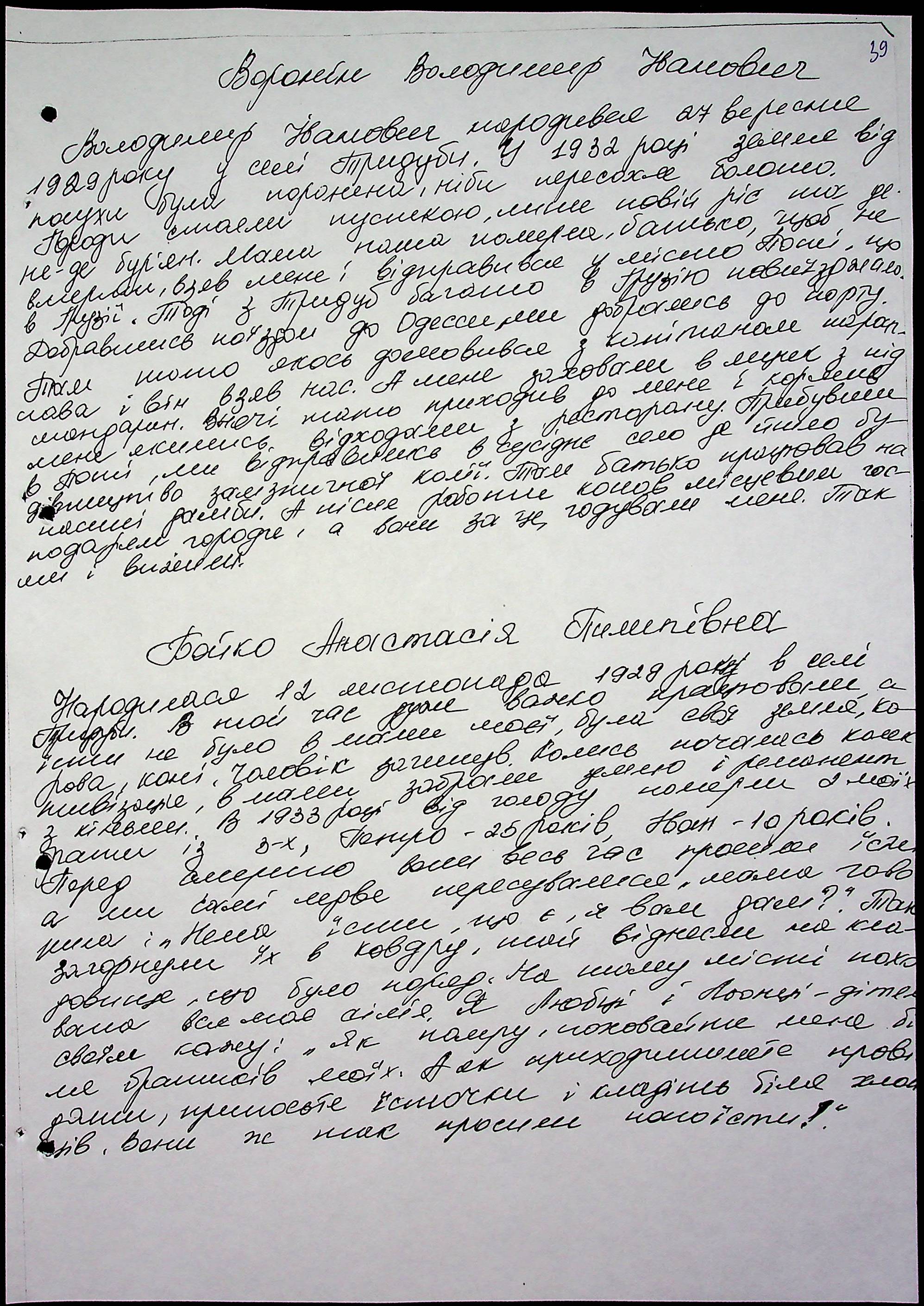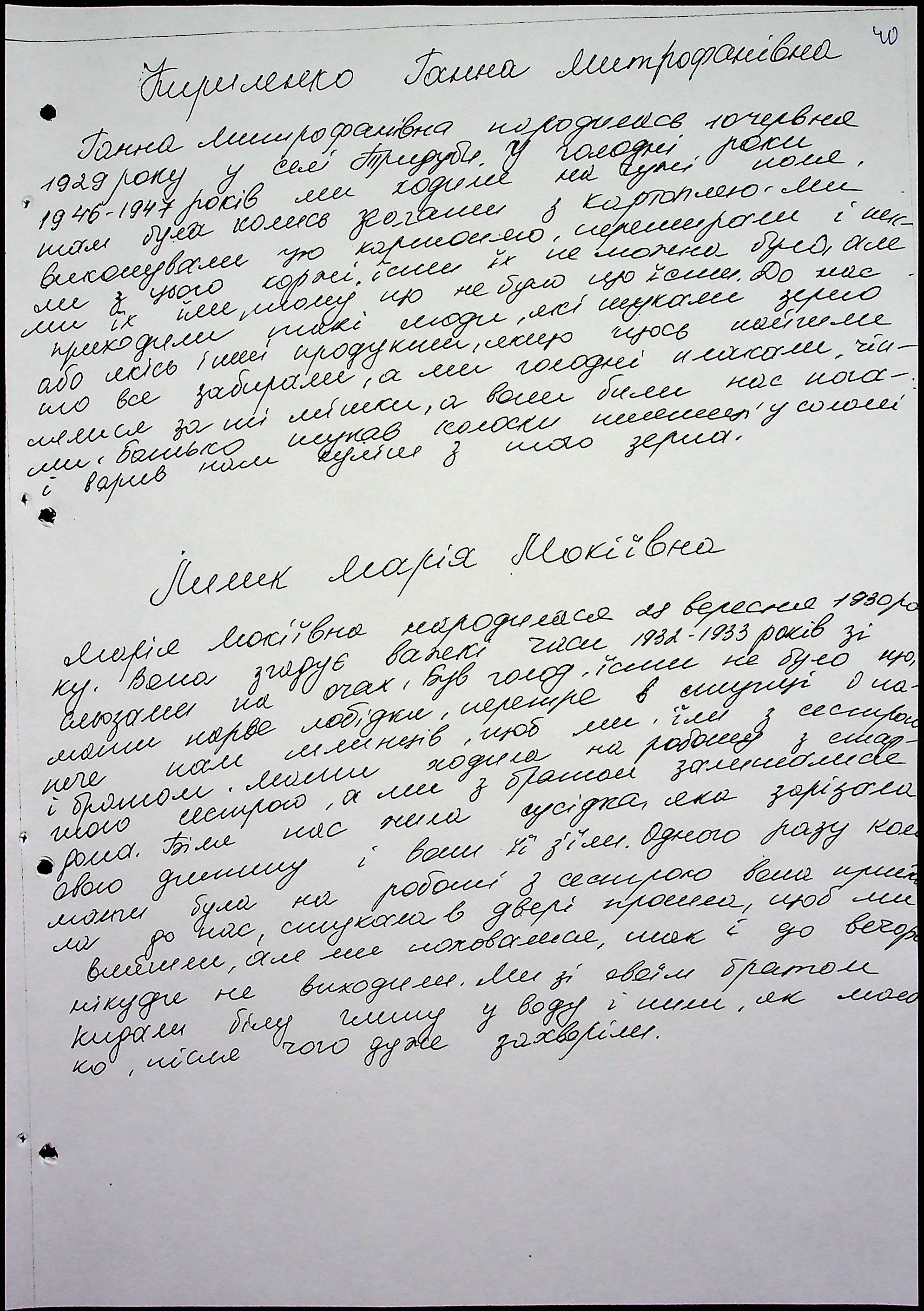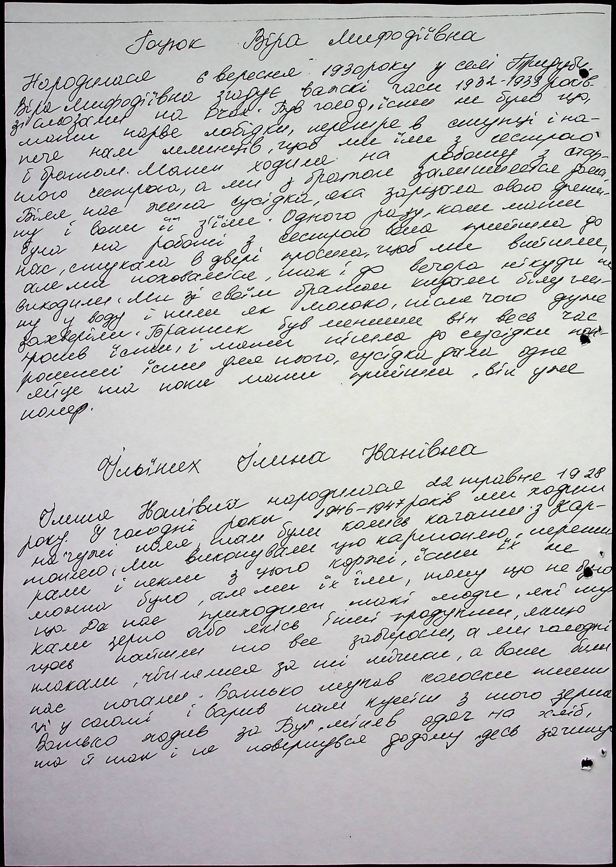 • • • • Справа № 42 “Свідчення очевидців Голодомору 1932-1933 років, які проживають у Кривоозерському районі. Том 1.”
