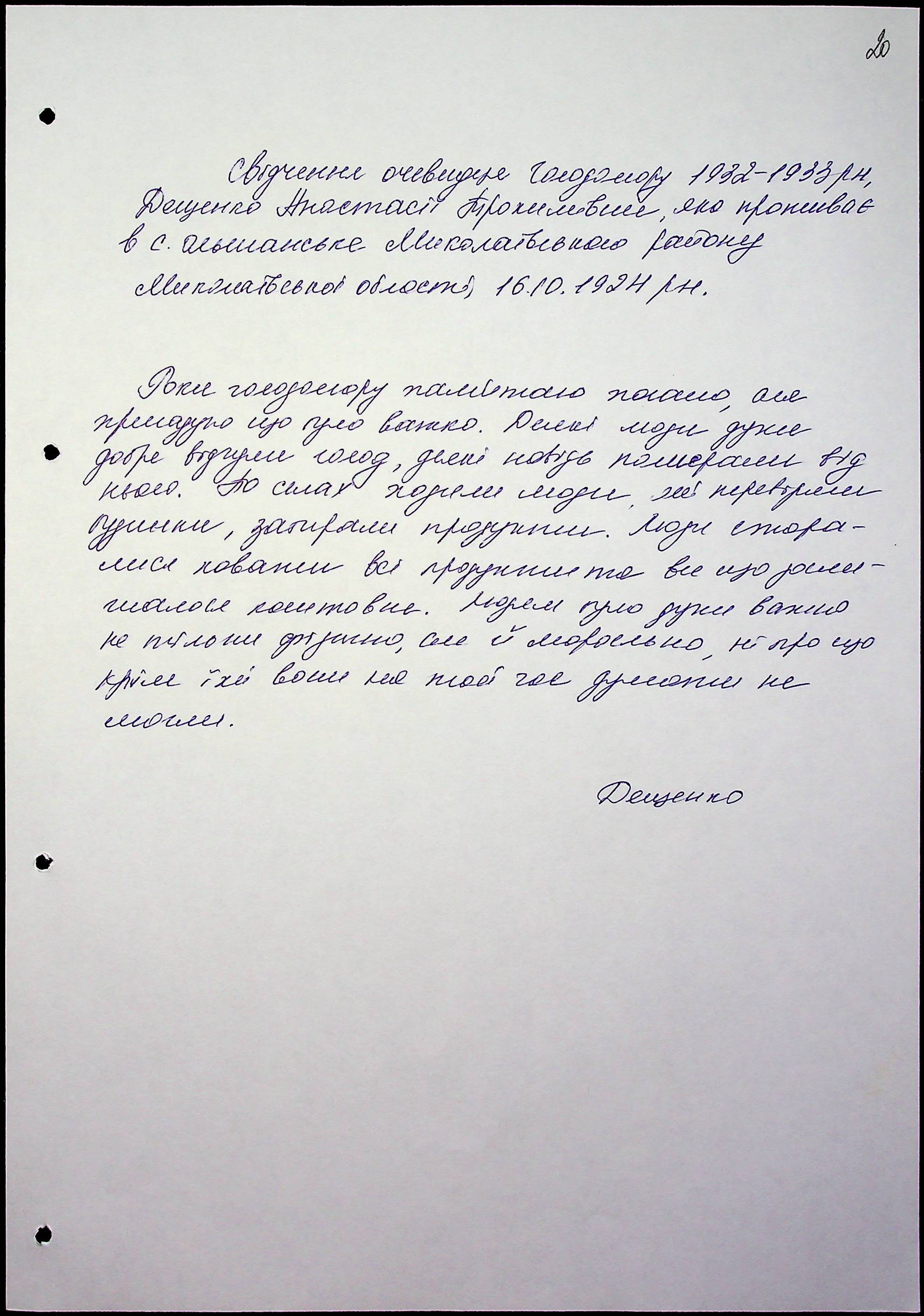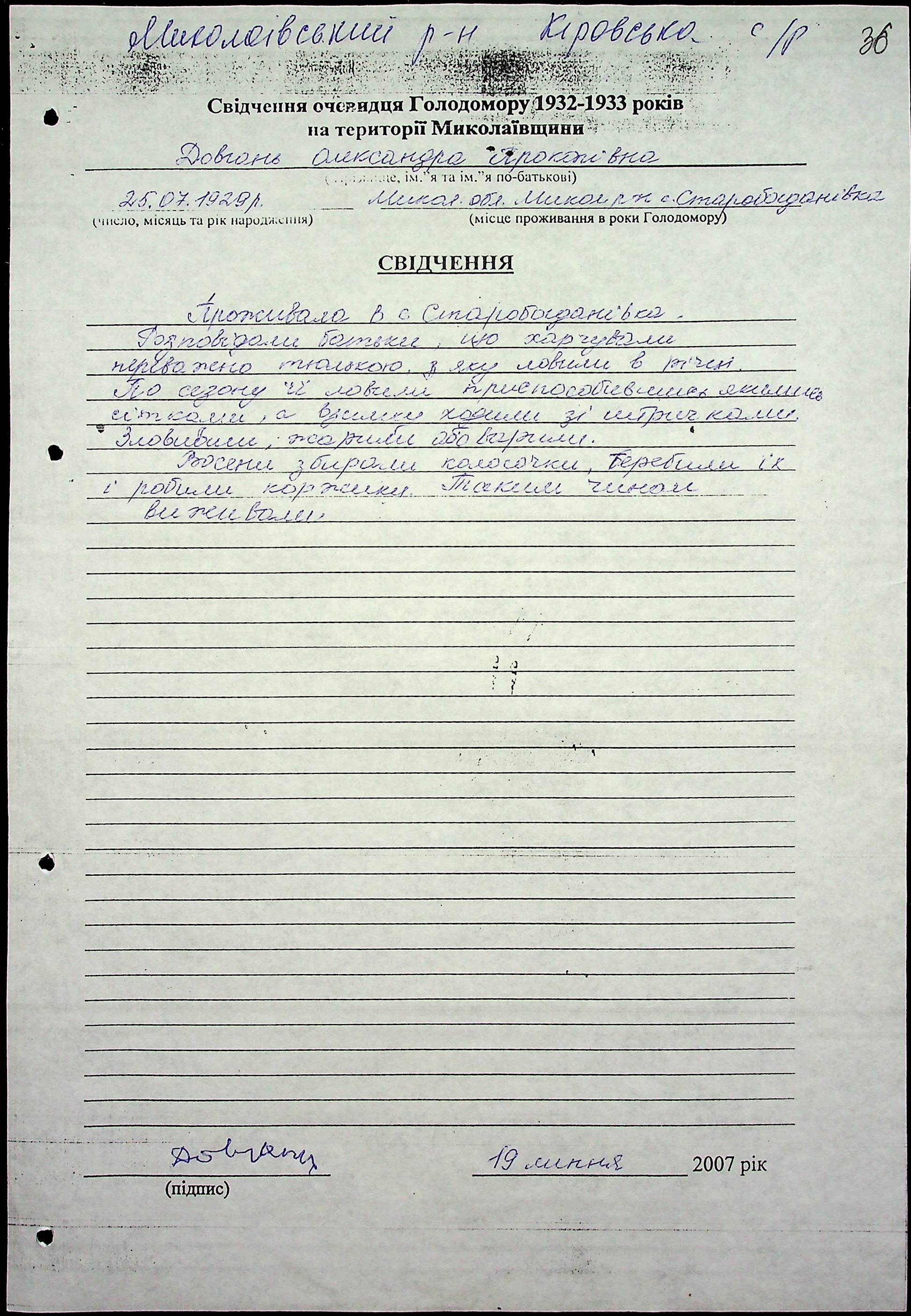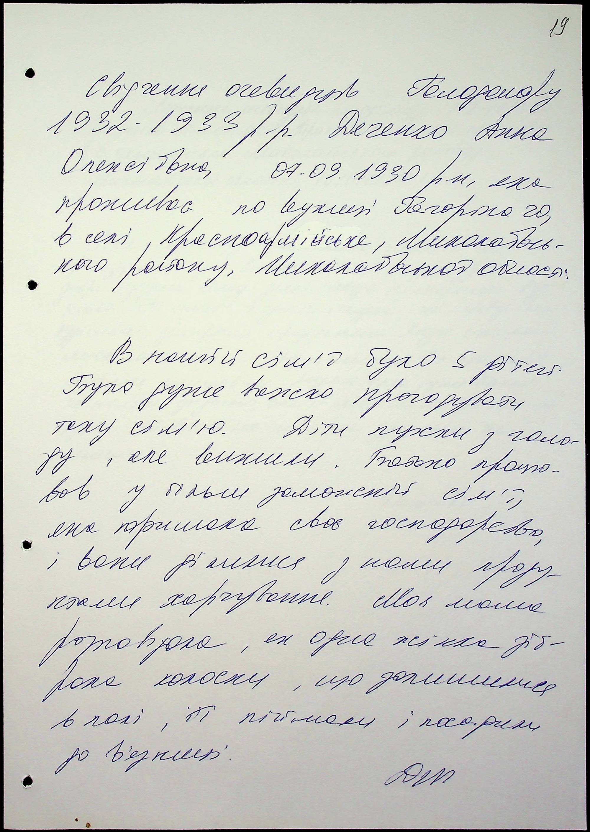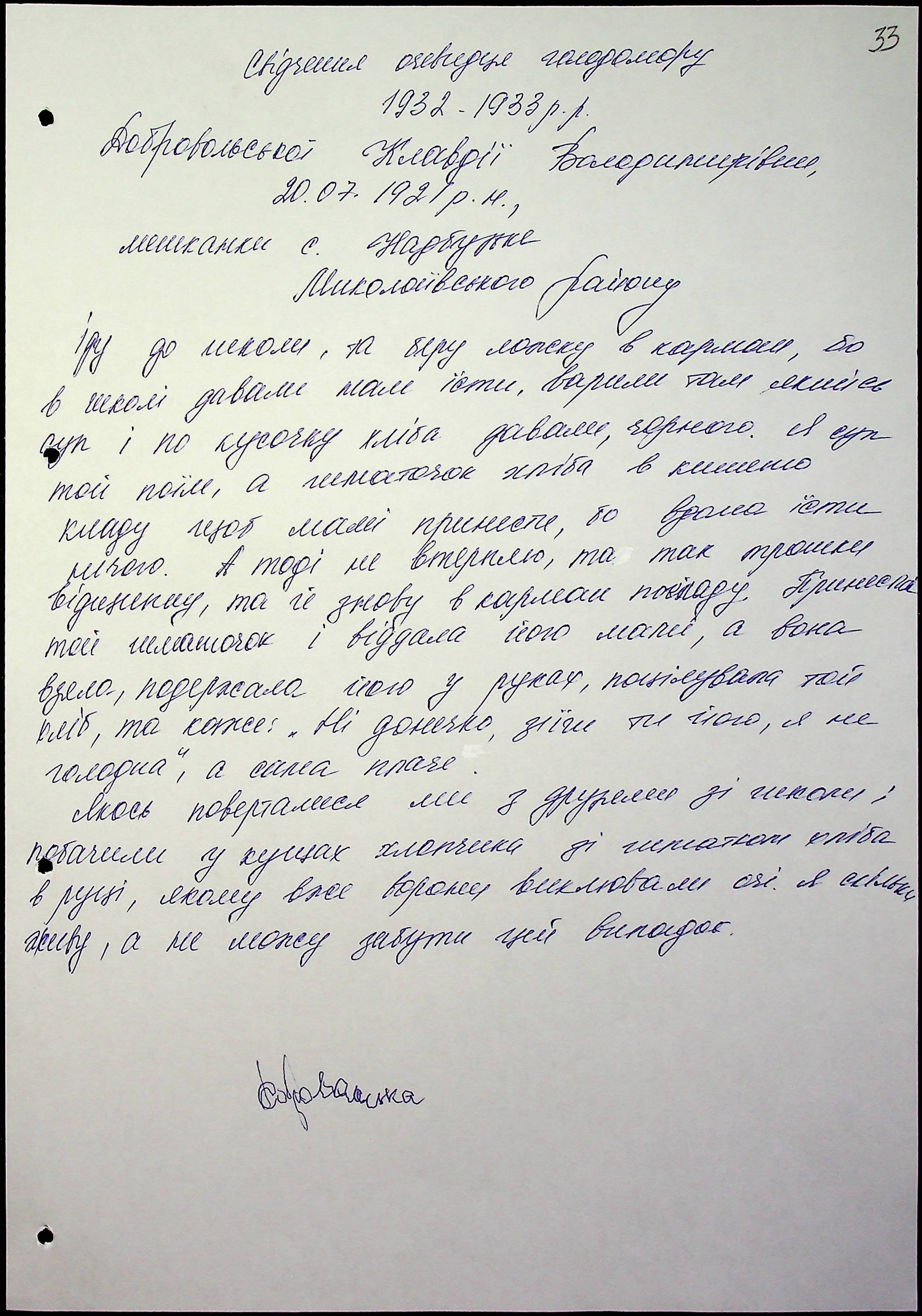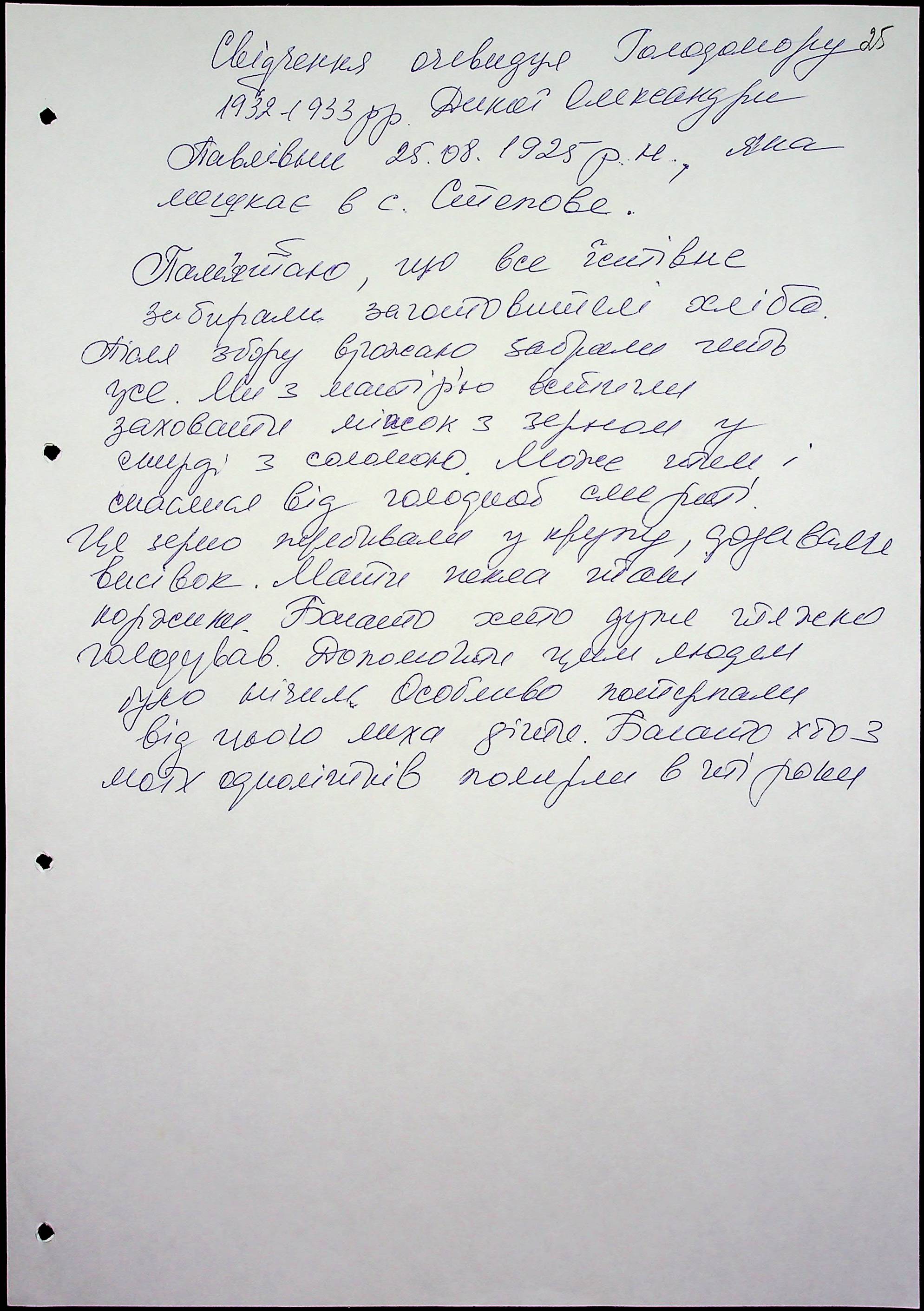 • • • • Справа № 47 “Свідчення очевидців Голодомору 1932-1933 років, які проживають у Миколаївському районі, з прізвищами на літери Д–І”