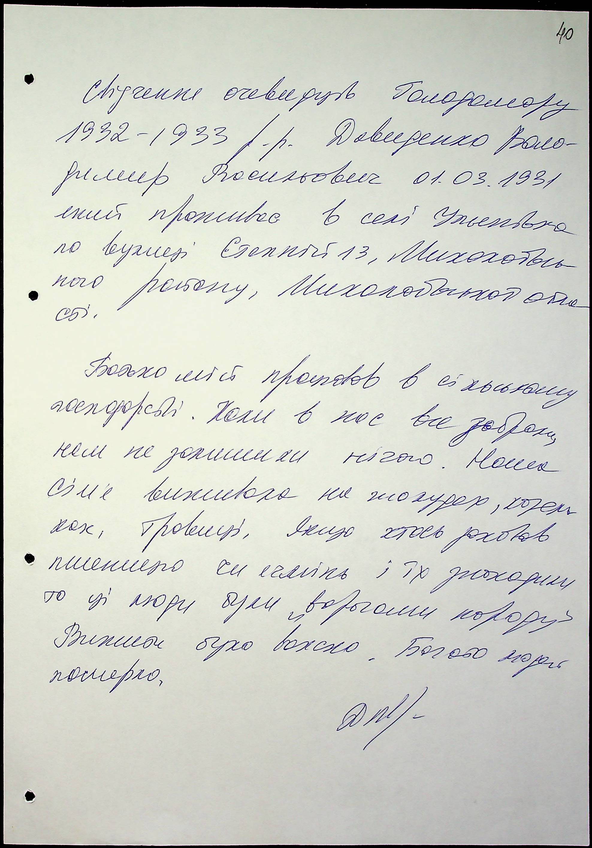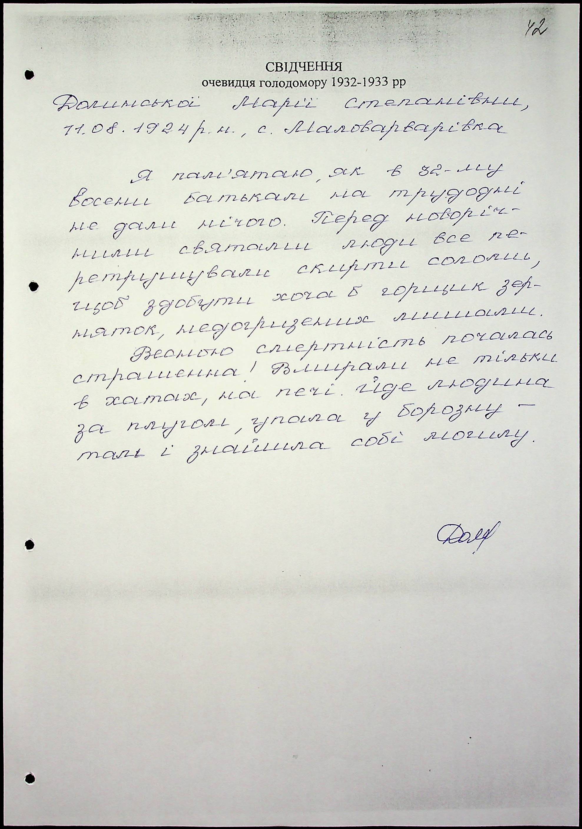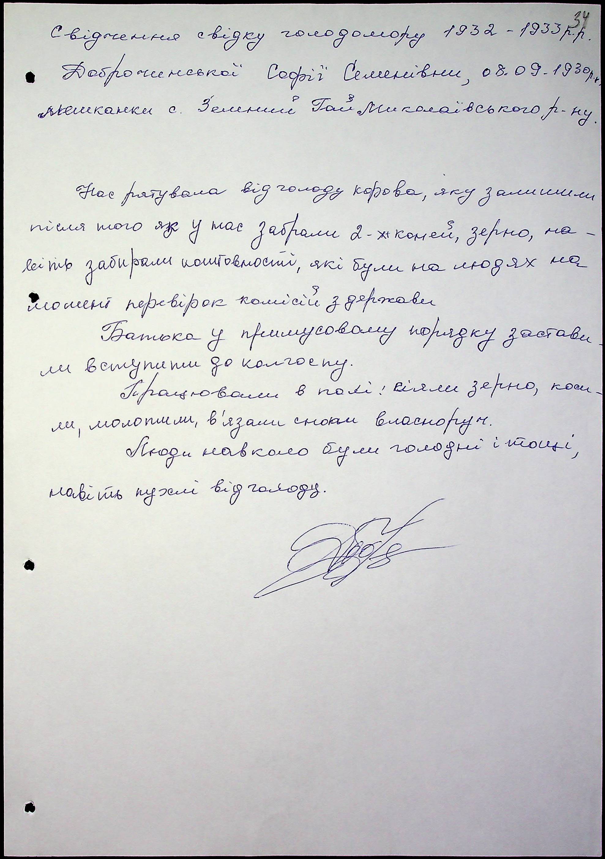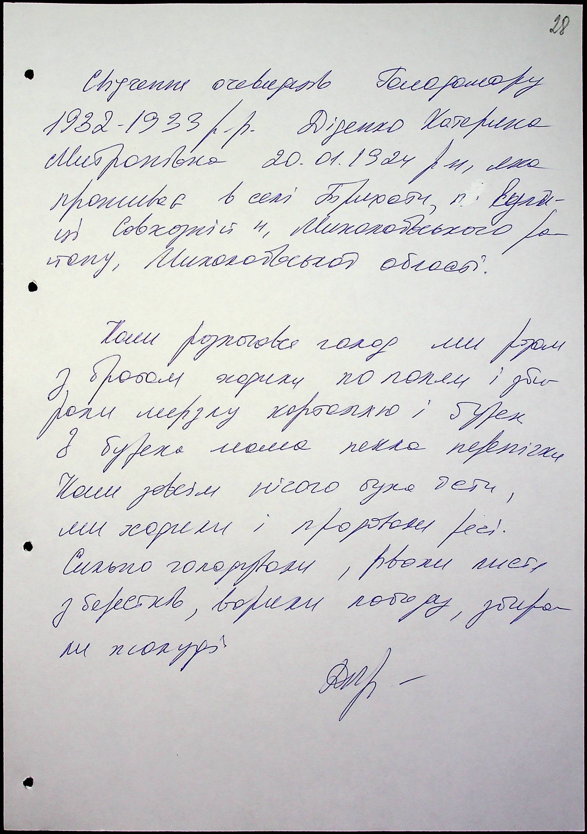 • • • • Справа № 47 “Свідчення очевидців Голодомору 1932-1933 років, які проживають у Миколаївському районі, з прізвищами на літери Д–І”